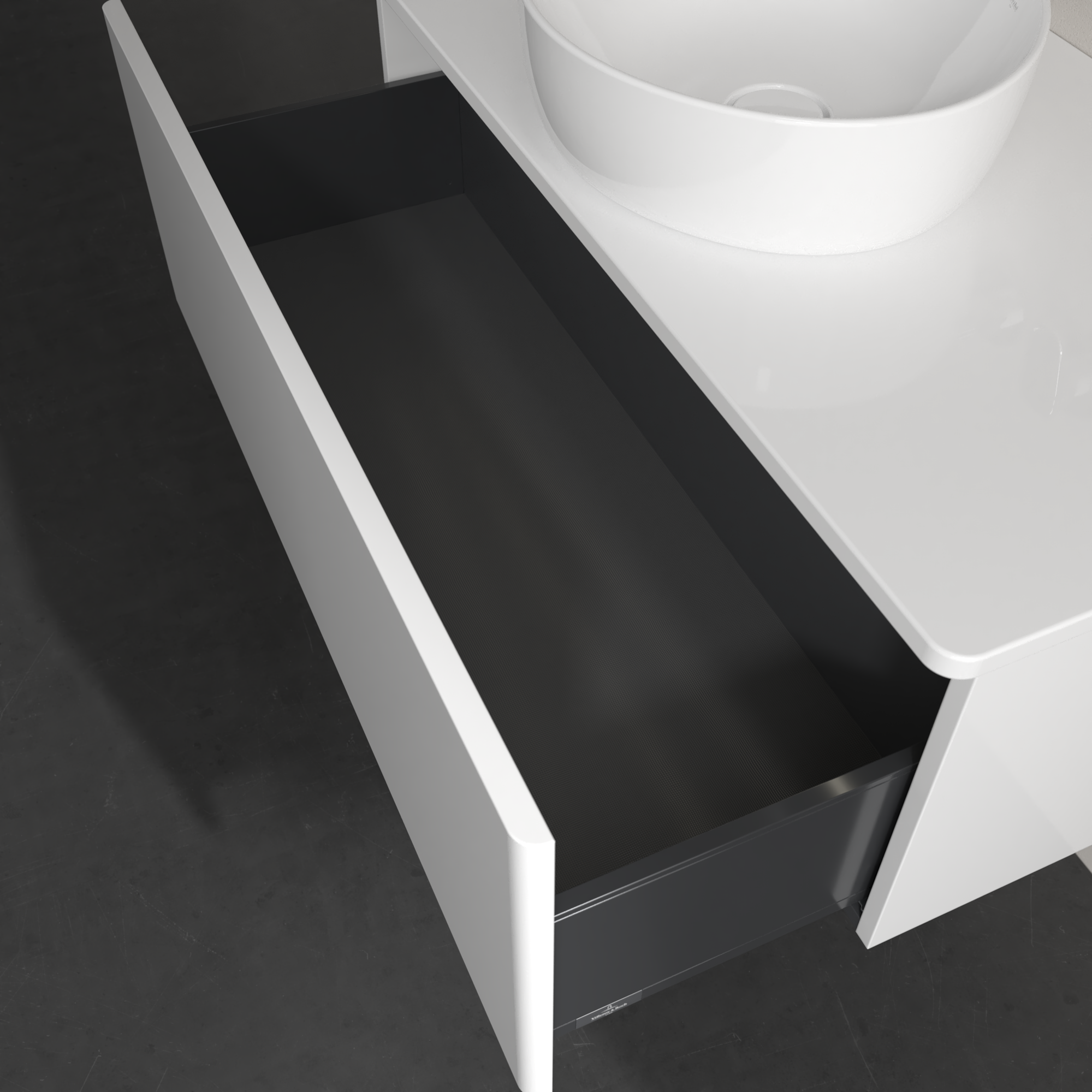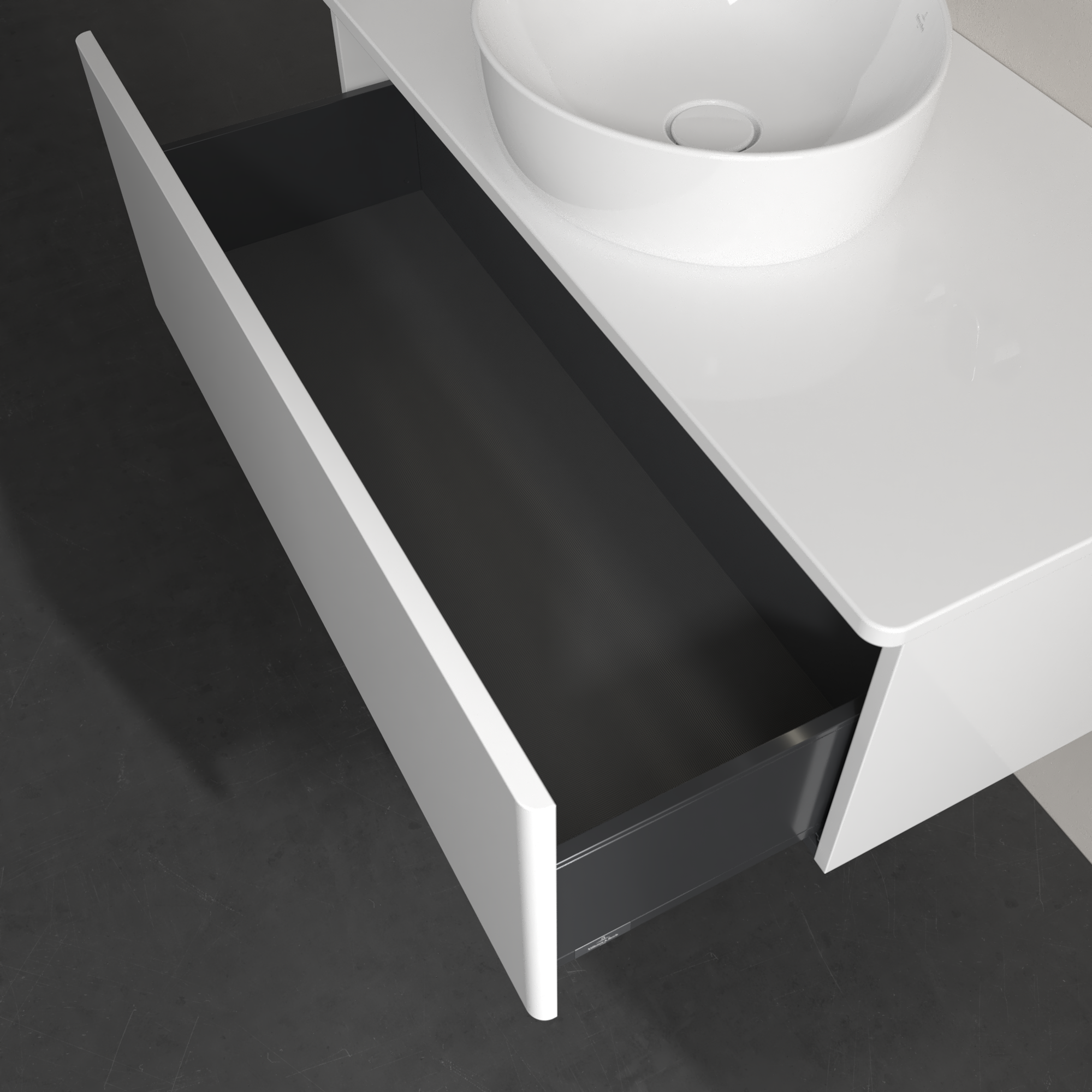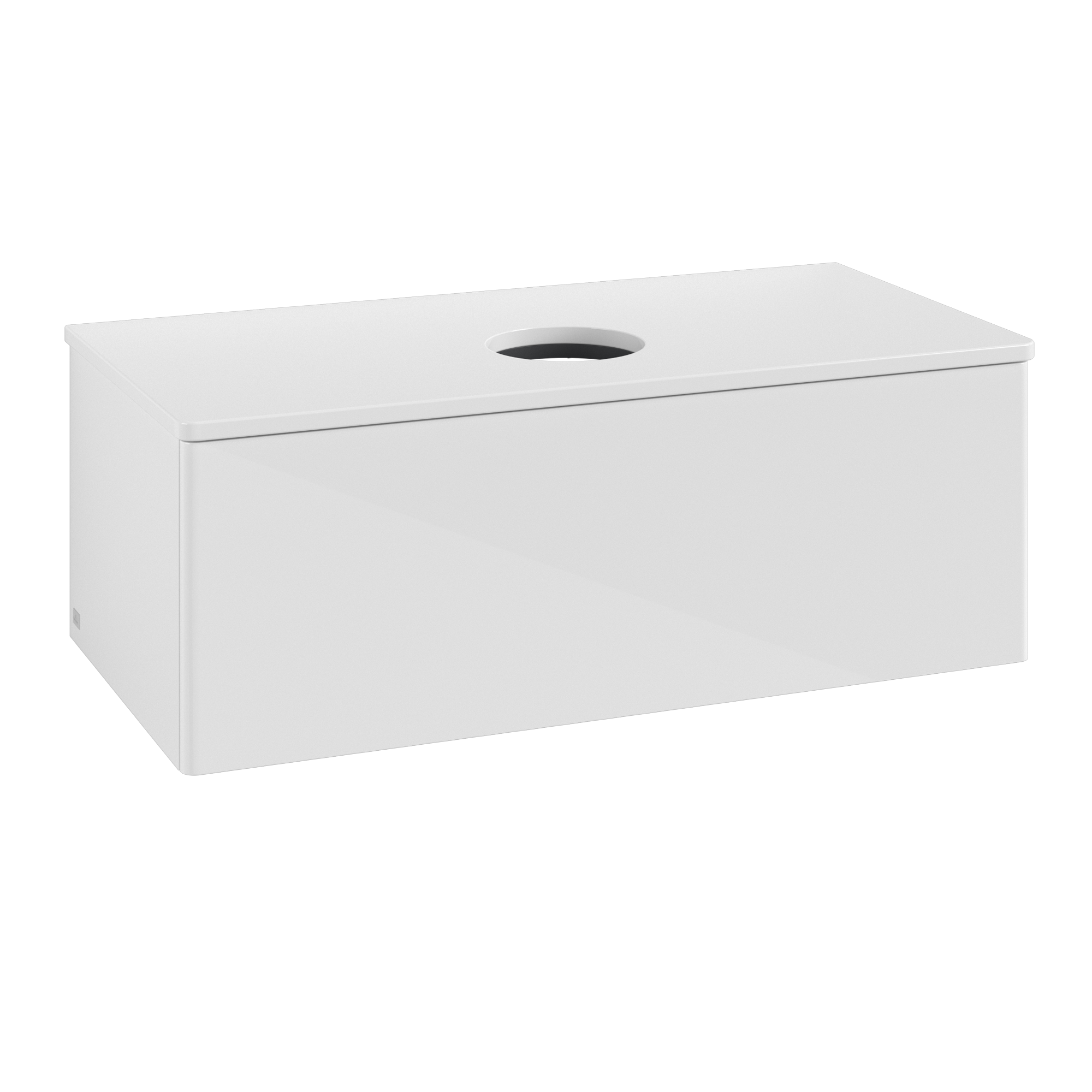 Antao Meuble sous plan, avec éclairage, 1 tiroir sur rails, 1000x360x500mm, Façade sans structure, Caisson: Glossy White Lacquer, Façade: Glossy White Lacquer, Plaque de recouvrement: Glossy White Lacquer