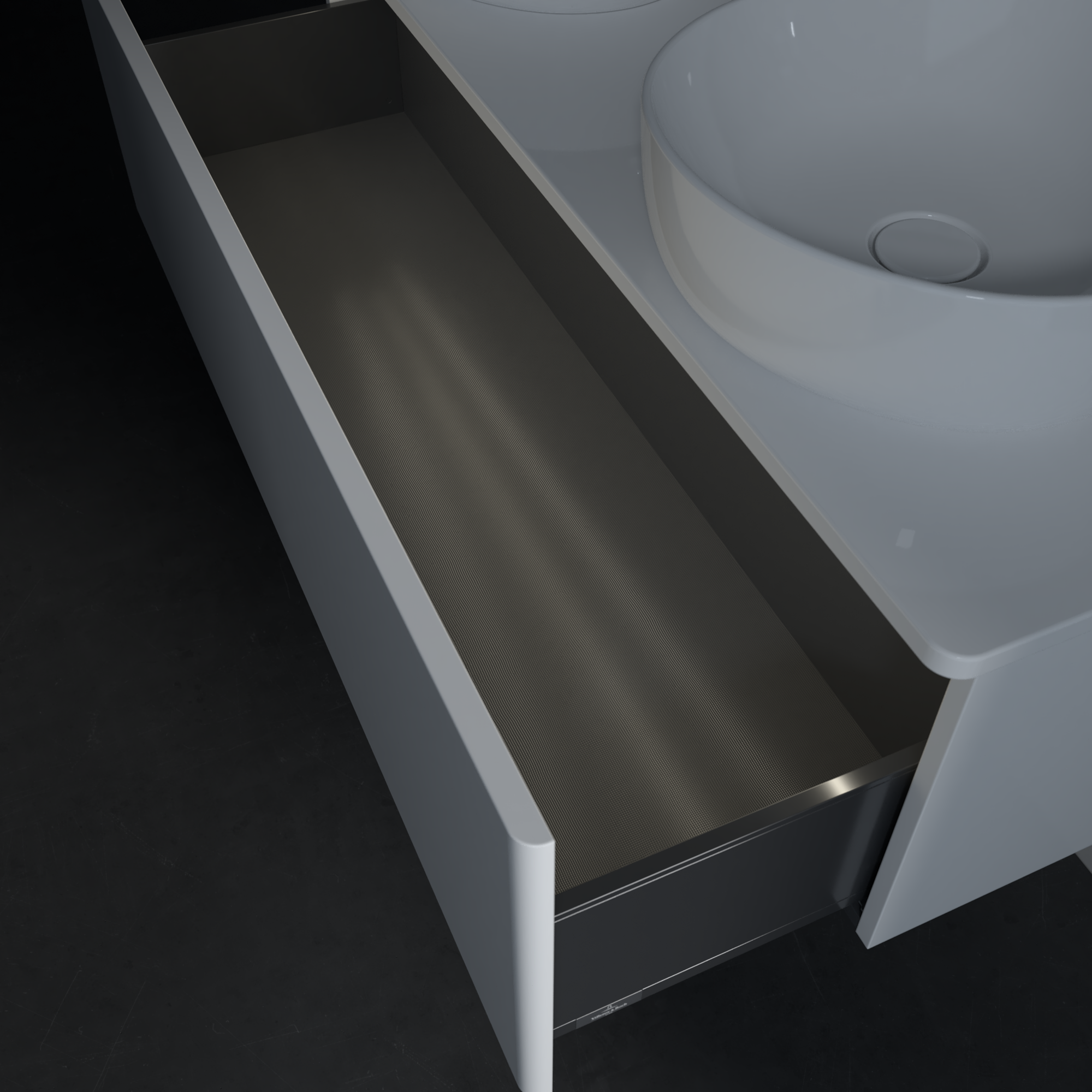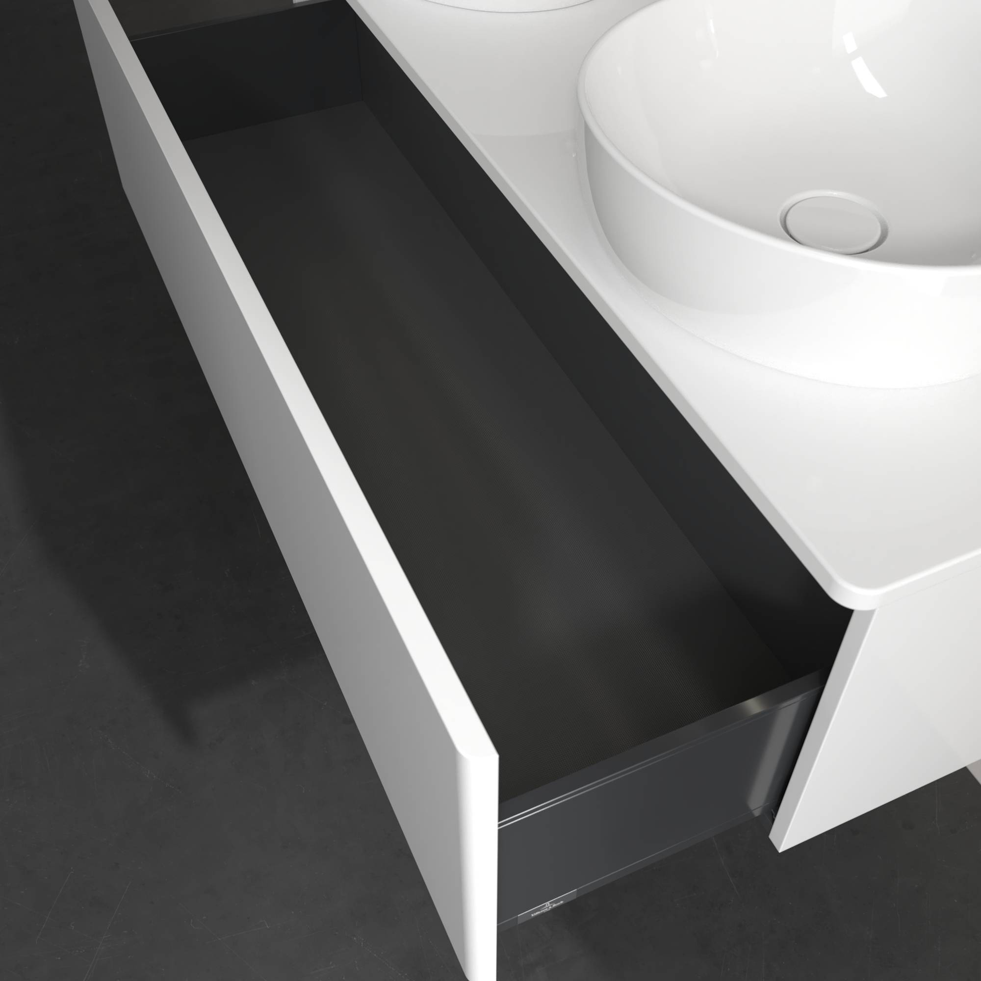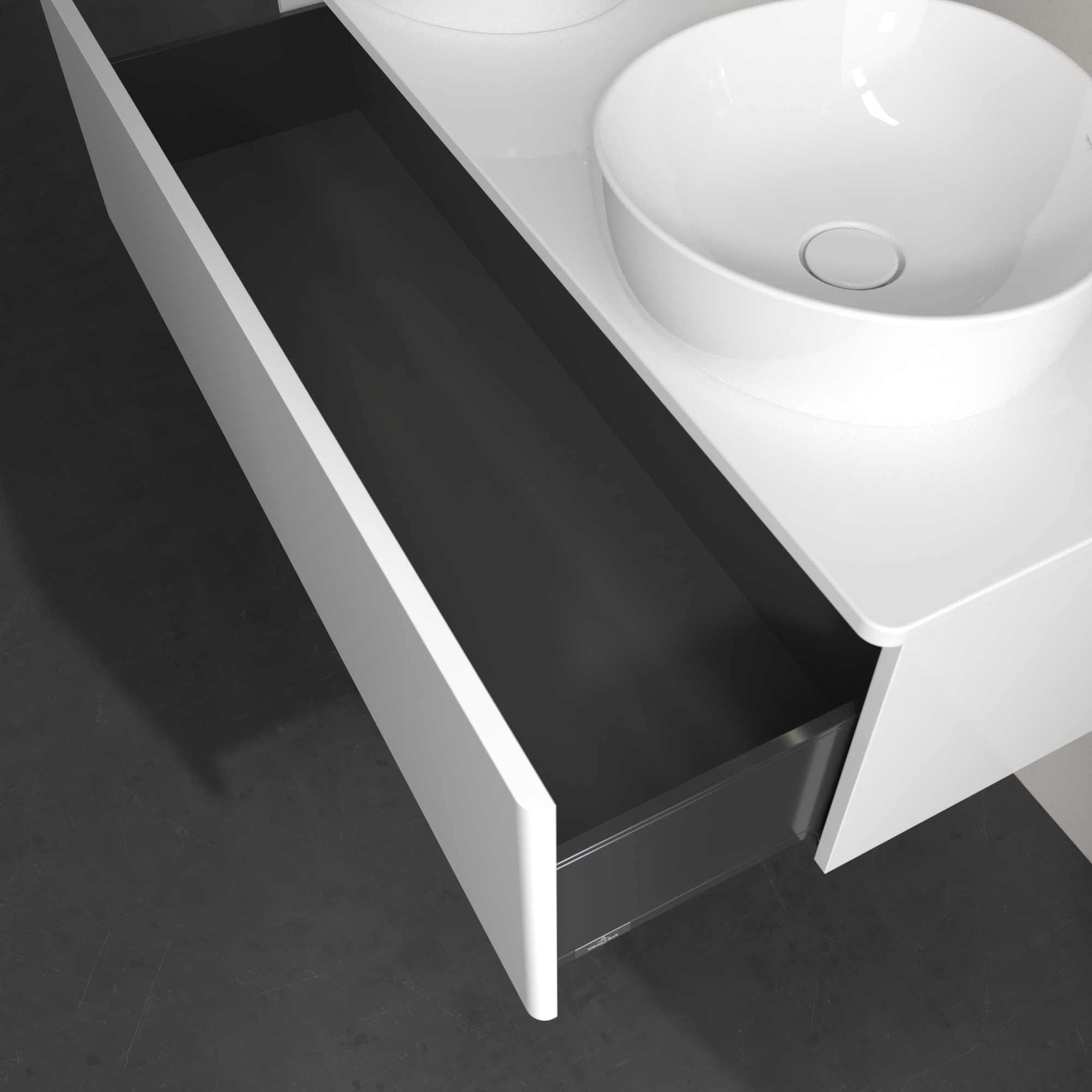 Antao Meuble sous plan, avec éclairage, 1 tiroir sur rails, 1200x360x500mm, Façade sans structure, Caisson: Glossy White Lacquer, Façade: Glossy White Lacquer, Plaque de recouvrement: Glossy White Lacquer