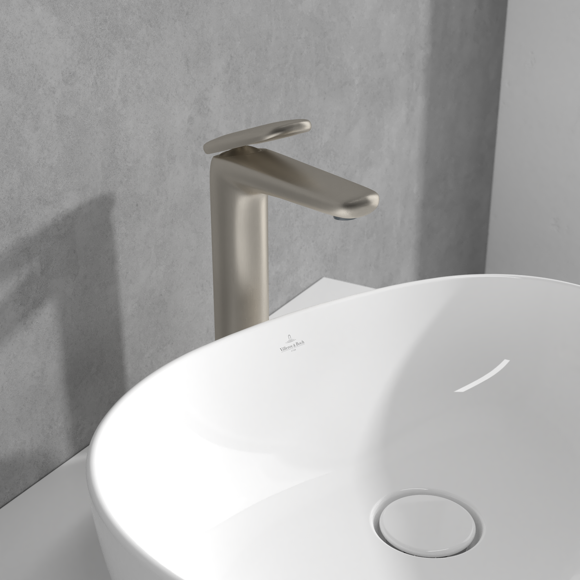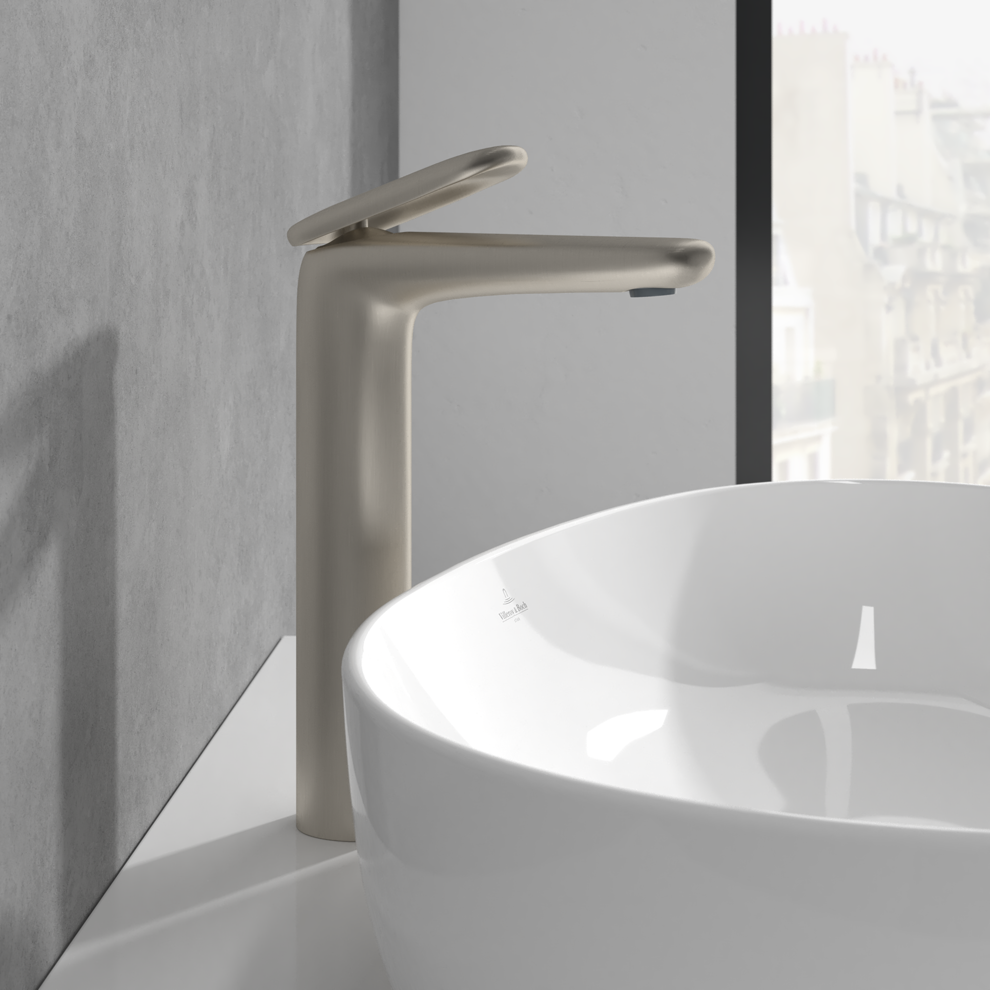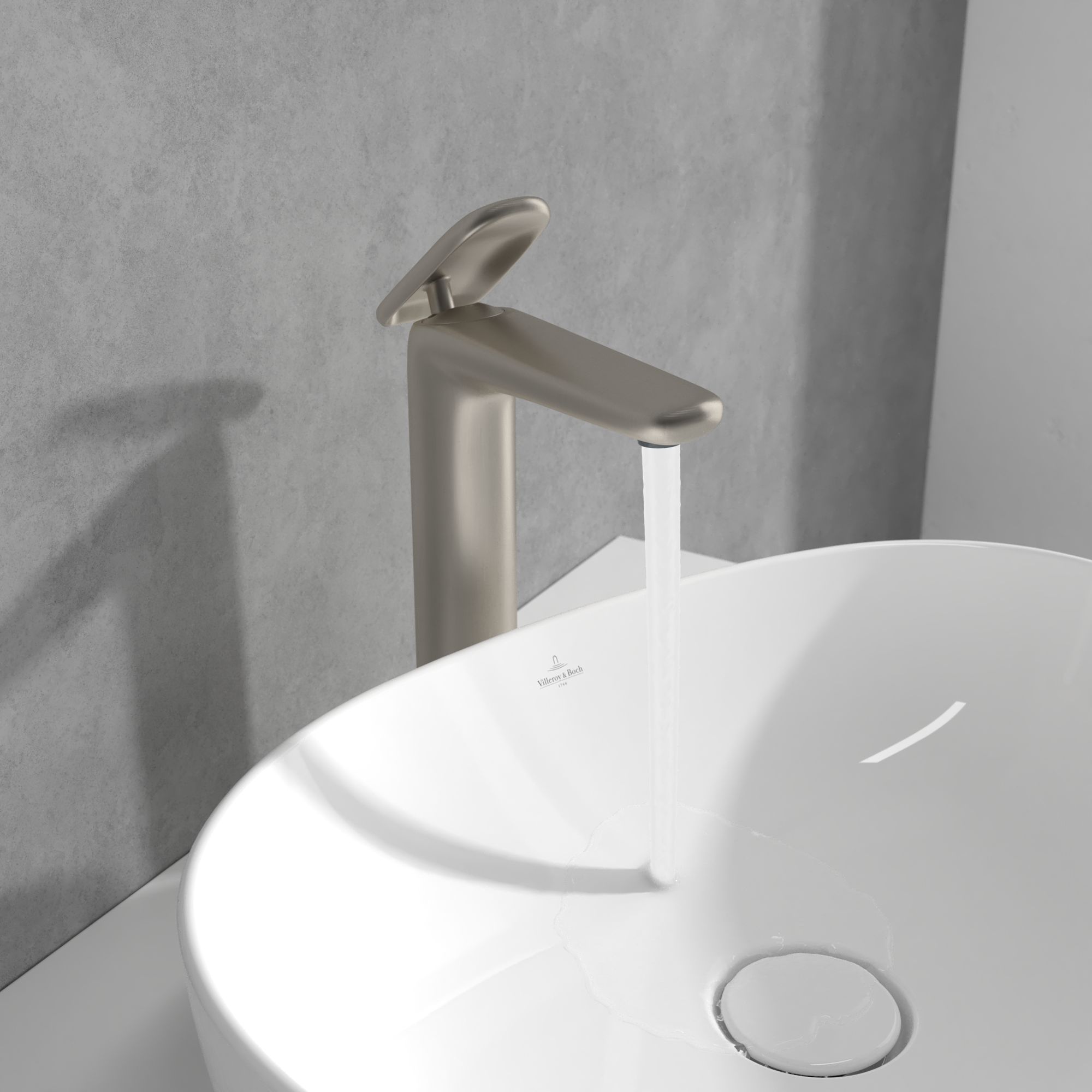 Antao Robinetterie monocommande surélevée pour lavabo, Avec dispositif de vidage Push Open, Brushed Nickel Matt