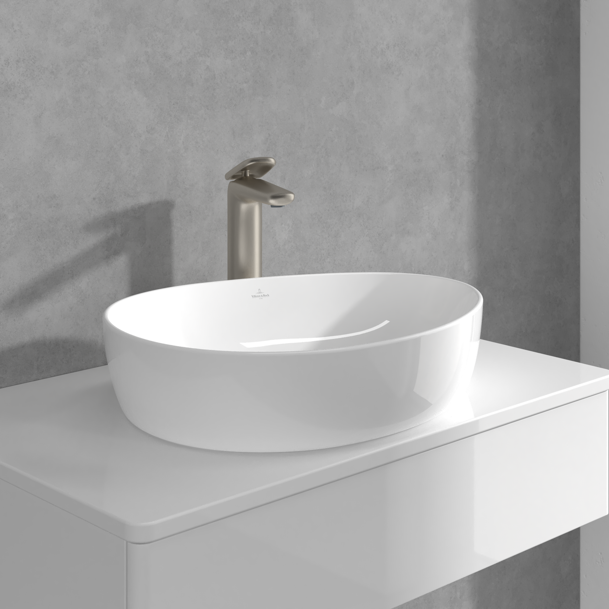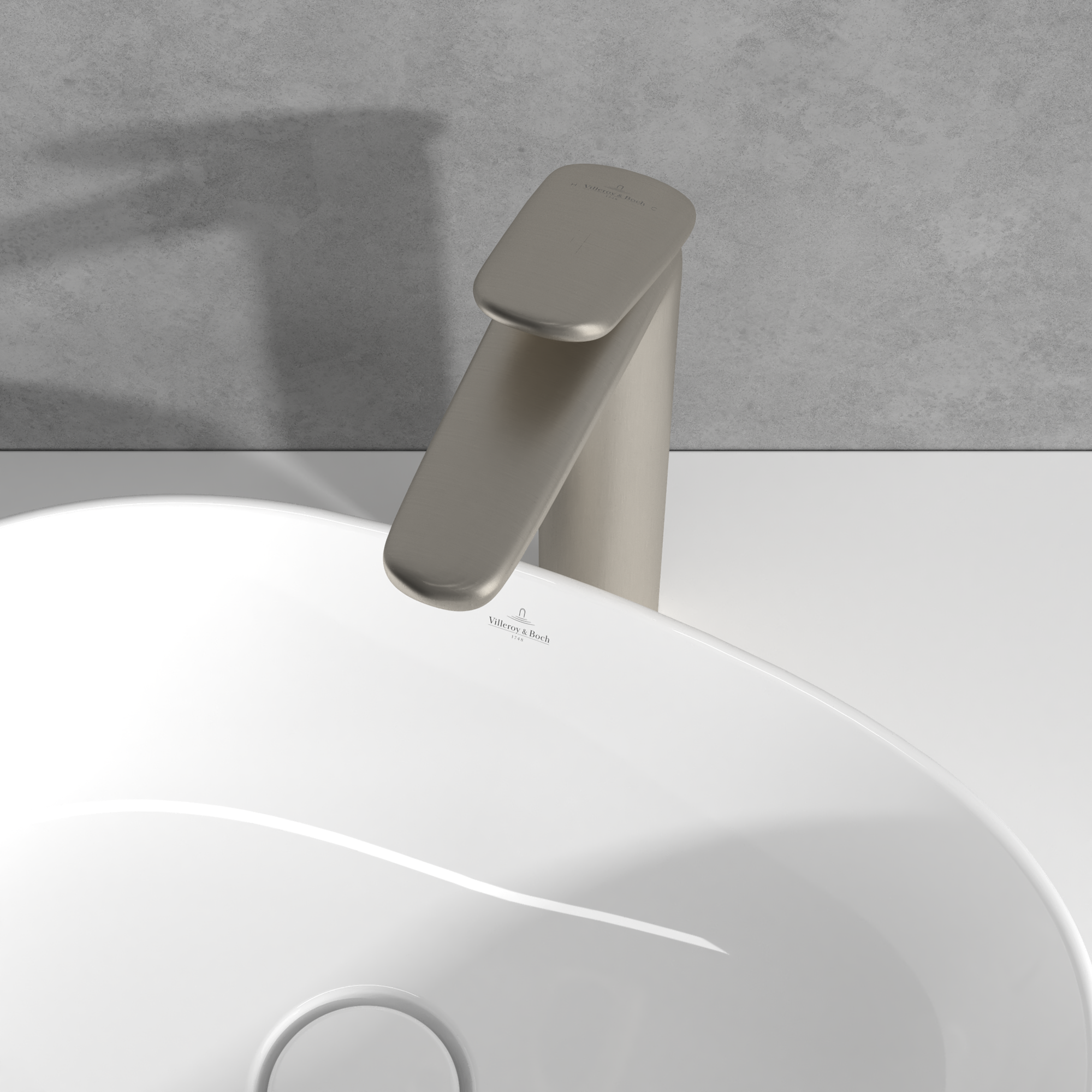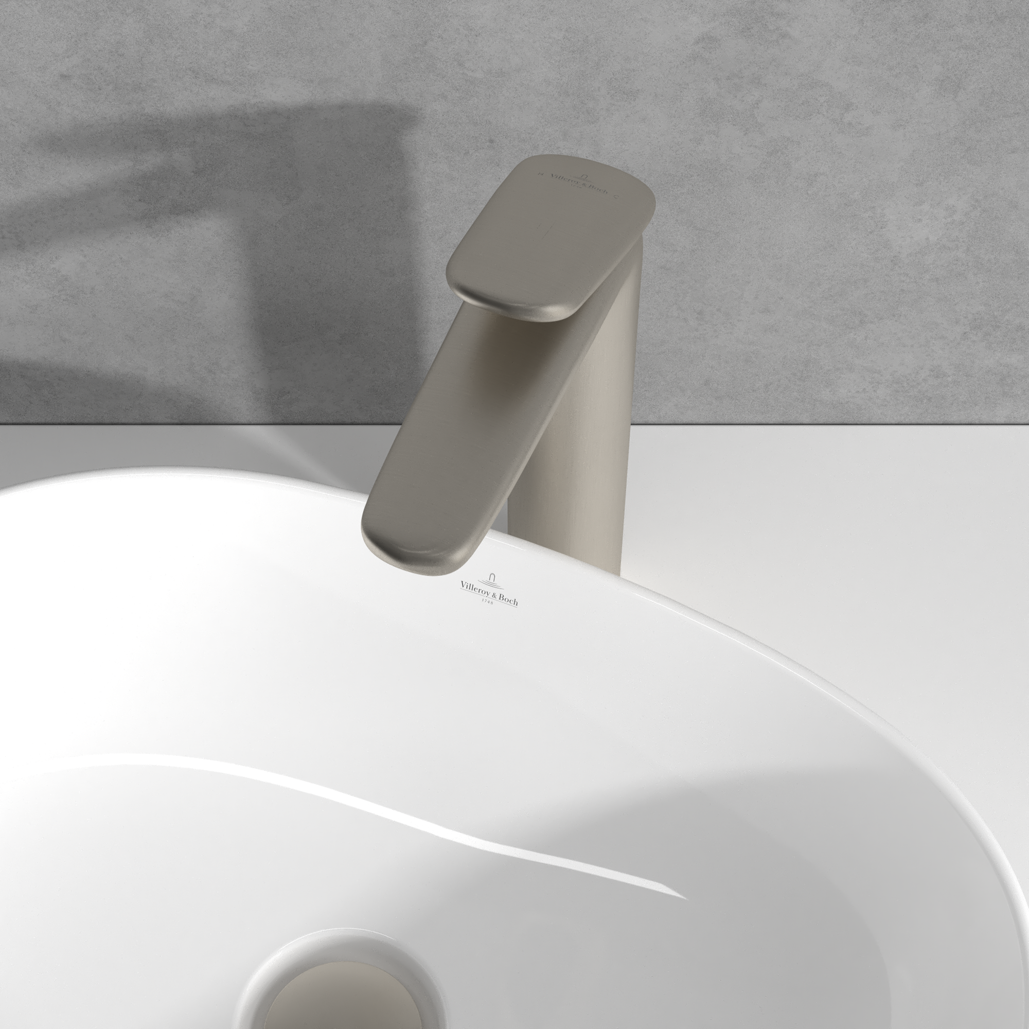 Antao Robinetterie monocommande surélevée pour lavabo, Avec dispositif de vidage Push Open, Brushed Nickel Matt