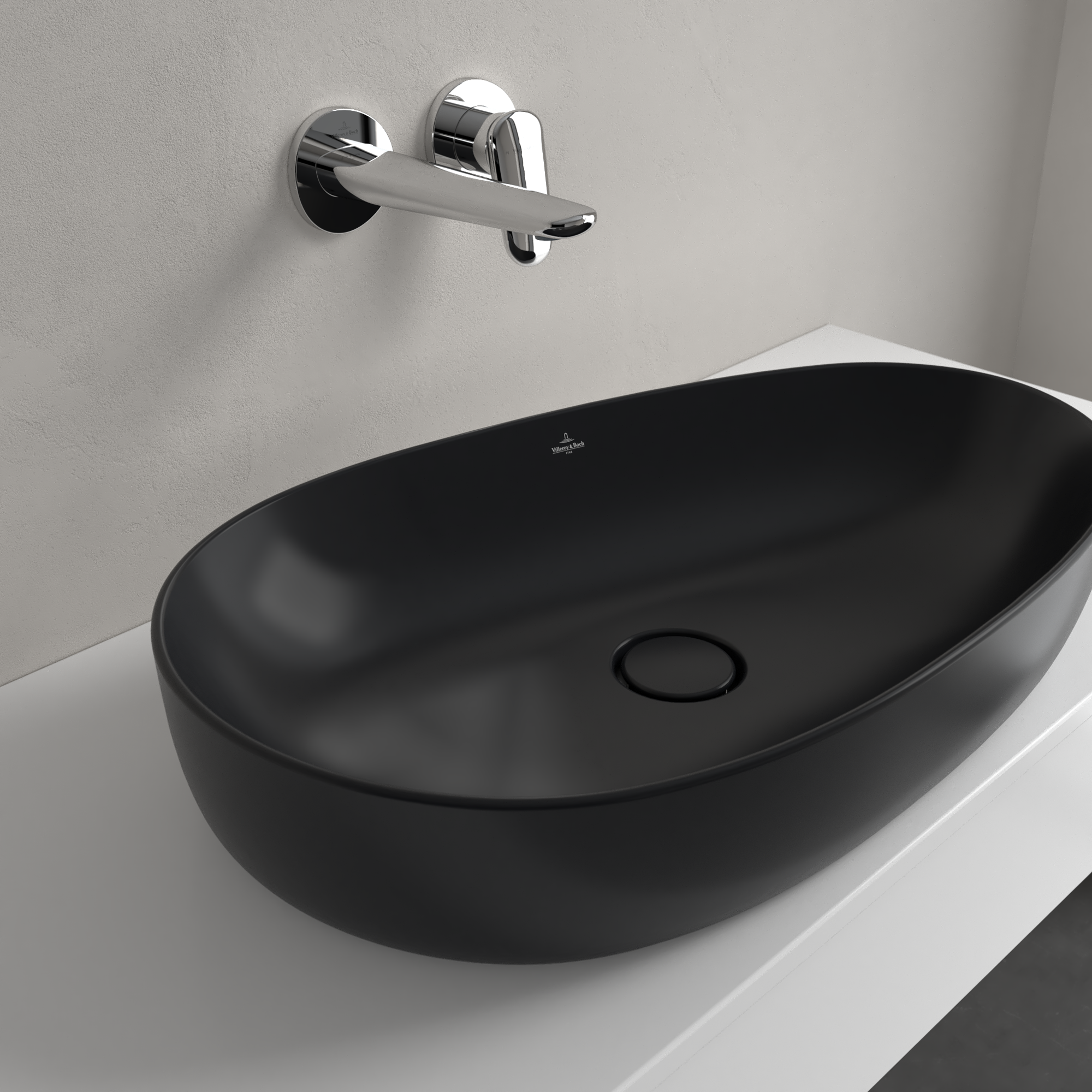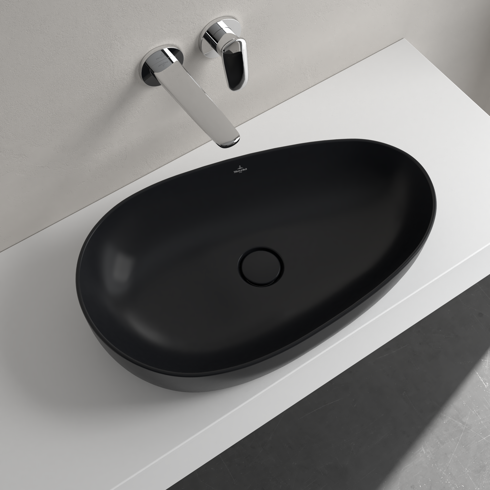 Antao Vasque à poser, 650x400x146mm, sans trop-plein, Pure Black CeramicPlus