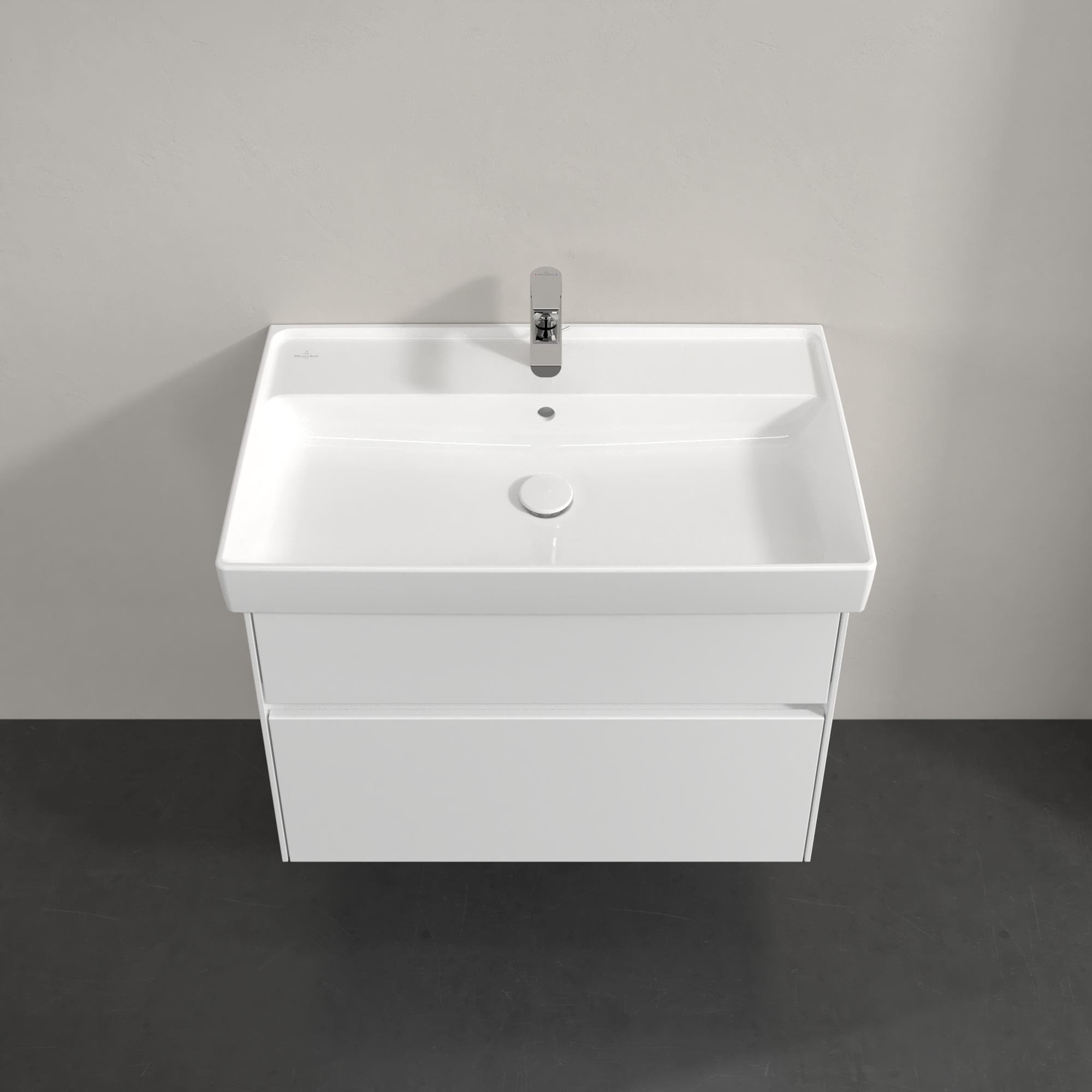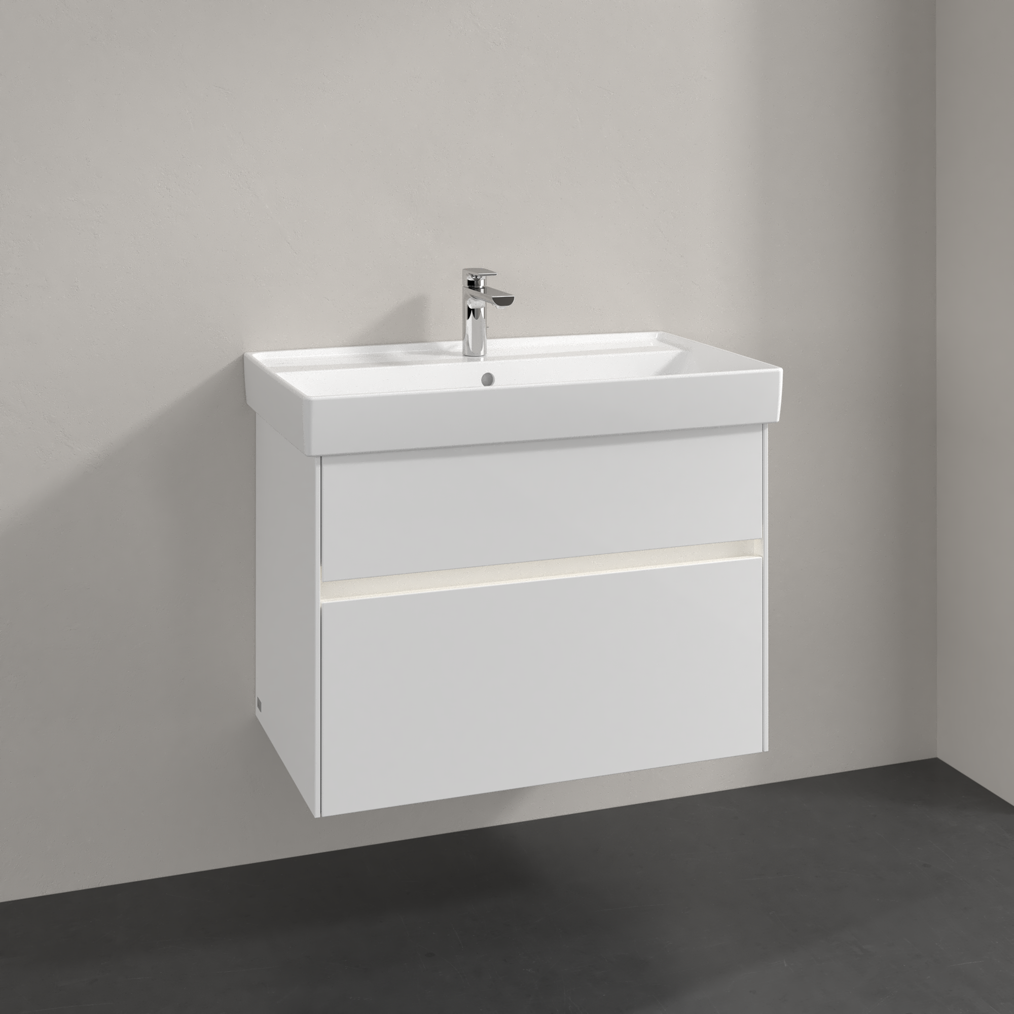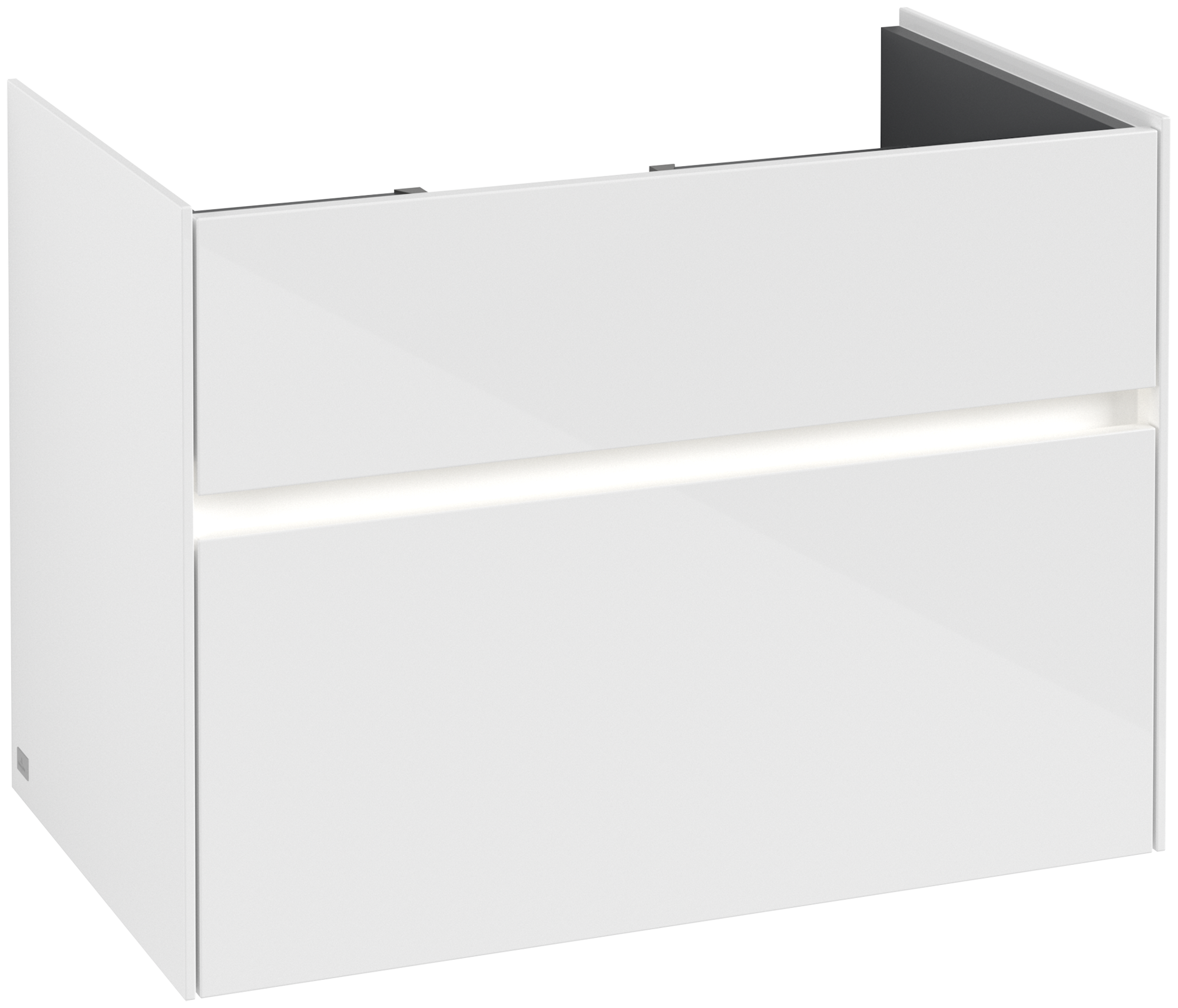 Collaro Meuble sous plan, avec éclairage, 2 tiroirs sur rails, 754x546x444mm, Caisson: Glossy White, Façade: Glossy White