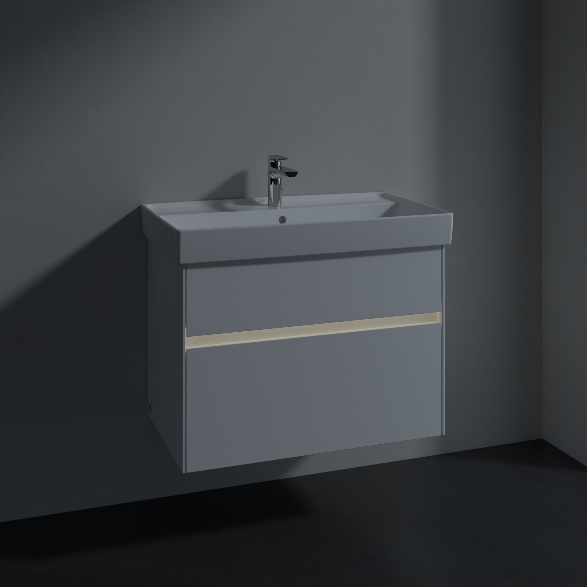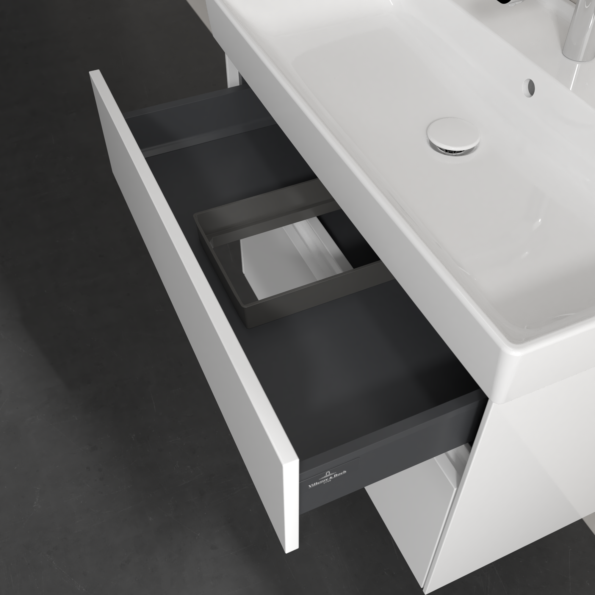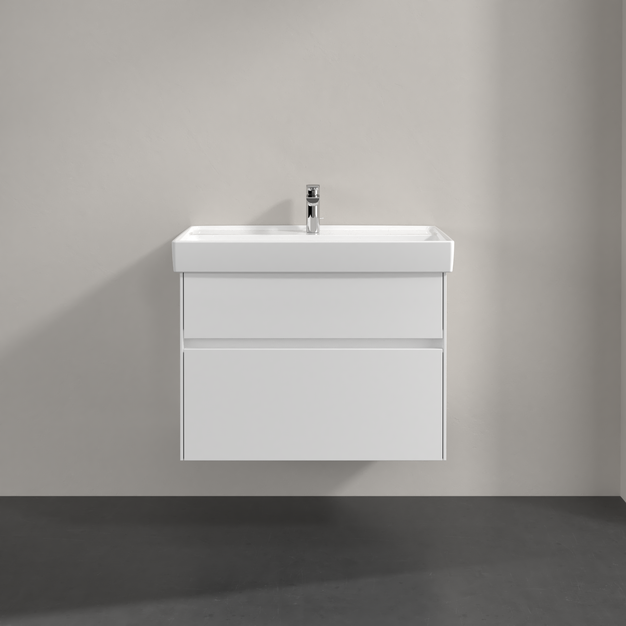 Collaro Meuble sous plan, avec éclairage, 2 tiroirs sur rails, 754x546x444mm, Caisson: Glossy White, Façade: Glossy White