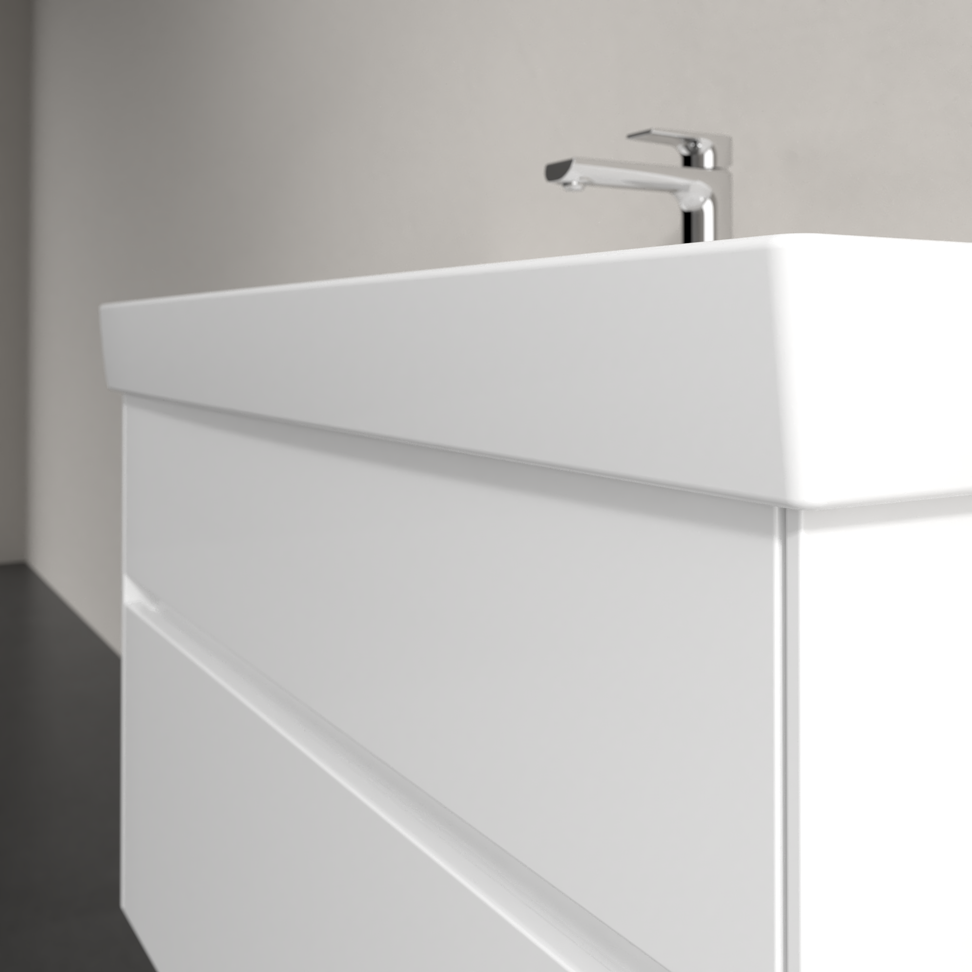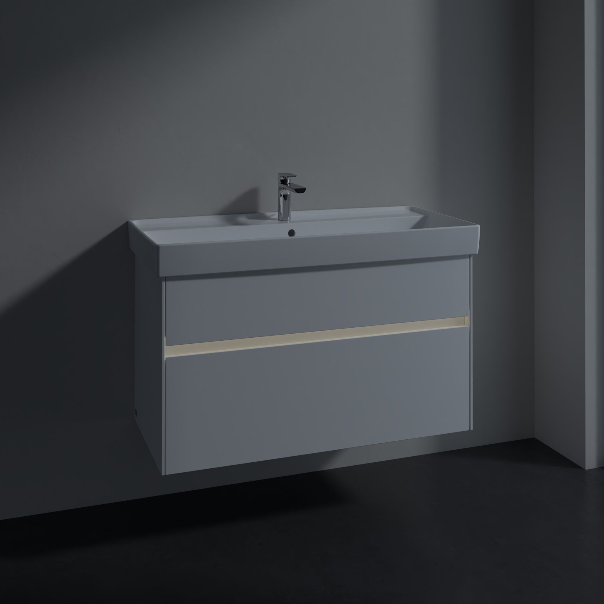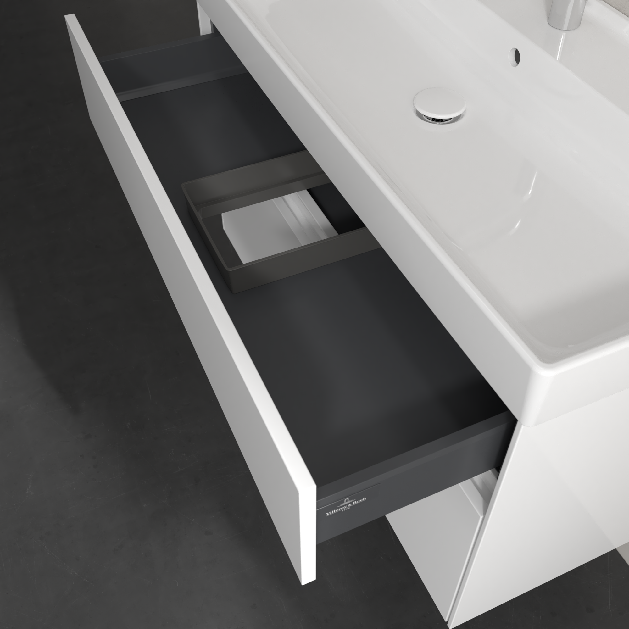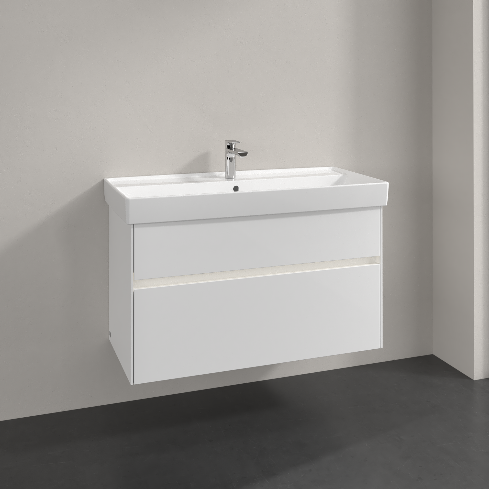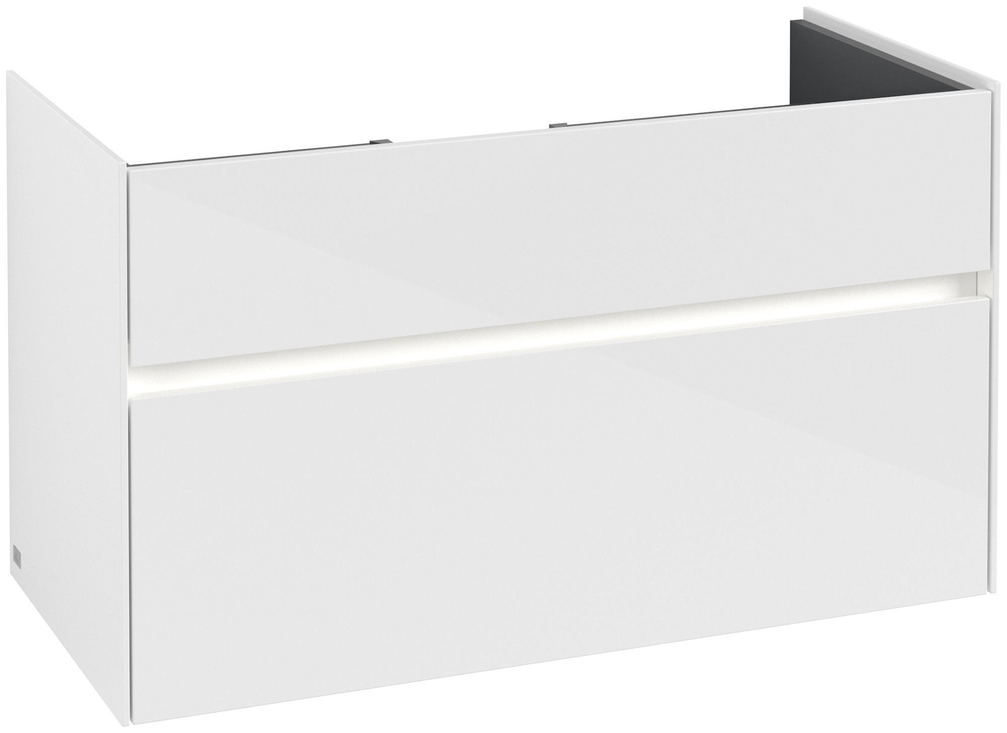 Collaro Meuble sous plan, avec éclairage, 2 tiroirs sur rails, 954x546x444mm, Caisson: Glossy White, Façade: Glossy White