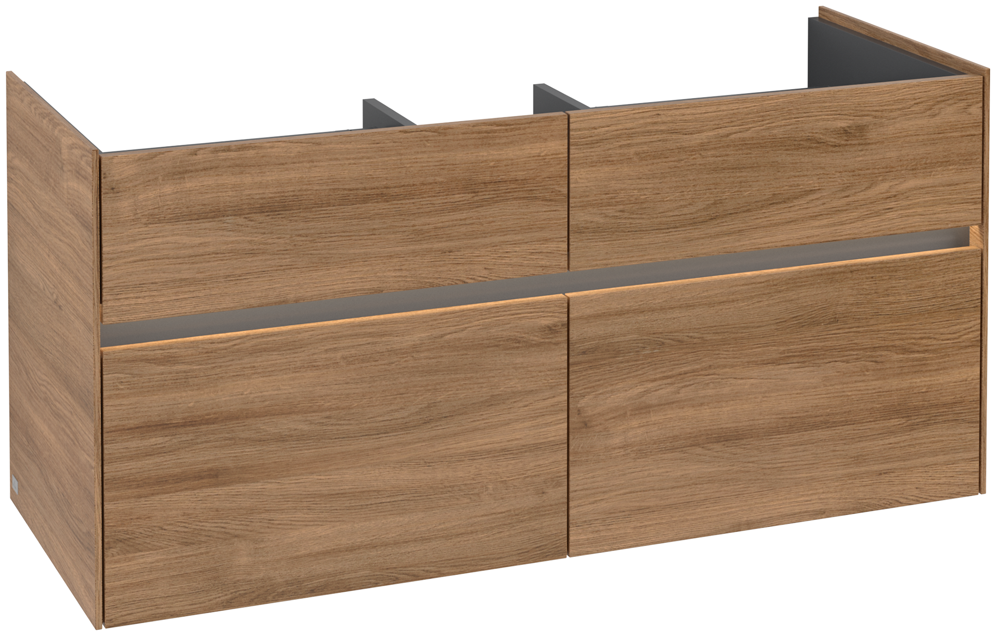 Collaro Meuble sous plan, avec éclairage, 4 tiroirs sur rails, 1154x546x444mm, Caisson: Oak Kansas, Façade: Oak Kansas