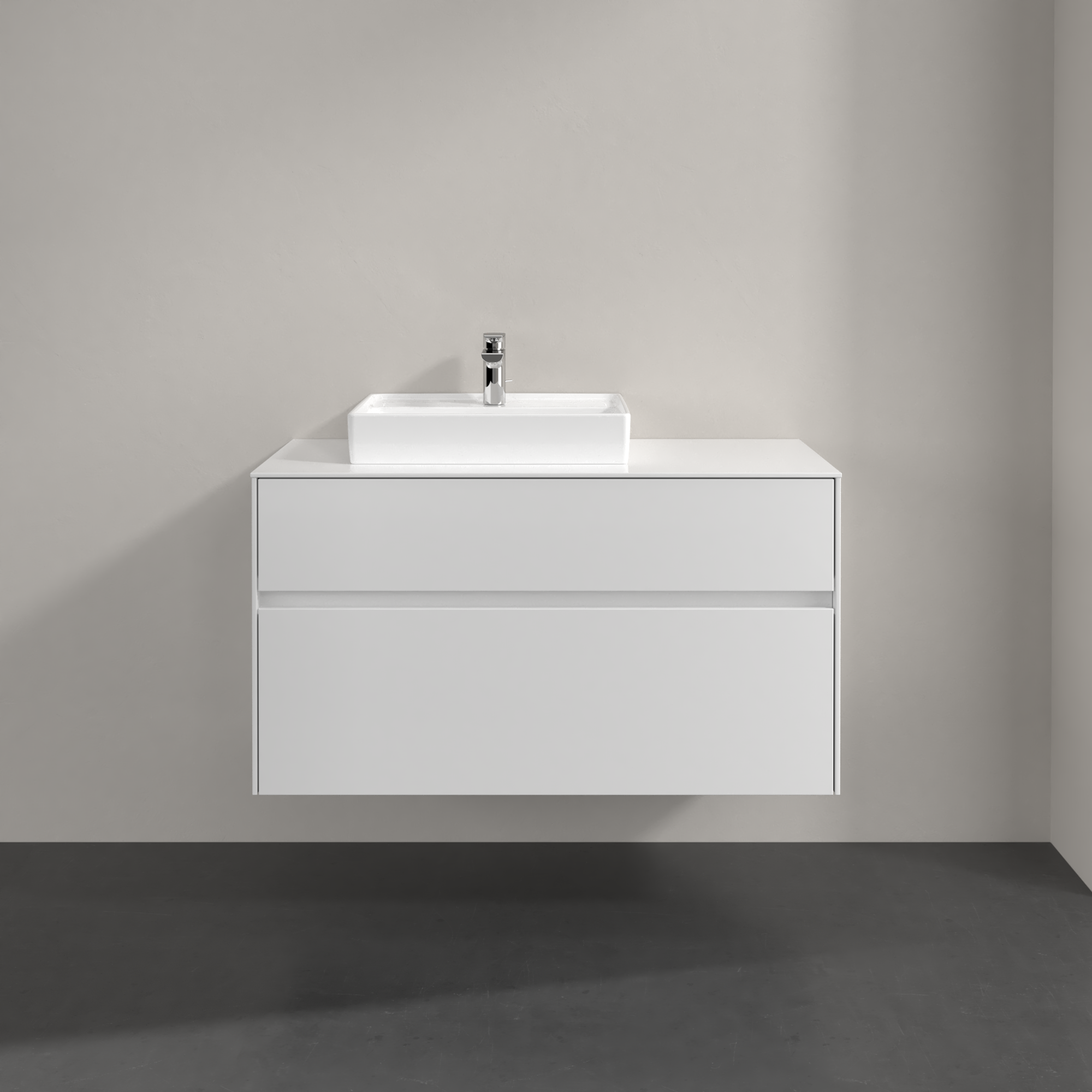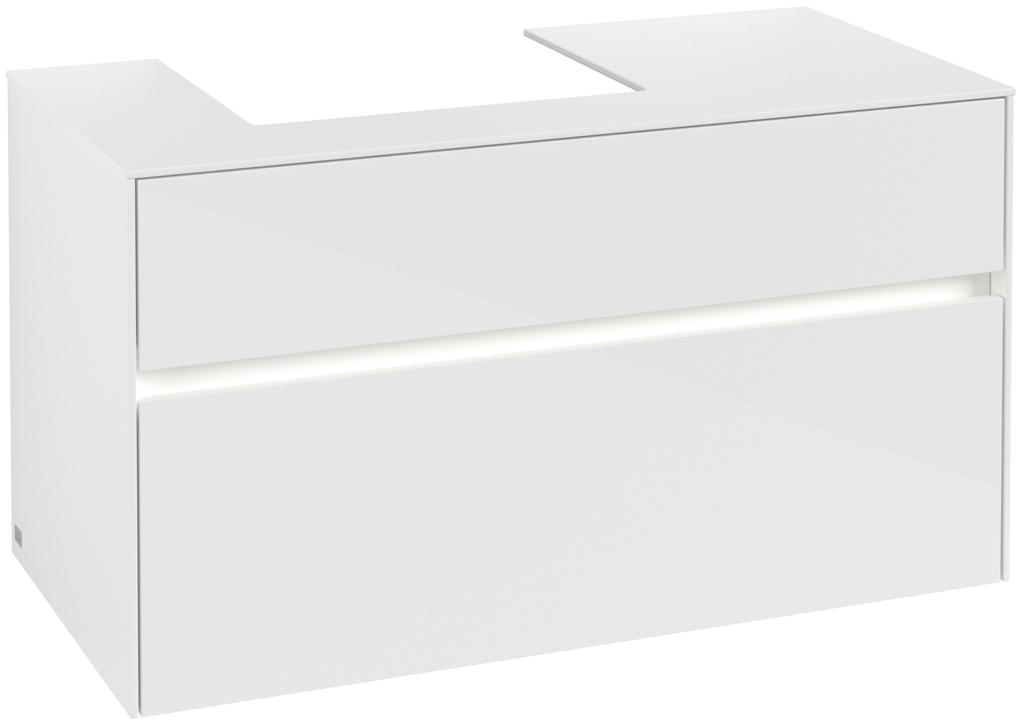 Collaro Meuble sous plan, avec éclairage, 2 tiroirs sur rails, 1000x548x500mm, Caisson: Glossy White, Façade: Glossy White