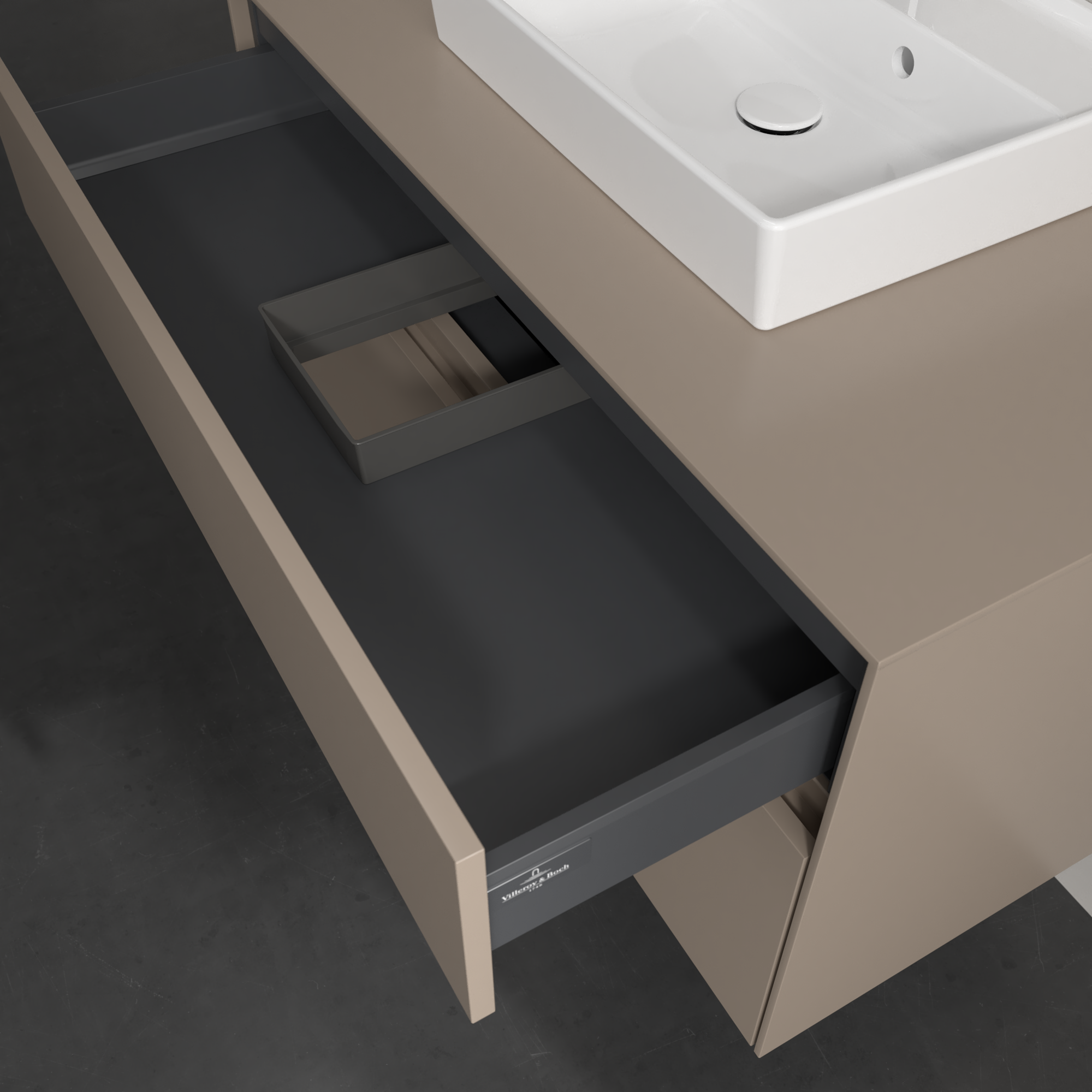 Collaro Meuble sous plan, 2 tiroirs sur rails, 1000x548x500mm, Caisson: Taupe, Façade: Taupe