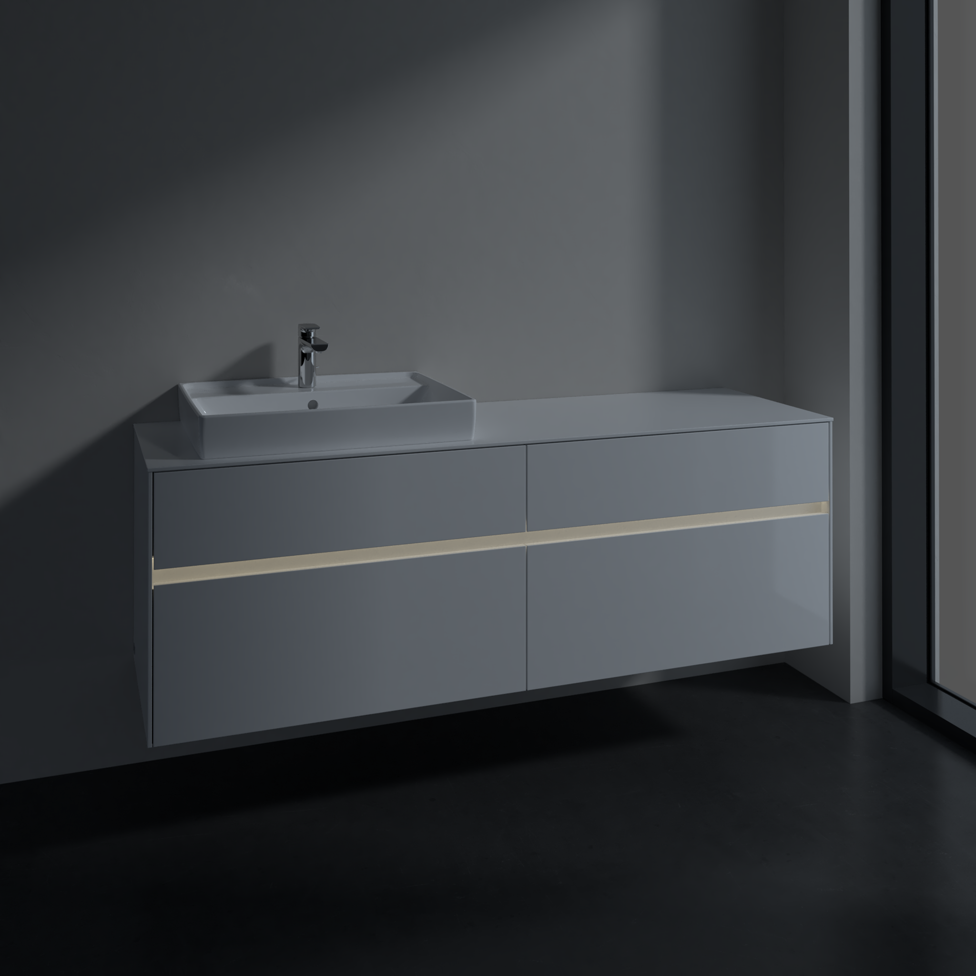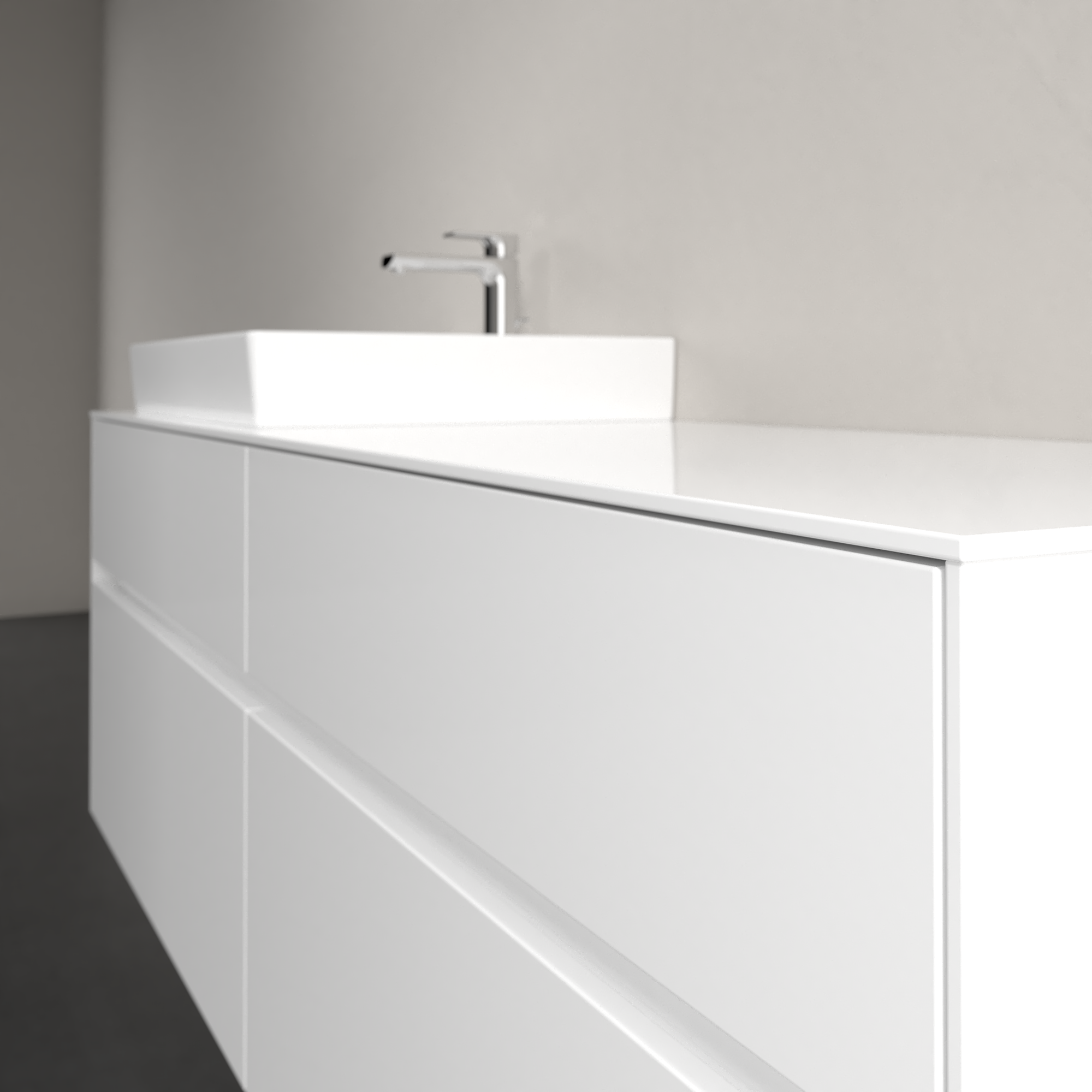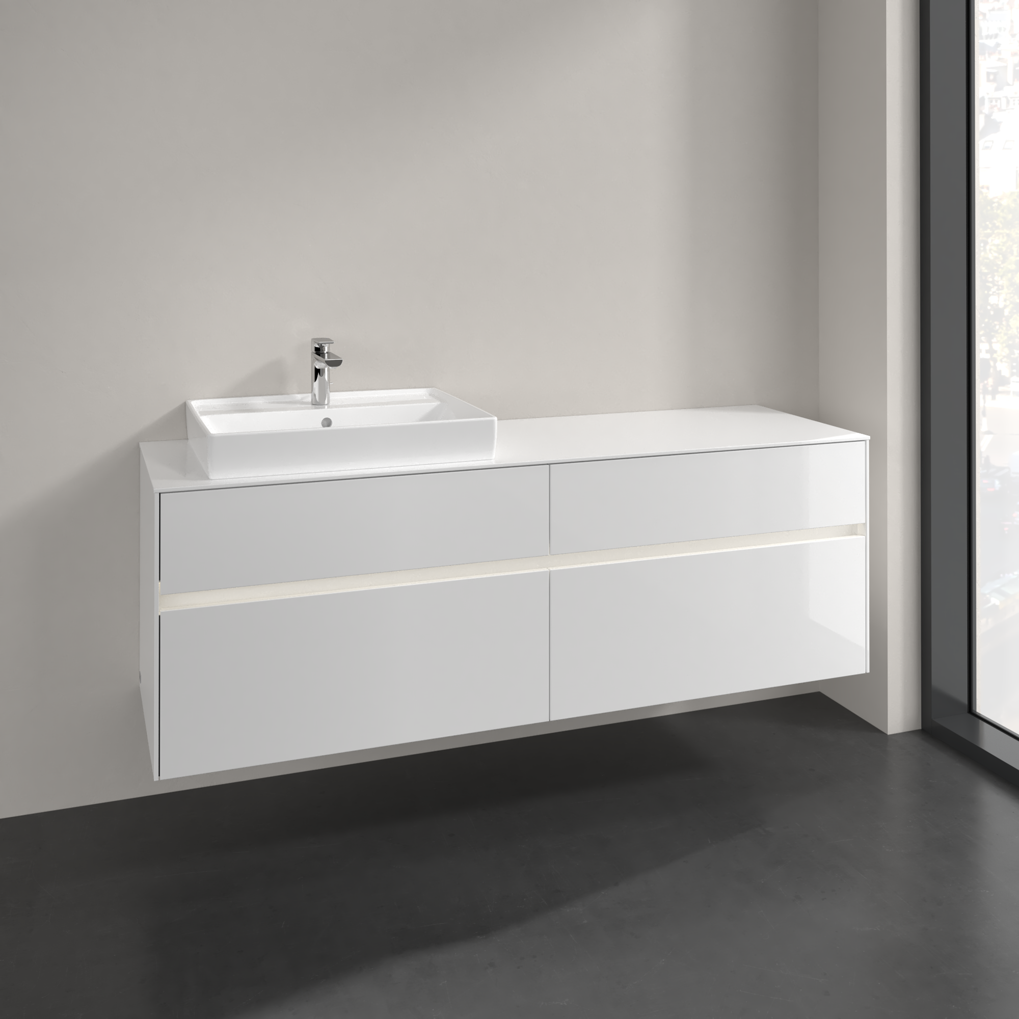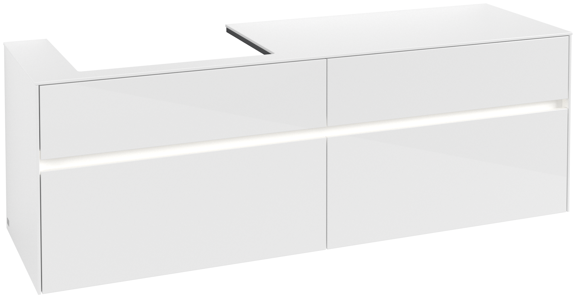 Collaro Meuble sous plan, avec éclairage, 4 tiroirs sur rails, 1600x548x500mm, Caisson: Glossy White, Façade: Glossy White