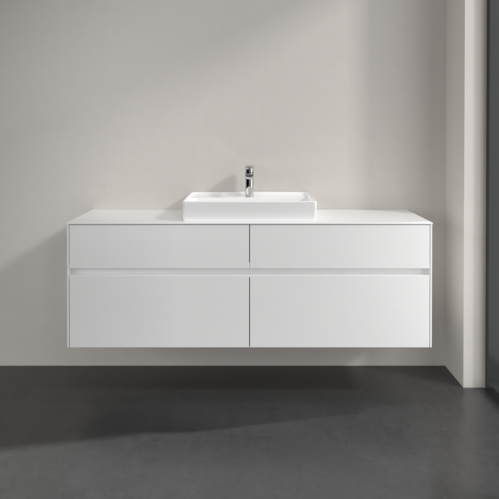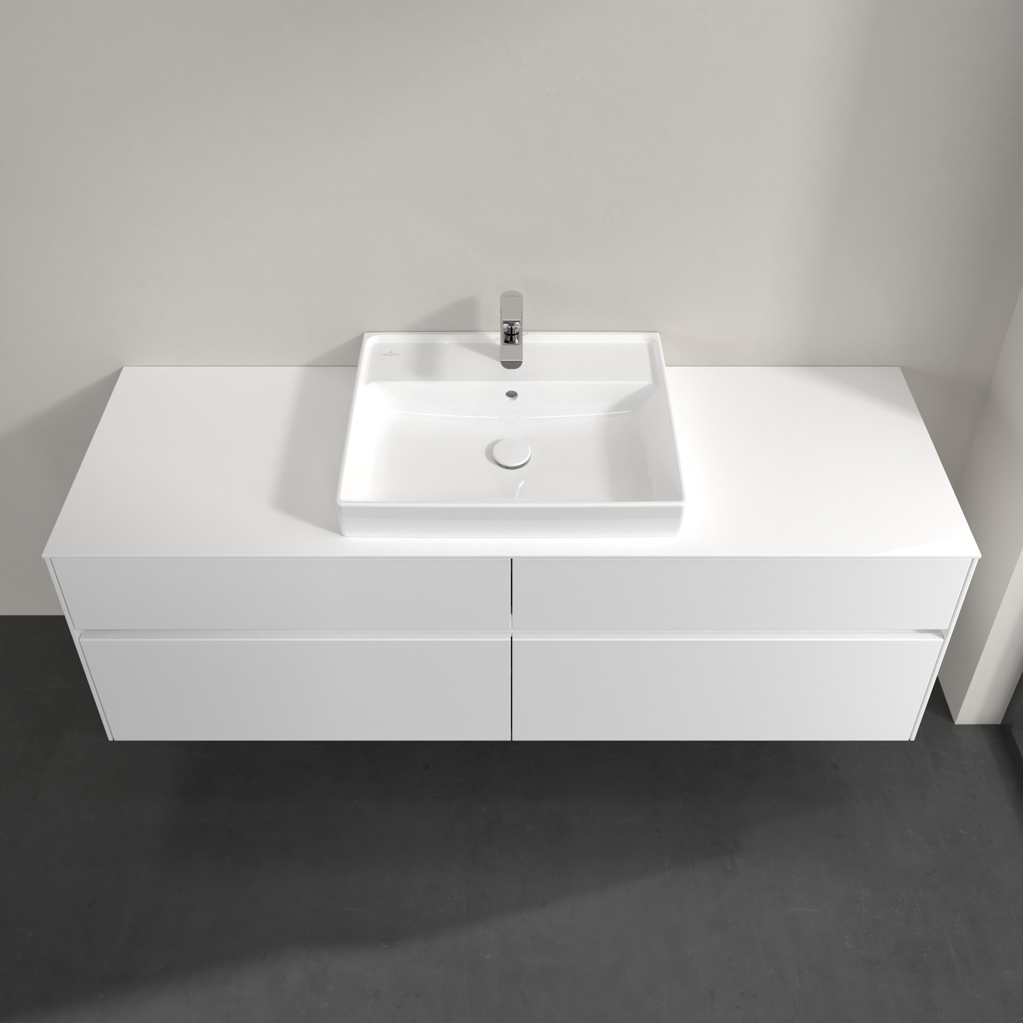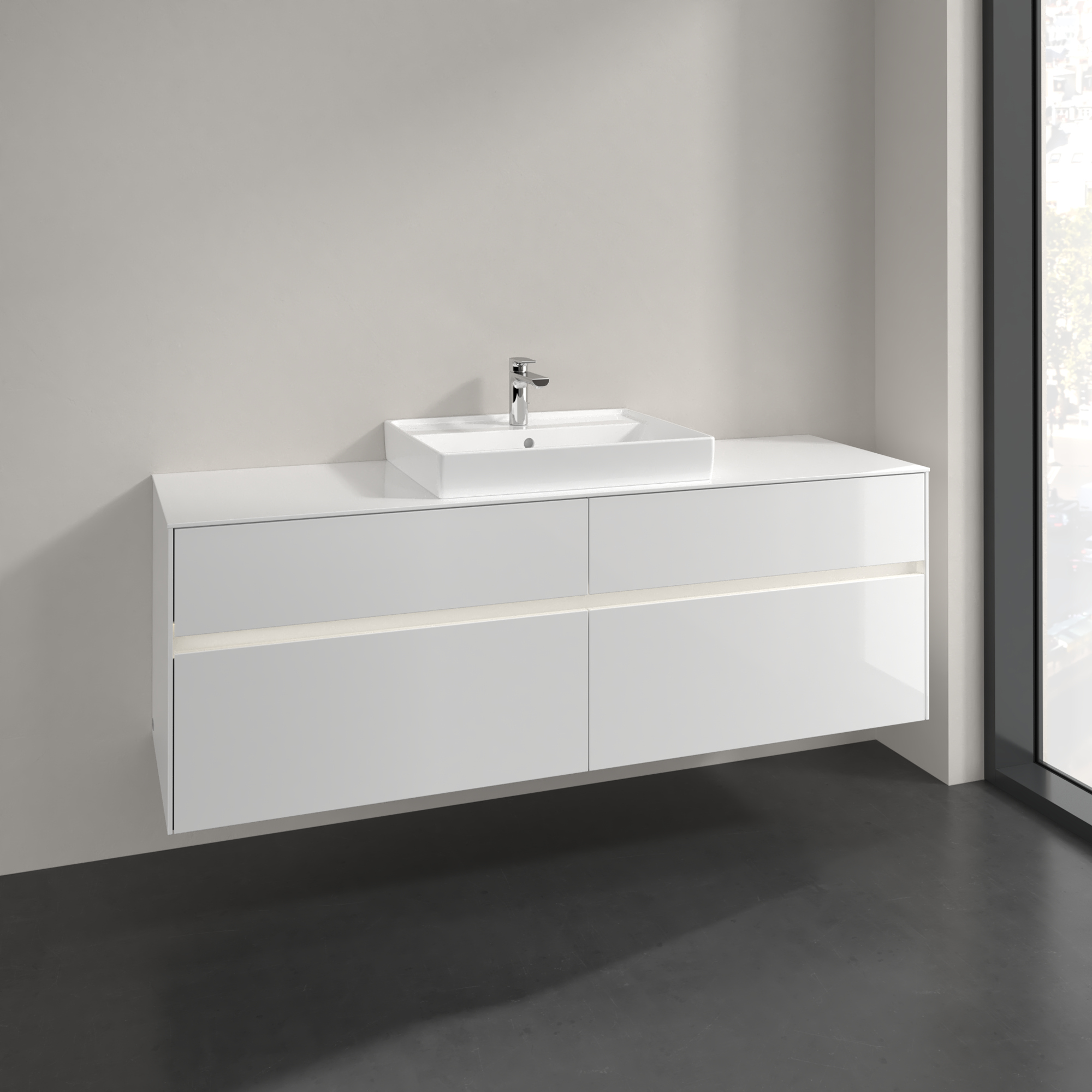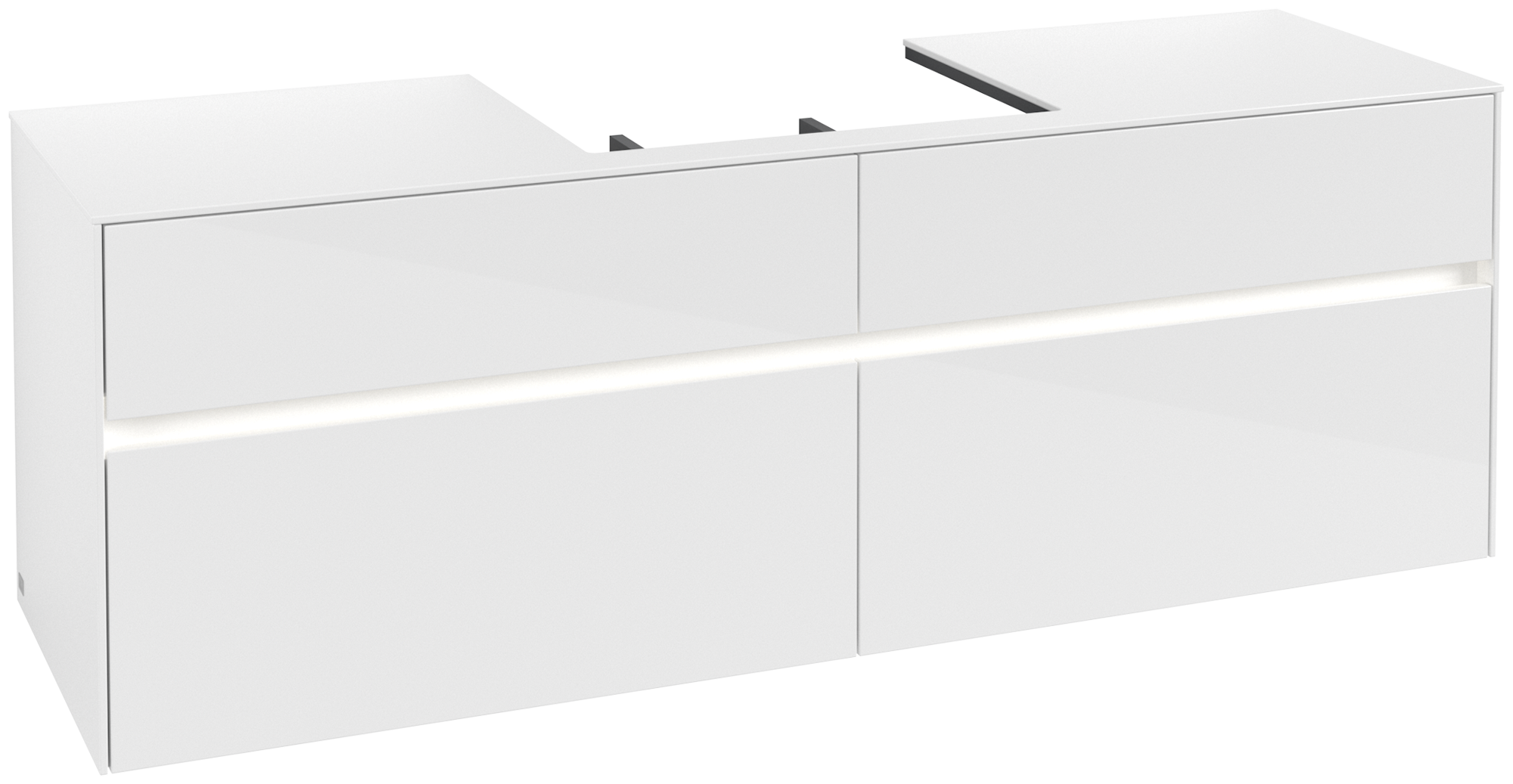 Collaro Meuble sous plan, avec éclairage, 4 tiroirs sur rails, 1600x548x500mm, Caisson: Glossy White, Façade: Glossy White