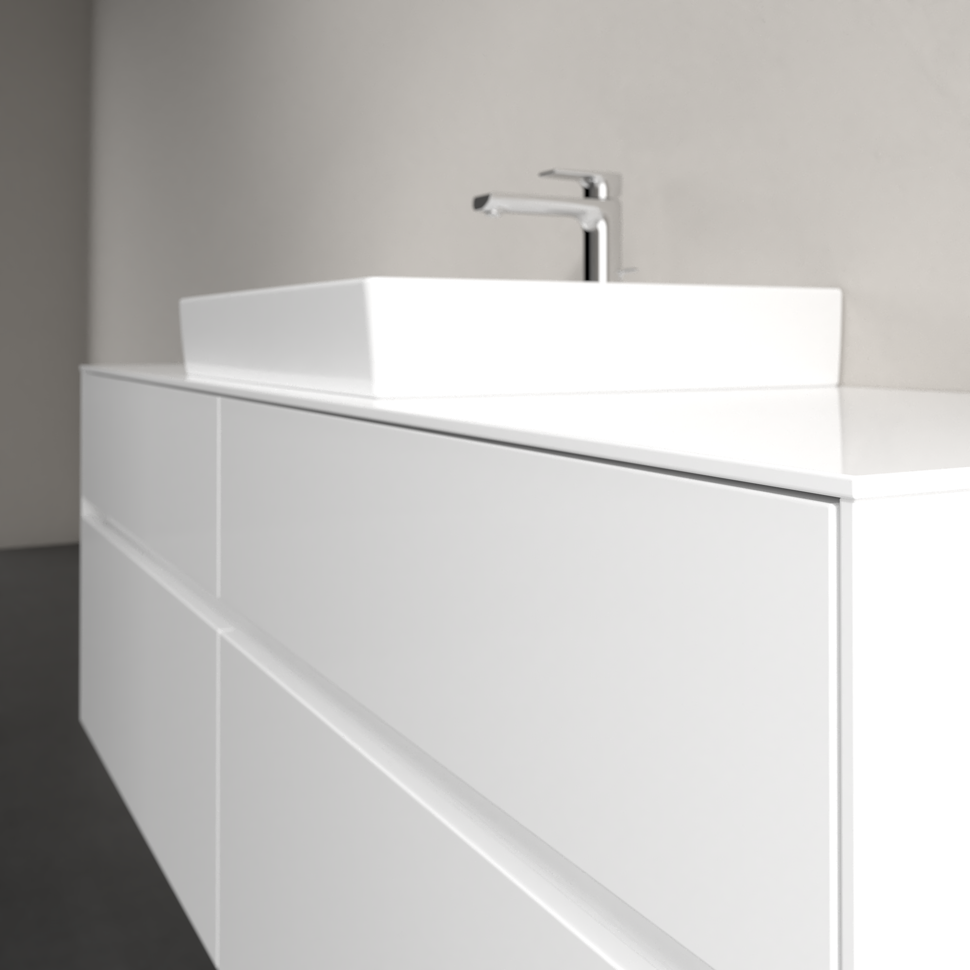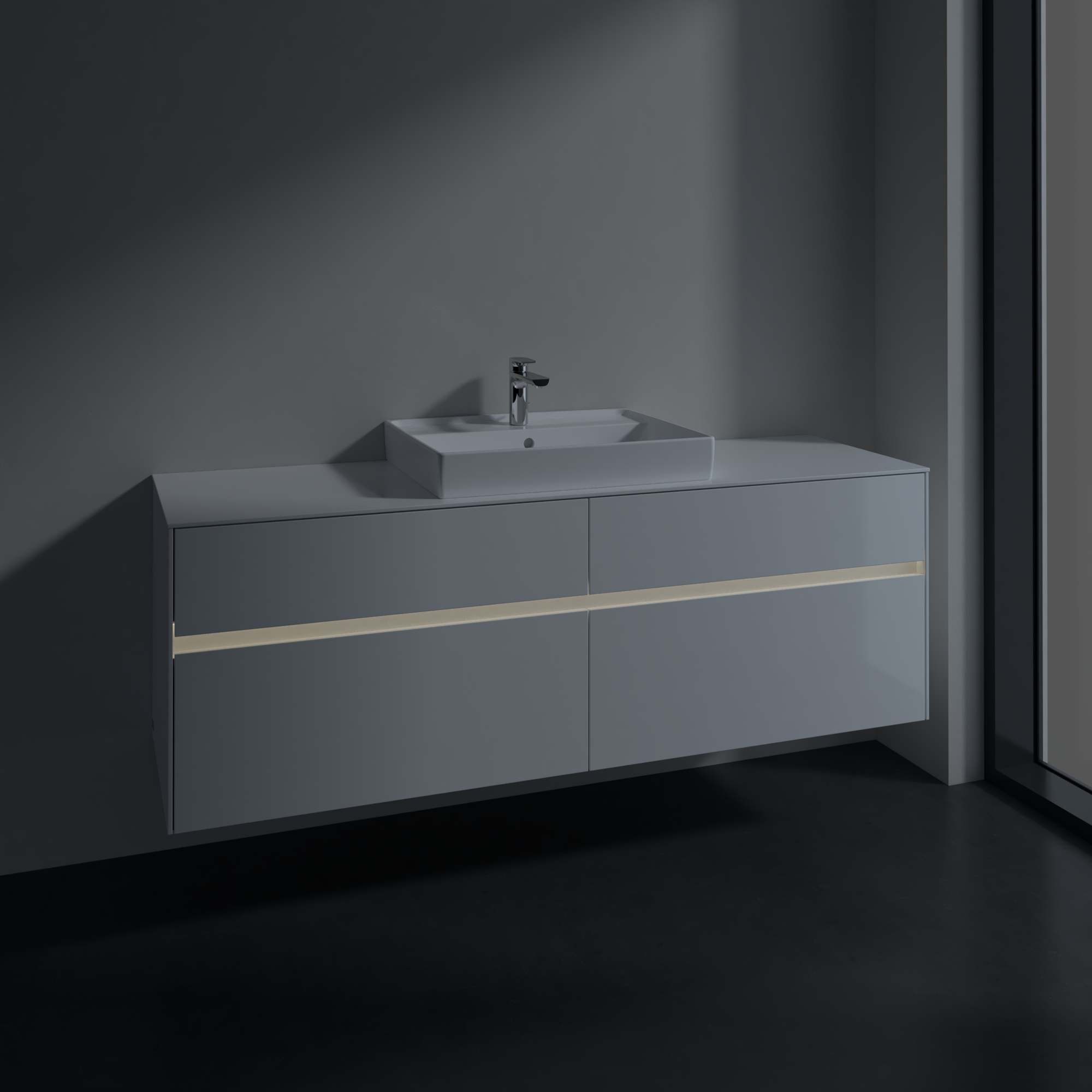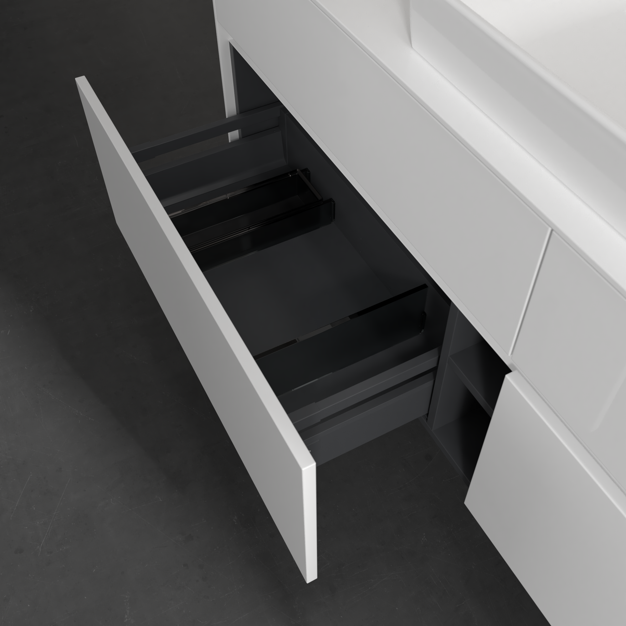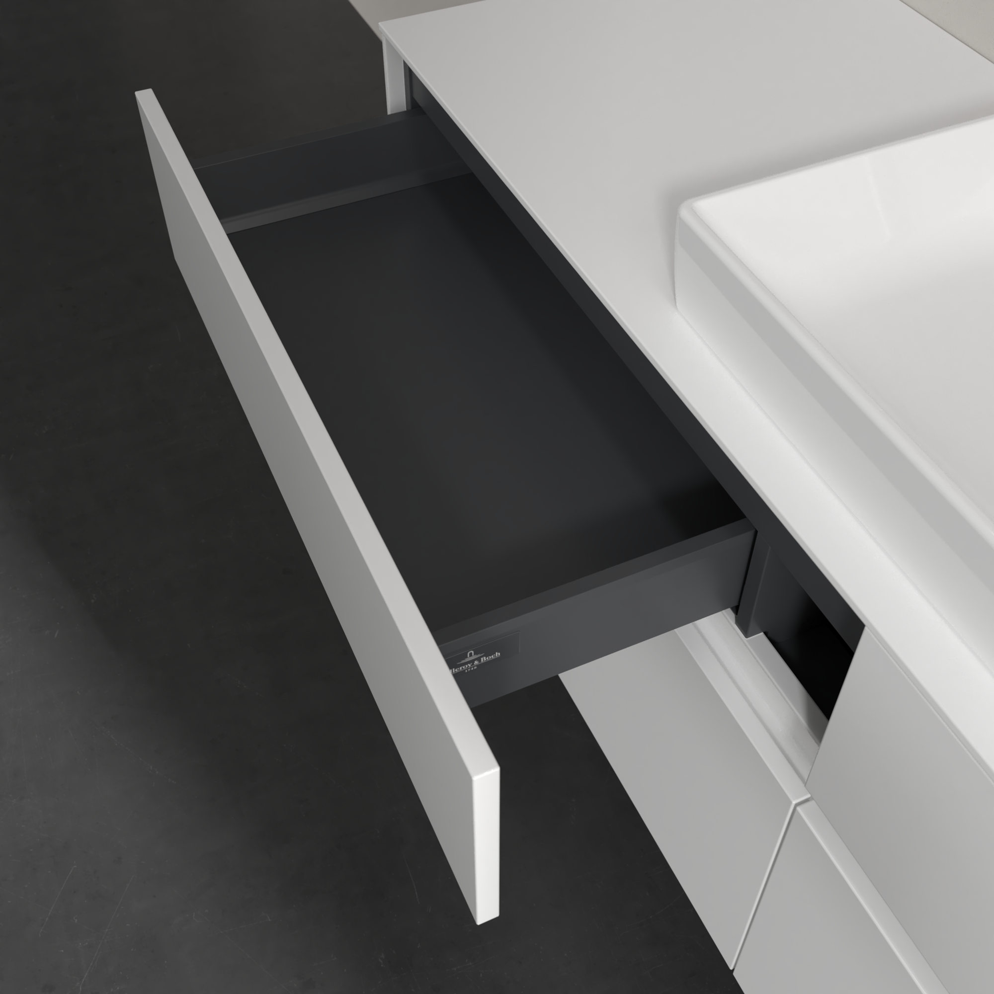 Collaro Meuble sous plan, avec éclairage, 4 tiroirs sur rails, 1600x548x500mm, Caisson: Glossy White, Façade: Glossy White