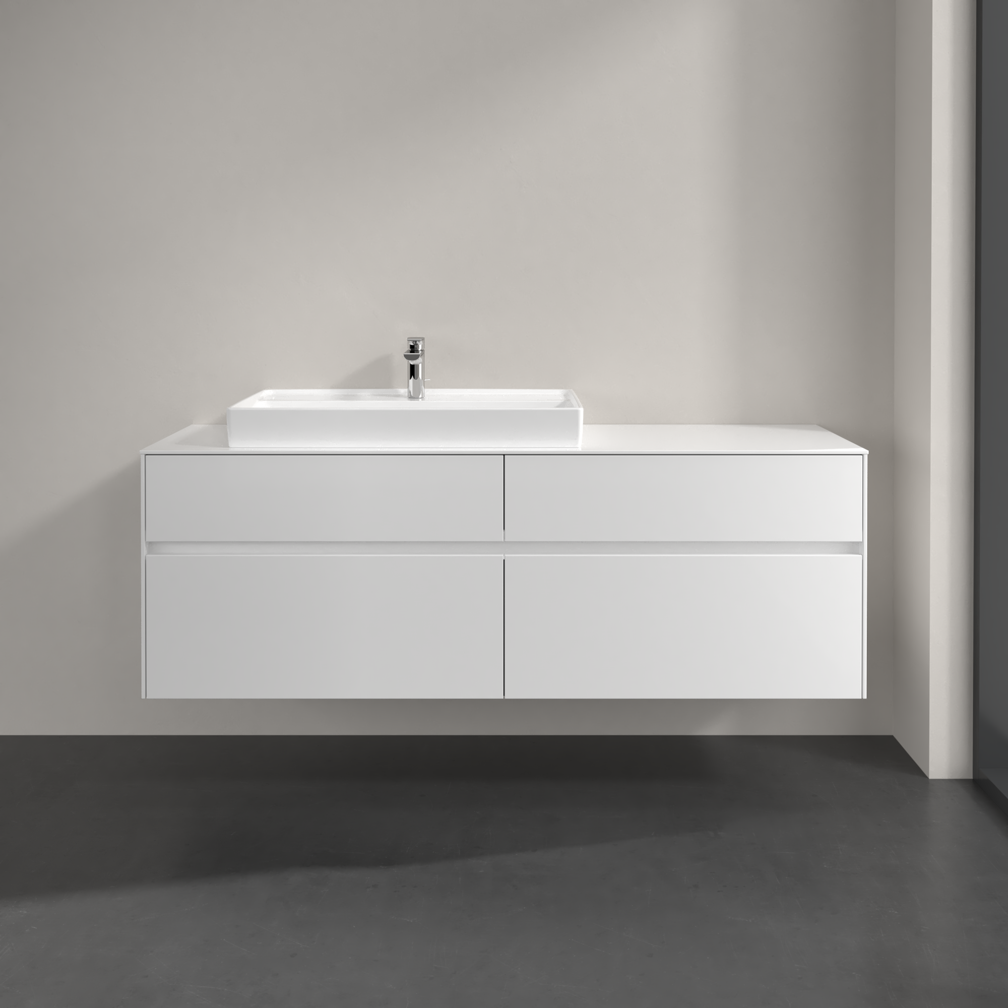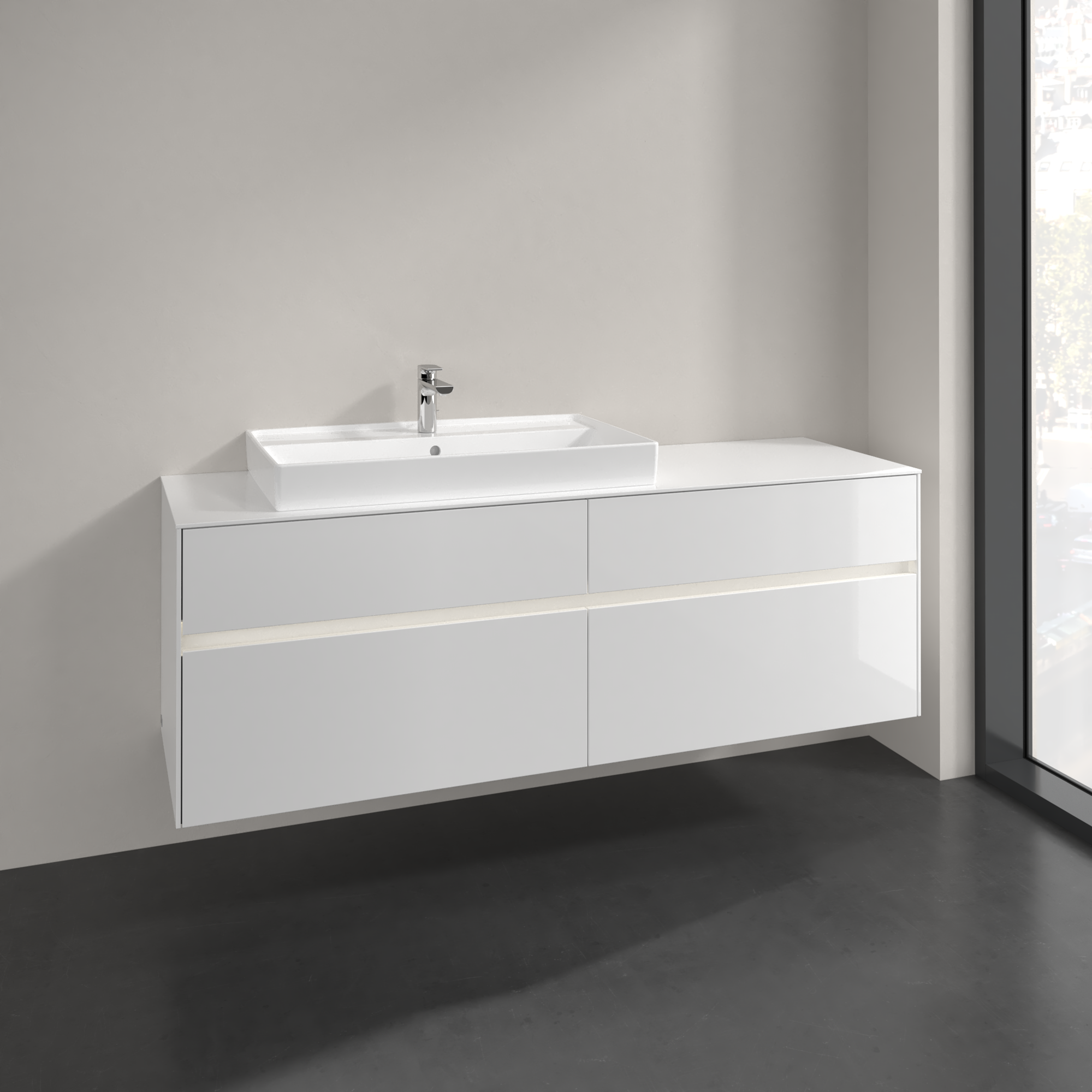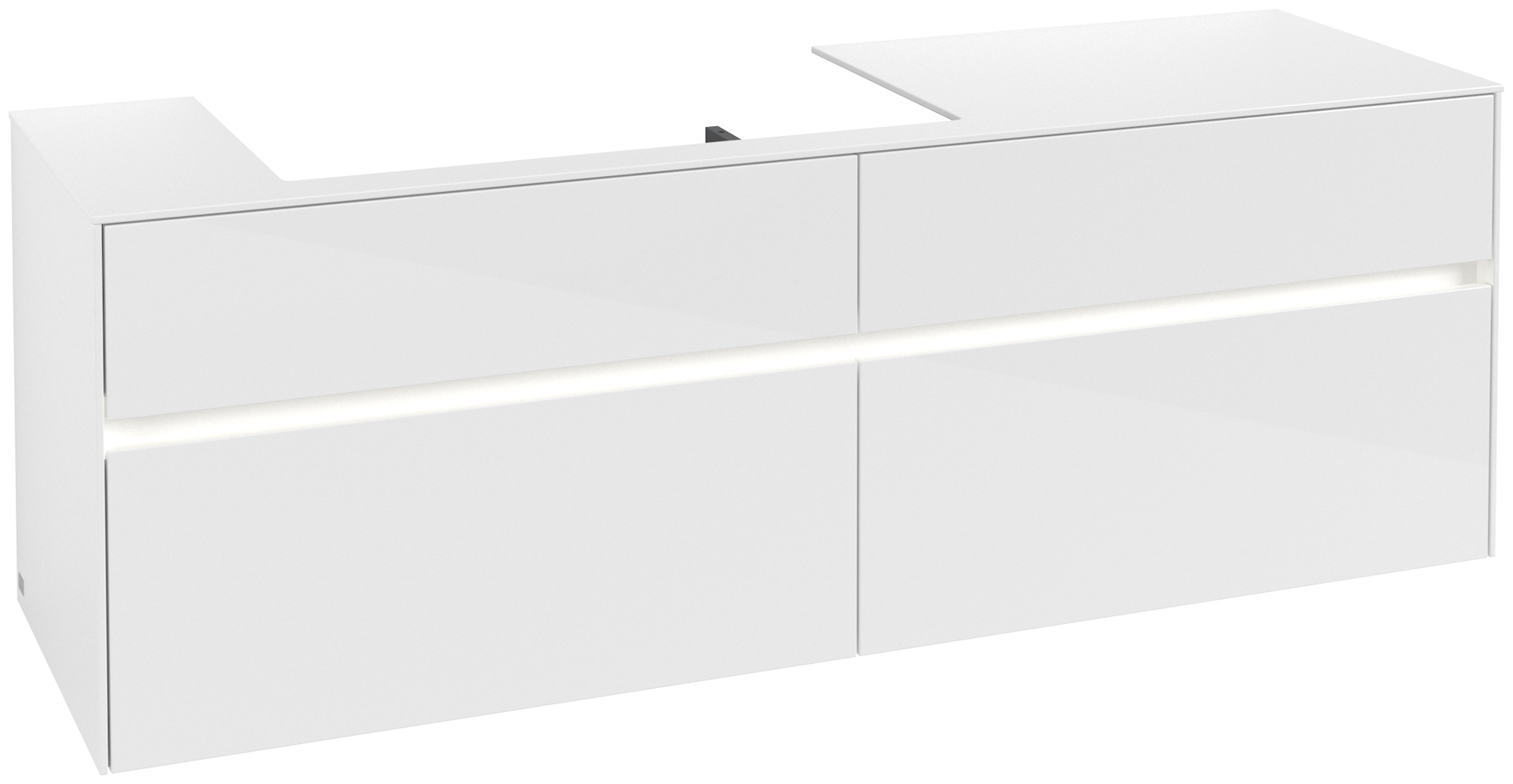 Collaro Meuble sous plan, avec éclairage, 4 tiroirs sur rails, 1600x548x500mm, Caisson: Glossy White, Façade: Glossy White
