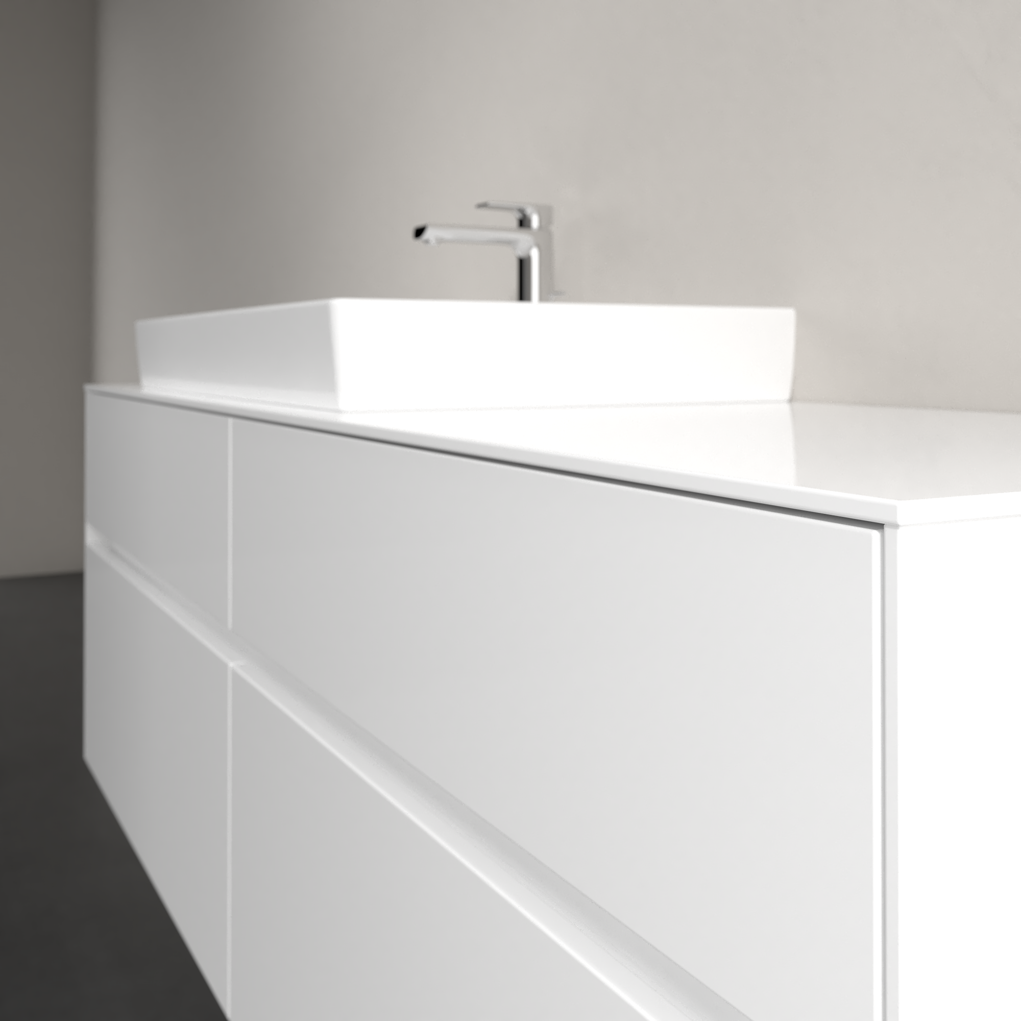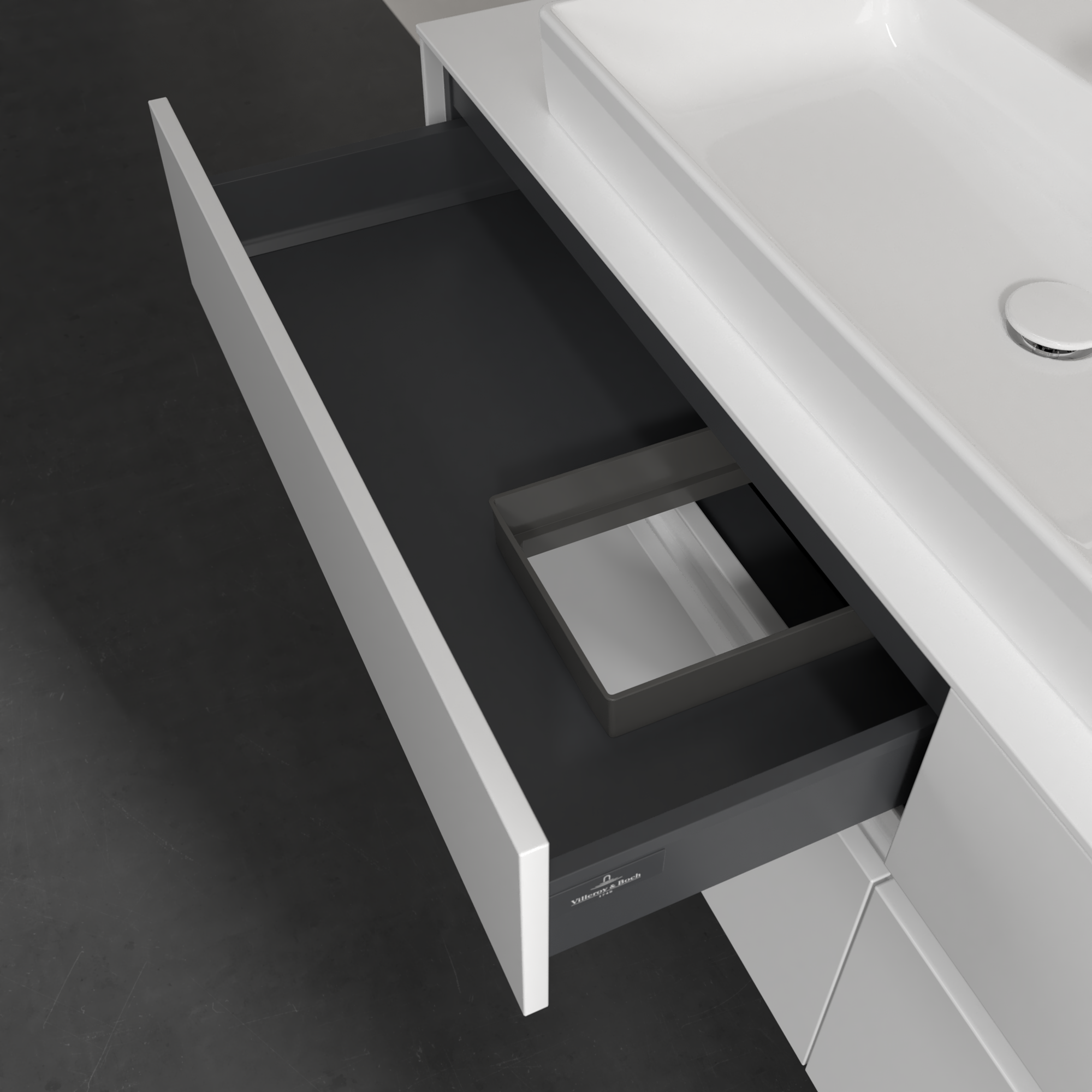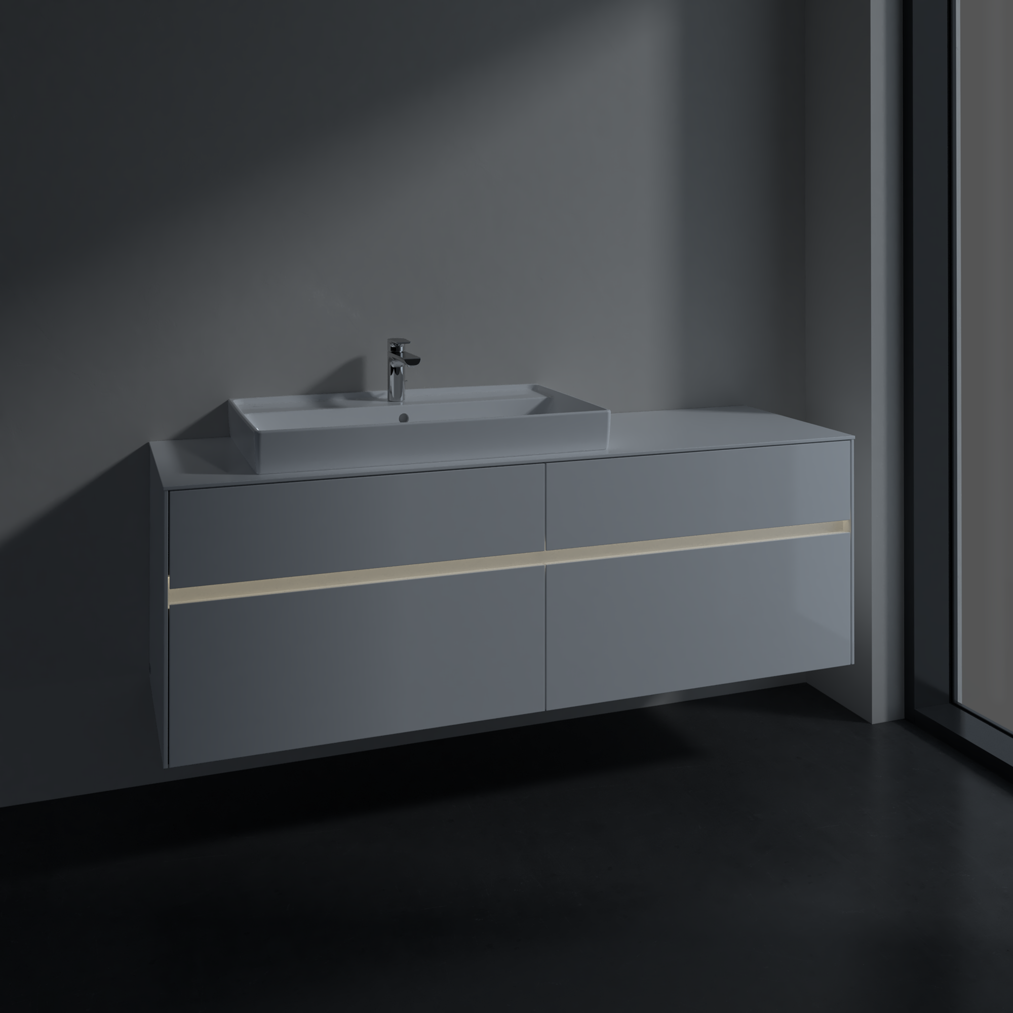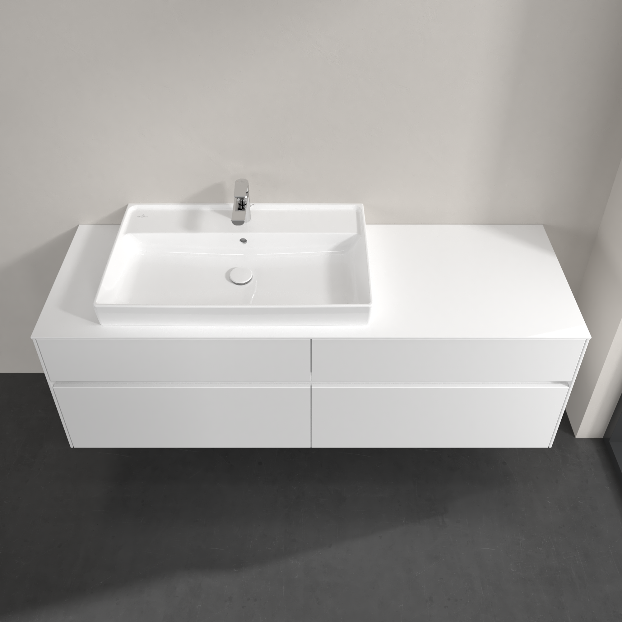 Collaro Meuble sous plan, avec éclairage, 4 tiroirs sur rails, 1600x548x500mm, Caisson: Glossy White, Façade: Glossy White