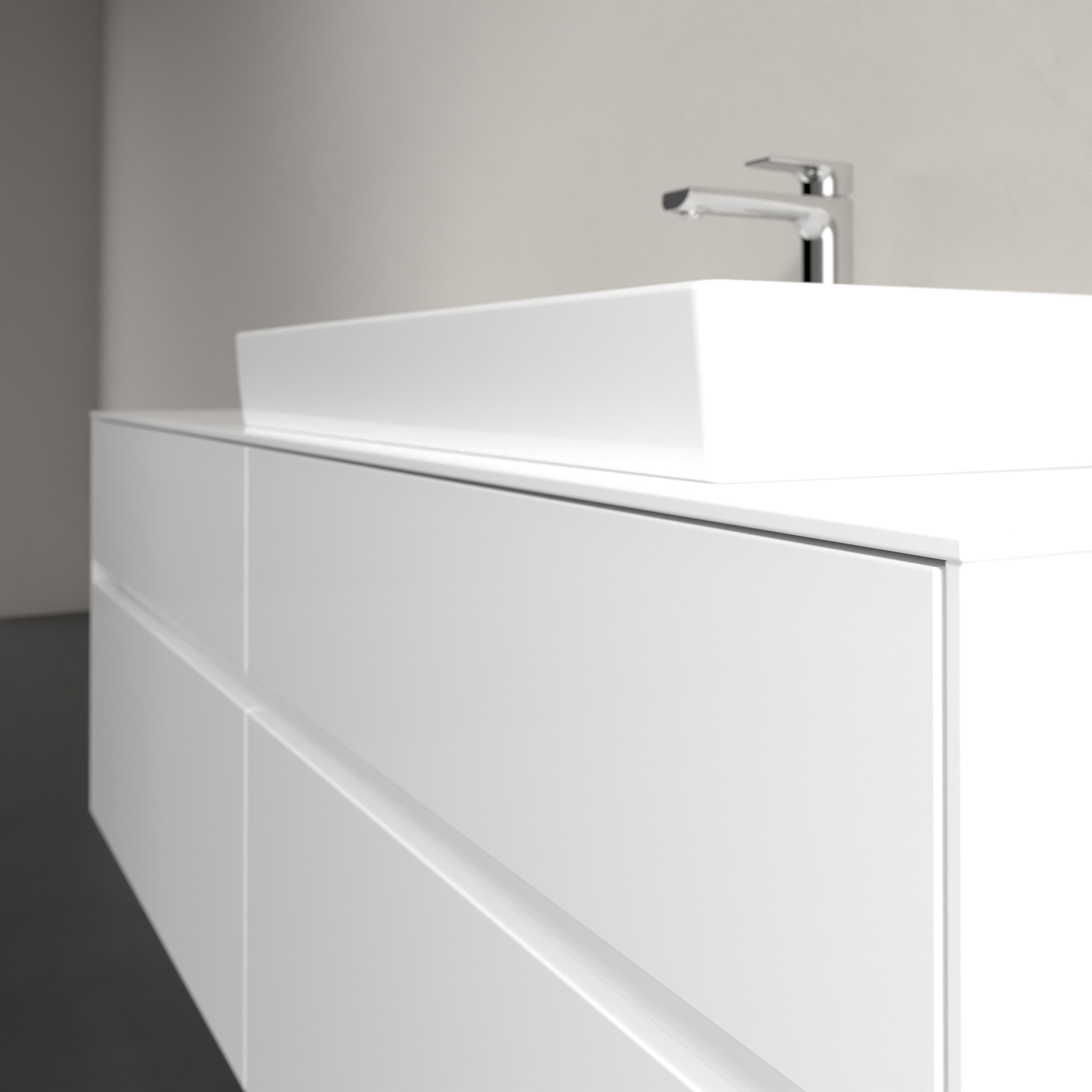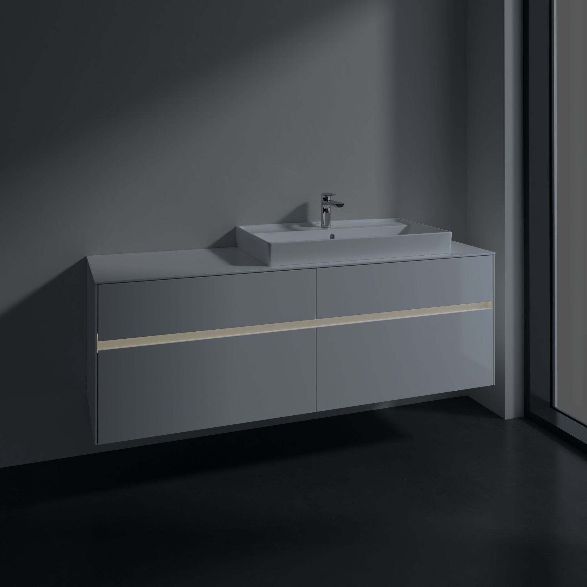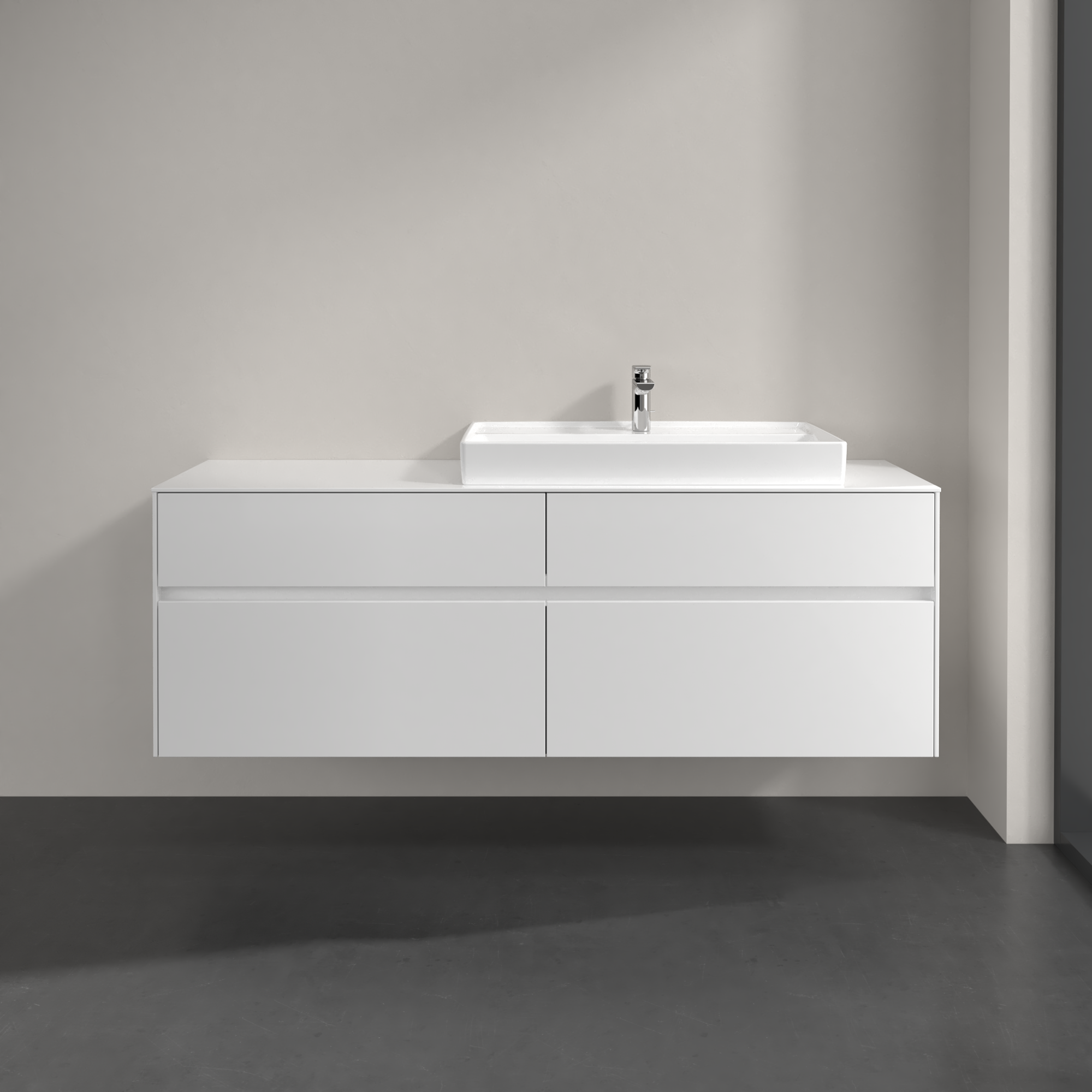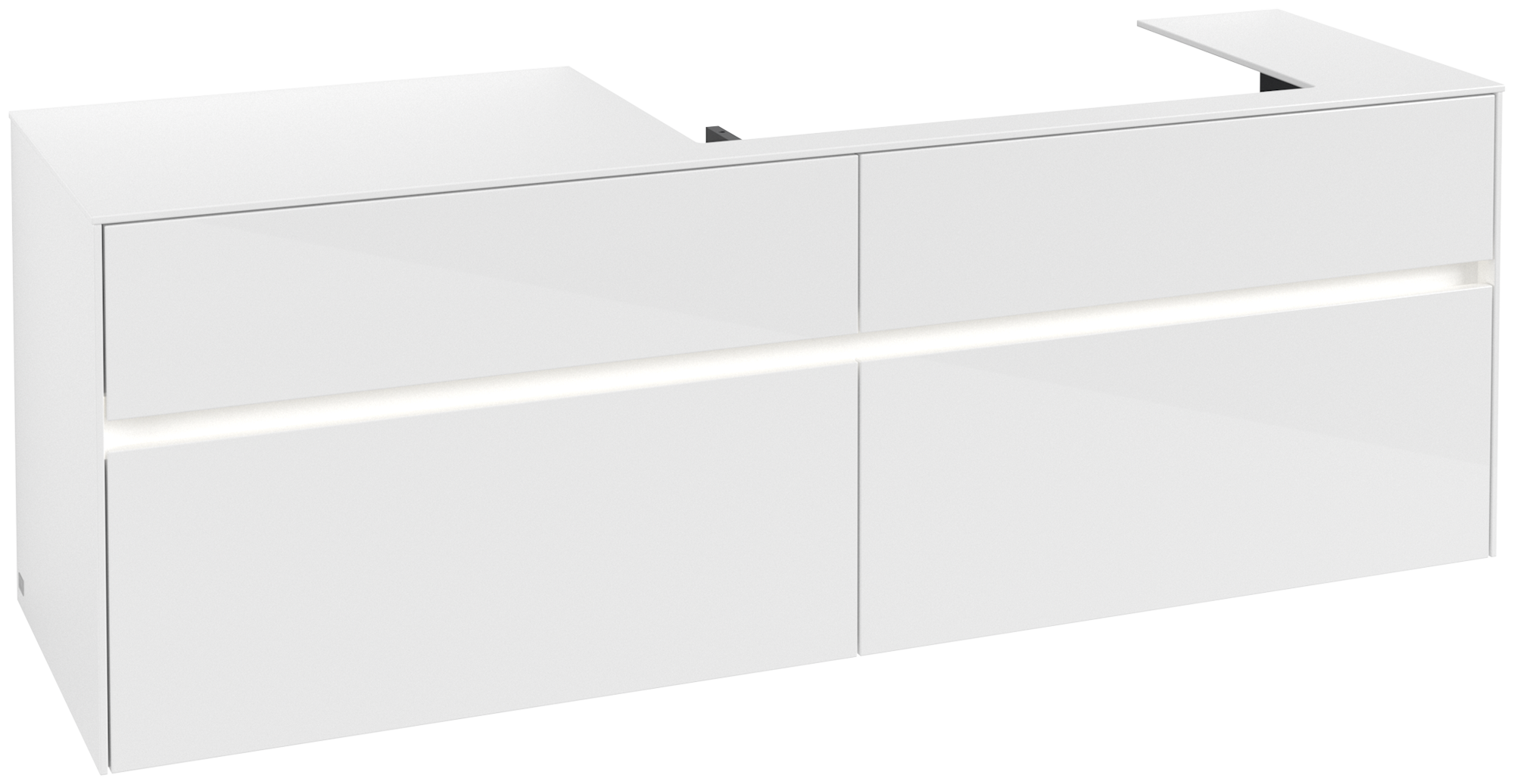 Collaro Meuble sous plan, avec éclairage, 4 tiroirs sur rails, 1600x548x500mm, Caisson: Glossy White, Façade: Glossy White