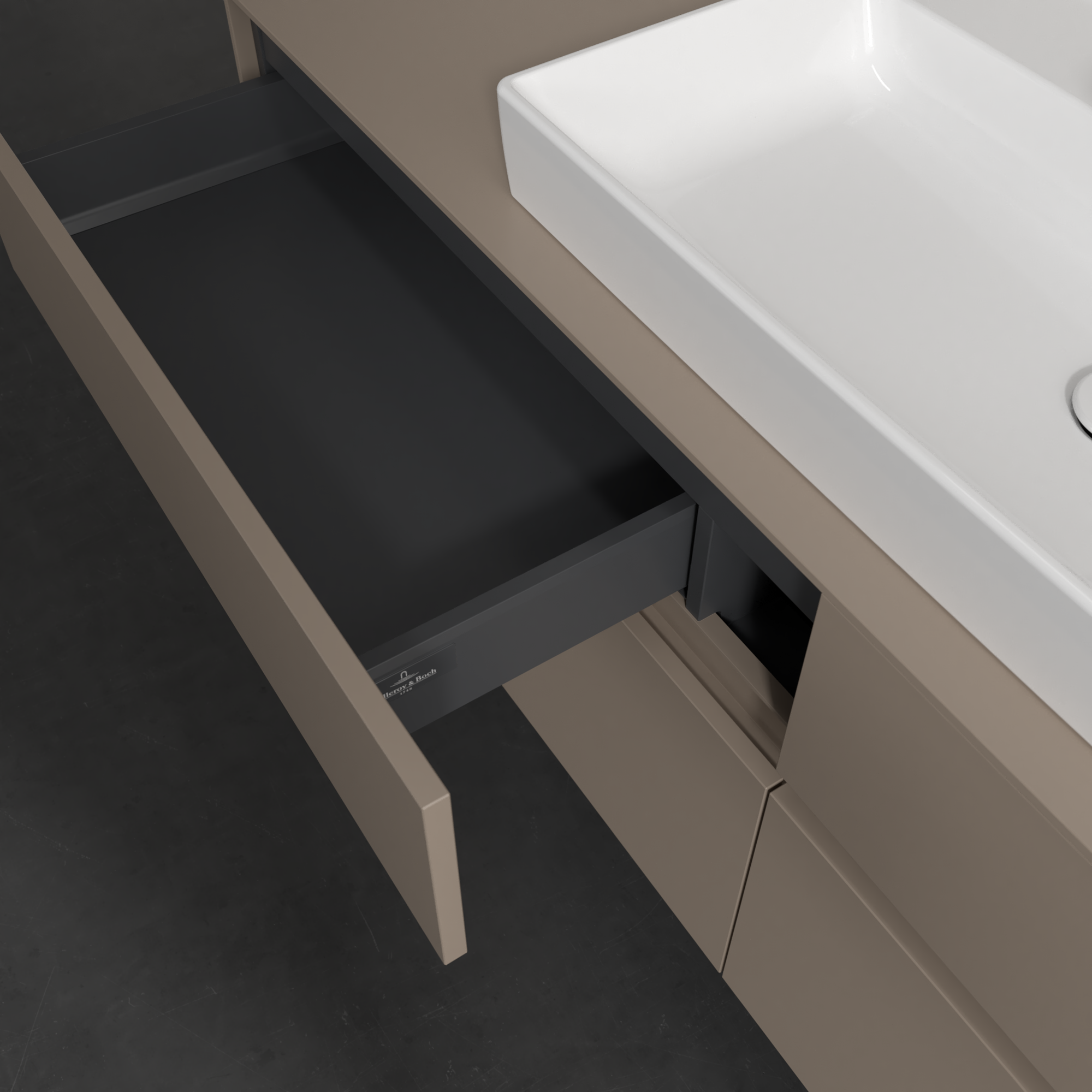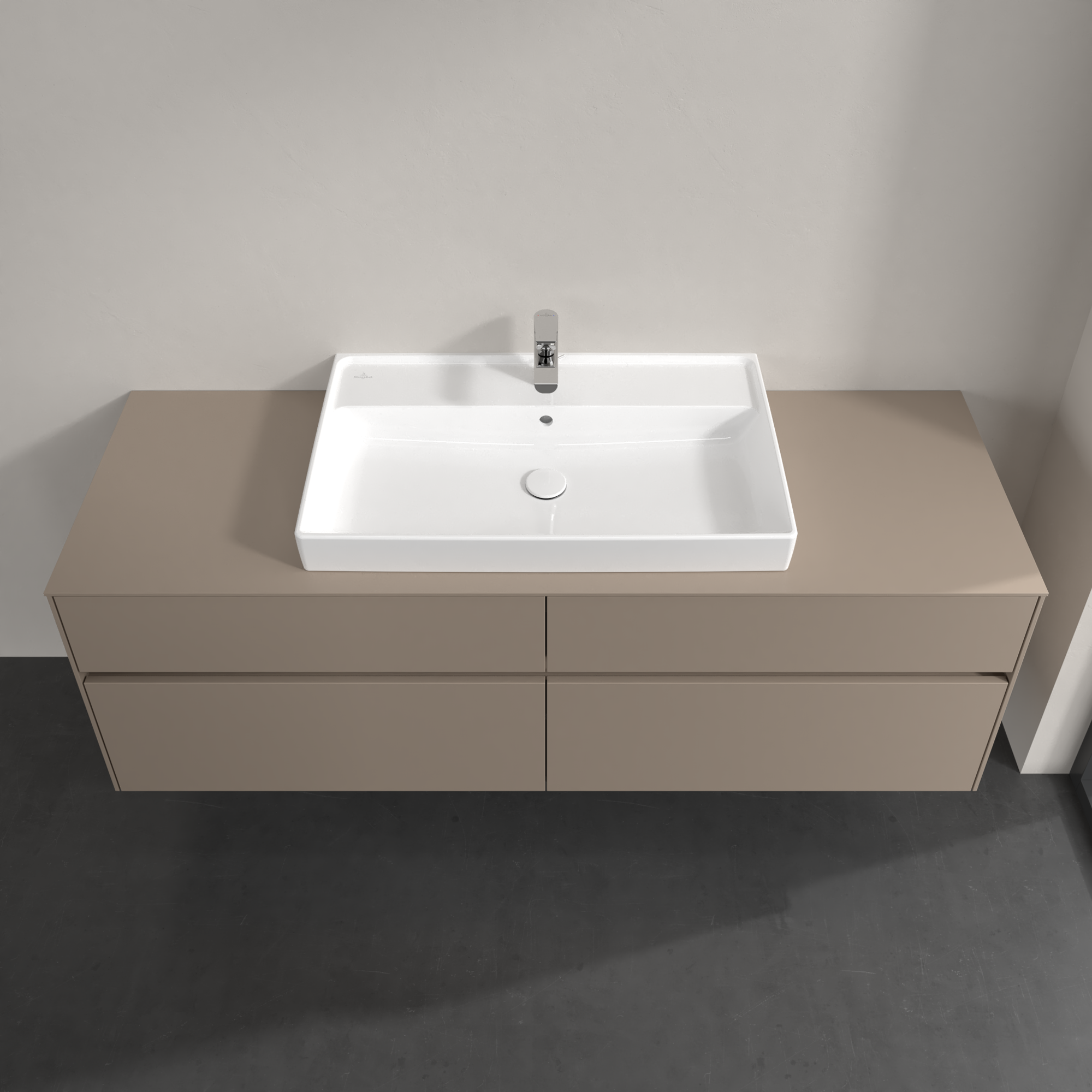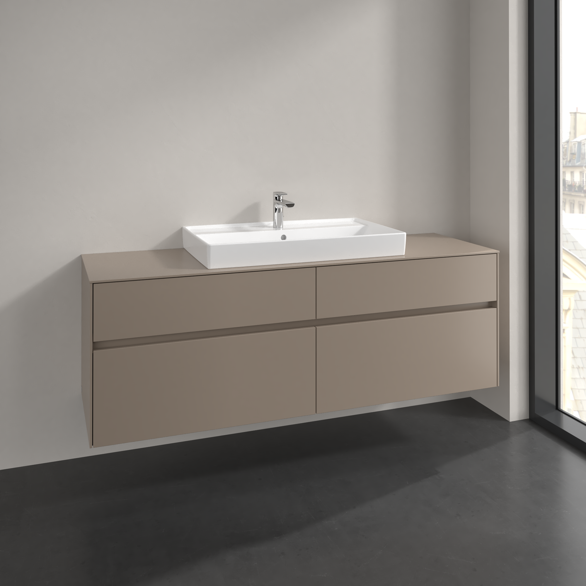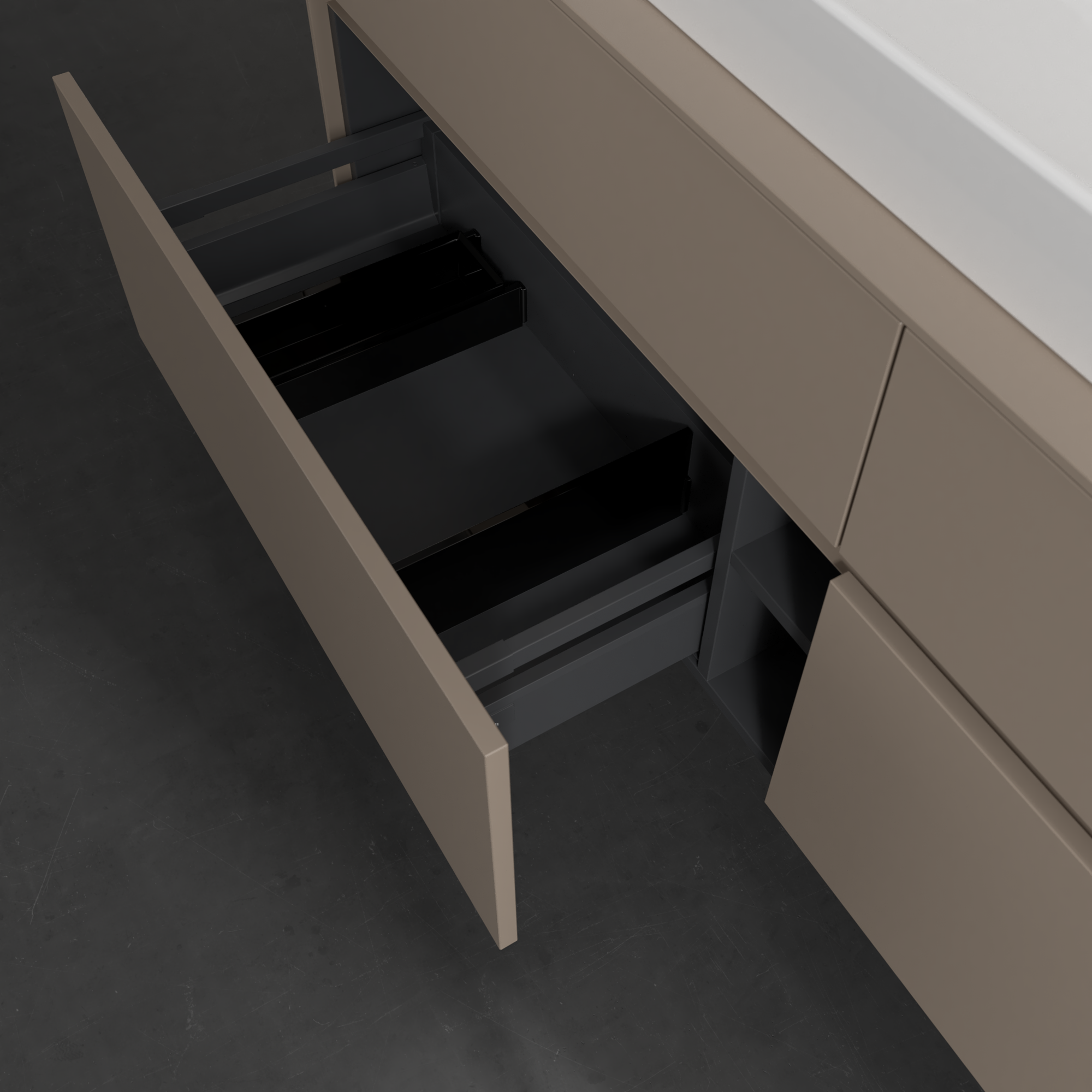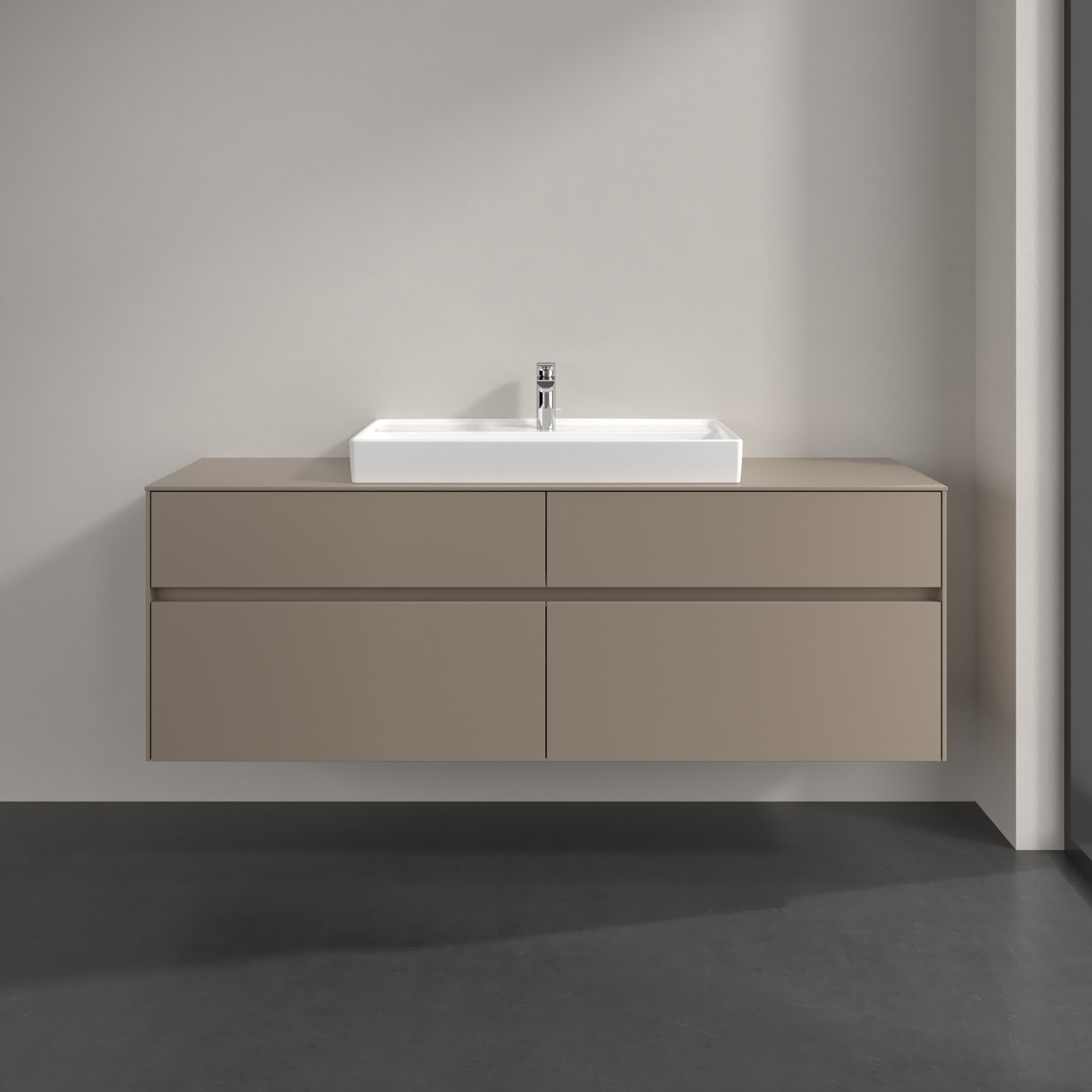 Collaro Meuble sous plan, 4 tiroirs sur rails, 1600x548x500mm, Caisson: Taupe, Façade: Taupe