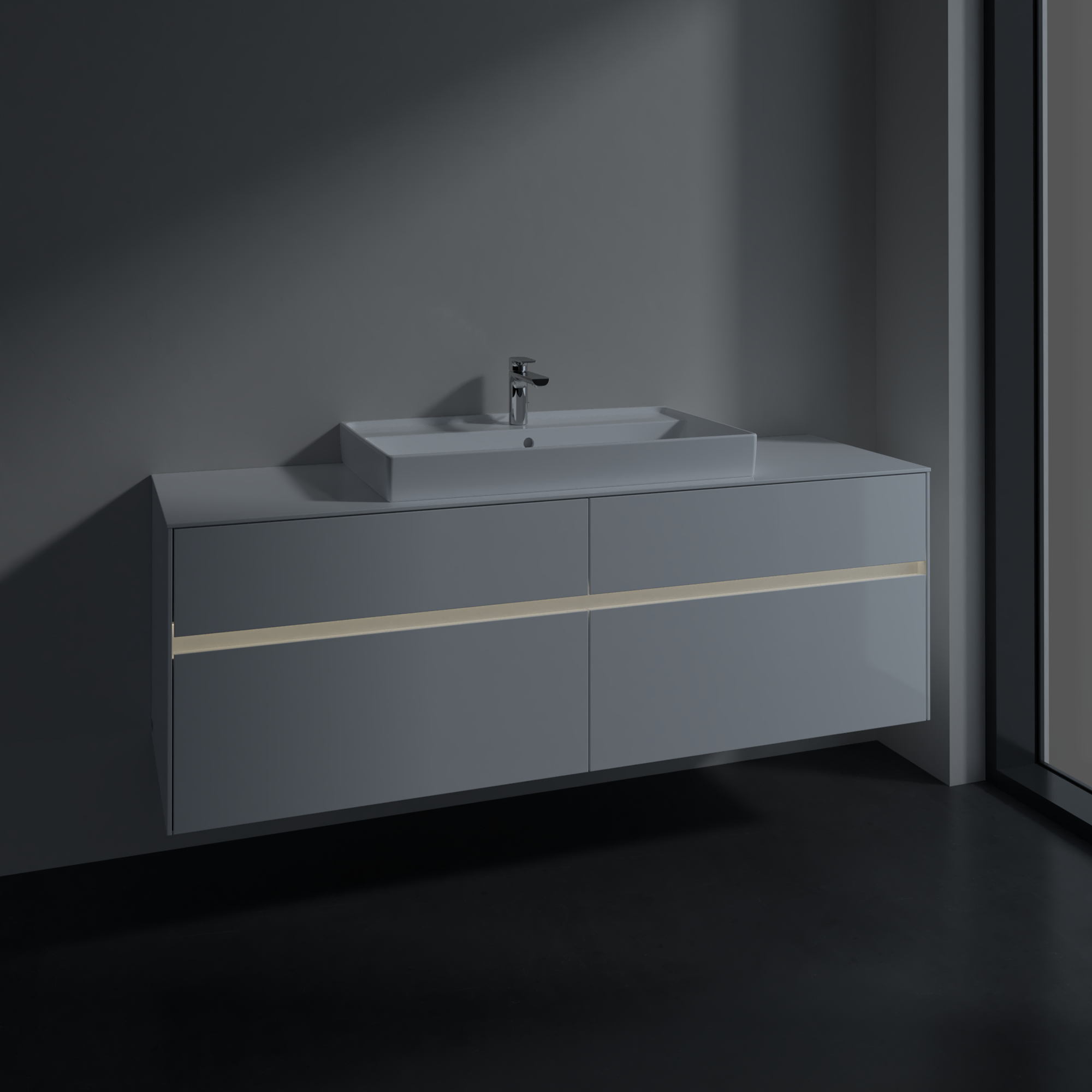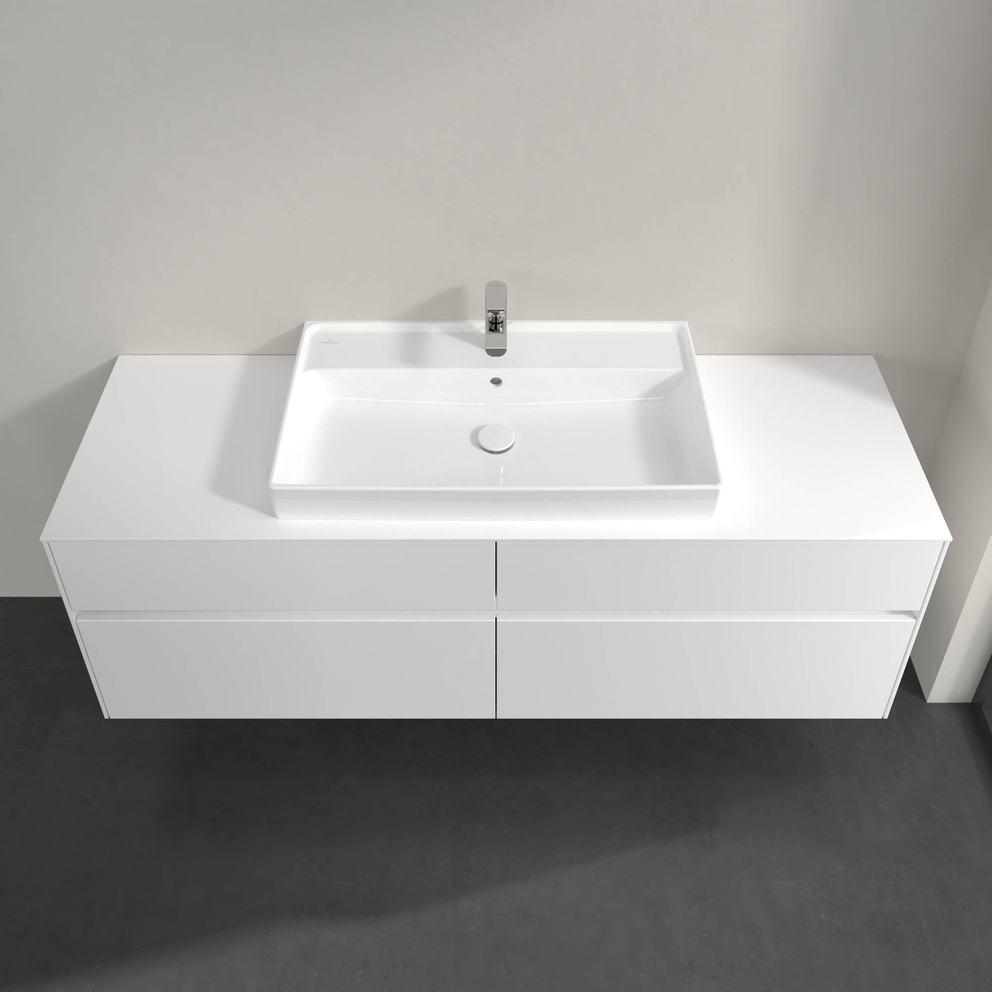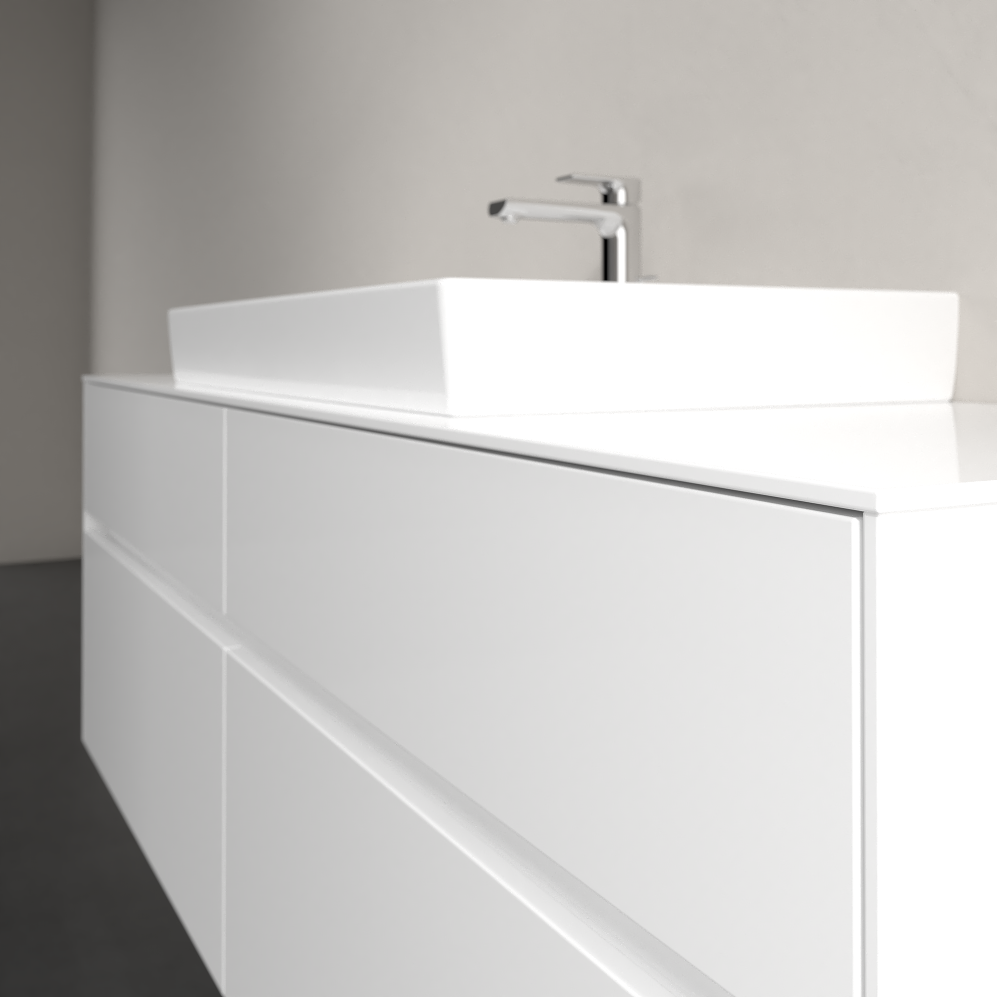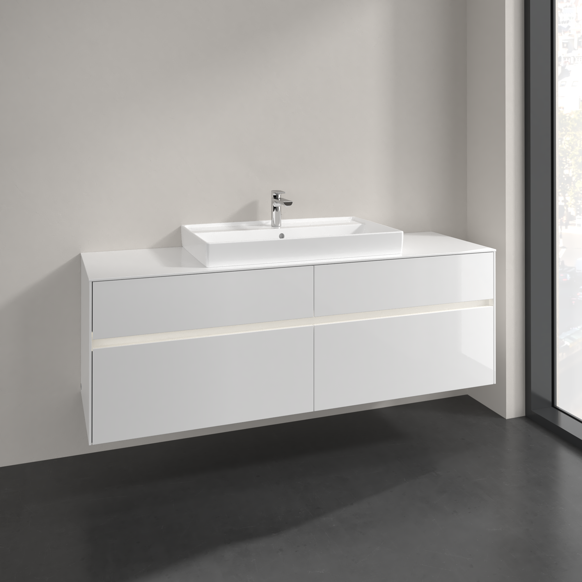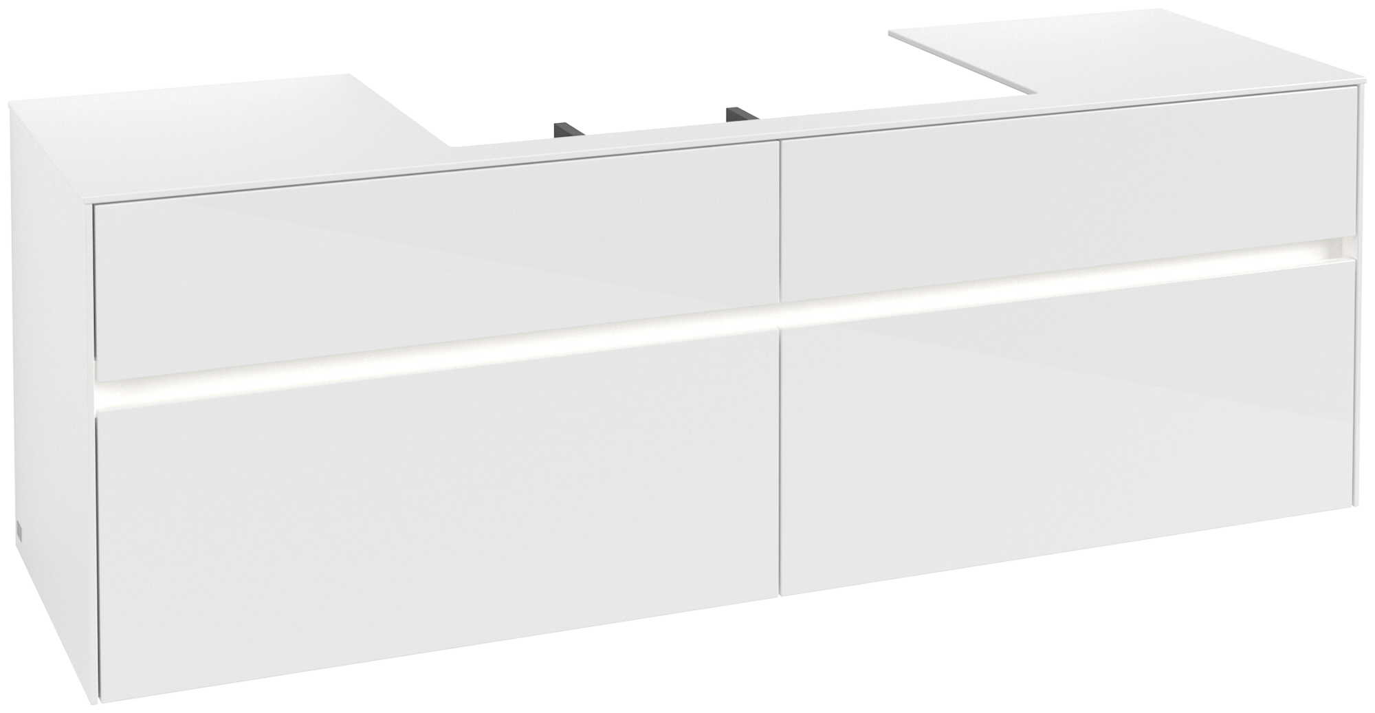 Collaro Meuble sous plan, avec éclairage, 4 tiroirs sur rails, 1600x548x500mm, Caisson: Glossy White, Façade: Glossy White
