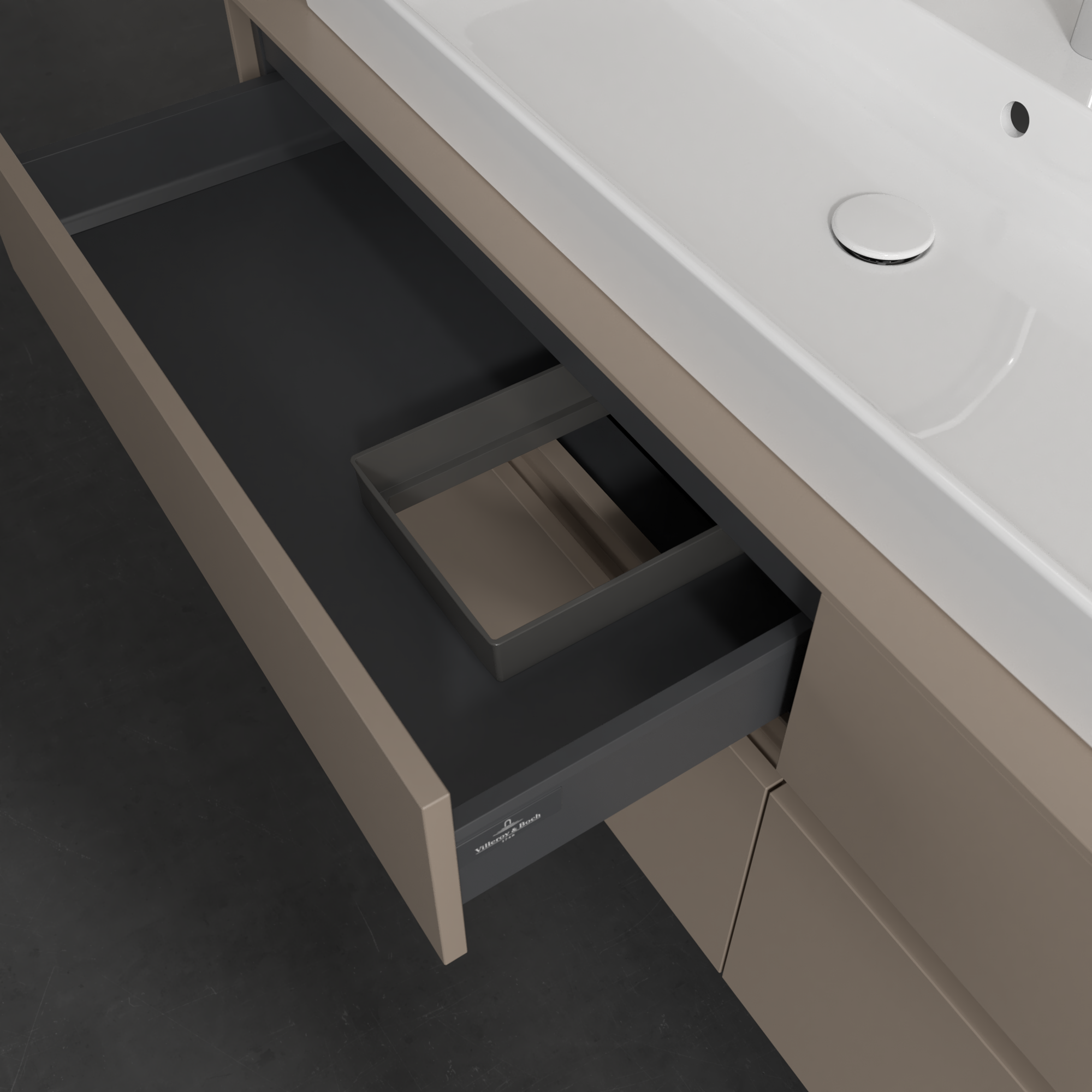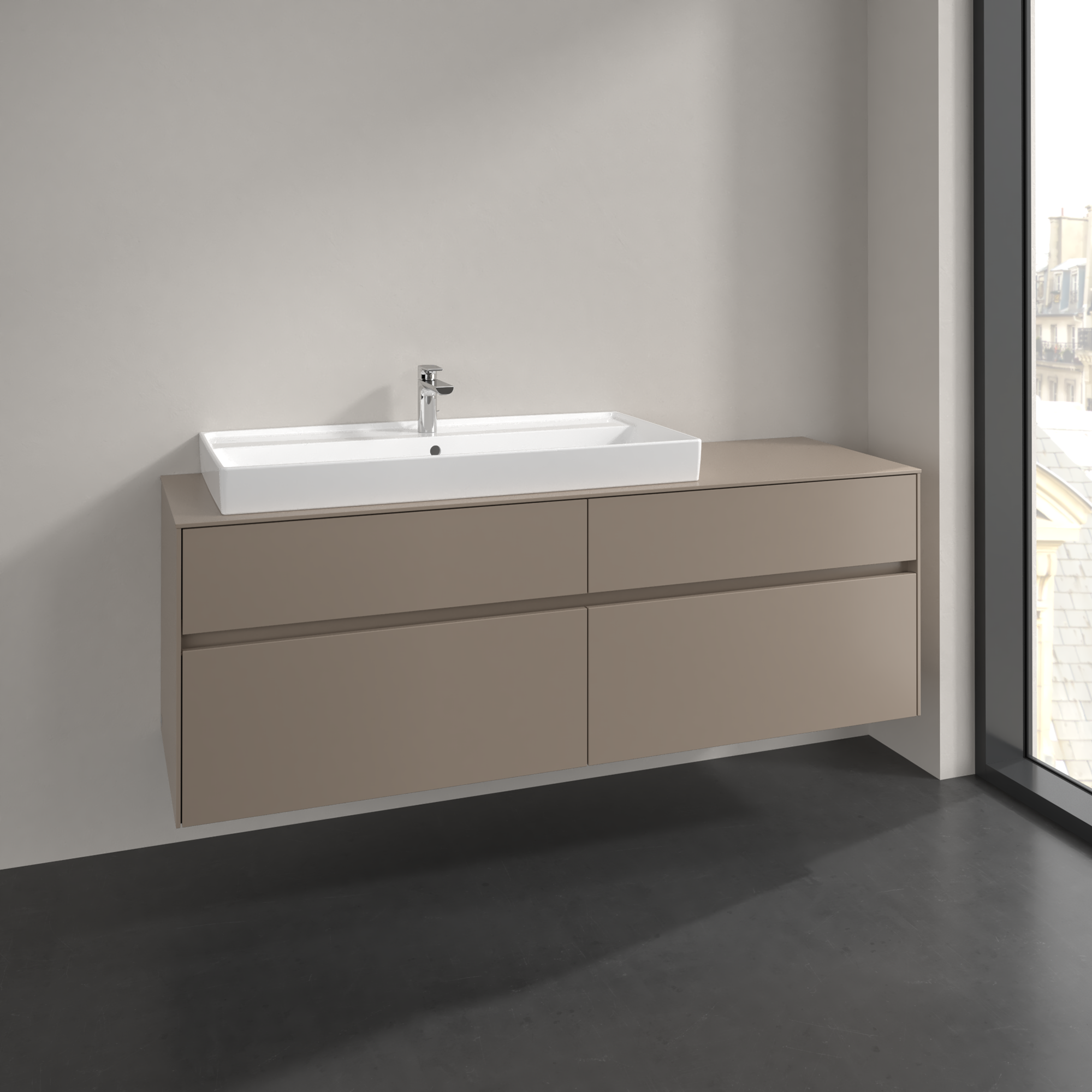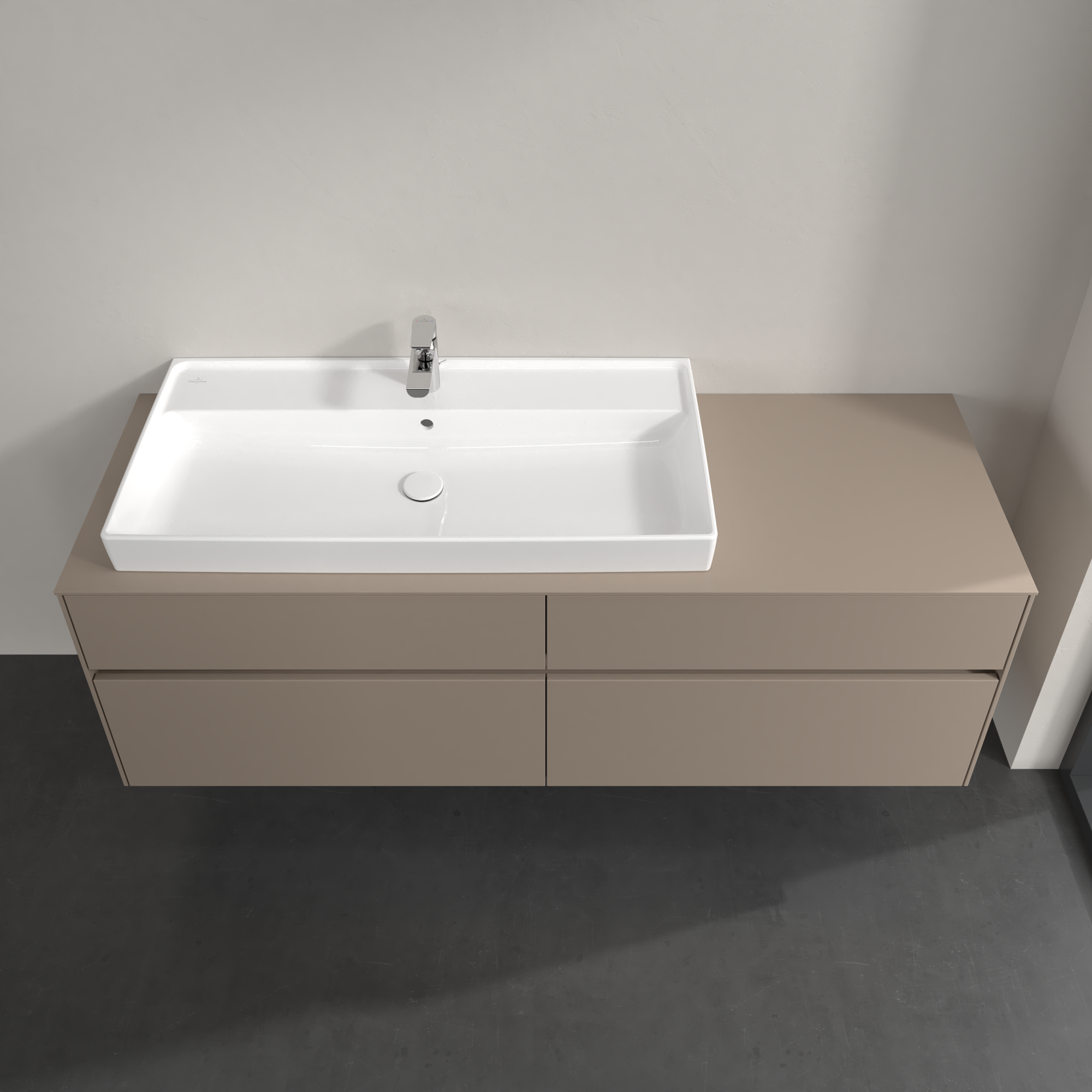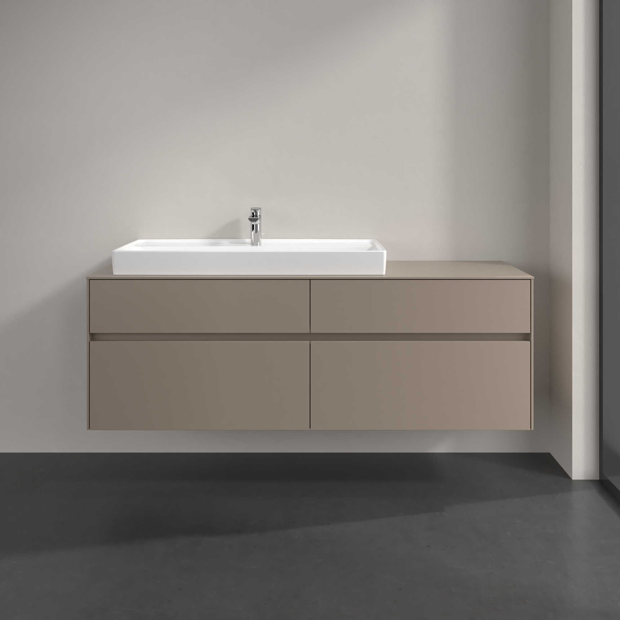 Collaro Meuble sous plan, 4 tiroirs sur rails, 1600x548x500mm, Caisson: Taupe, Façade: Taupe