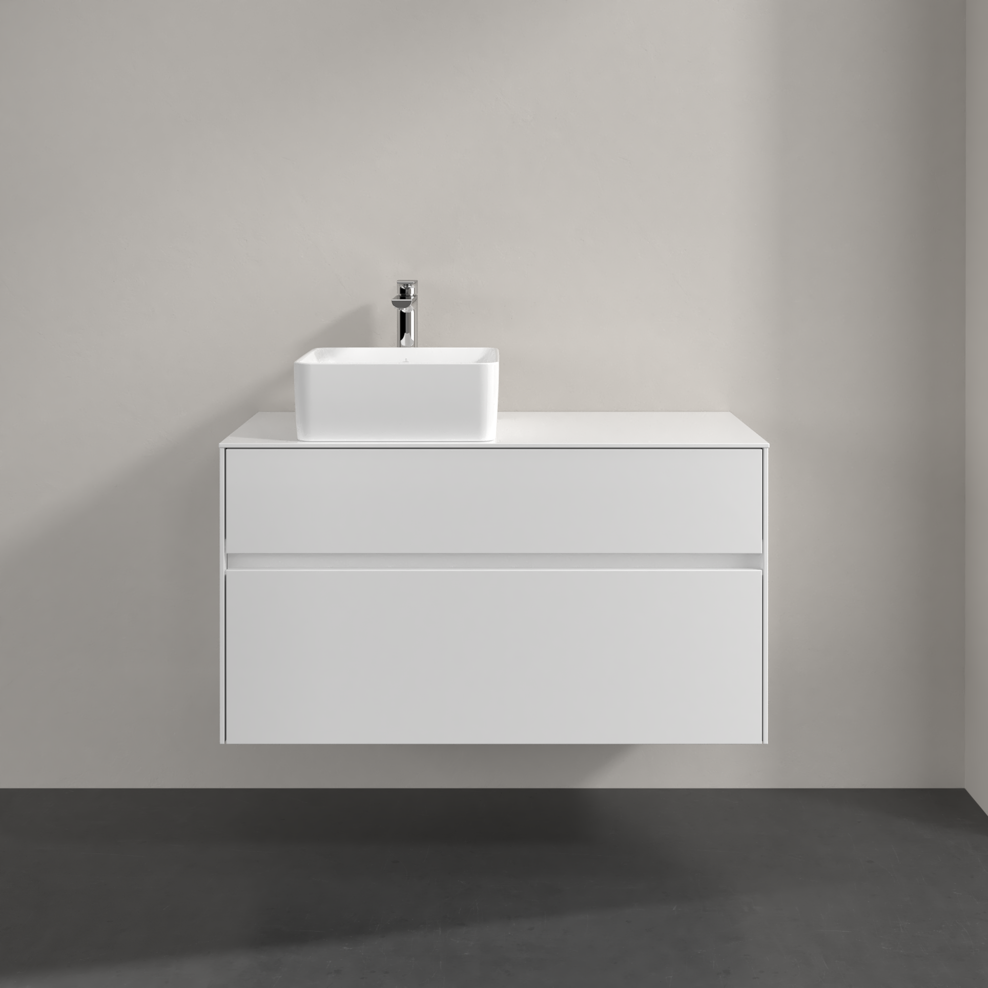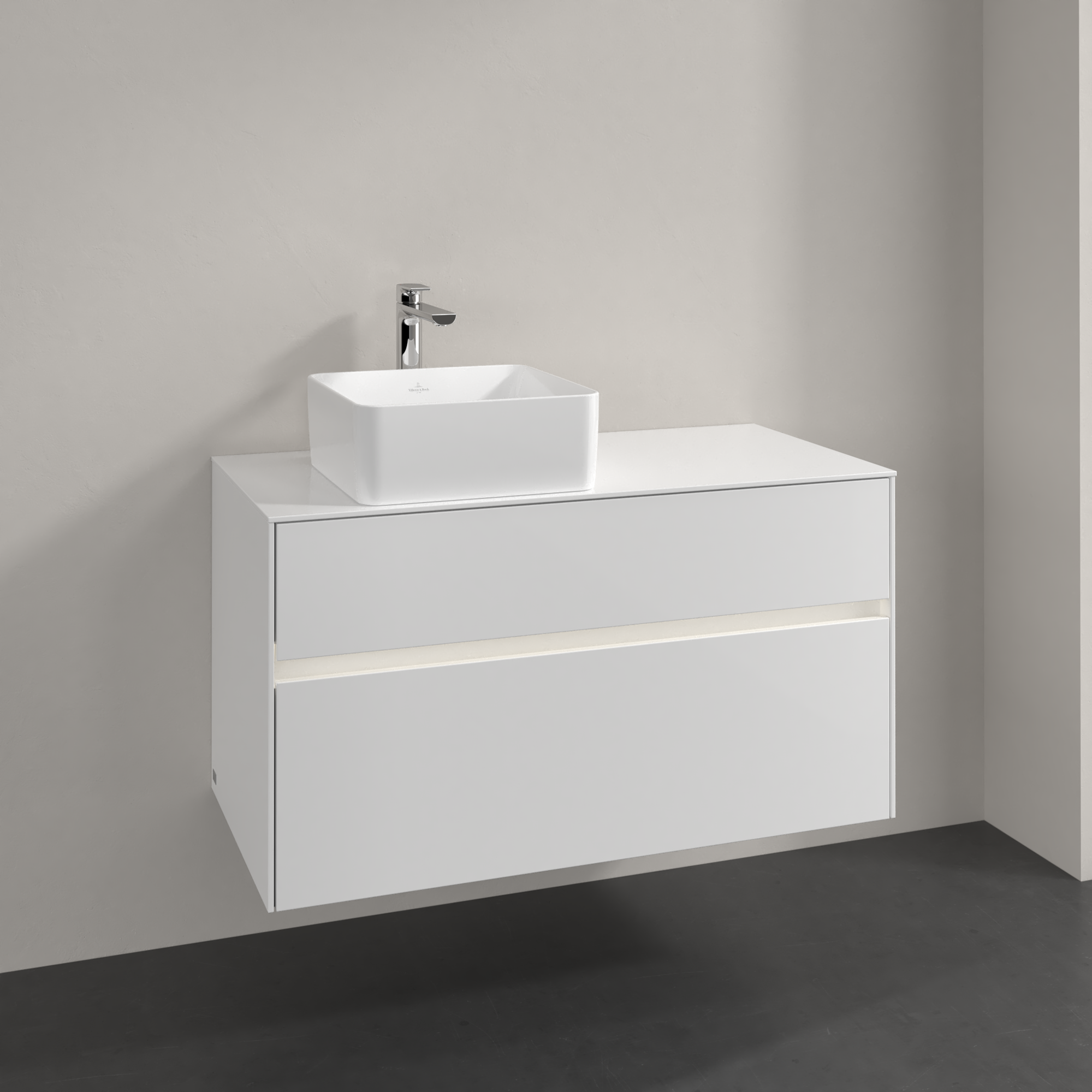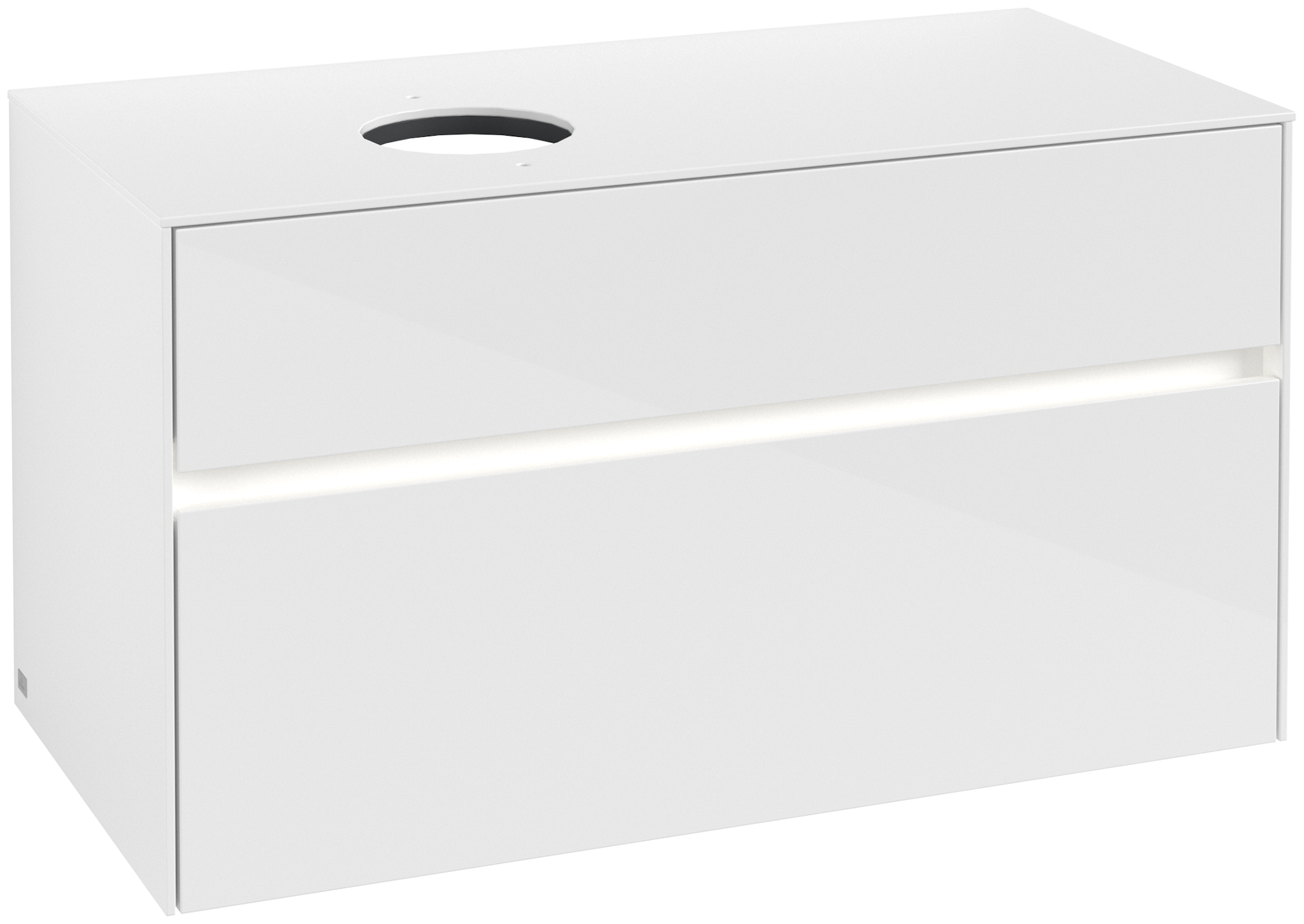 Collaro Meuble sous plan, avec éclairage, 2 tiroirs sur rails, 1000x548x500mm, Caisson: Glossy White, Façade: Glossy White