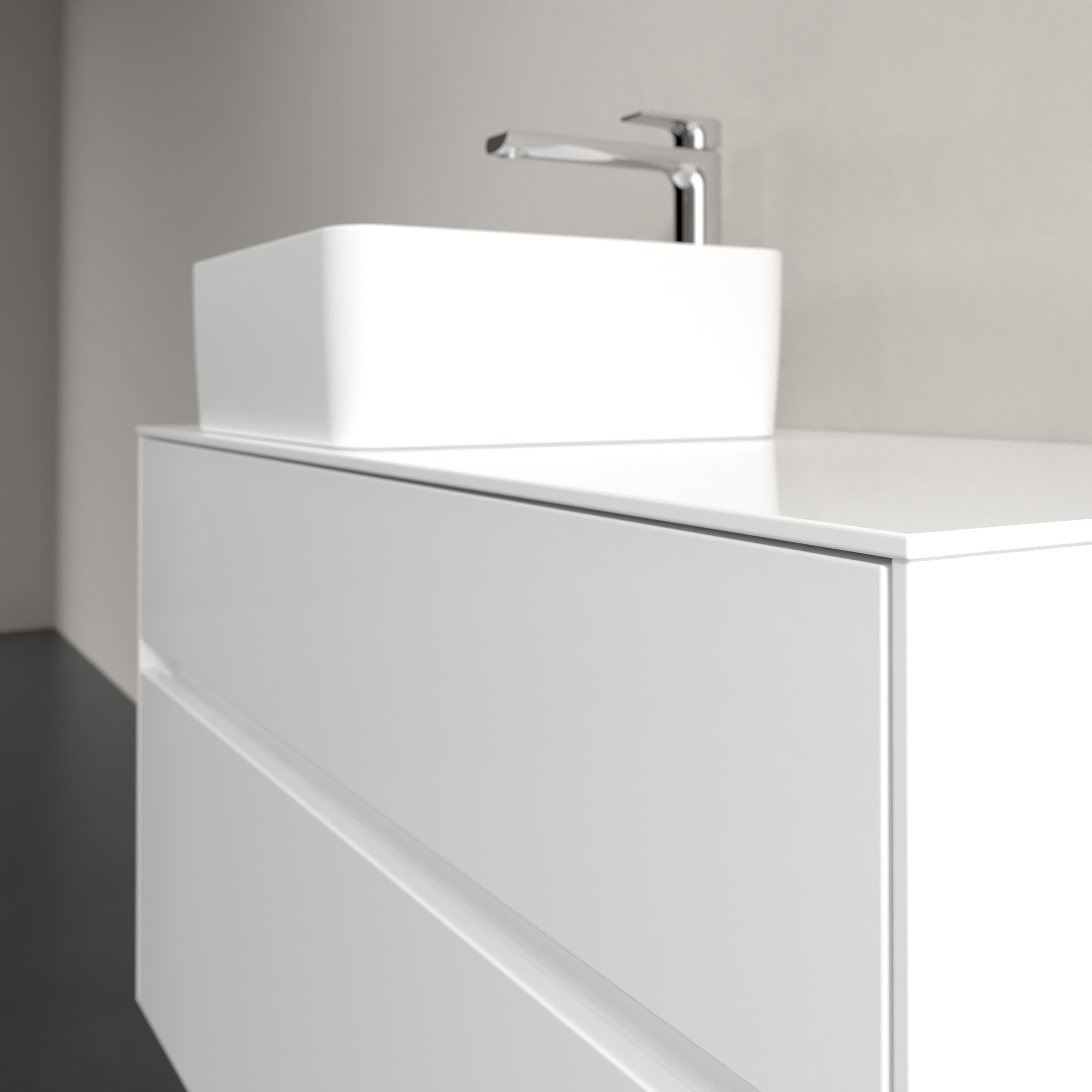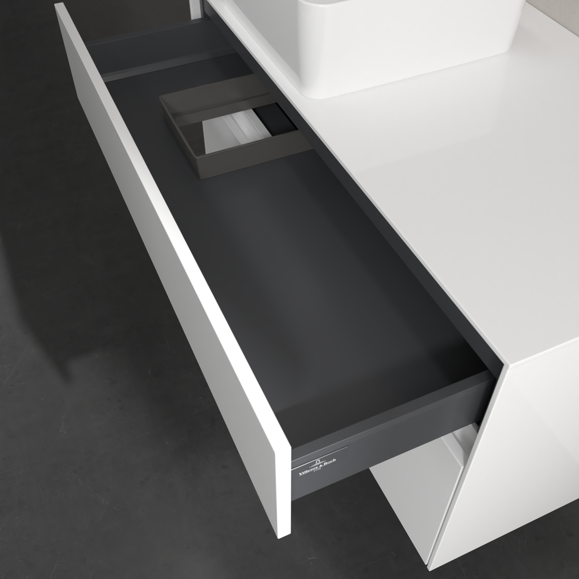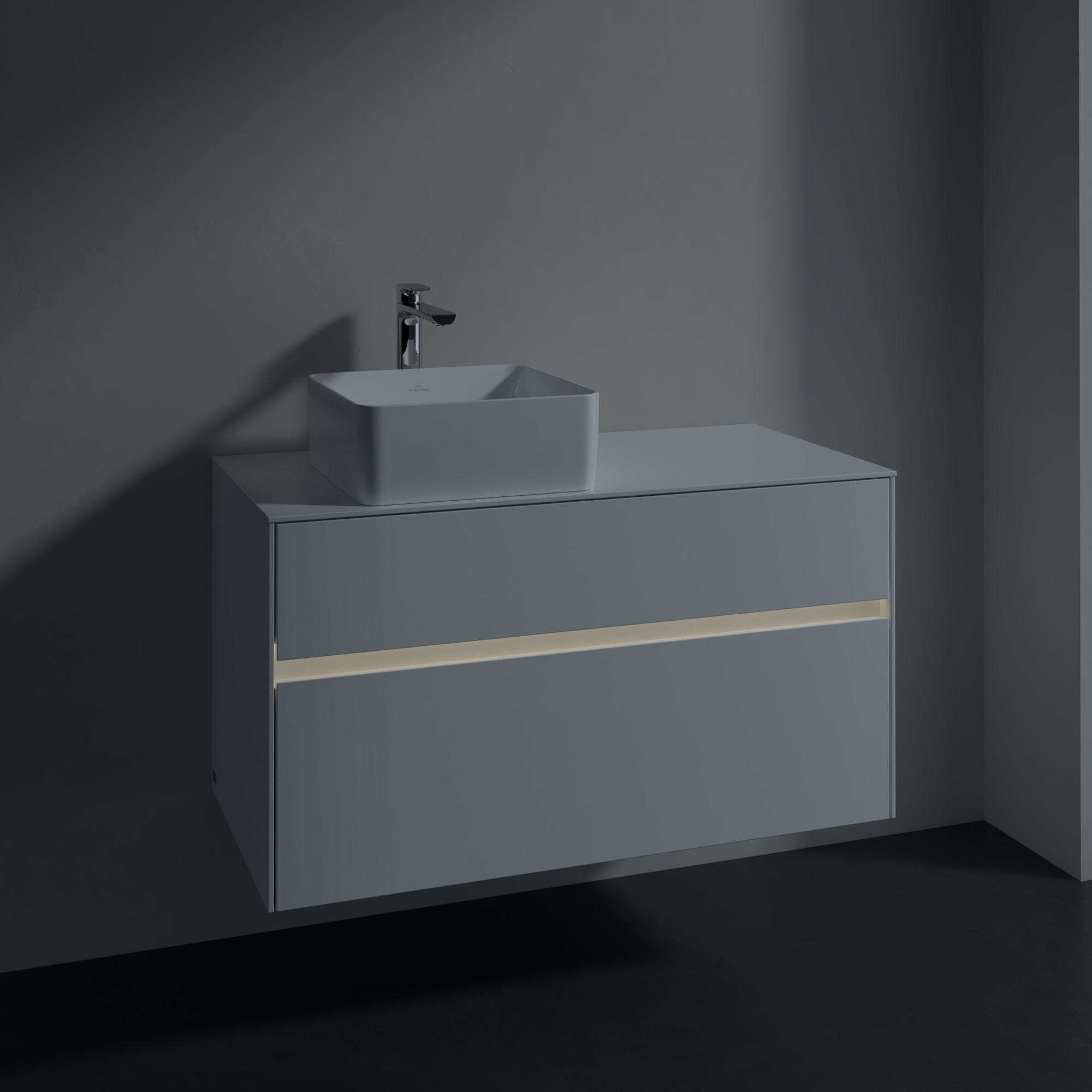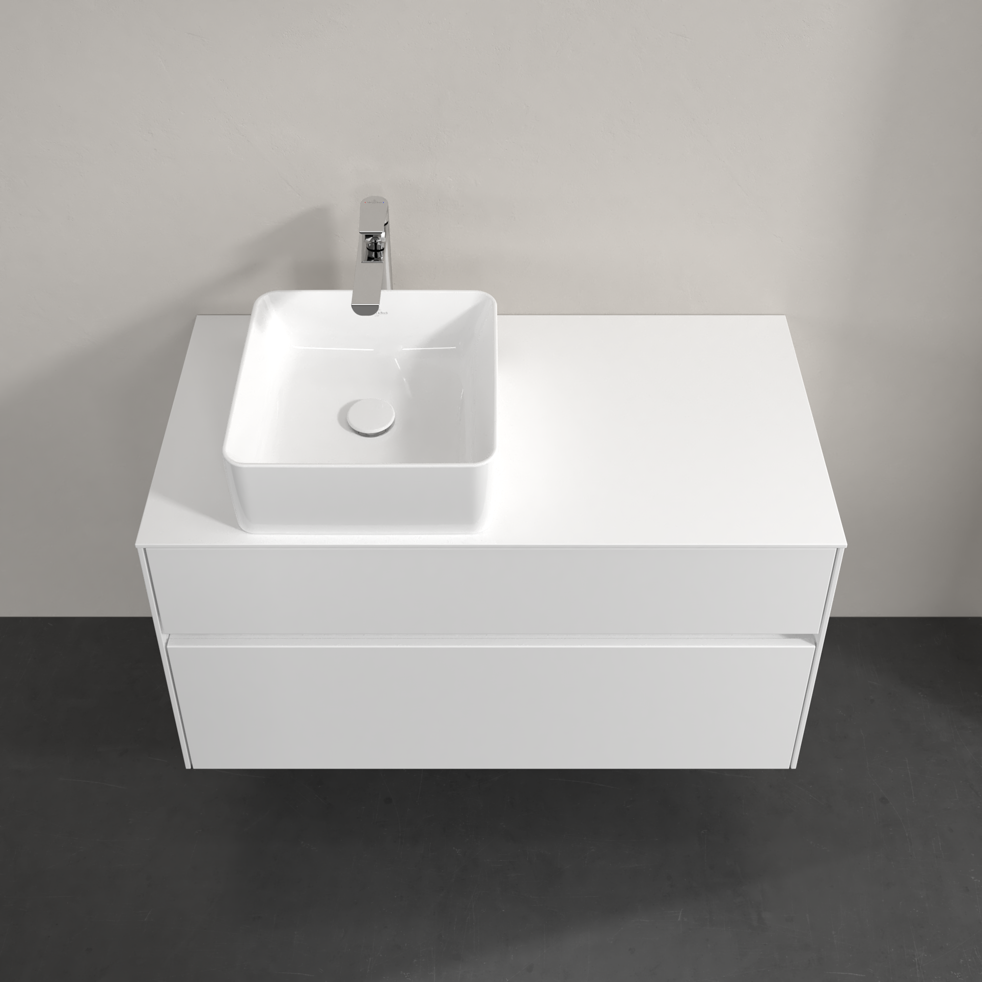 Collaro Meuble sous plan, avec éclairage, 2 tiroirs sur rails, 1000x548x500mm, Caisson: Glossy White, Façade: Glossy White