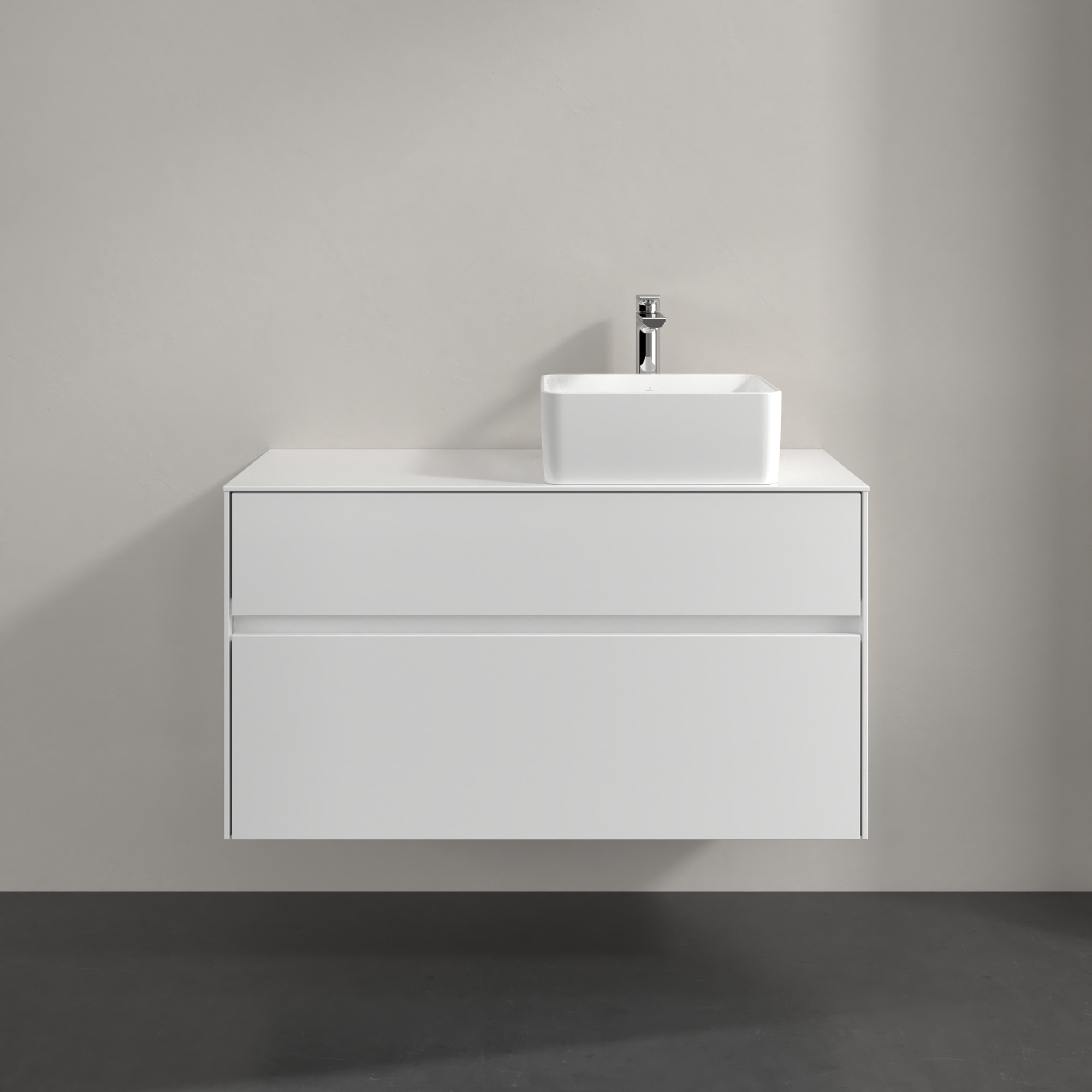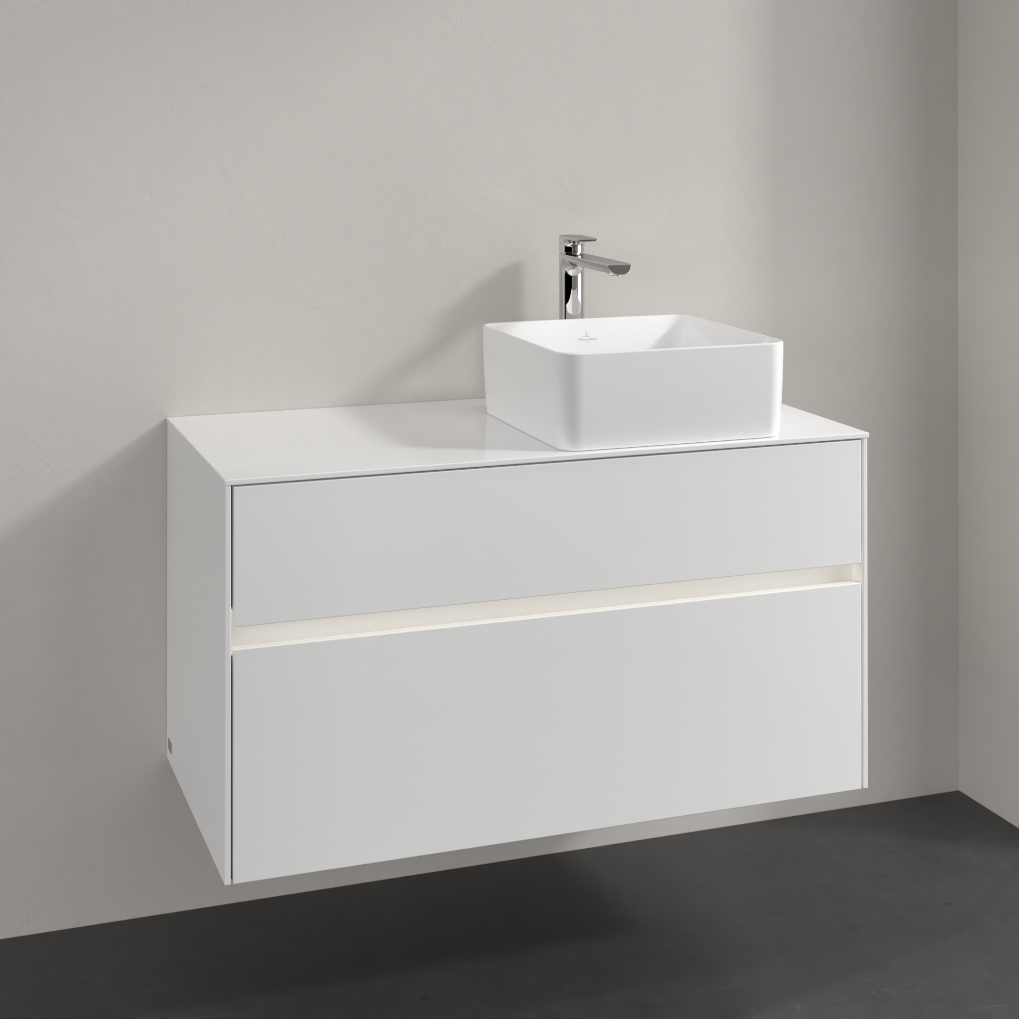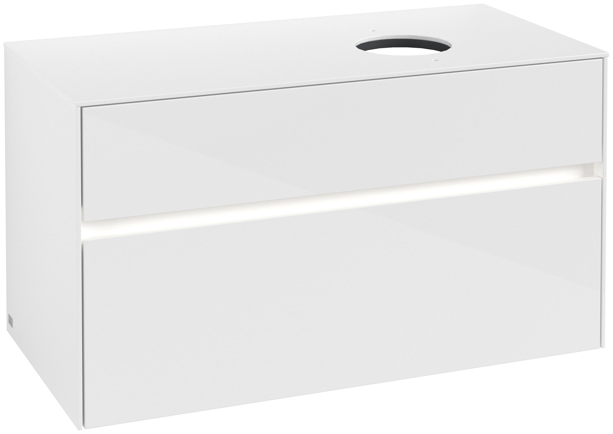 Collaro Meuble sous plan, avec éclairage, 2 tiroirs sur rails, 1000x548x500mm, Caisson: Glossy White, Façade: Glossy White