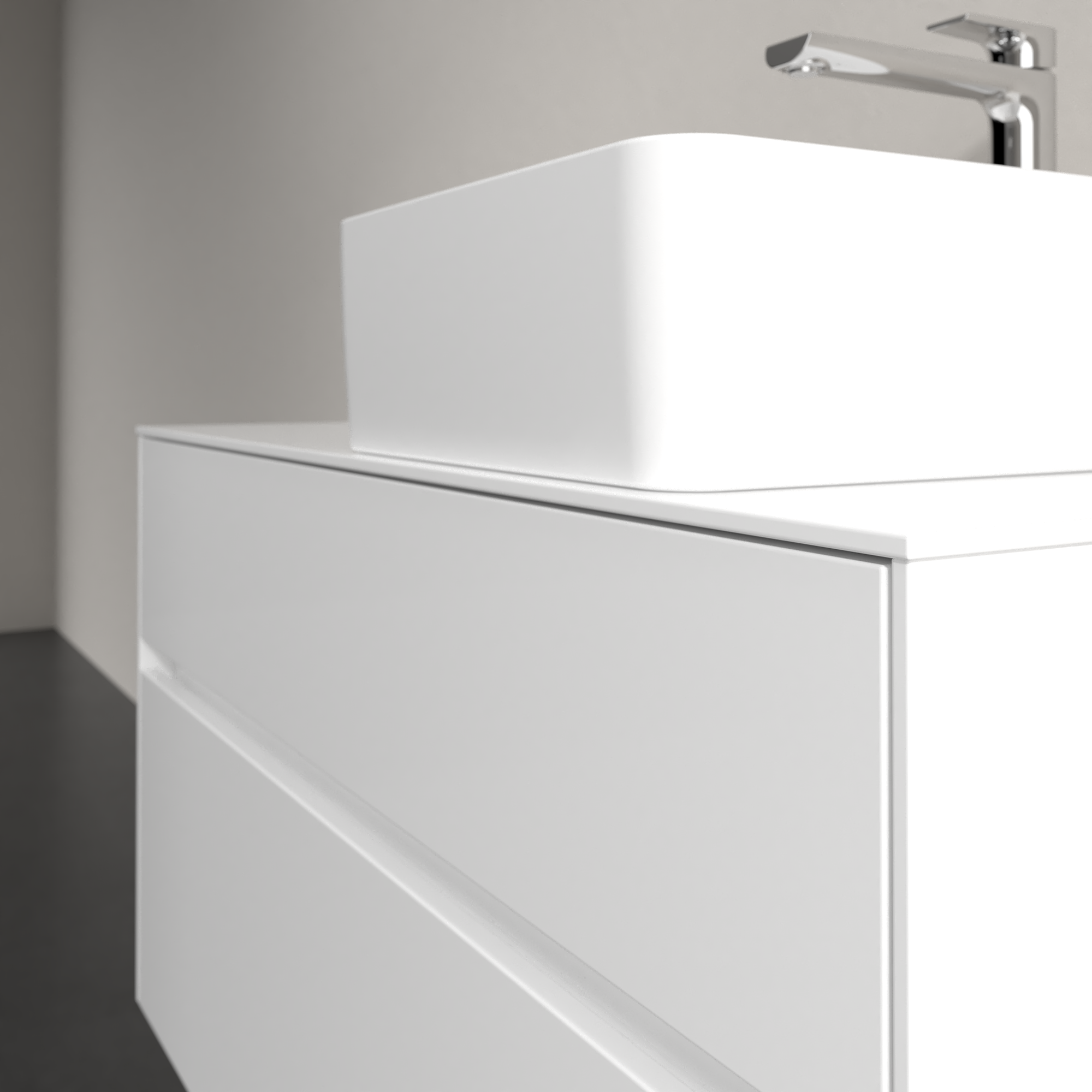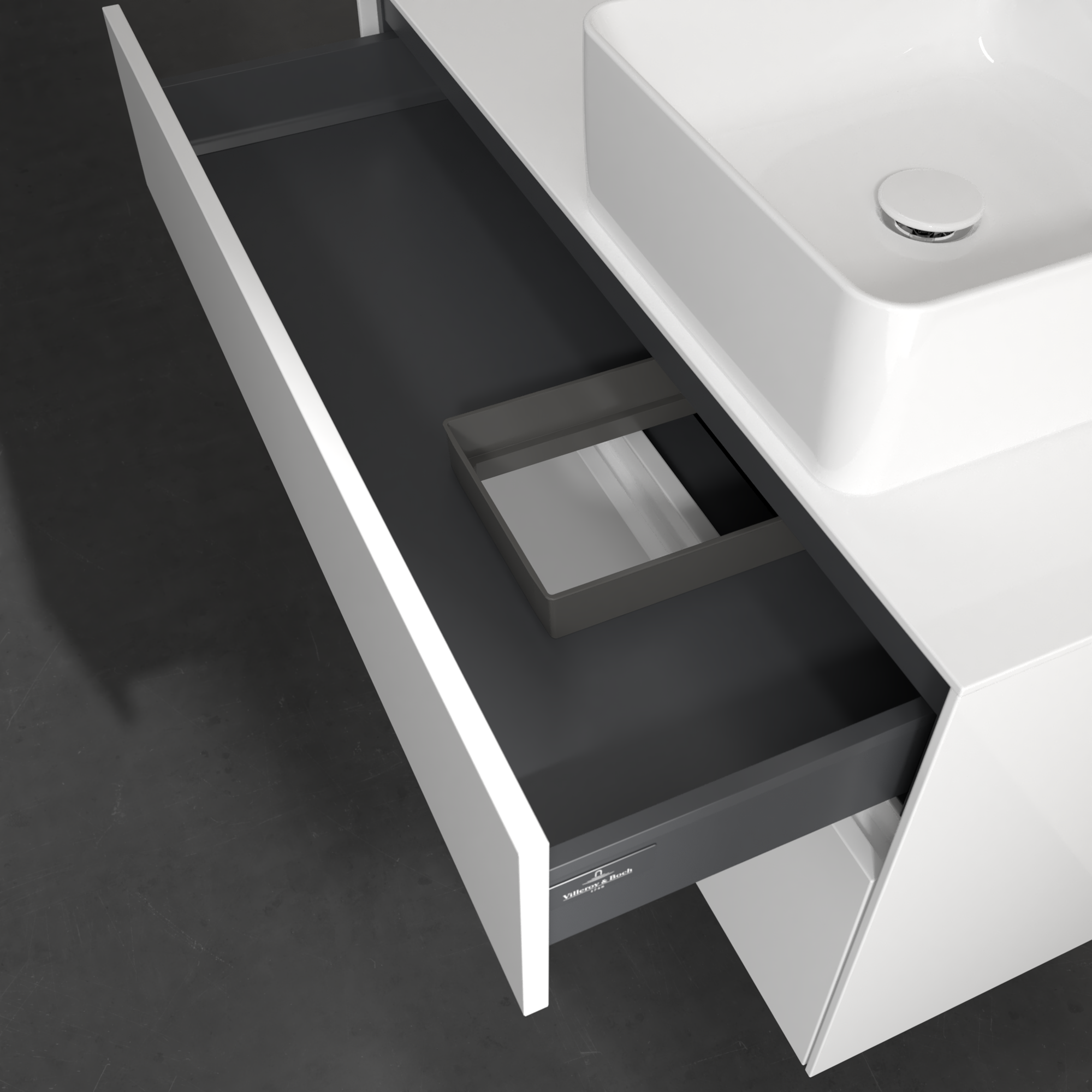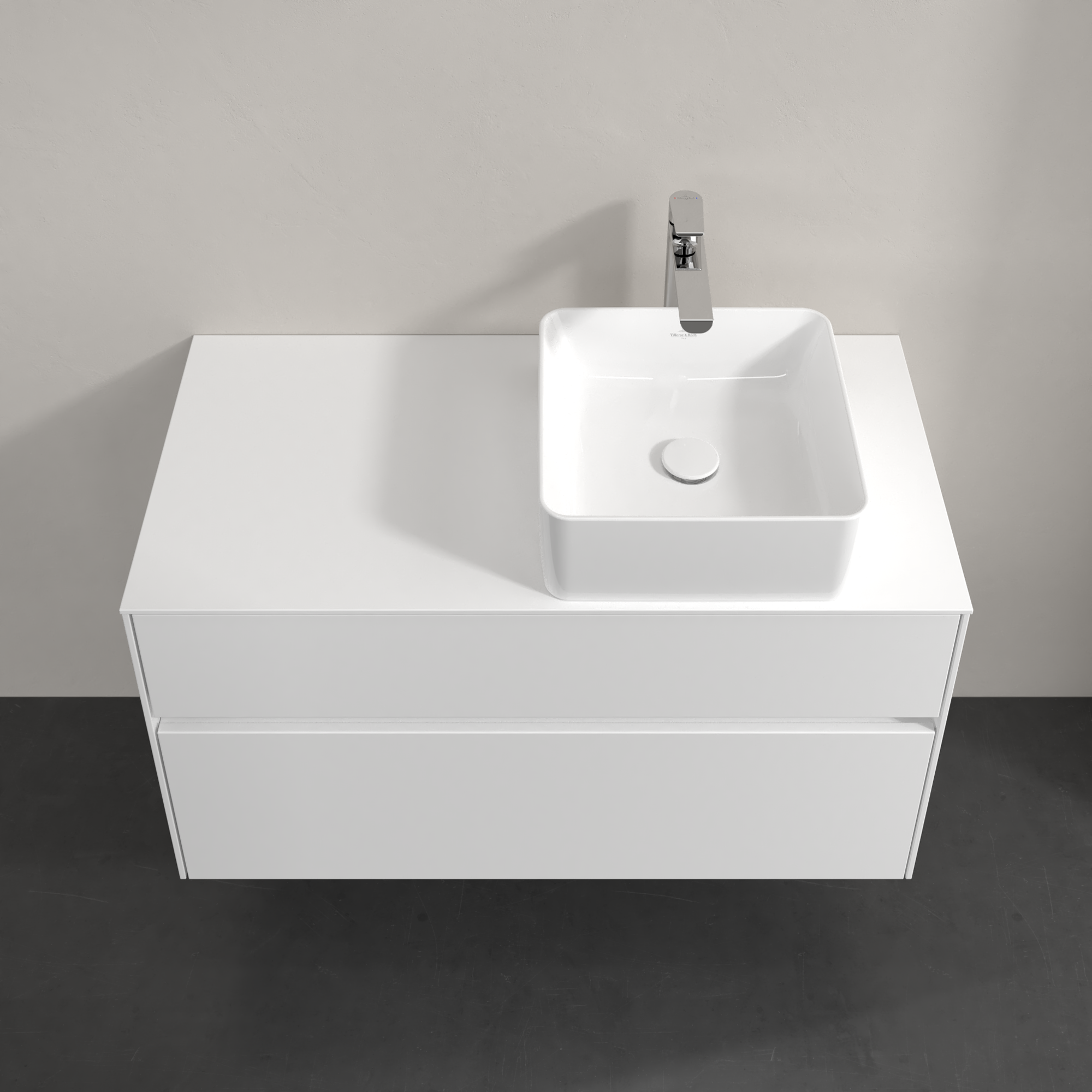 Collaro Meuble sous plan, avec éclairage, 2 tiroirs sur rails, 1000x548x500mm, Caisson: Glossy White, Façade: Glossy White