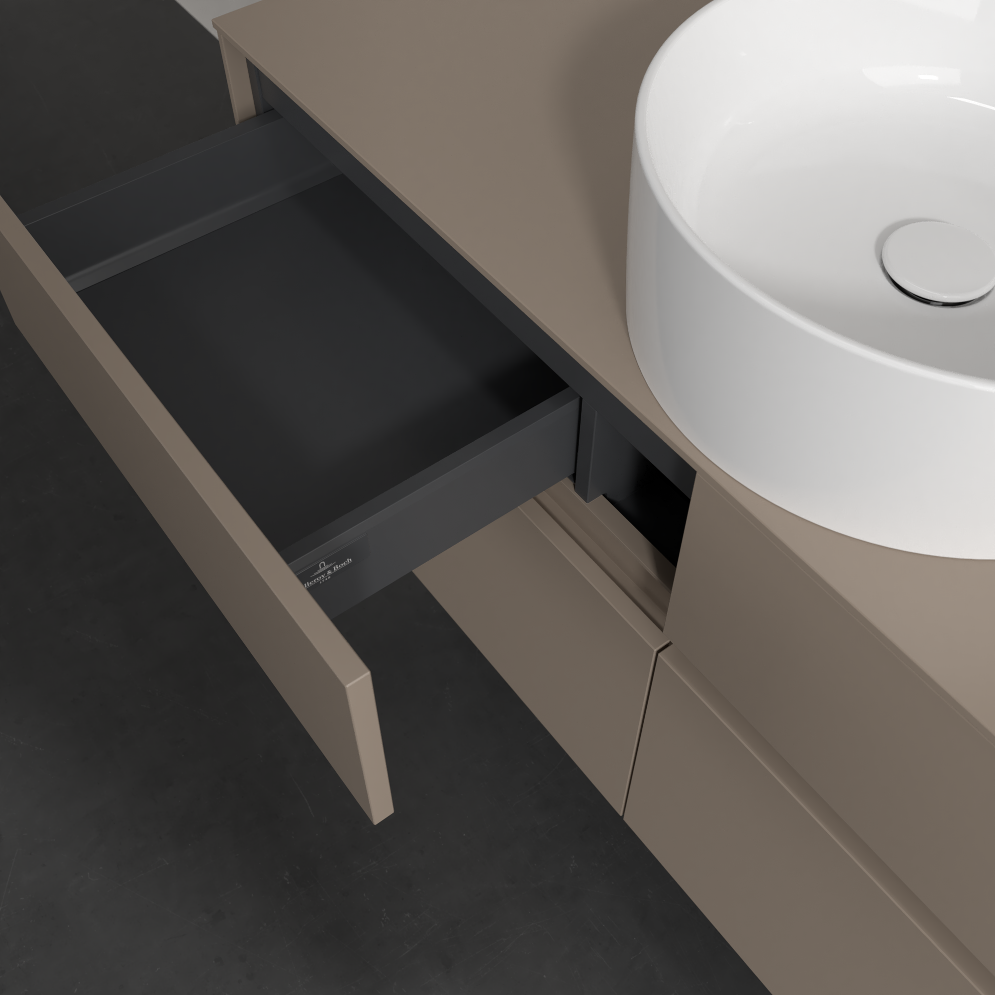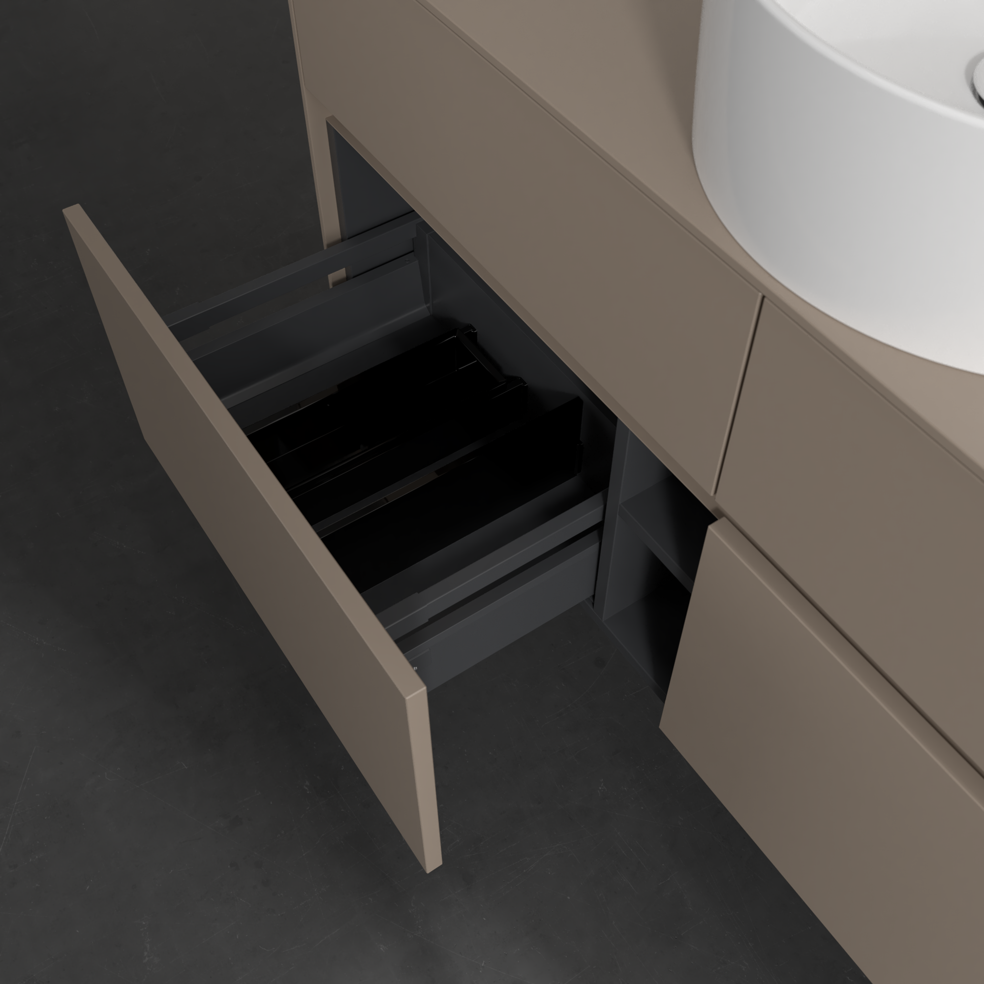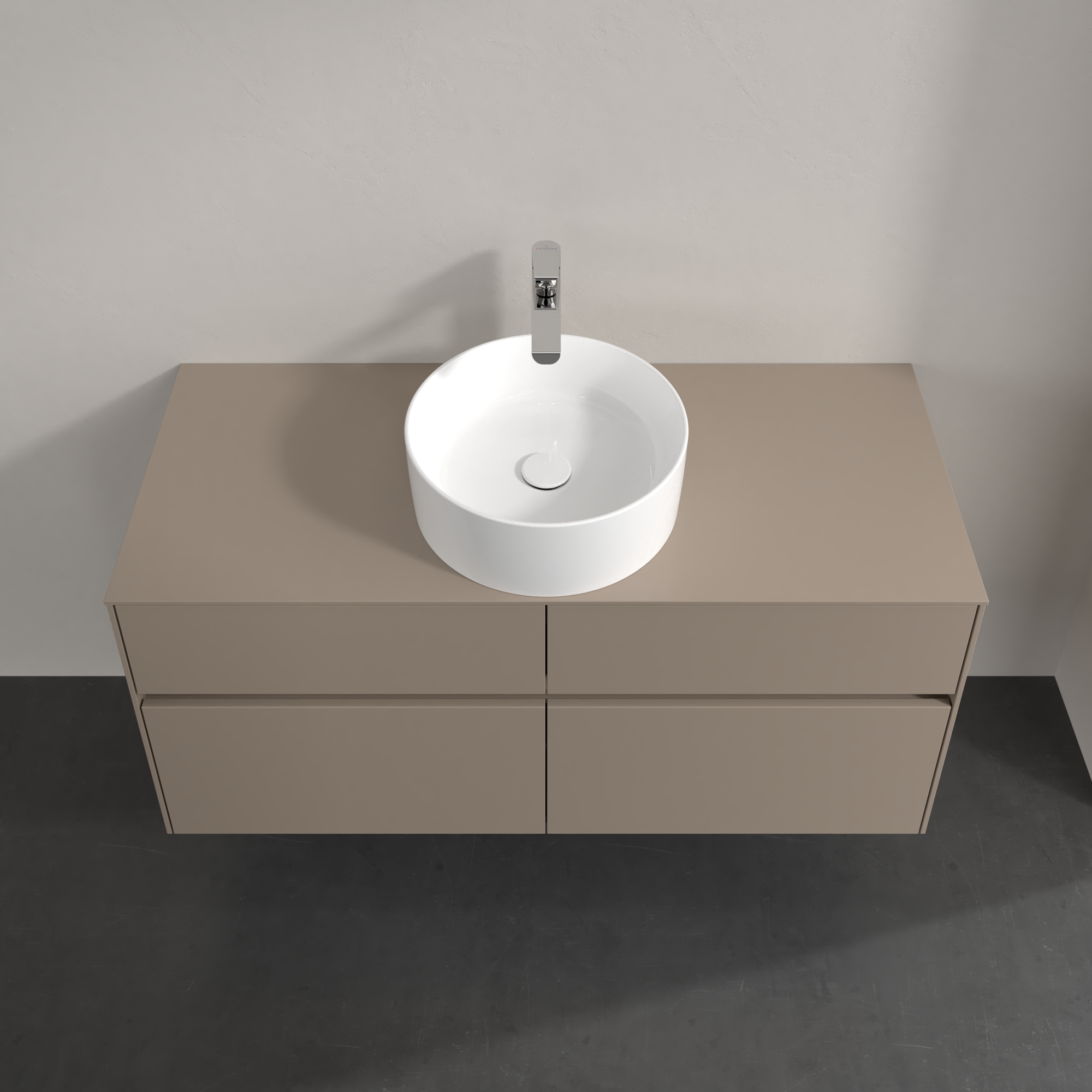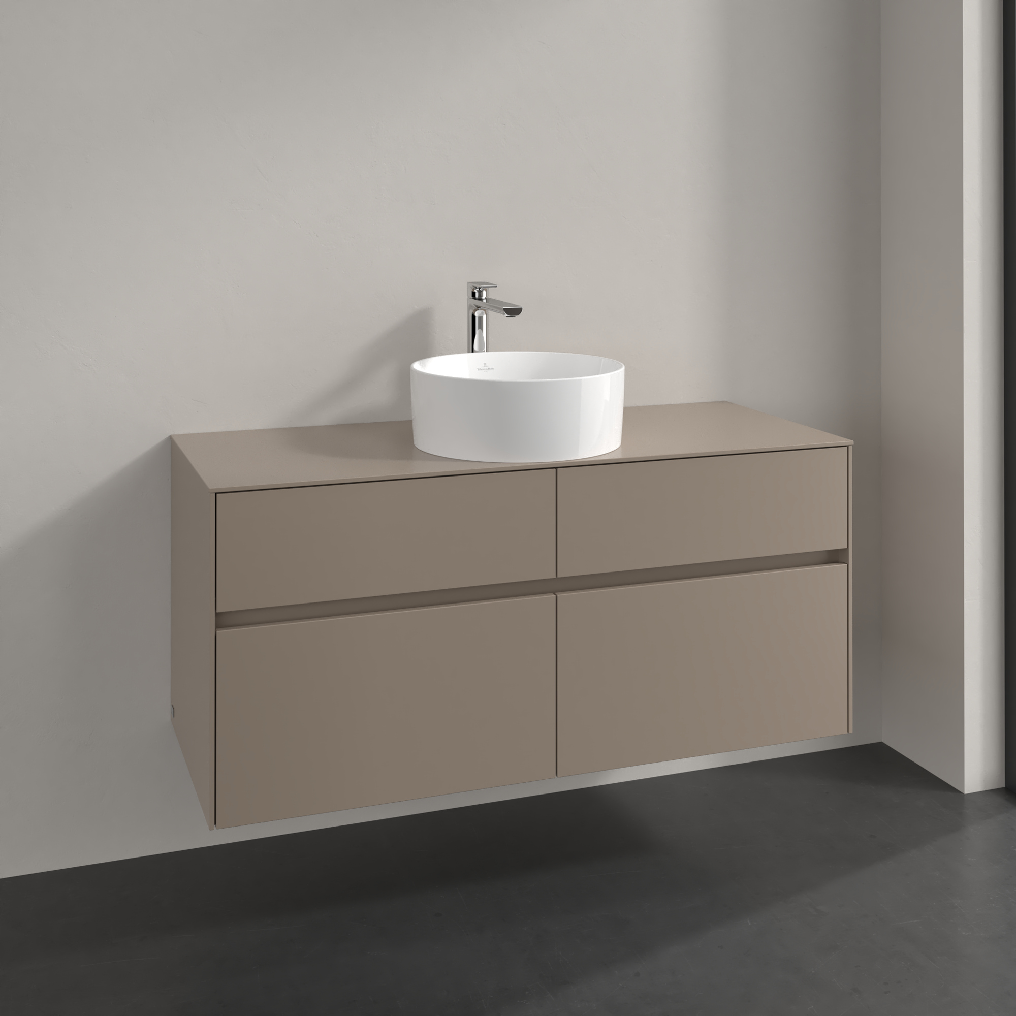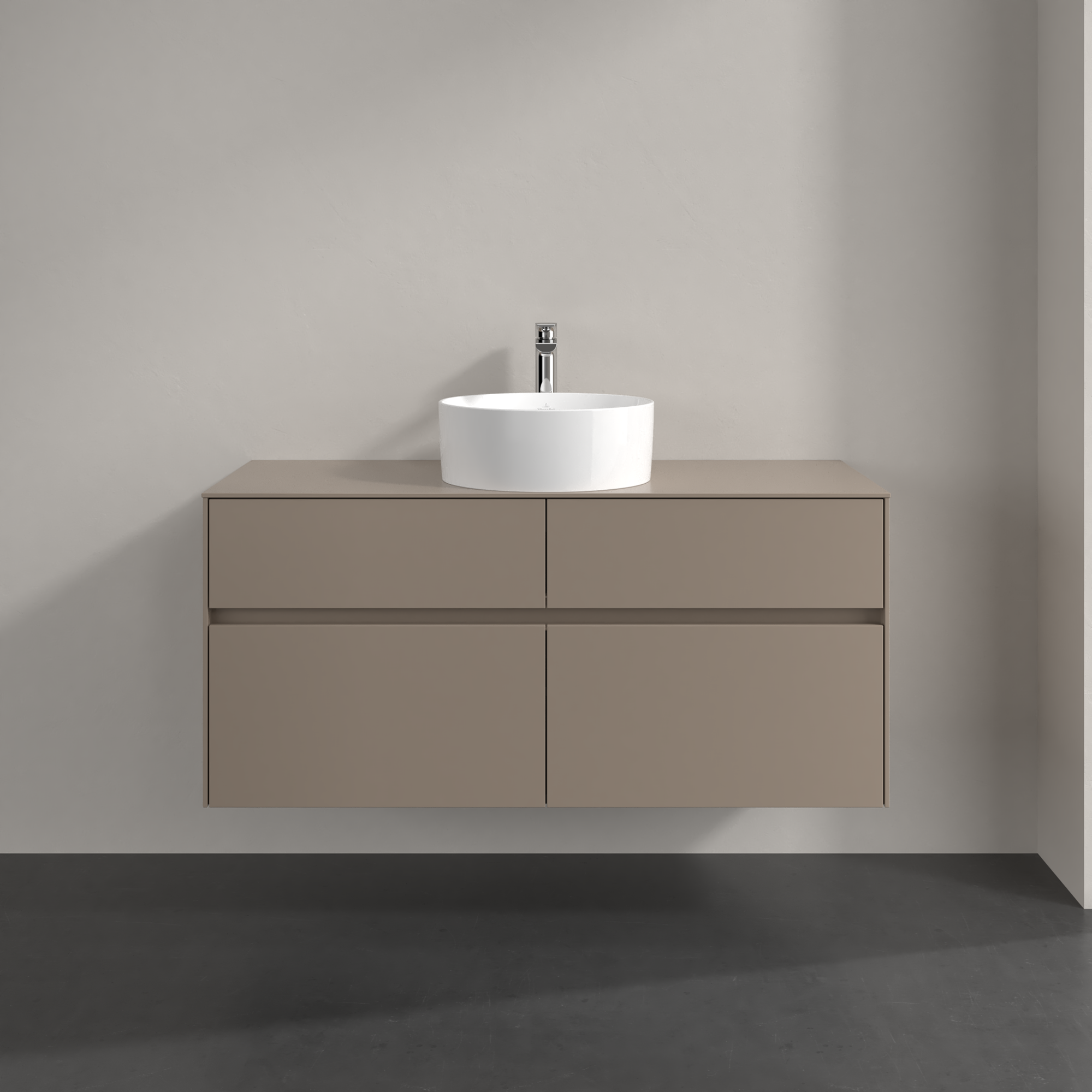 Collaro Meuble sous plan, 4 tiroirs sur rails, 1200x548x500mm, Caisson: Taupe, Façade: Taupe