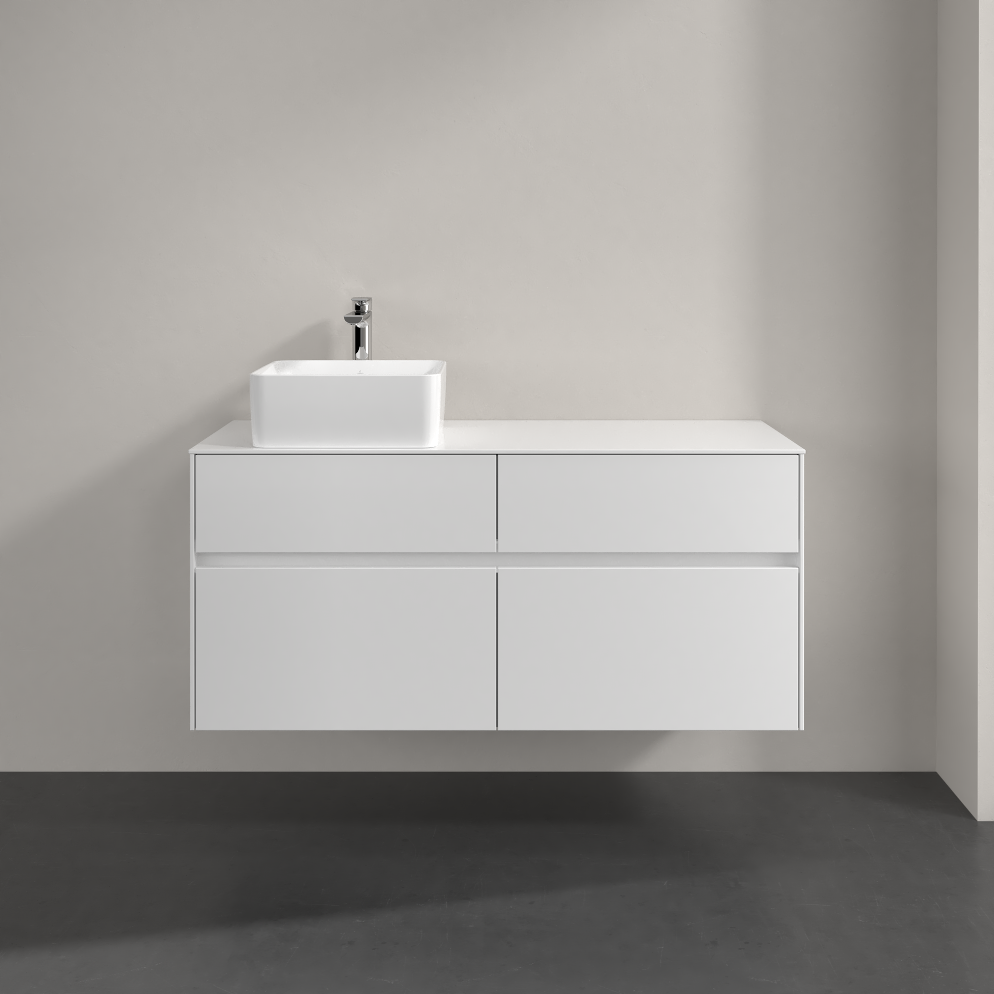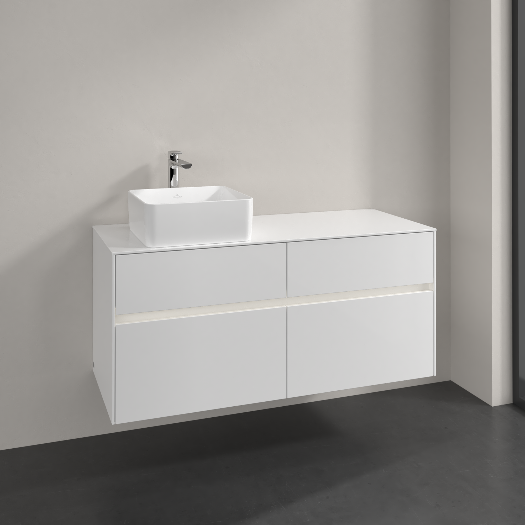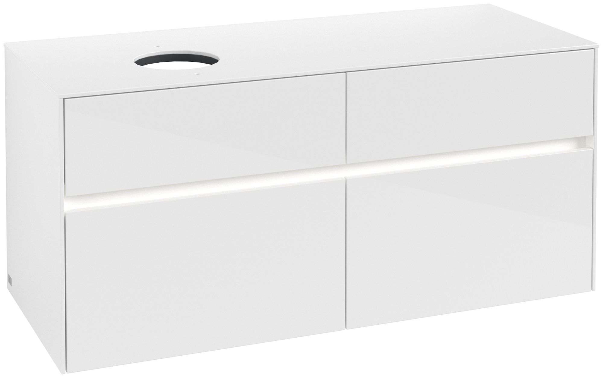 Collaro Meuble sous plan, avec éclairage, 4 tiroirs sur rails, 1200x548x500mm, Caisson: Glossy White, Façade: Glossy White