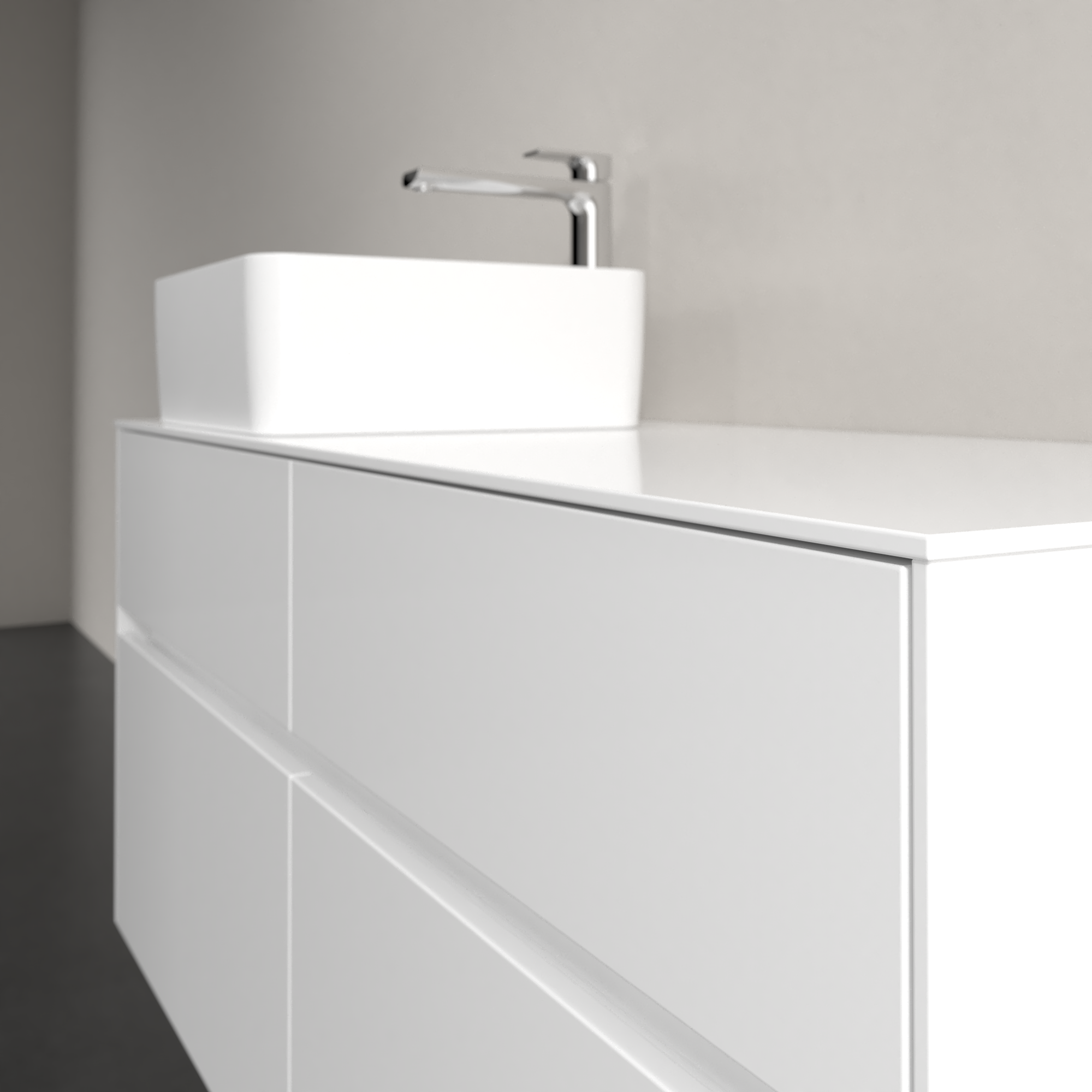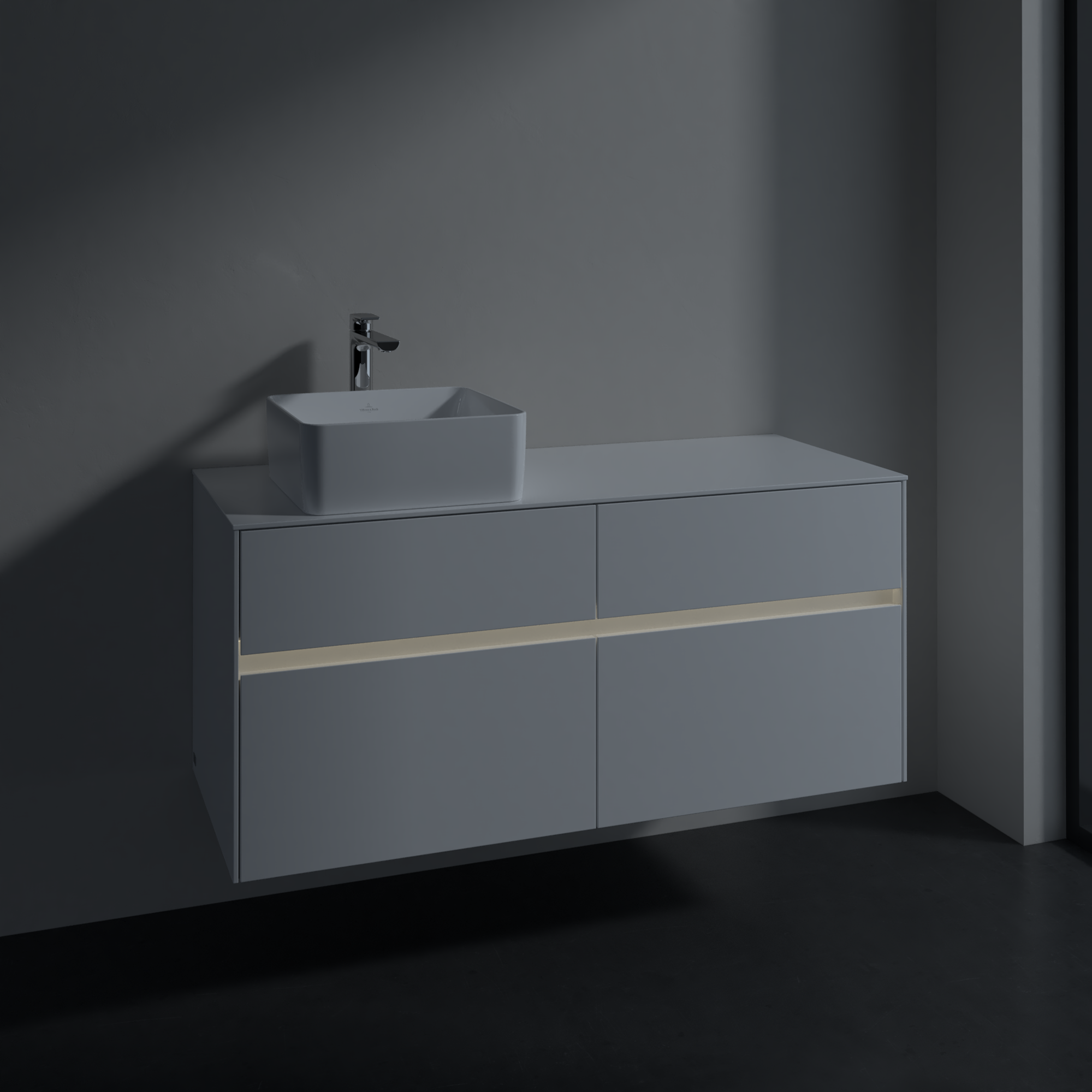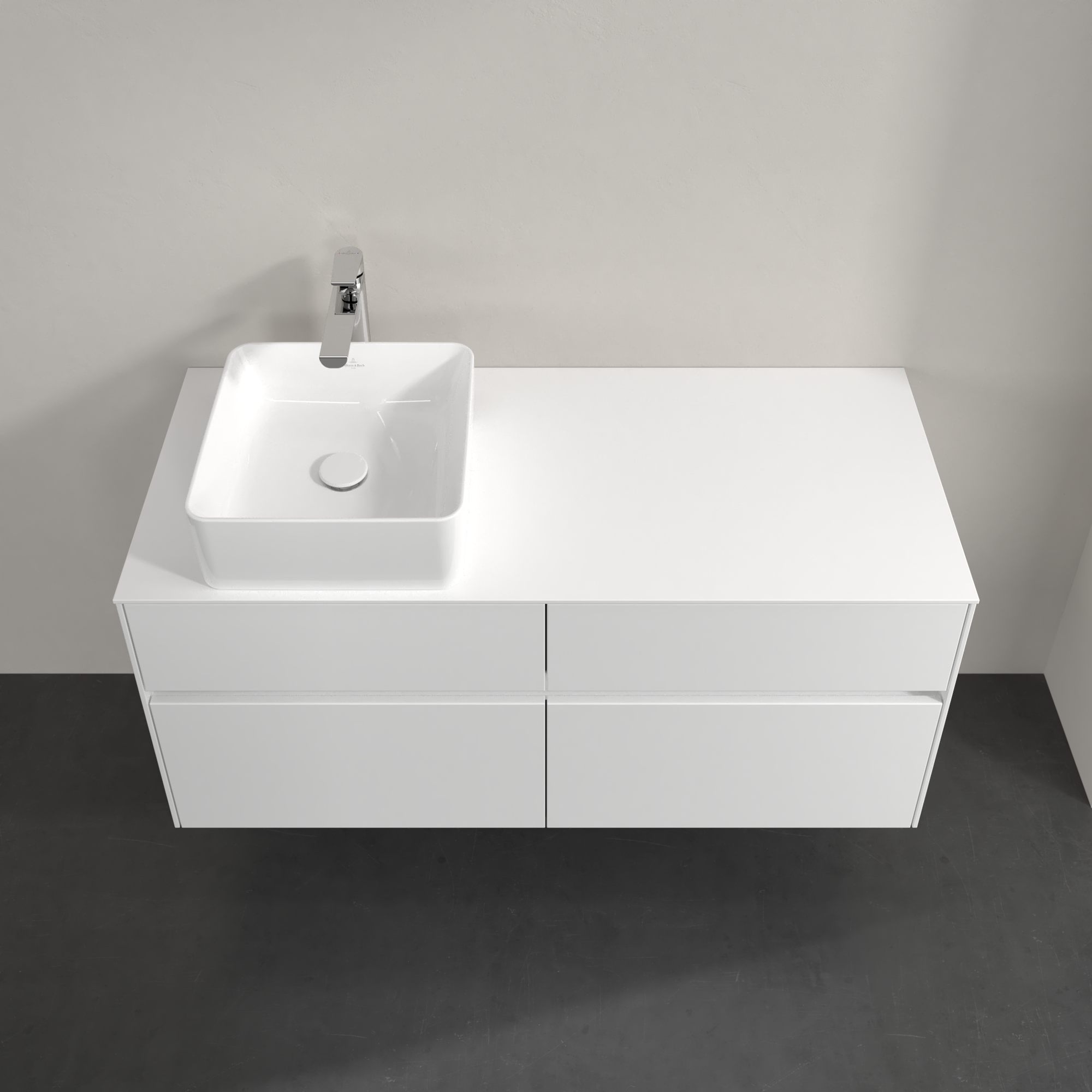 Collaro Meuble sous plan, avec éclairage, 4 tiroirs sur rails, 1200x548x500mm, Caisson: Glossy White, Façade: Glossy White