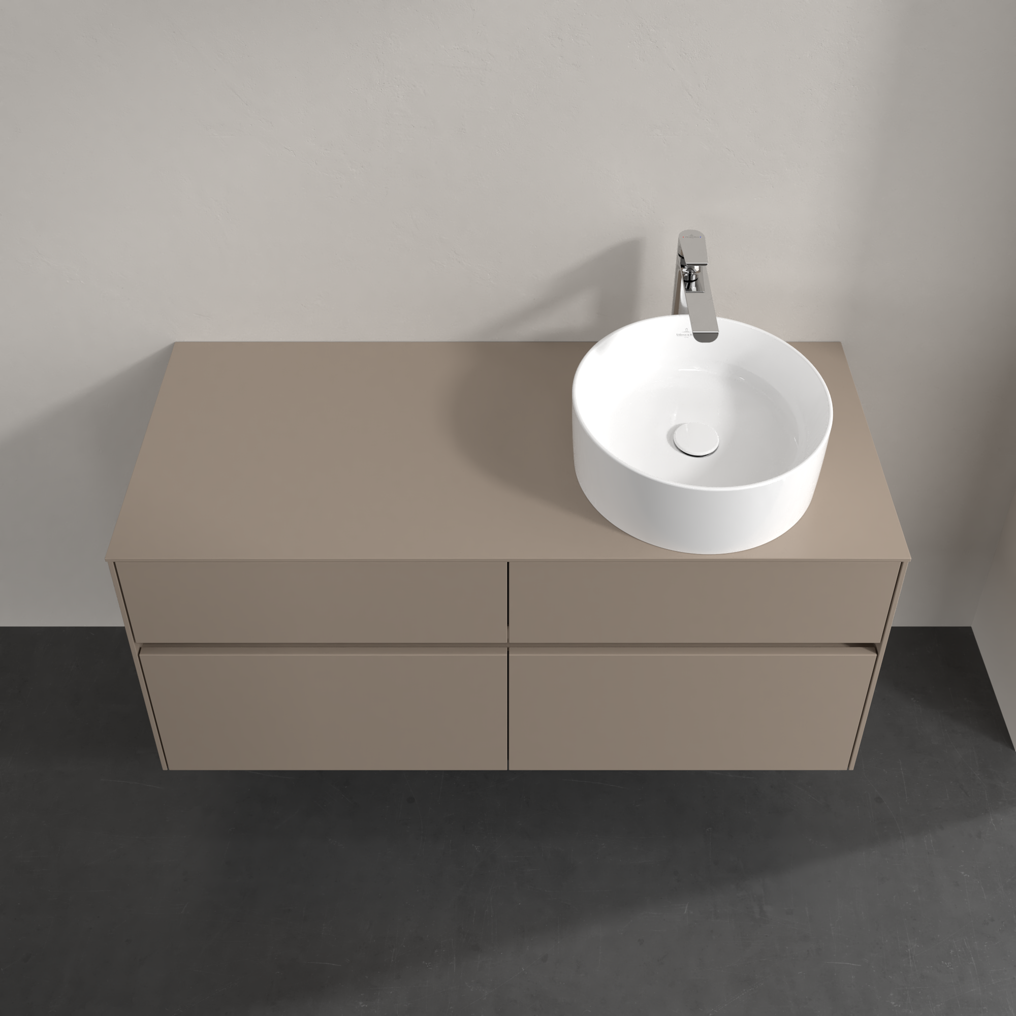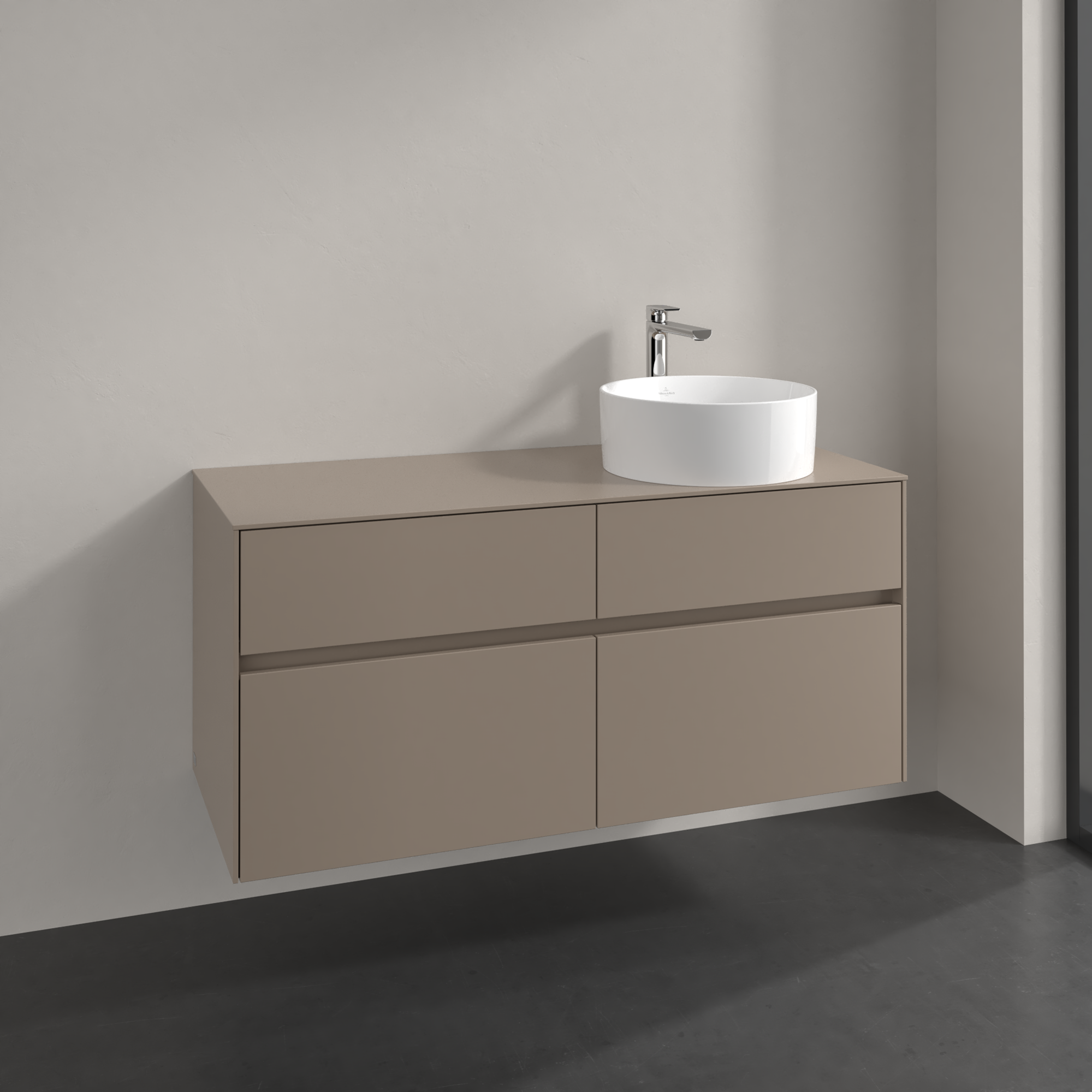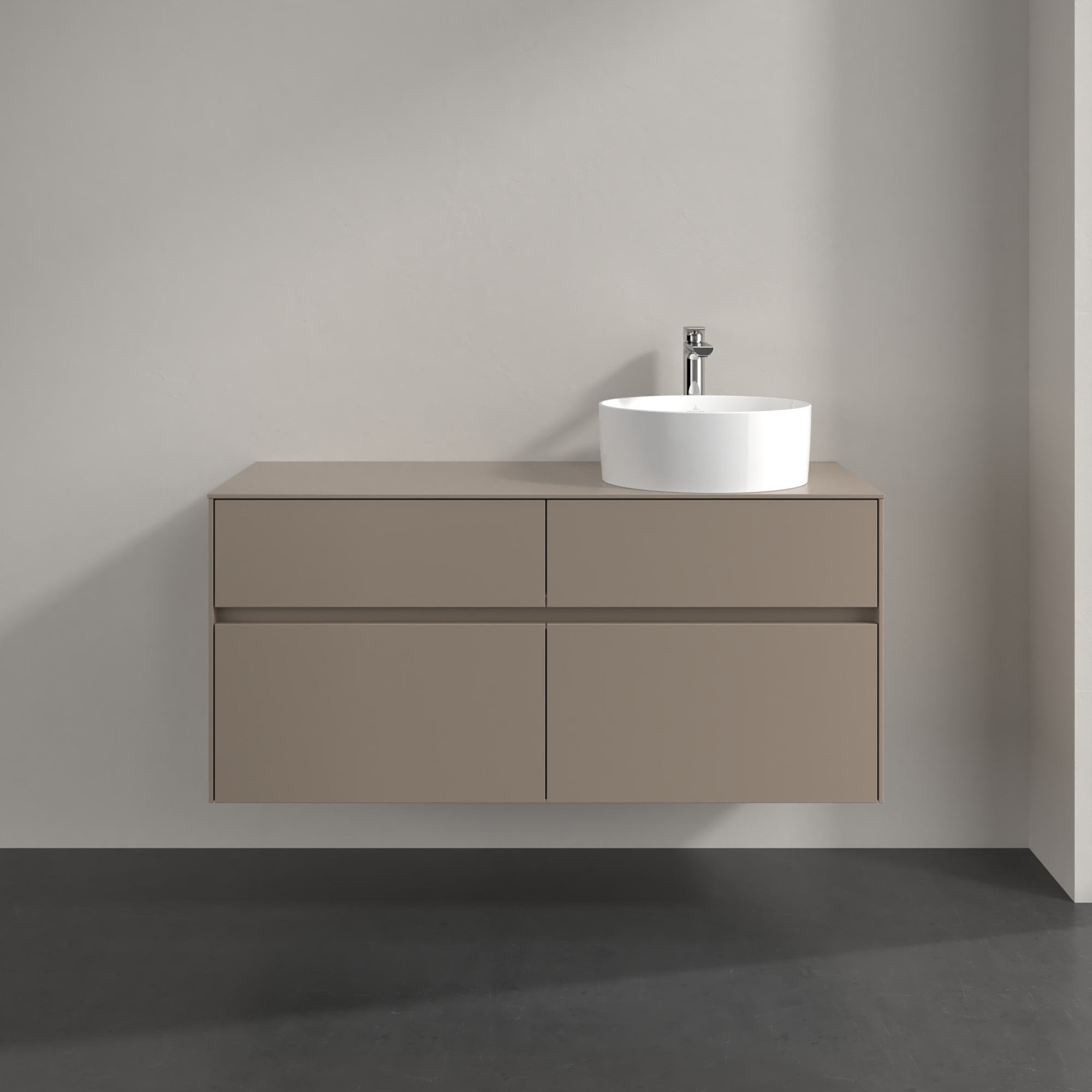 Collaro Meuble sous plan, 4 tiroirs sur rails, 1200x548x500mm, Caisson: Taupe, Façade: Taupe