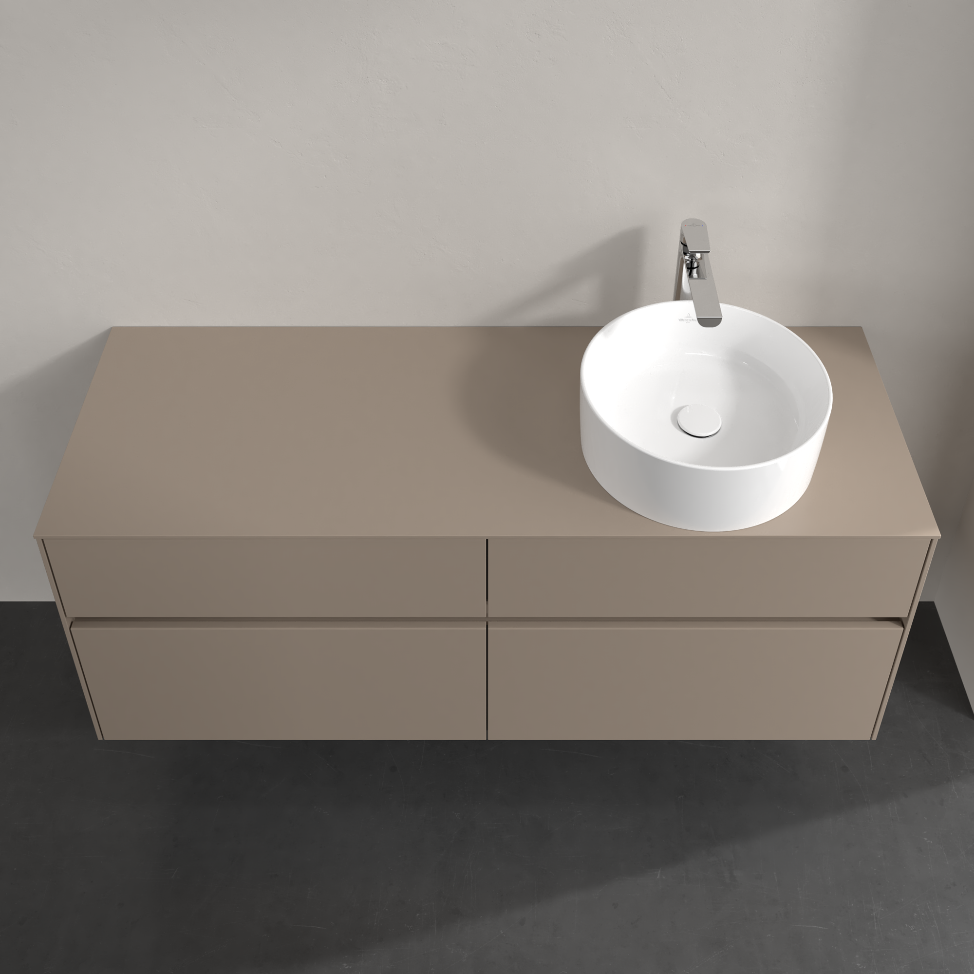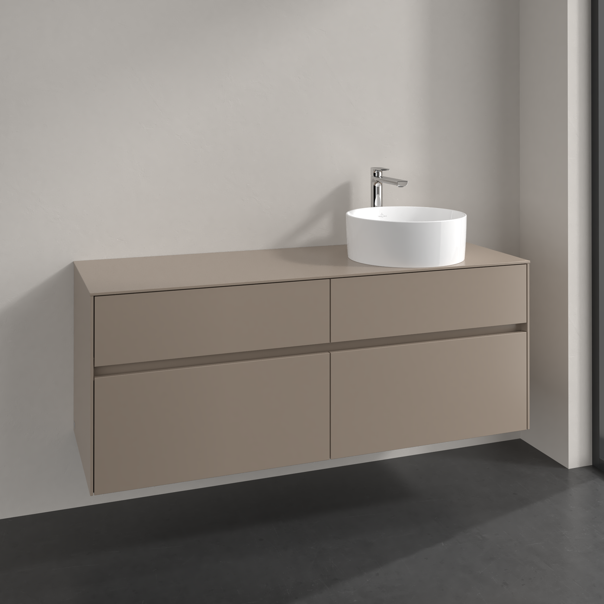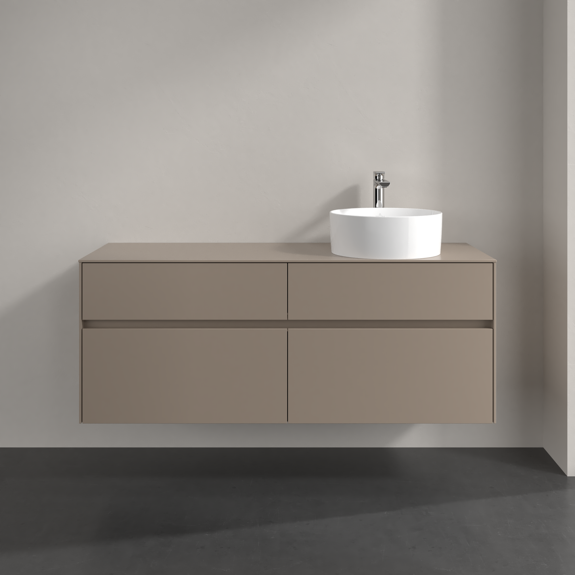 Collaro Meuble sous plan, 4 tiroirs sur rails, 1400x548x500mm, Caisson: Taupe, Façade: Taupe