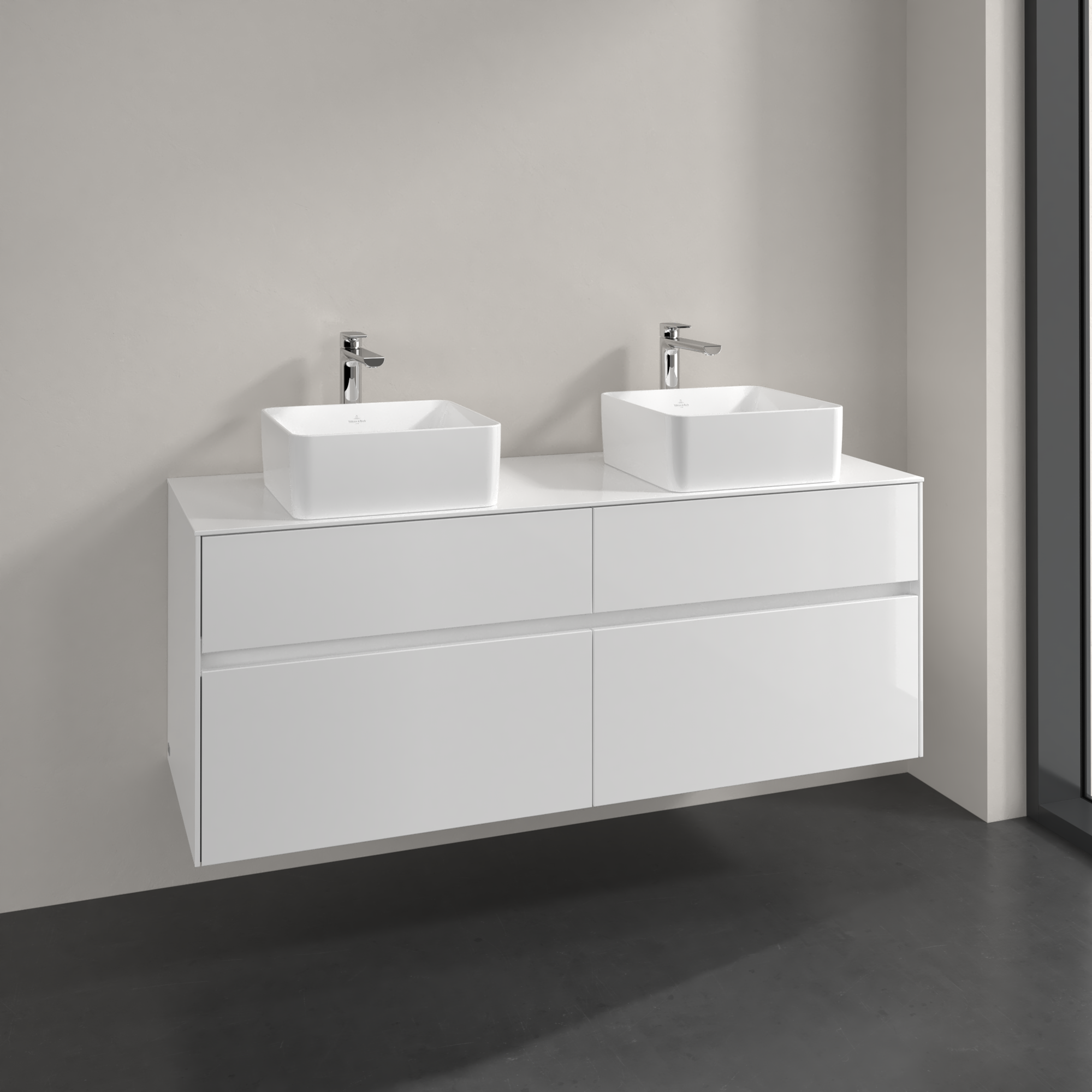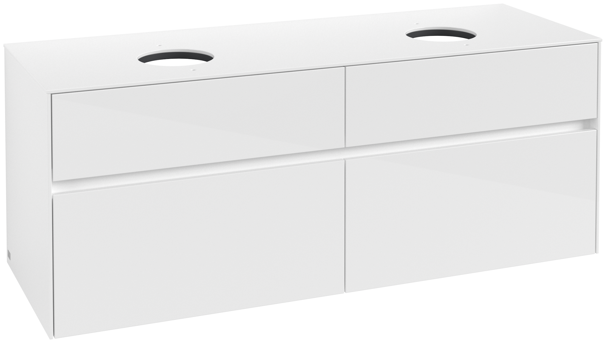 Collaro Meuble sous plan, 4 tiroirs sur rails, 1400x548x500mm, Caisson: Glossy White, Façade: Glossy White