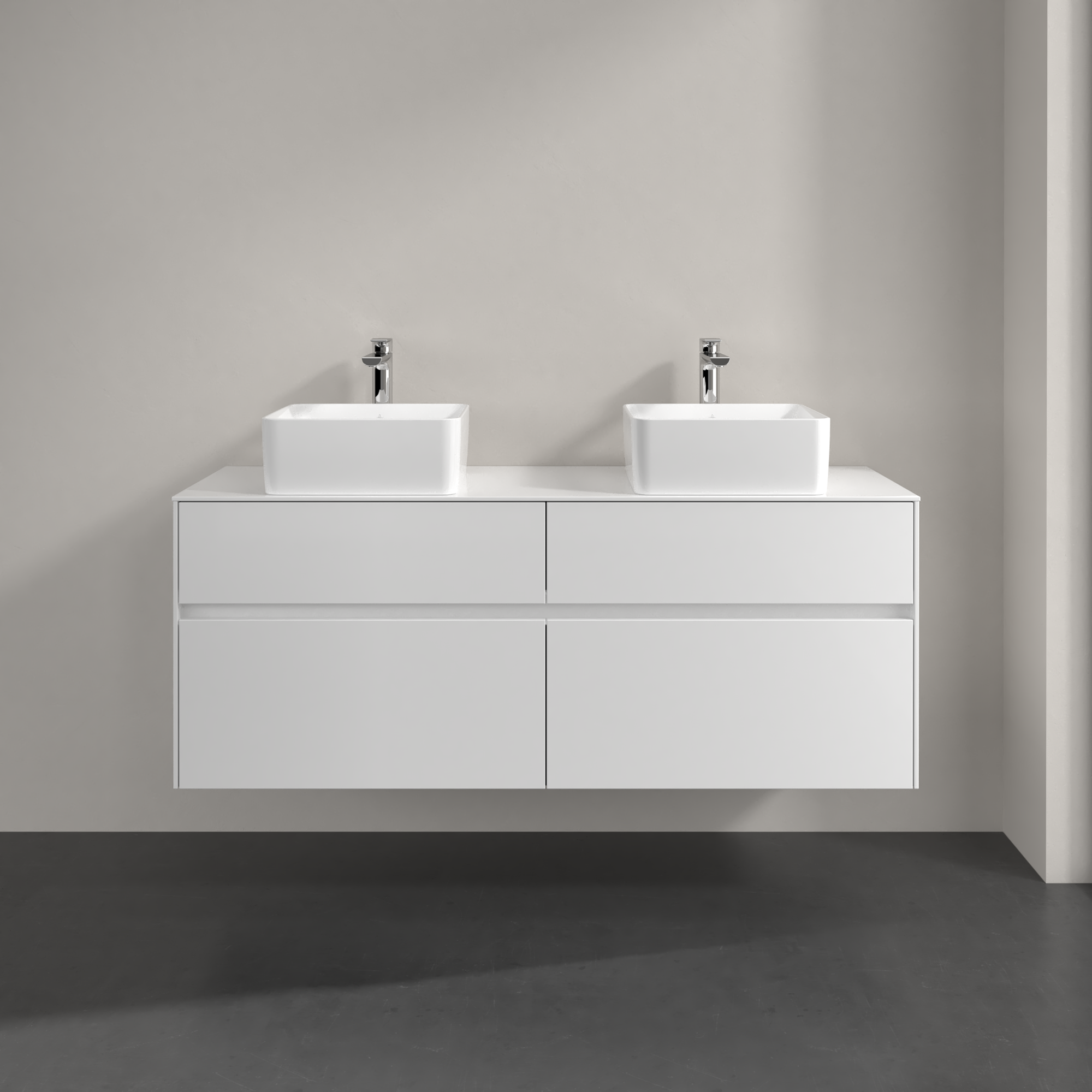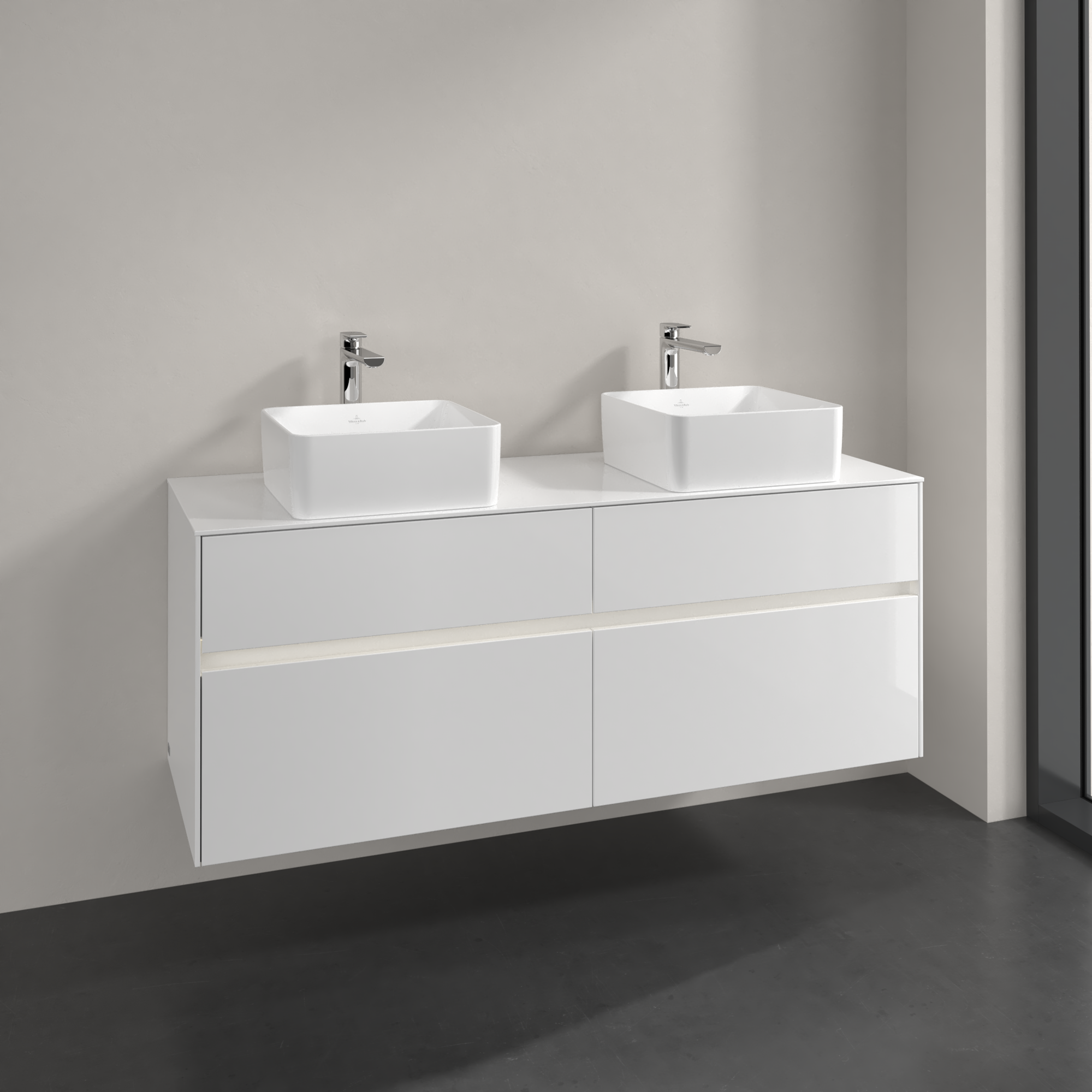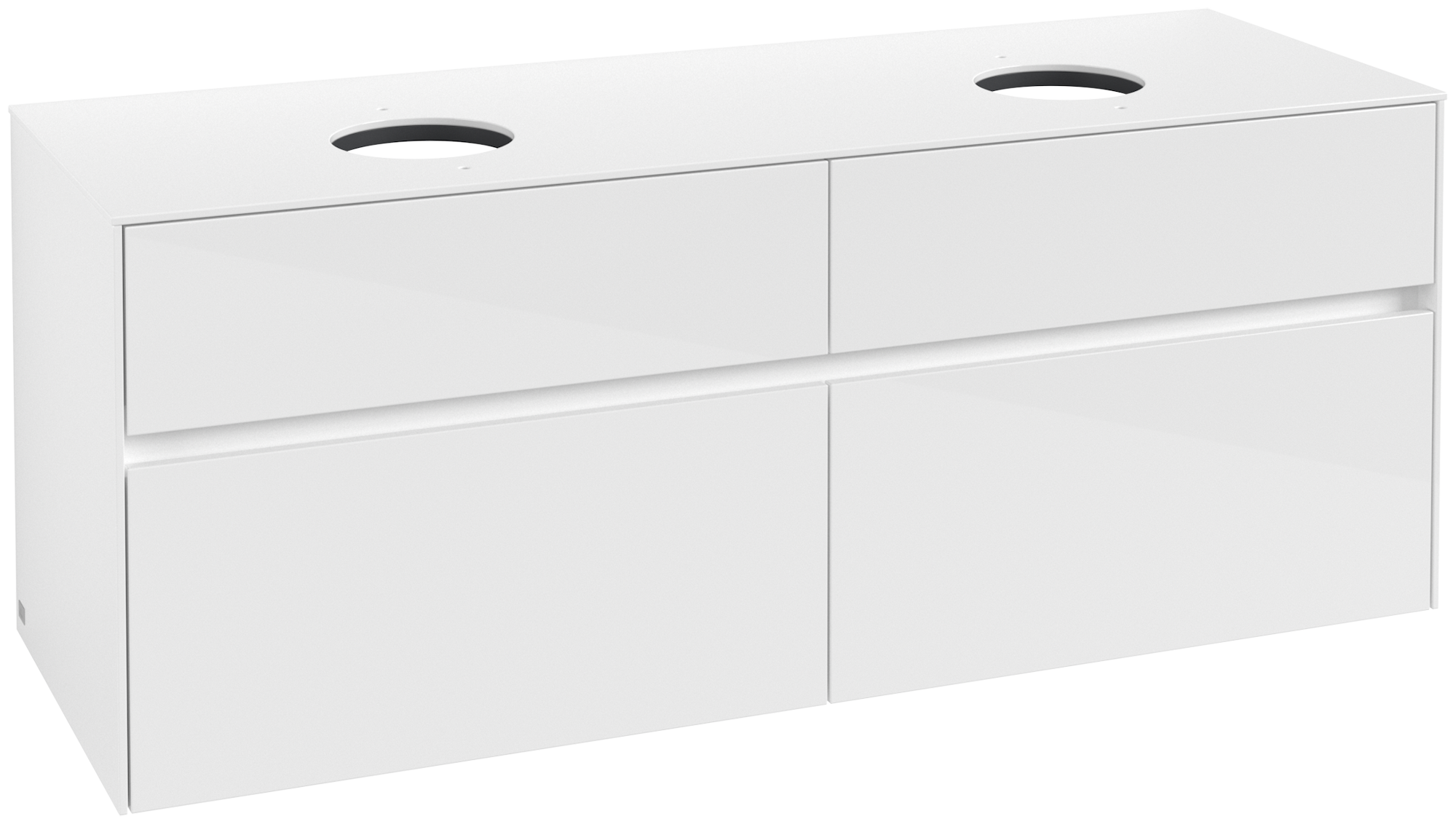 Collaro Meuble sous plan, avec éclairage, 4 tiroirs sur rails, 1400x548x500mm, Caisson: Glossy White, Façade: Glossy White