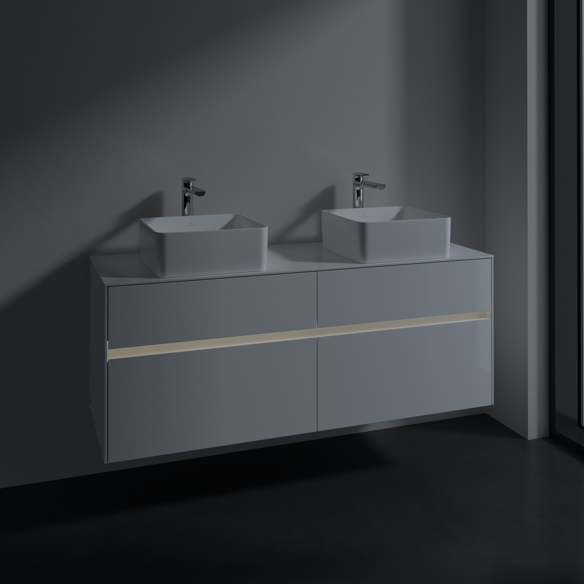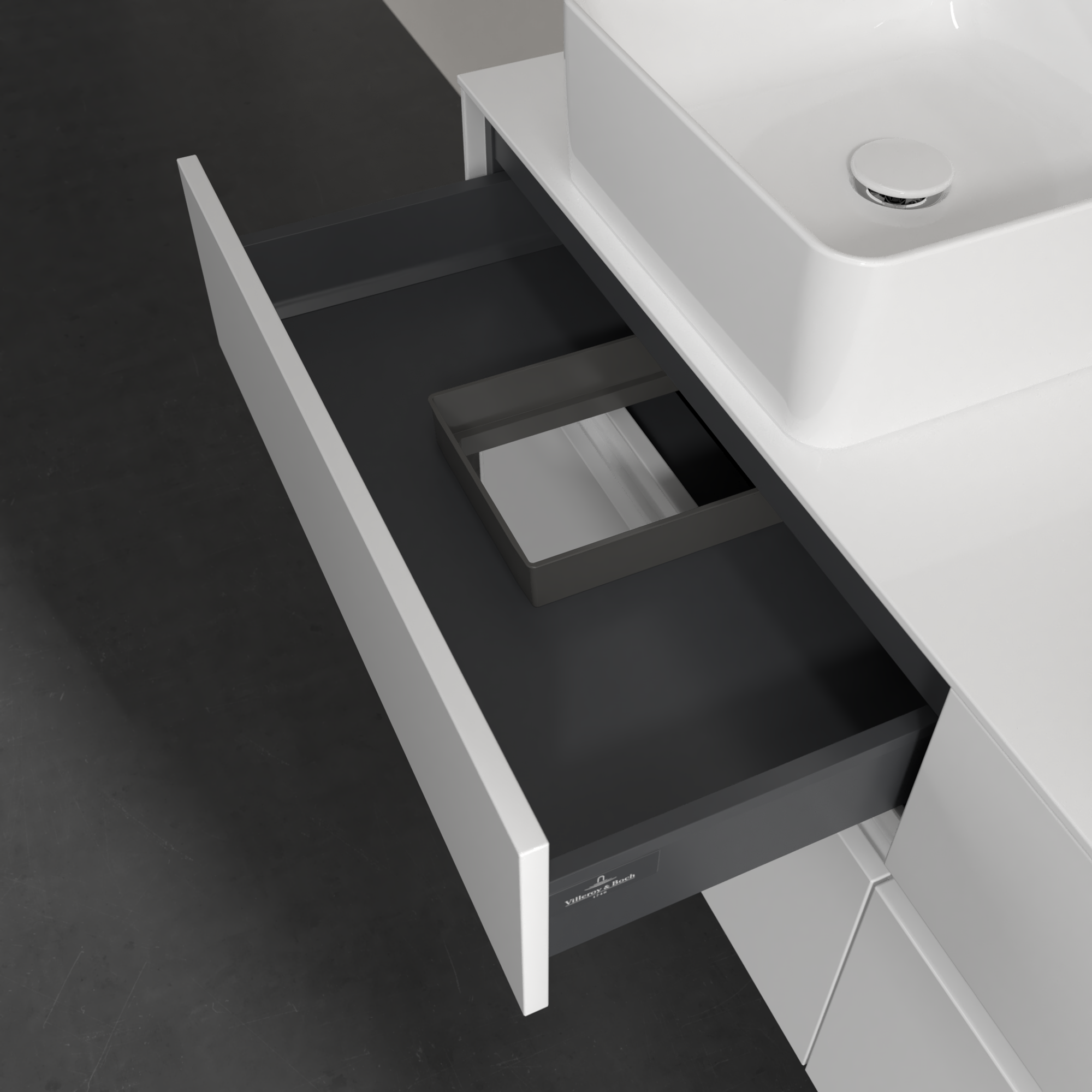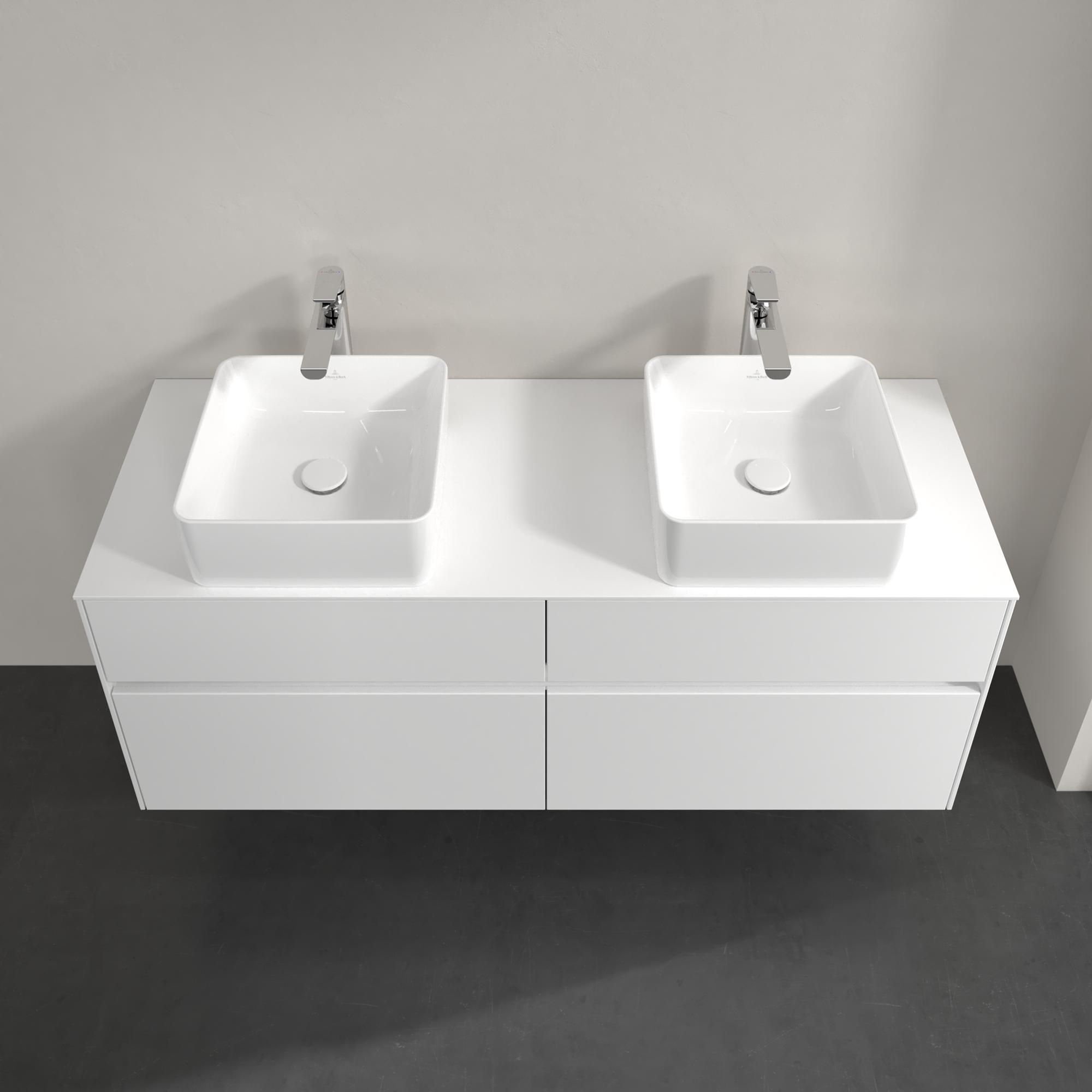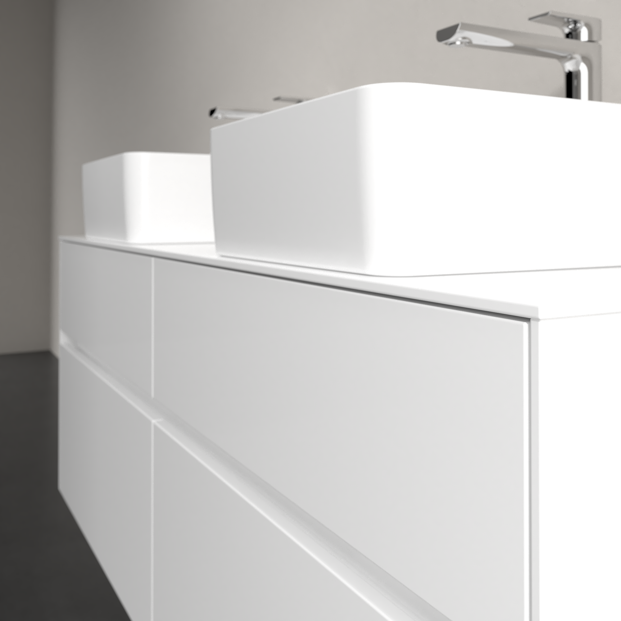 Collaro Meuble sous plan, avec éclairage, 4 tiroirs sur rails, 1400x548x500mm, Caisson: Glossy White, Façade: Glossy White