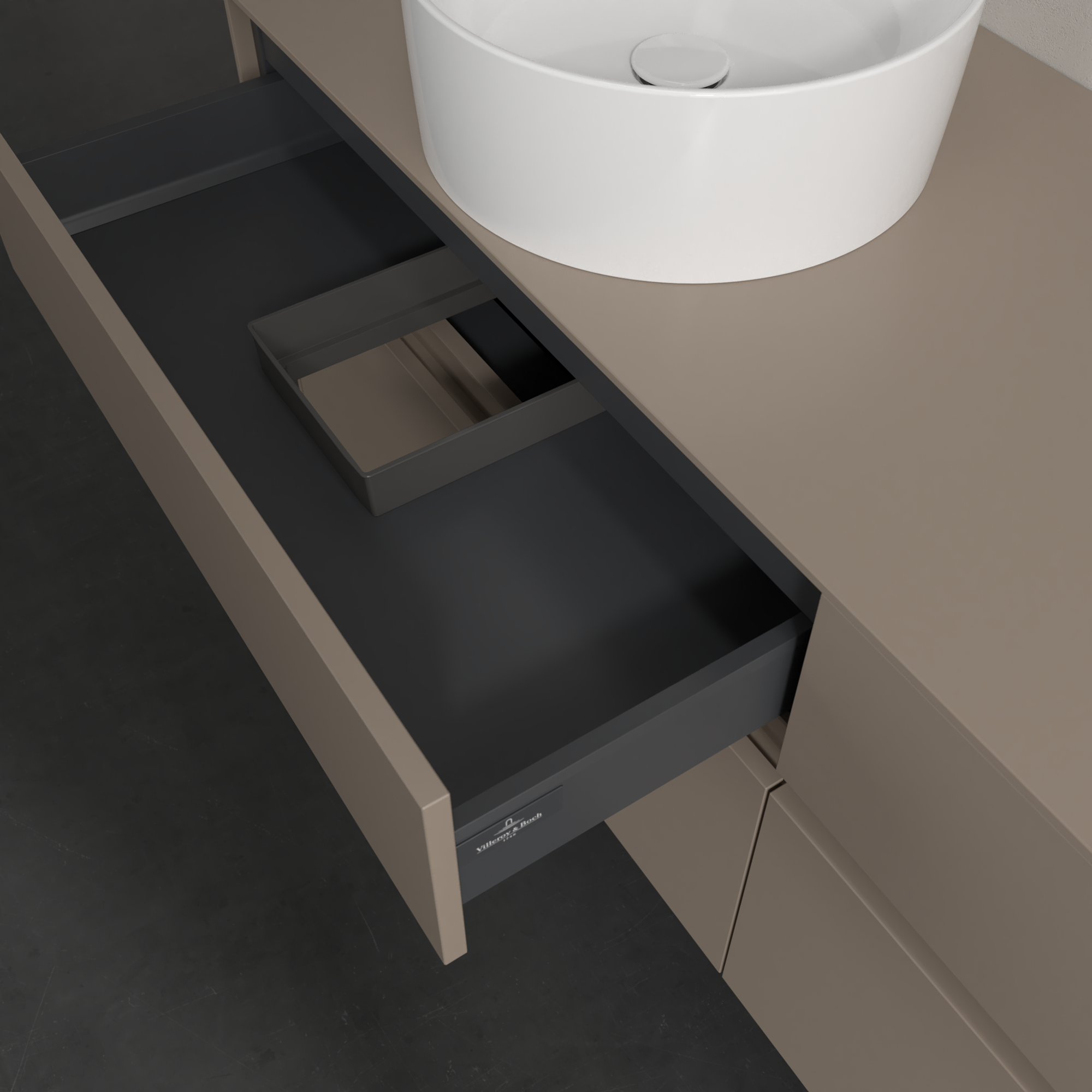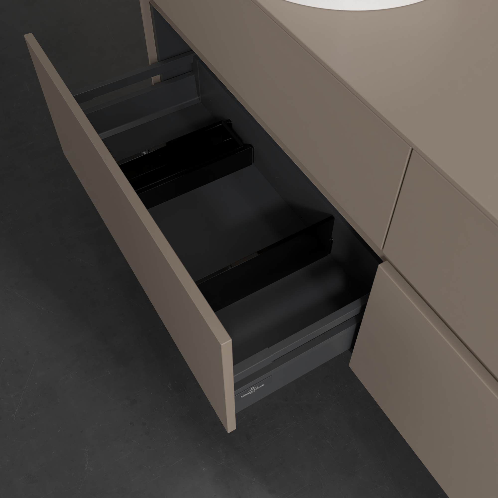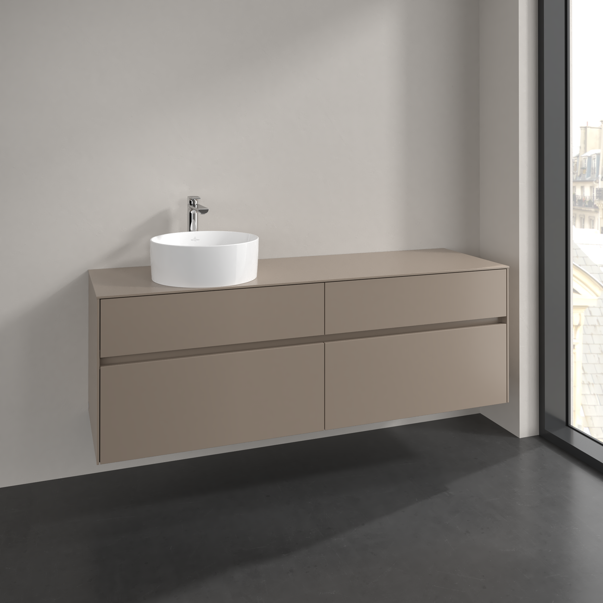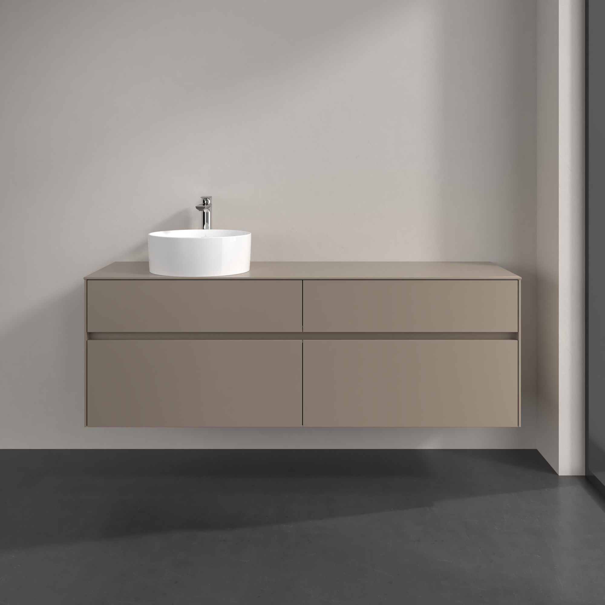Collaro Meuble sous plan, 4 tiroirs sur rails, 1600x548x500mm, Caisson: Taupe, Façade: Taupe