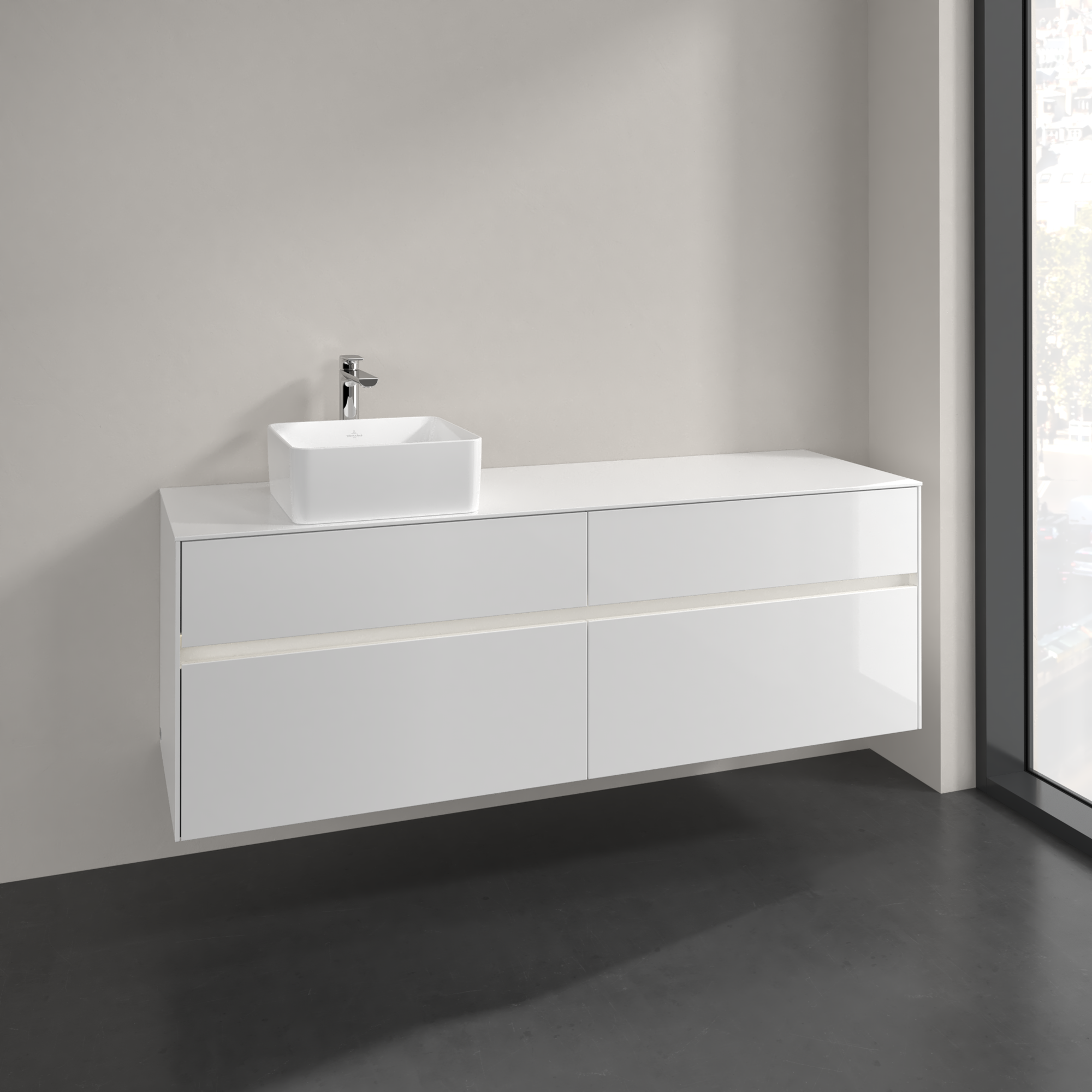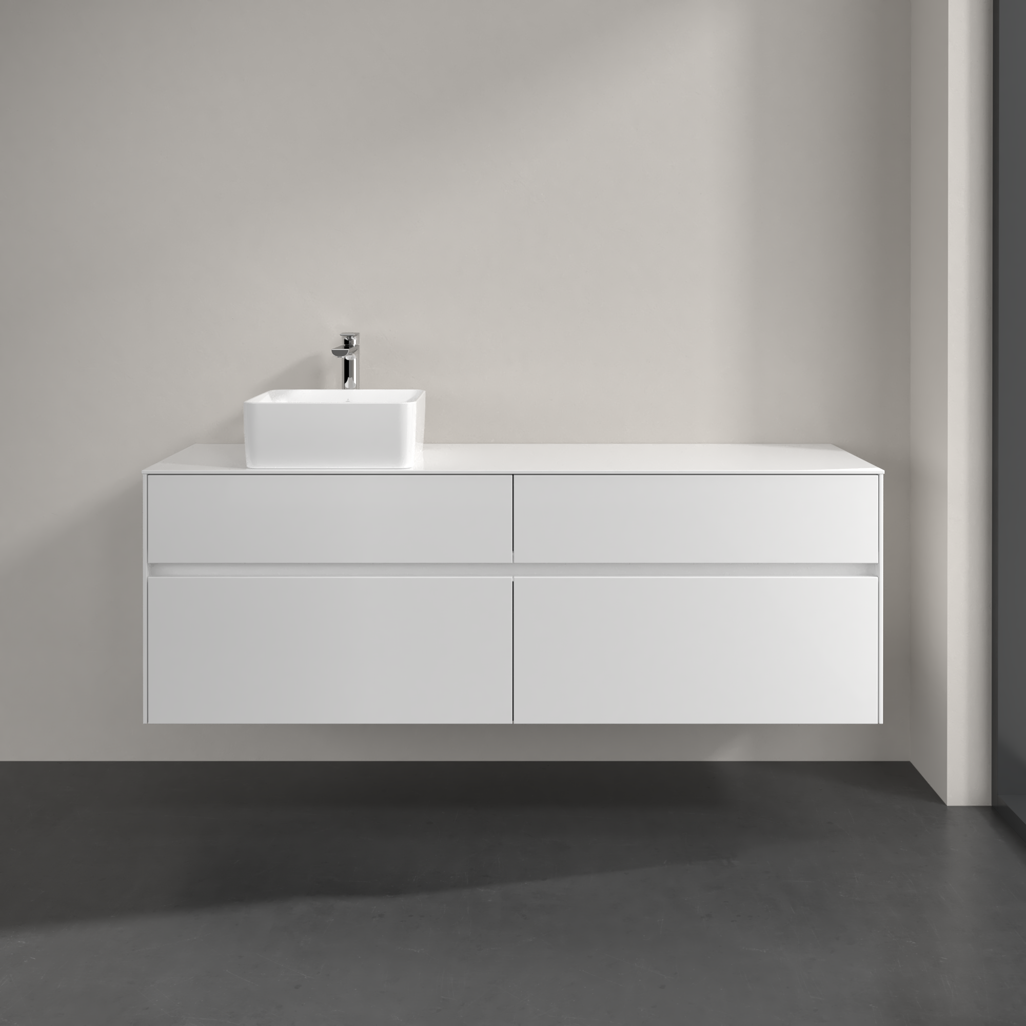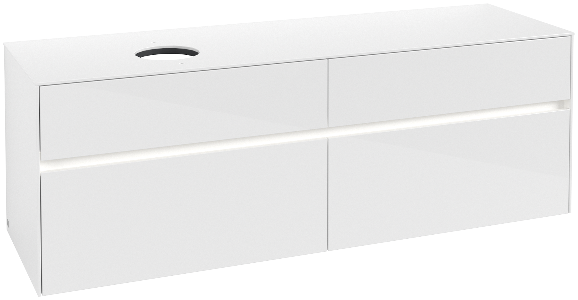 Collaro Meuble sous plan, avec éclairage, 4 tiroirs sur rails, 1600x548x500mm, Caisson: Glossy White, Façade: Glossy White