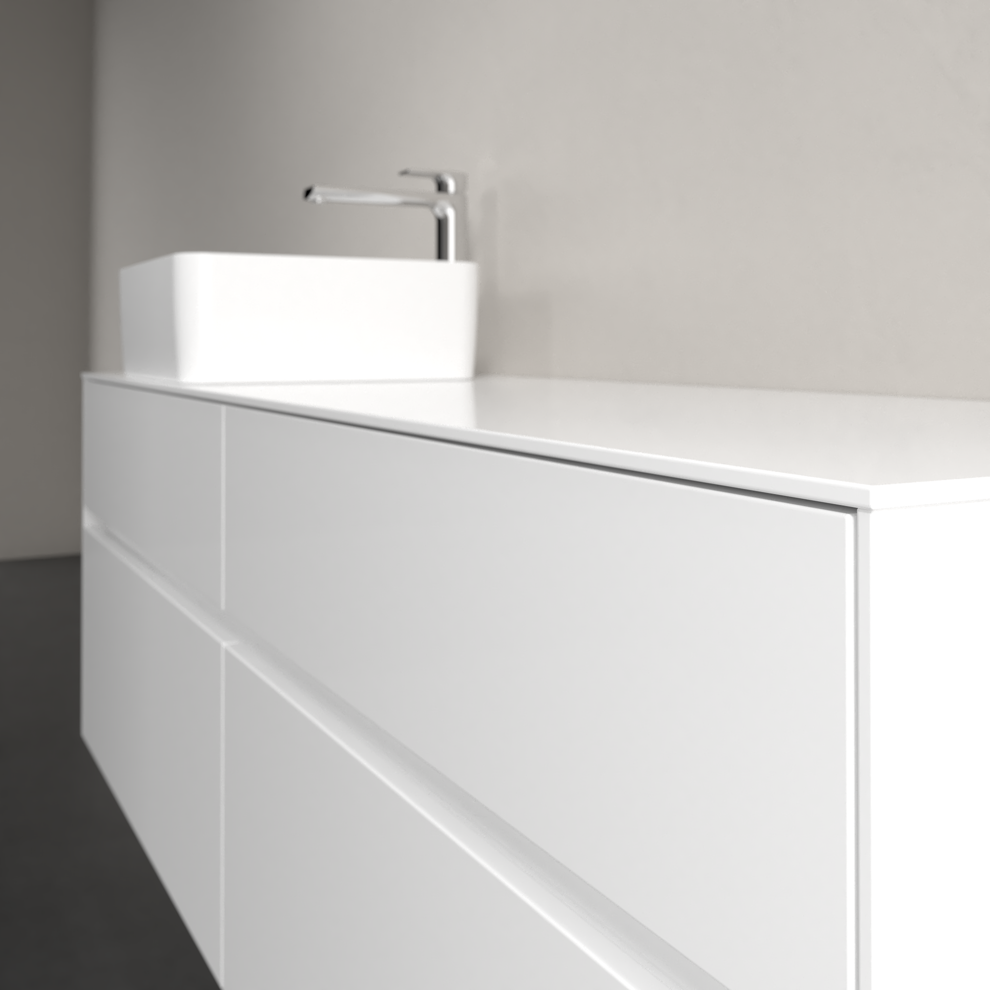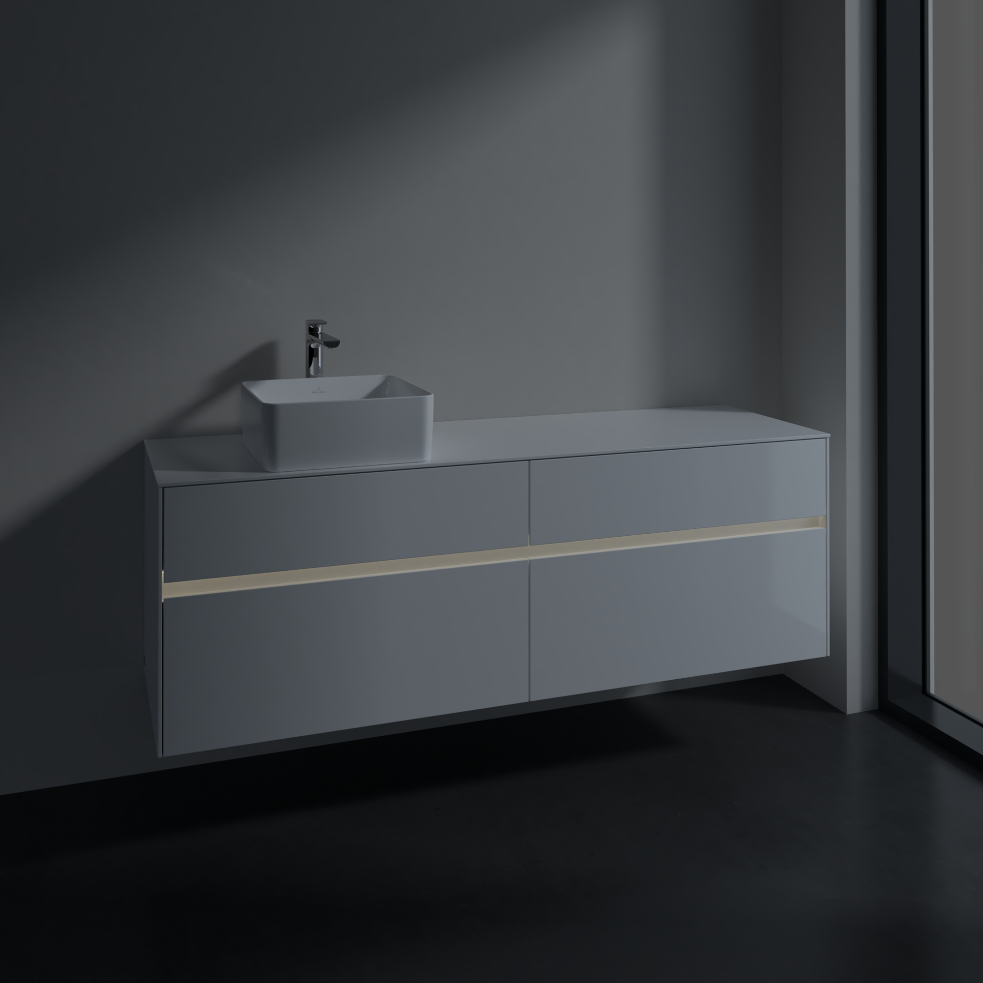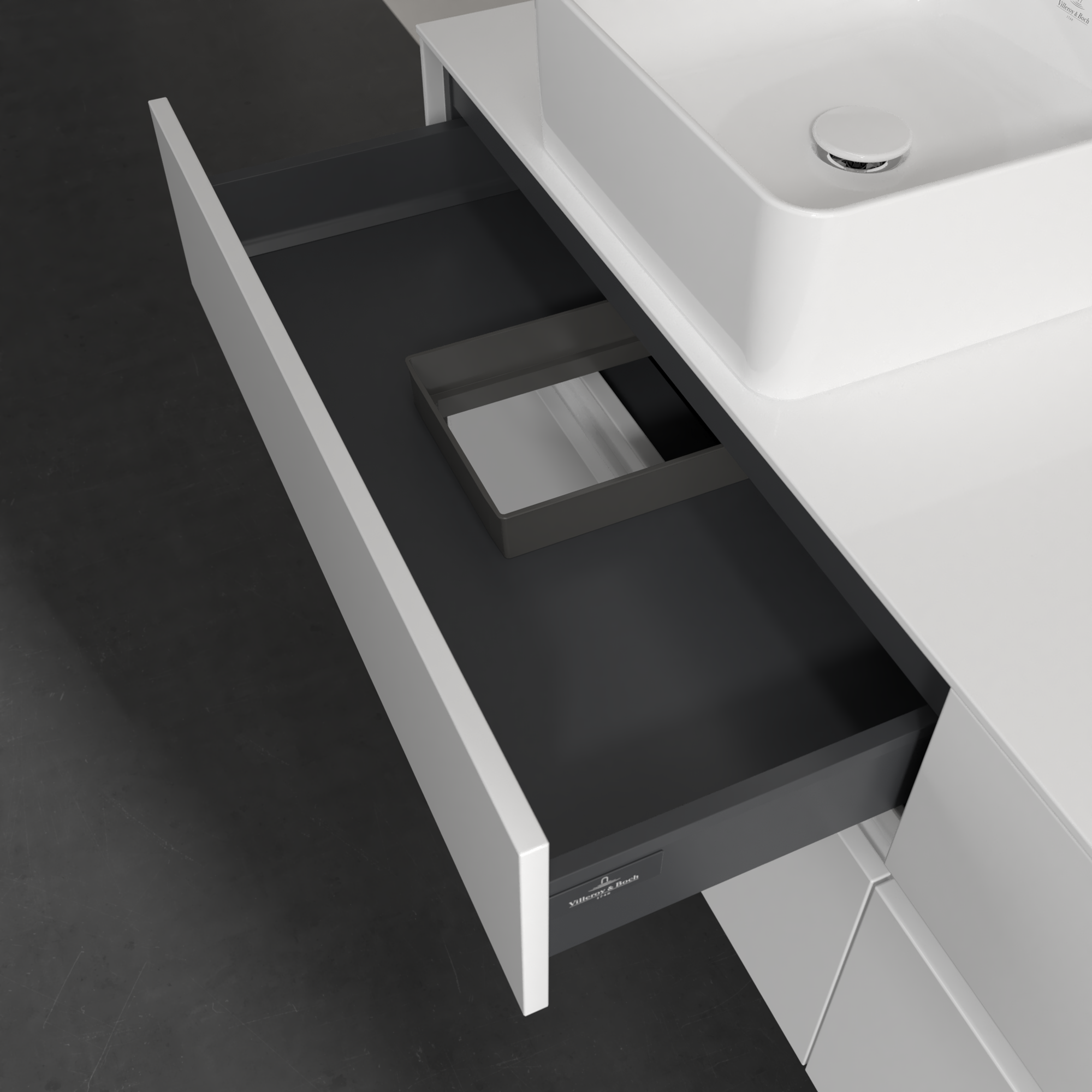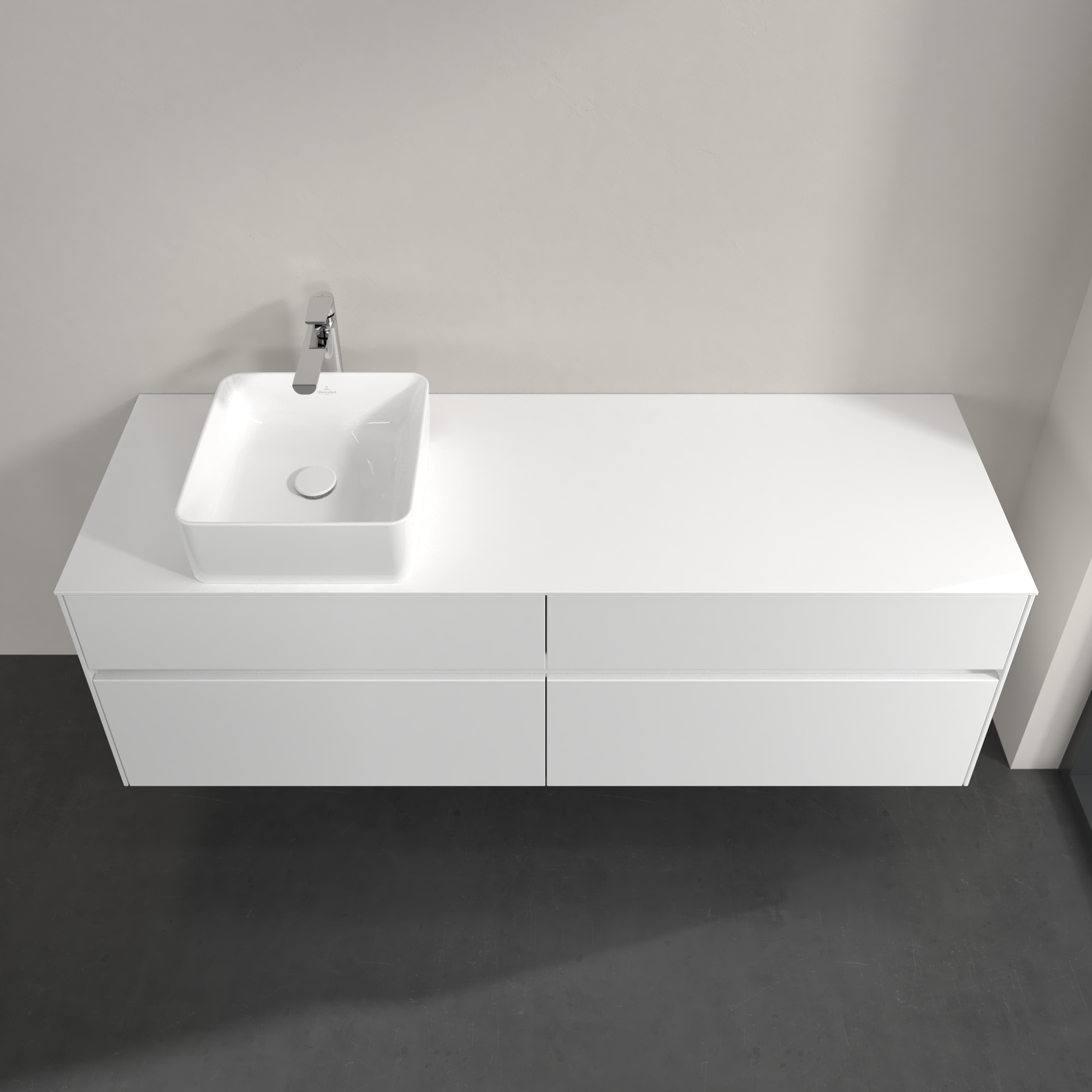 Collaro Meuble sous plan, avec éclairage, 4 tiroirs sur rails, 1600x548x500mm, Caisson: Glossy White, Façade: Glossy White