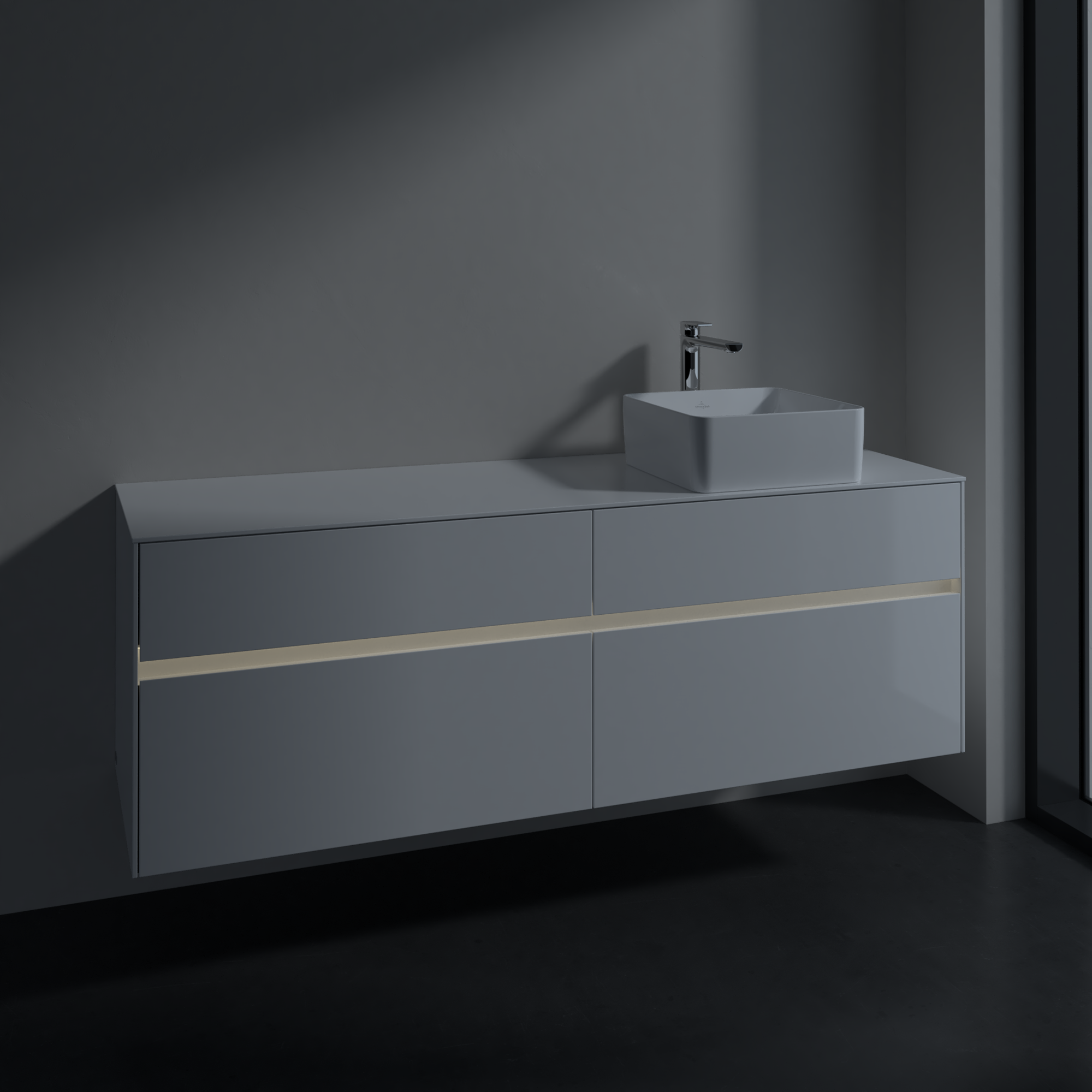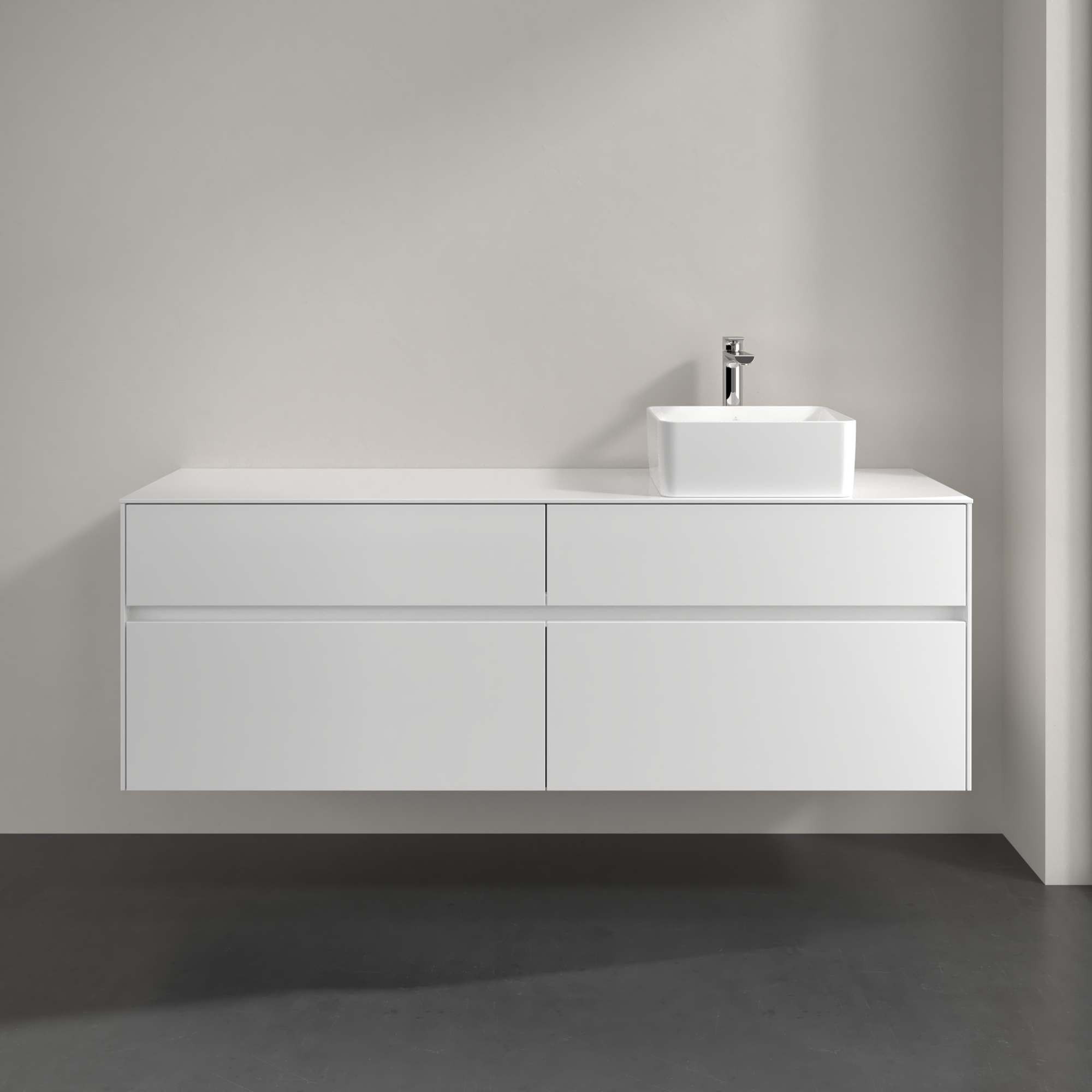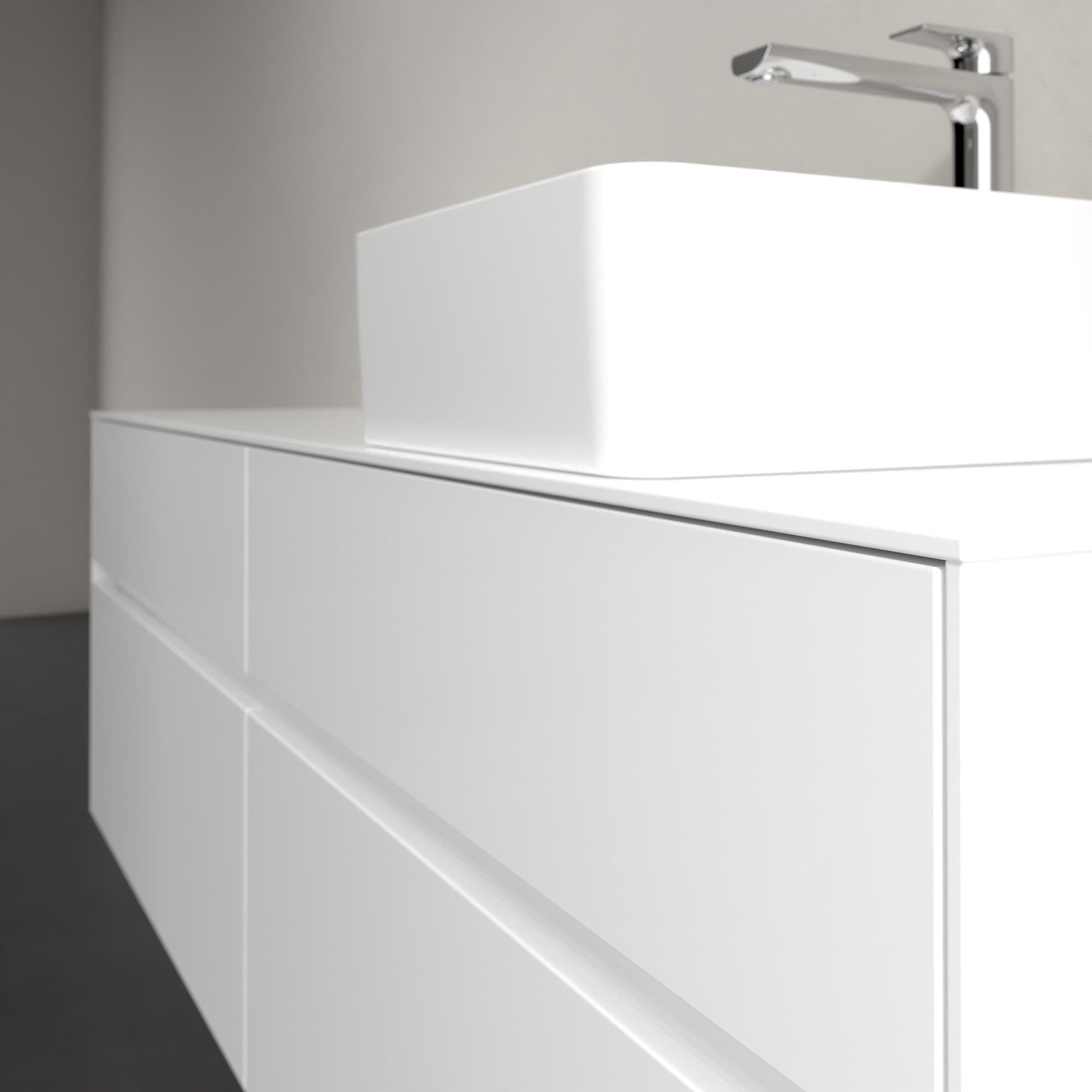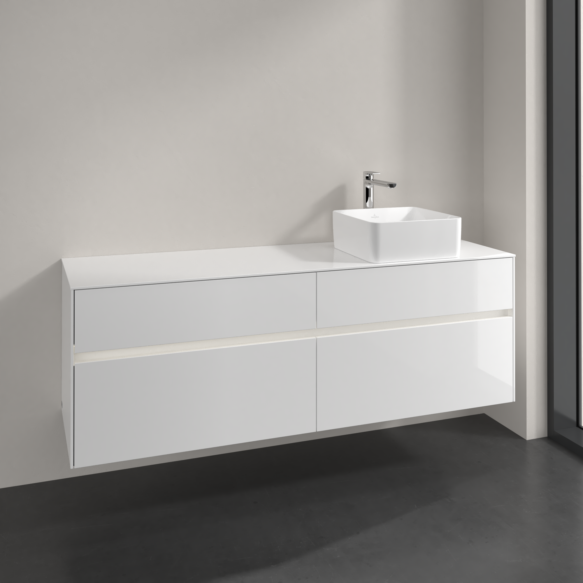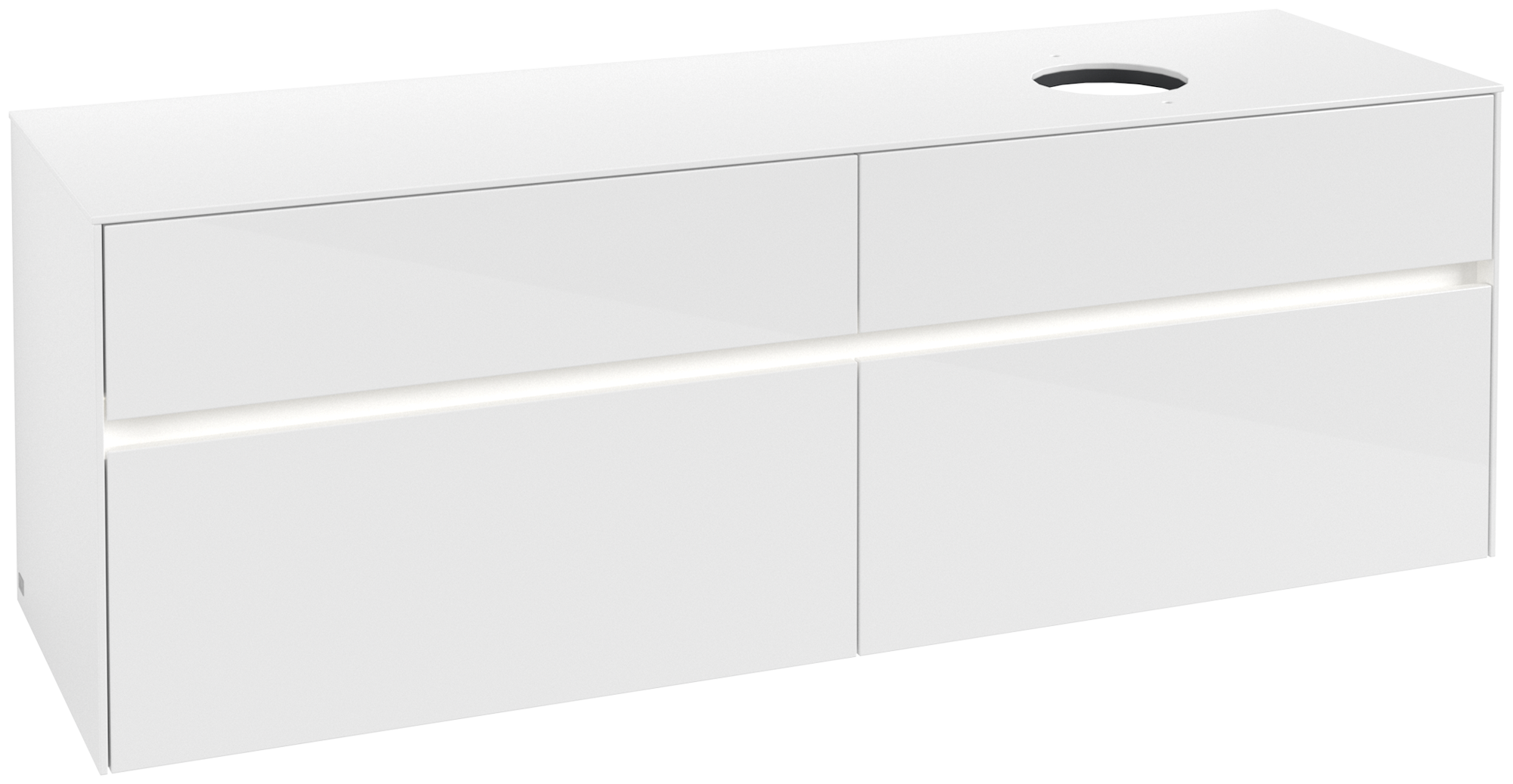 Collaro Meuble sous plan, avec éclairage, 4 tiroirs sur rails, 1600x548x500mm, Caisson: Glossy White, Façade: Glossy White