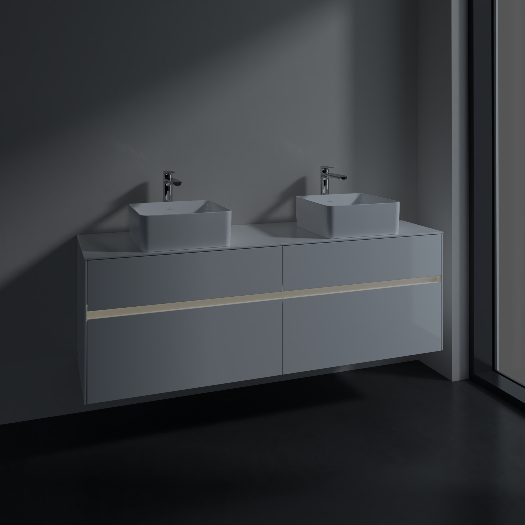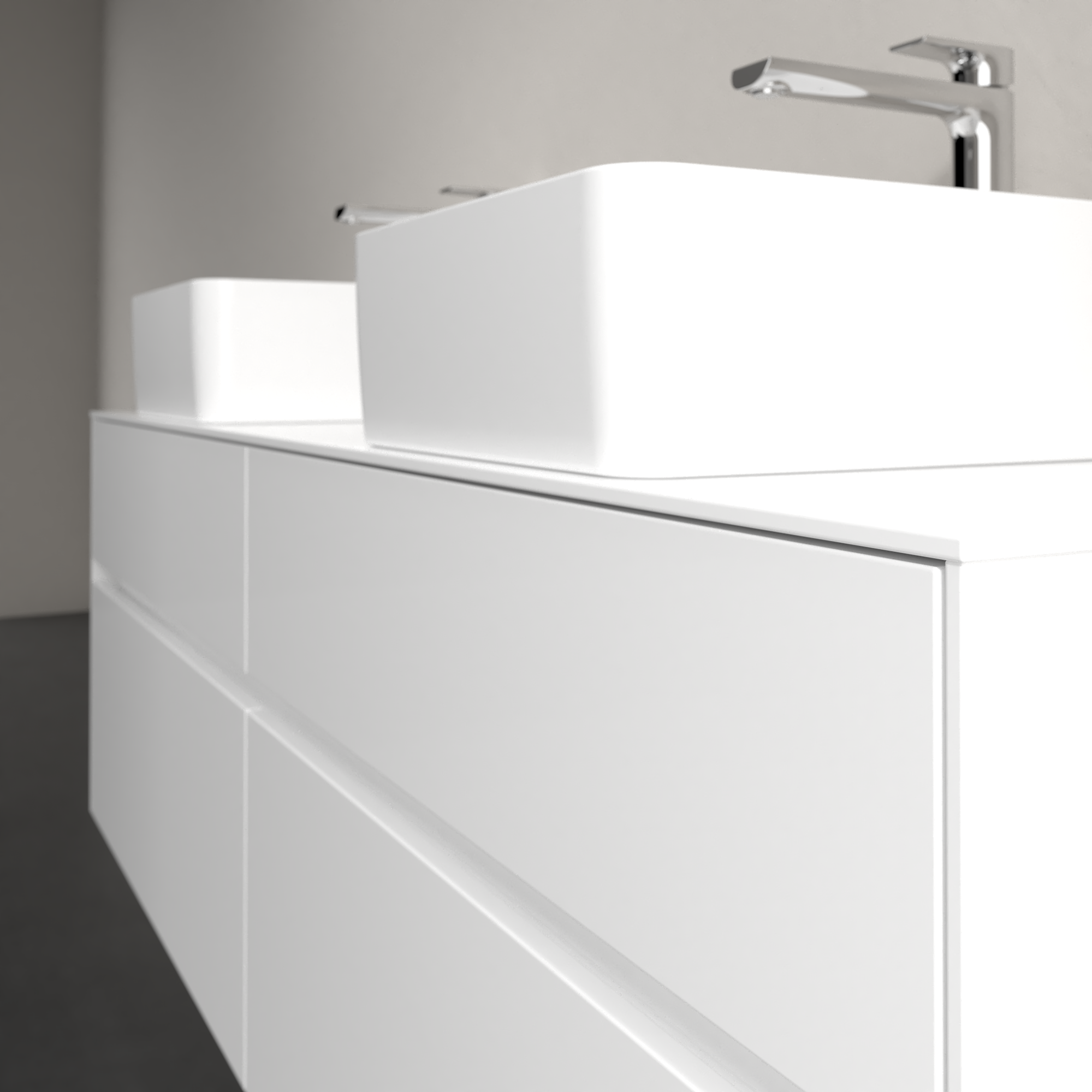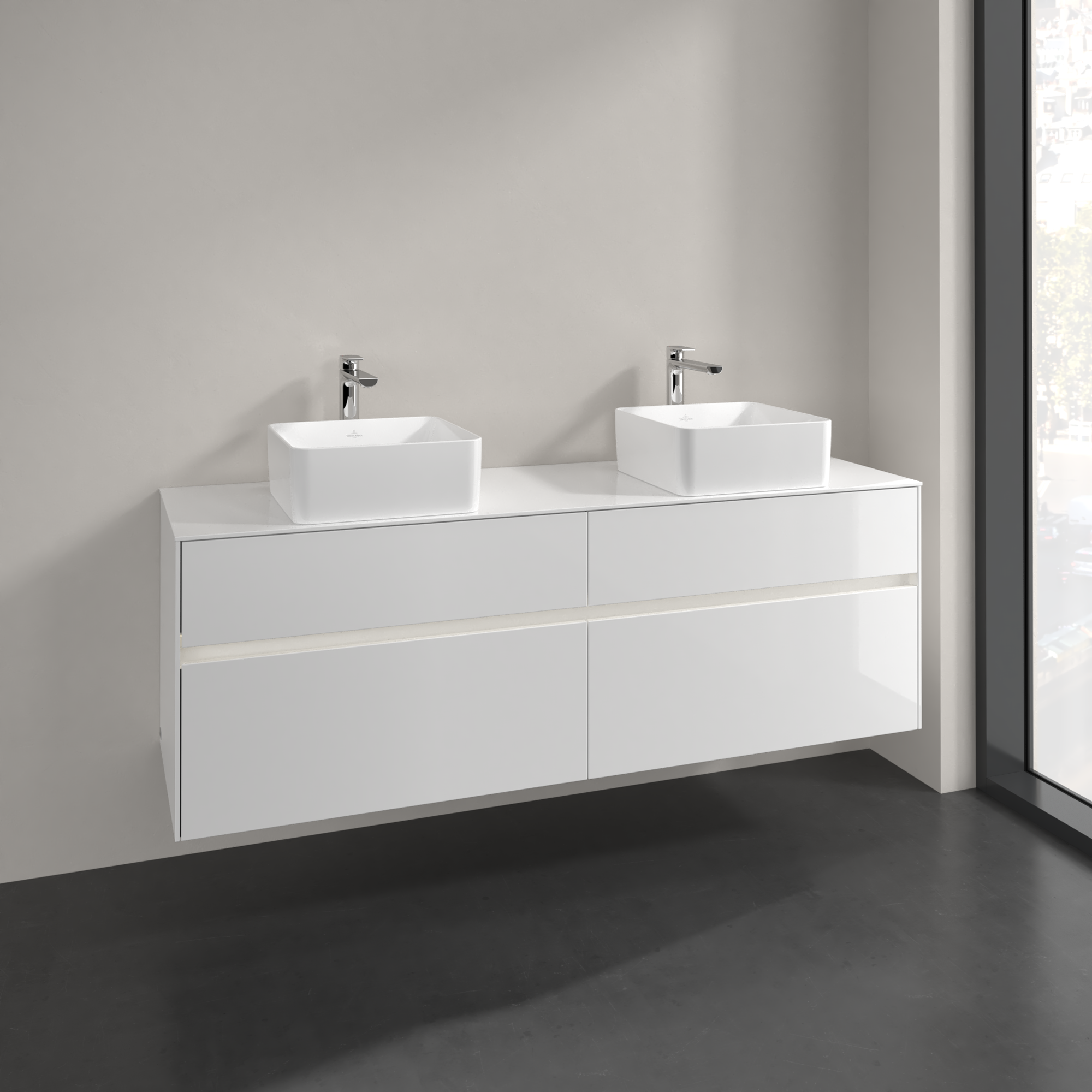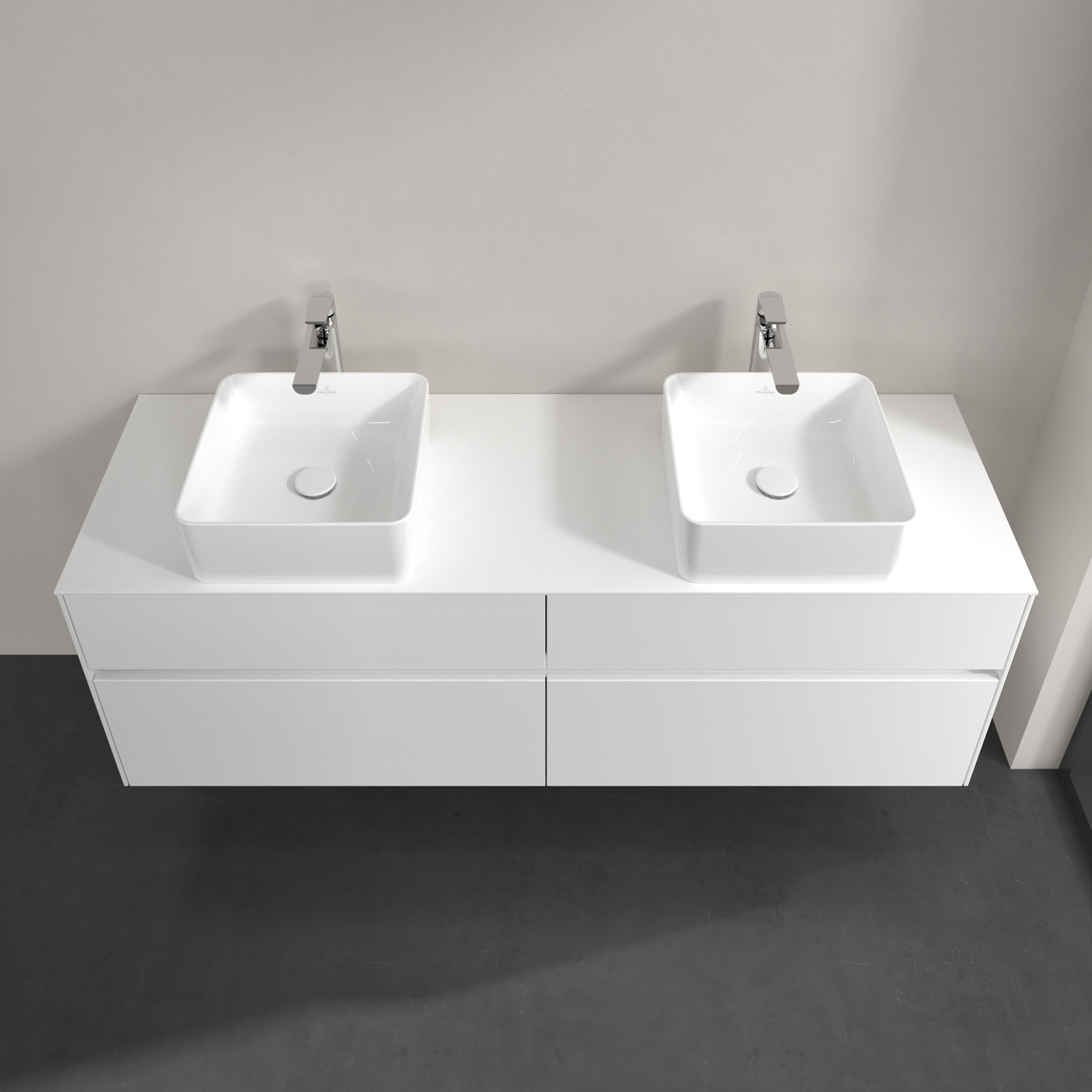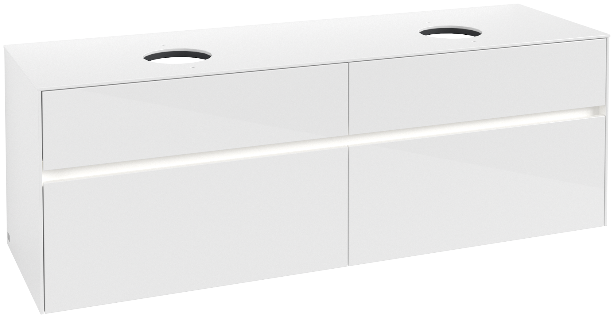 Collaro Meuble sous plan, avec éclairage, 4 tiroirs sur rails, 1600x548x500mm, Caisson: Glossy White, Façade: Glossy White