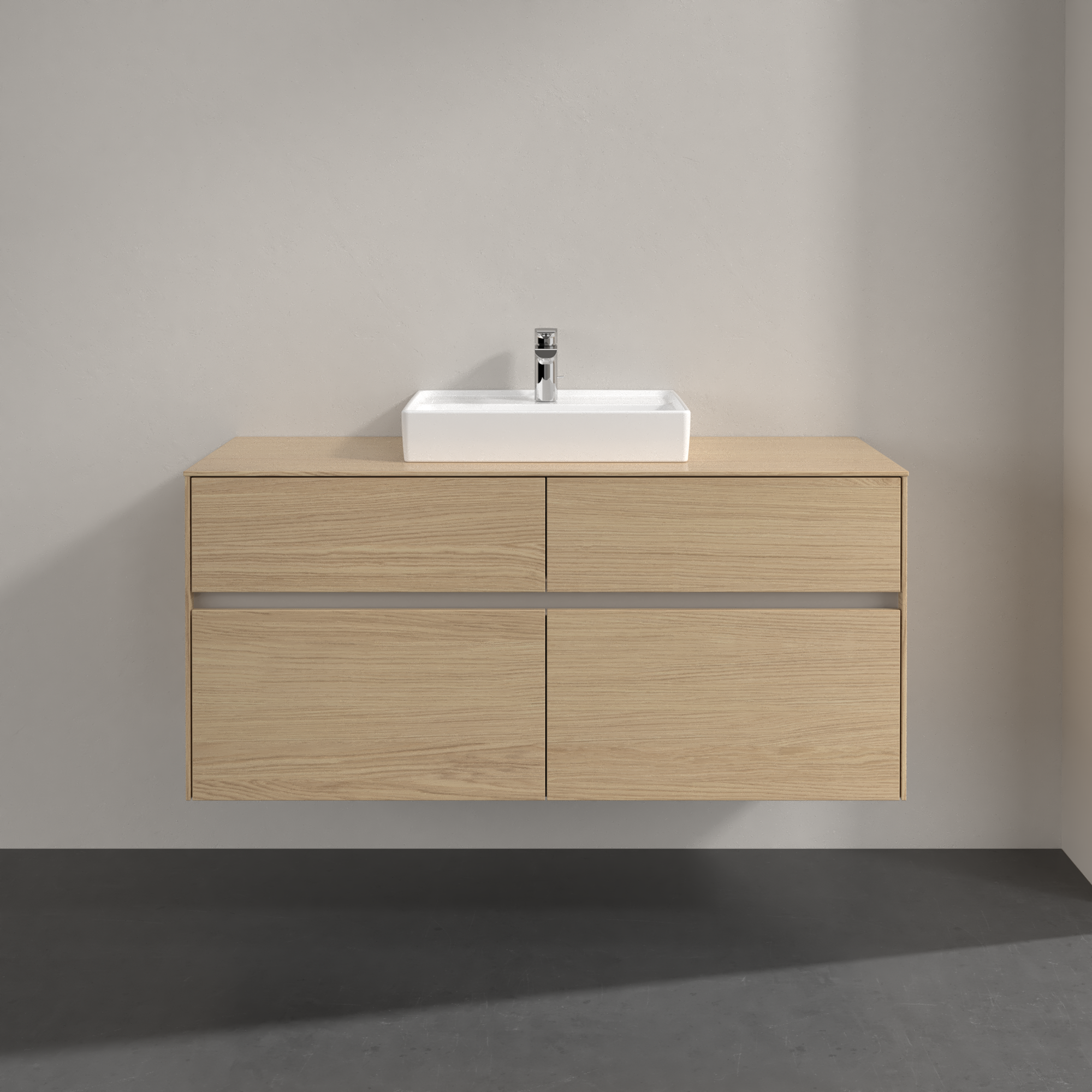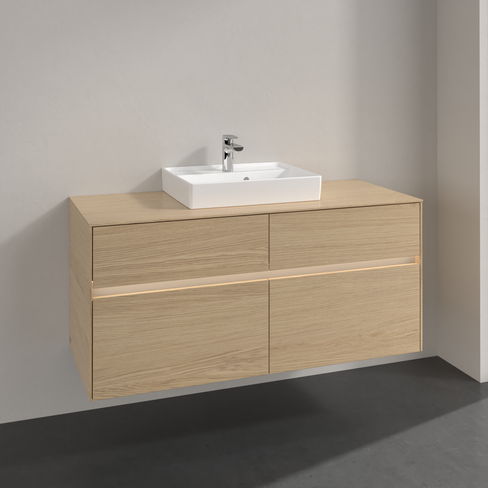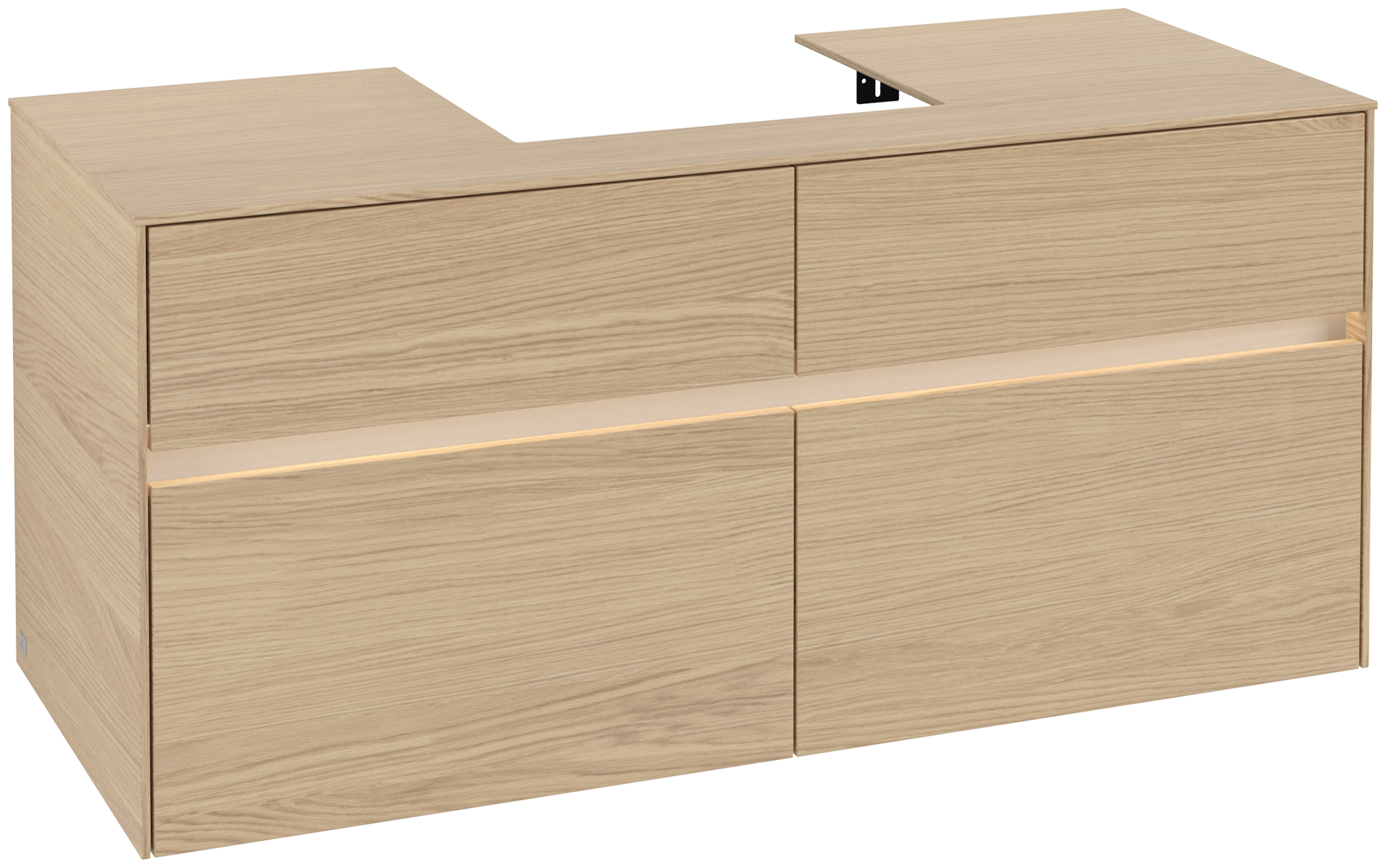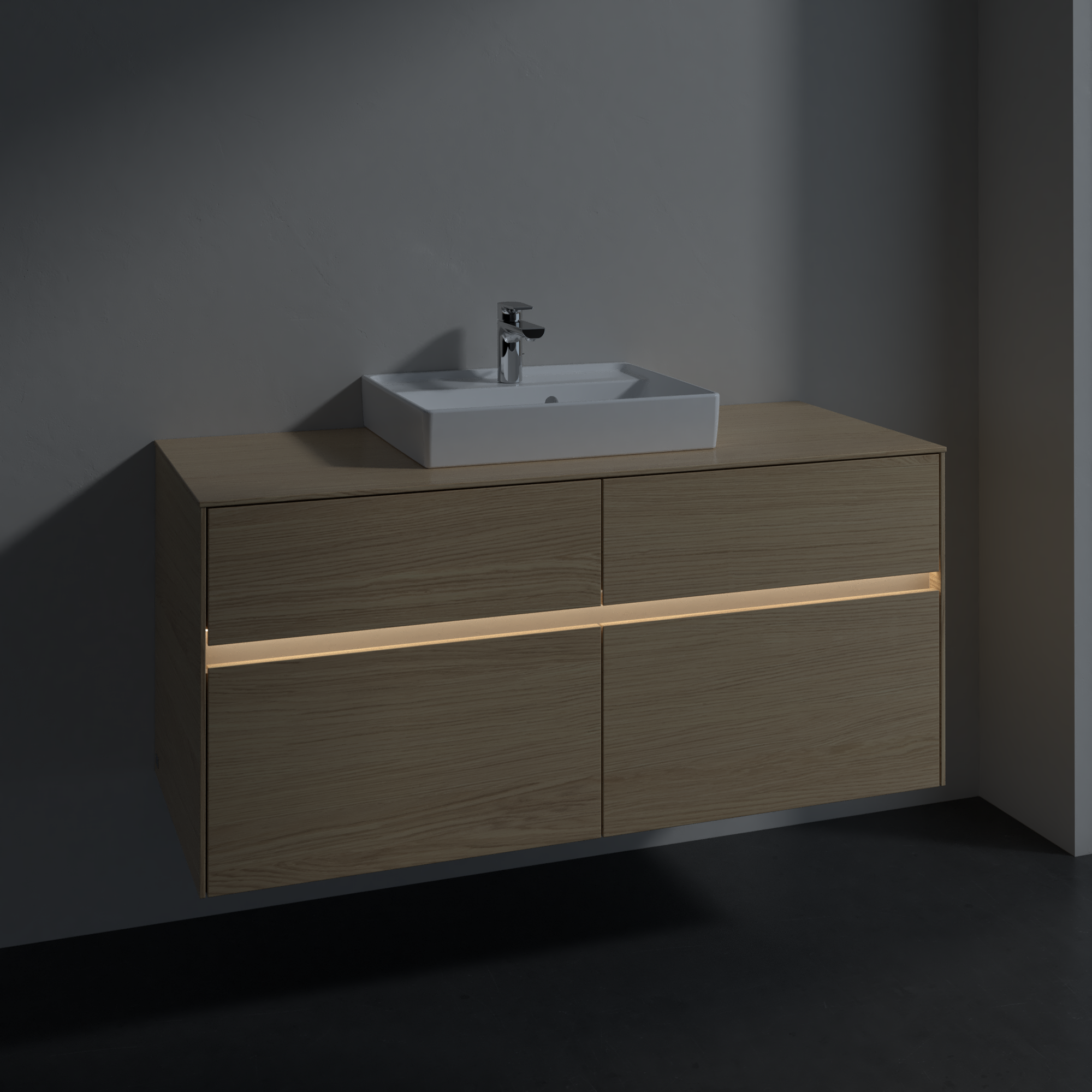 Collaro Meuble sous plan, avec éclairage, 4 tiroirs sur rails, 1200x548x500mm, Caisson: Nordic Oak, Façade: Nordic Oak
