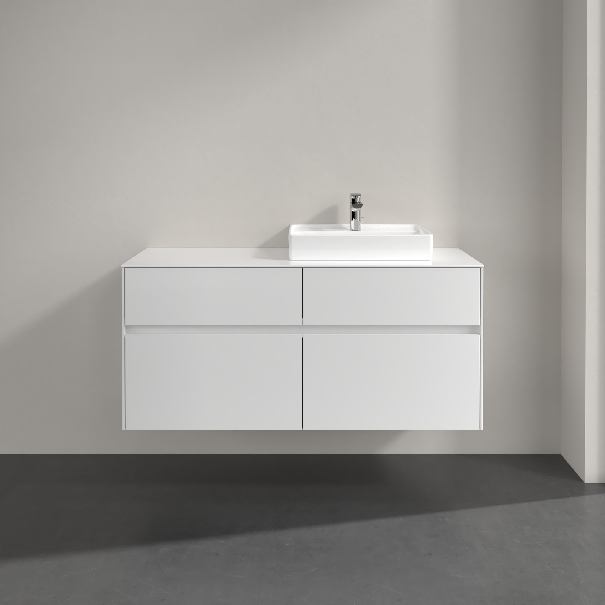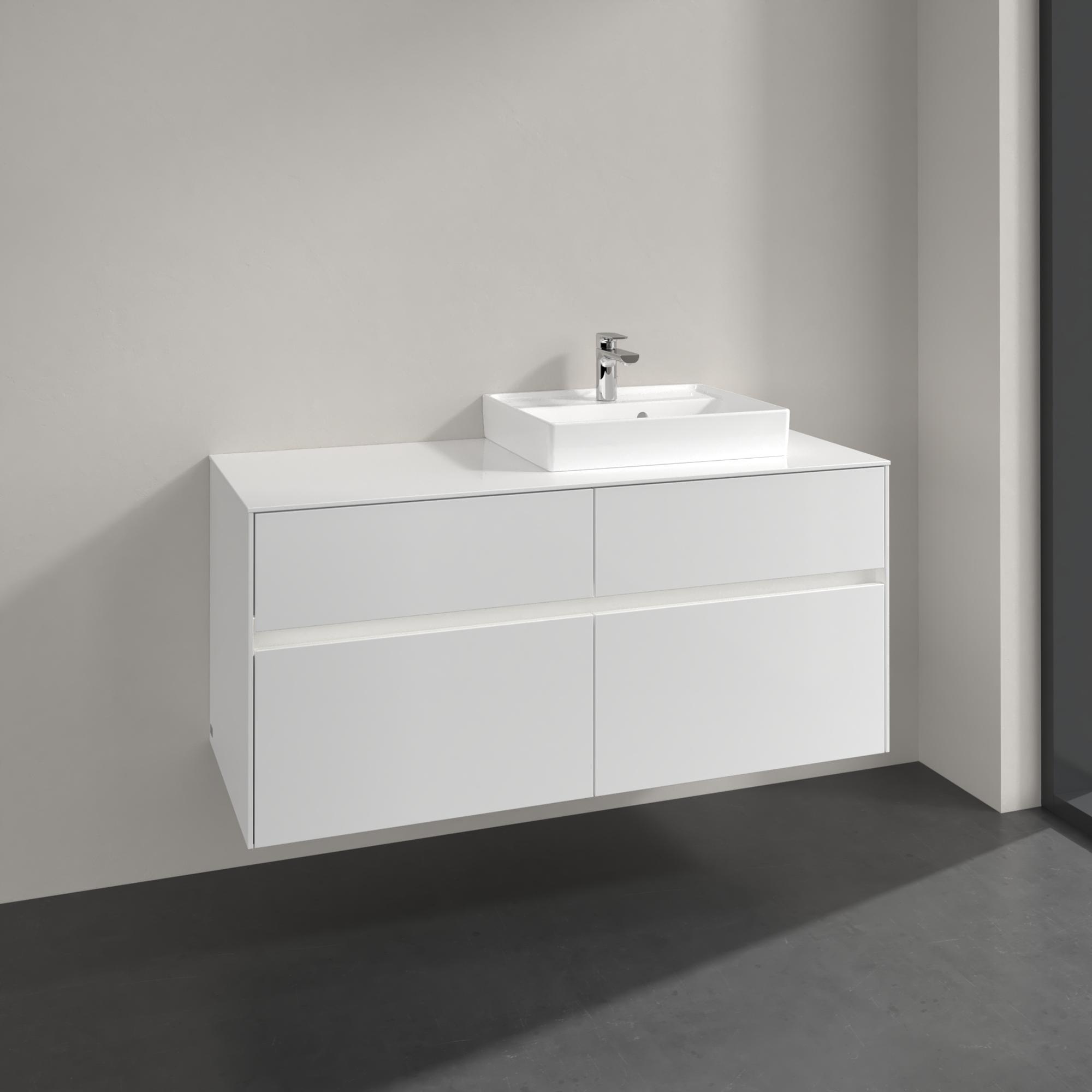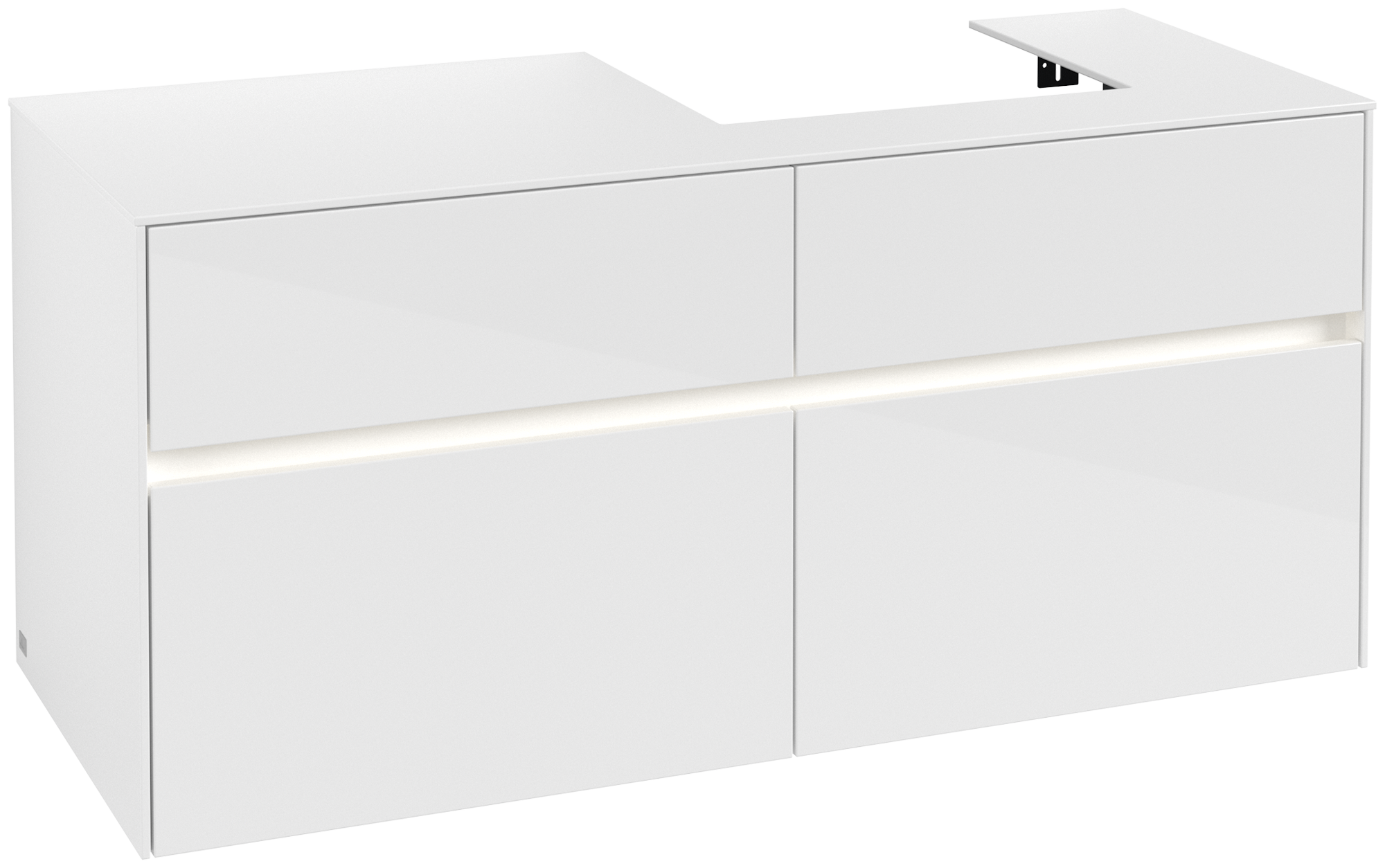 Collaro Meuble sous plan, avec éclairage, 4 tiroirs sur rails, 1200x548x500mm, Caisson: Glossy White, Façade: Glossy White