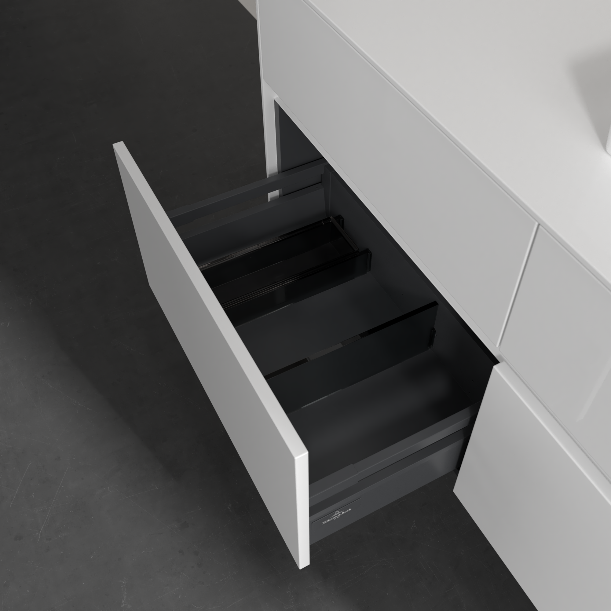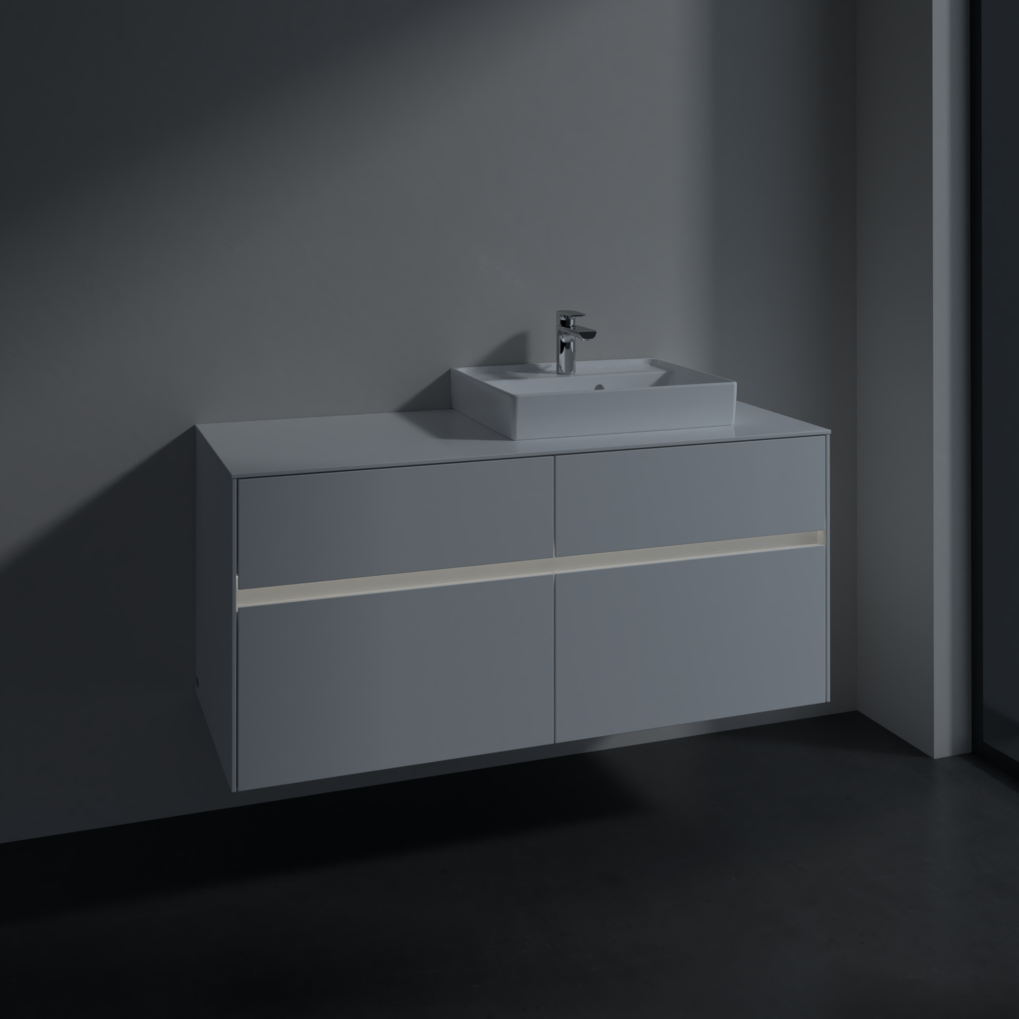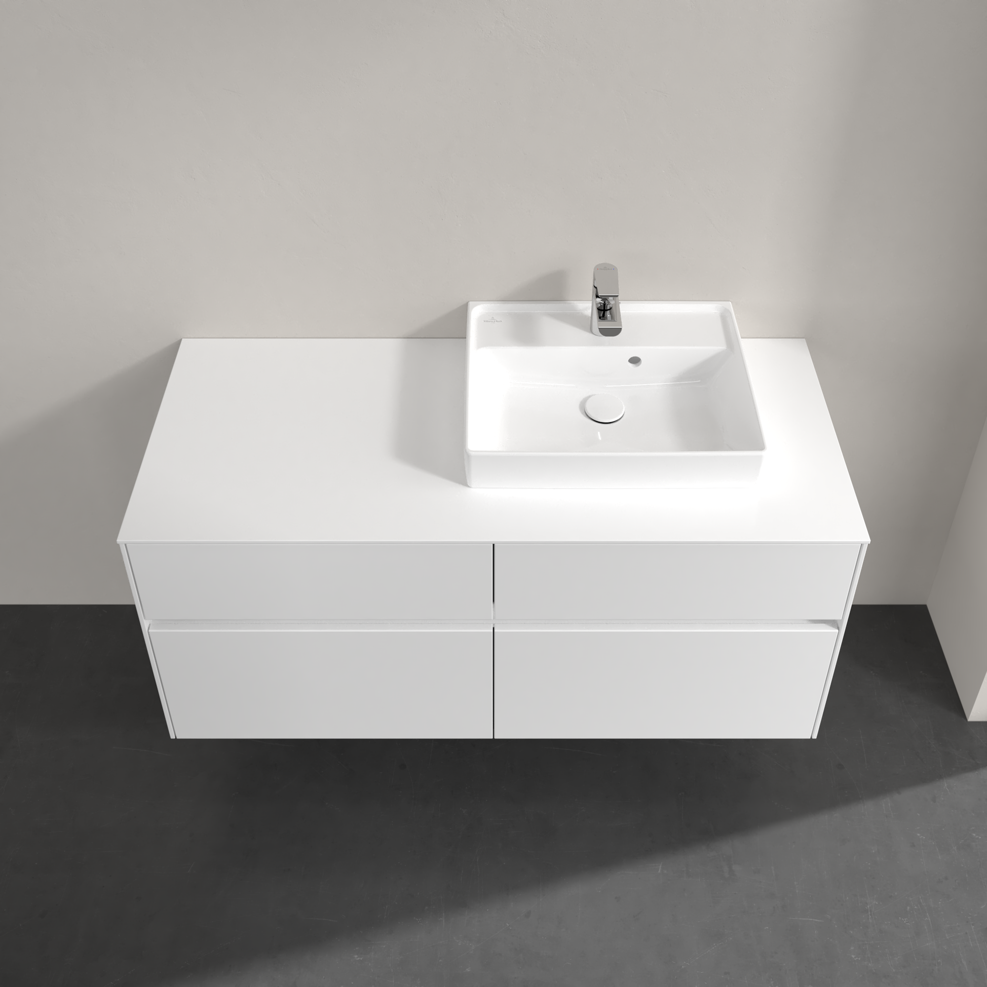 Collaro Meuble sous plan, avec éclairage, 4 tiroirs sur rails, 1200x548x500mm, Caisson: Glossy White, Façade: Glossy White