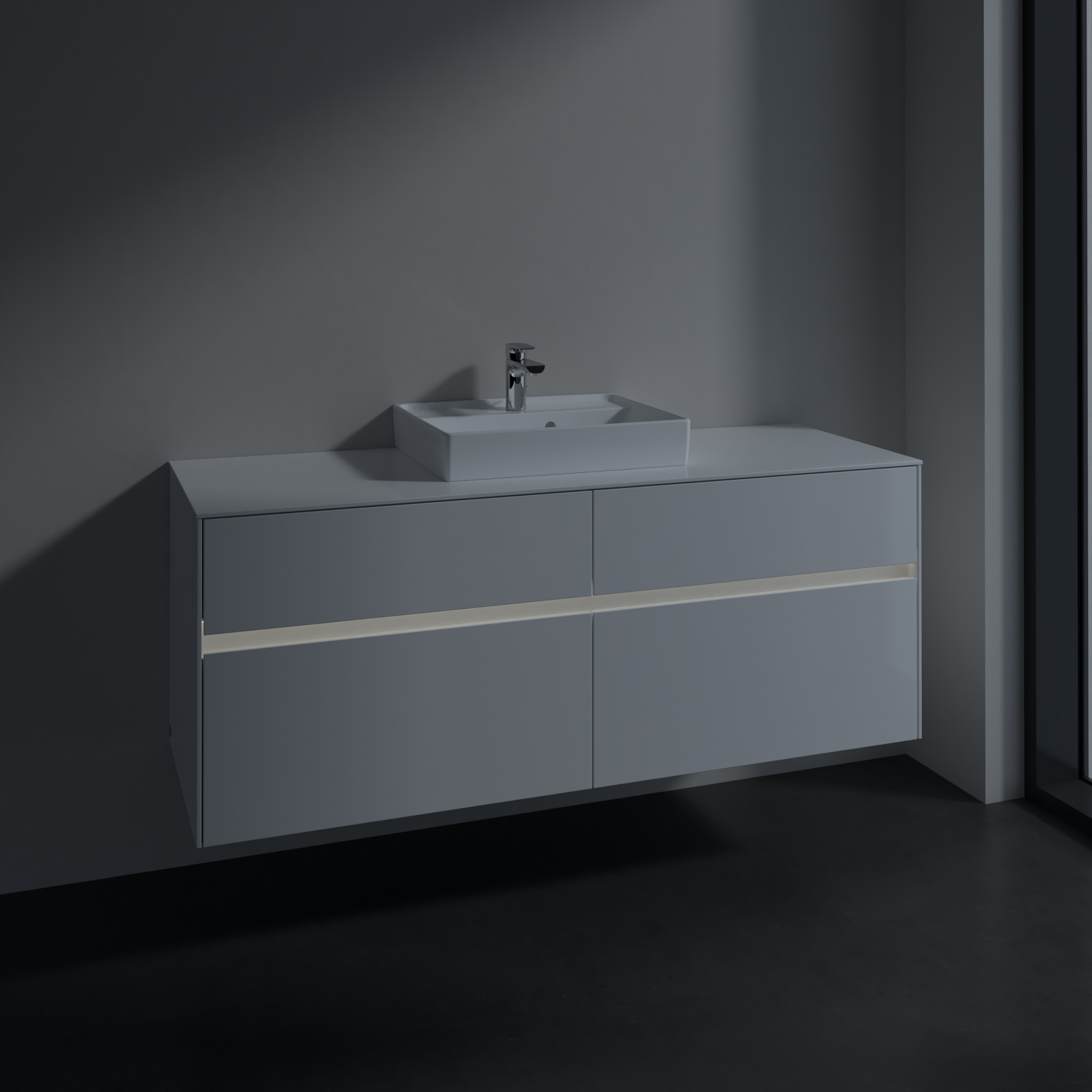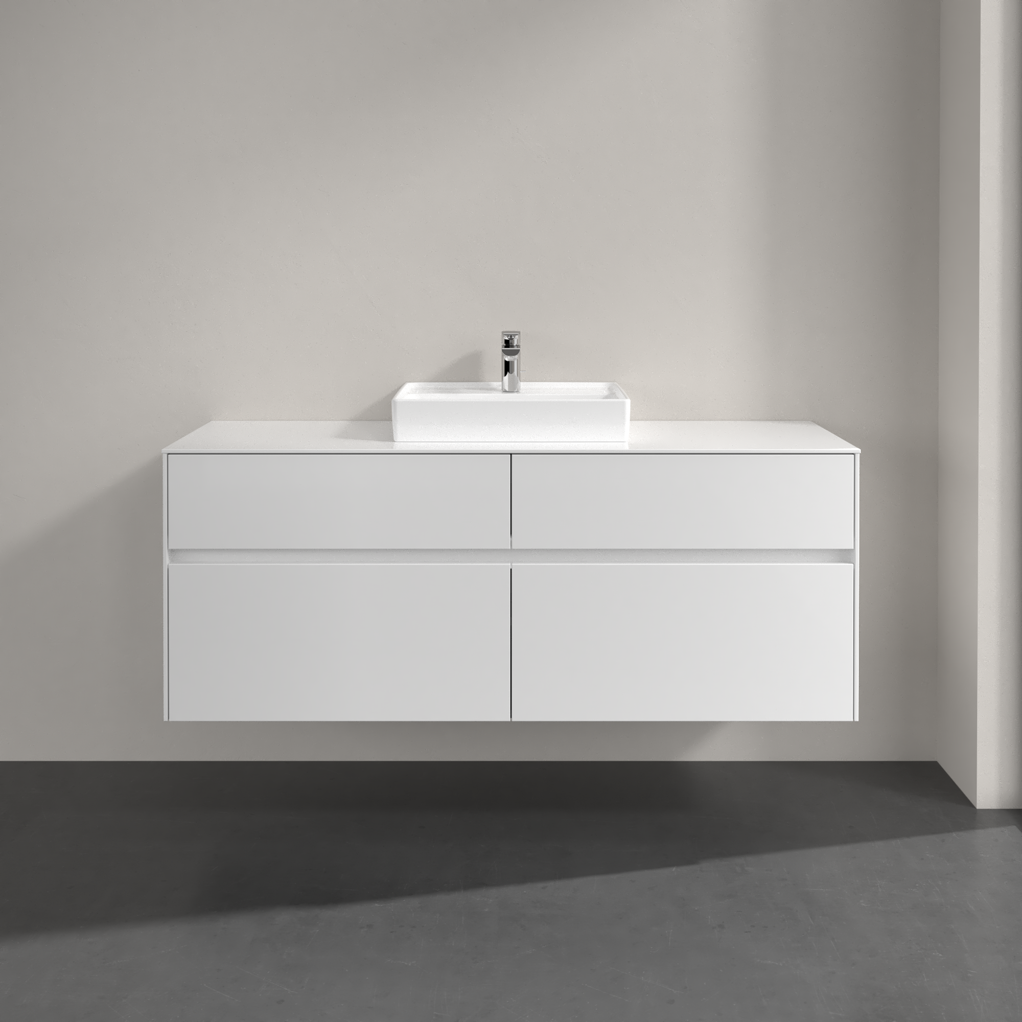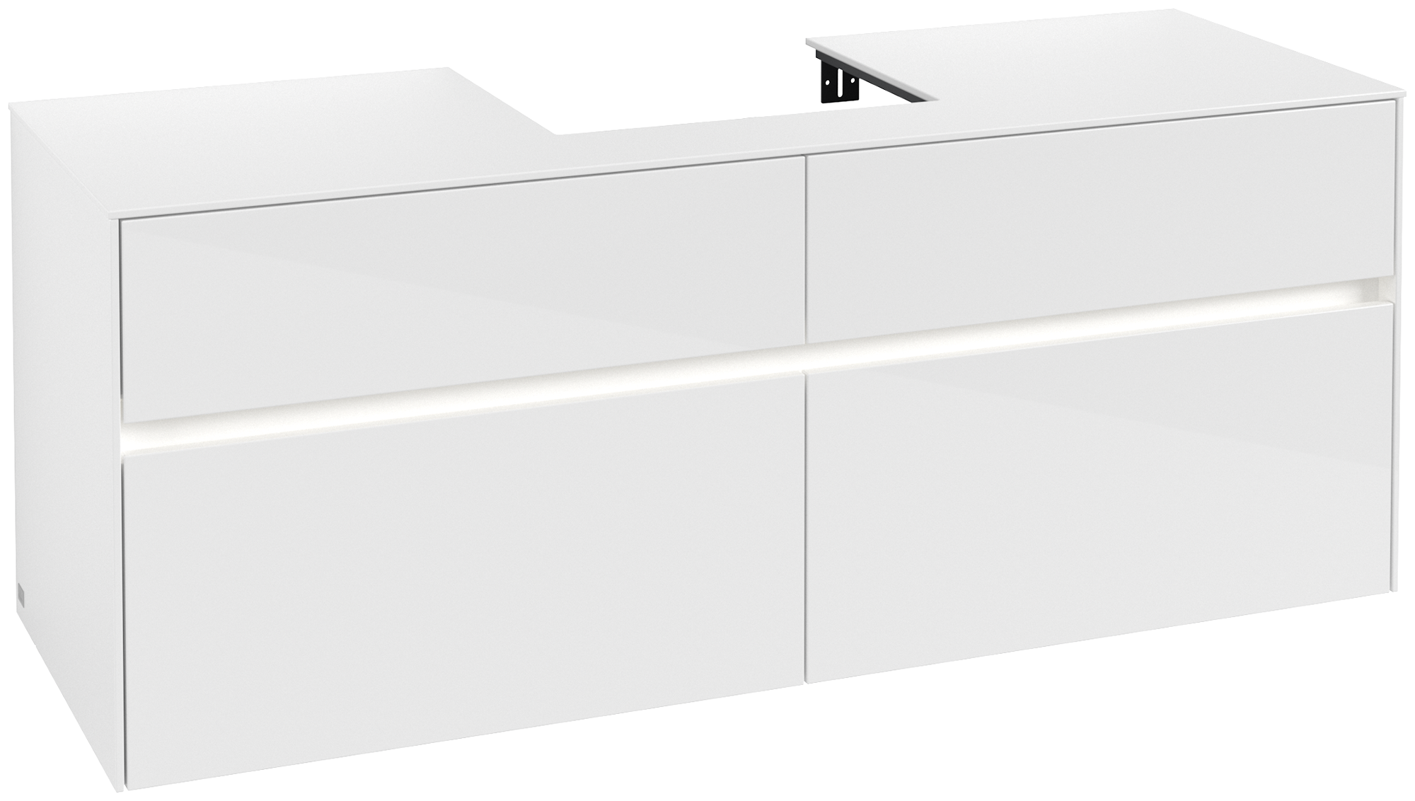 Collaro Meuble sous plan, avec éclairage, 4 tiroirs sur rails, 1400x548x500mm, Caisson: Glossy White, Façade: Glossy White