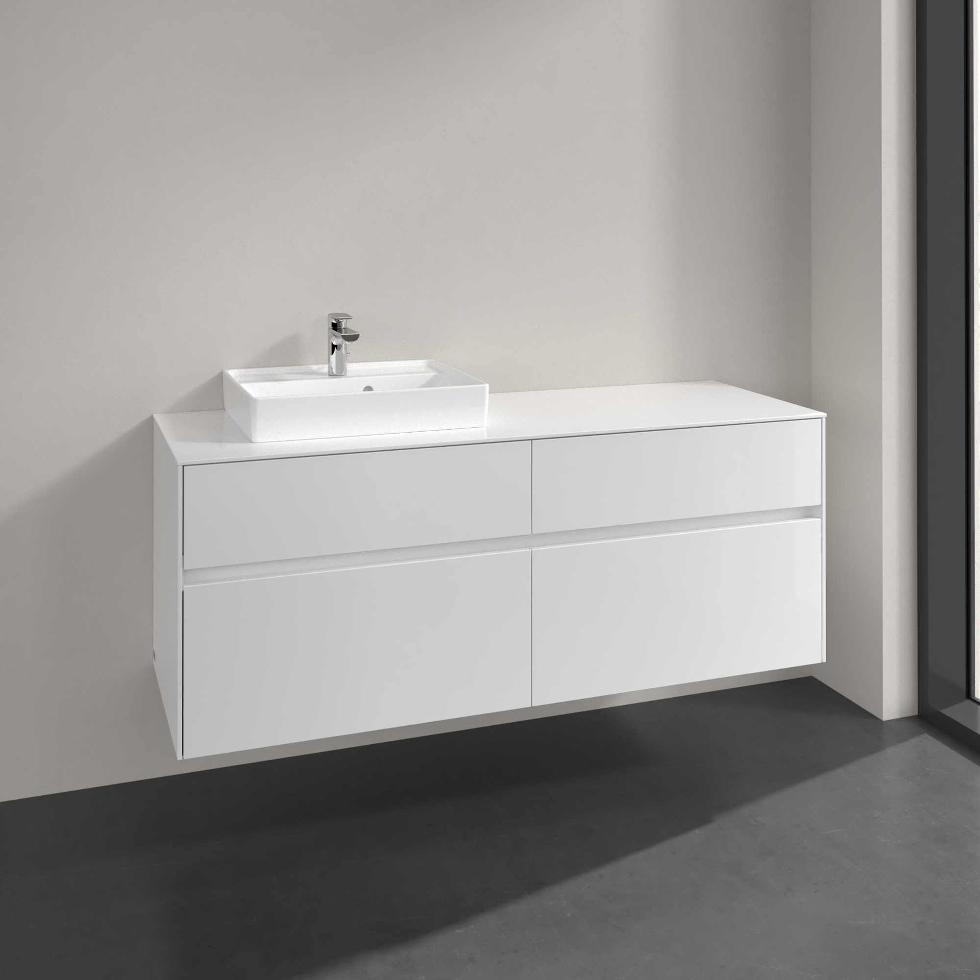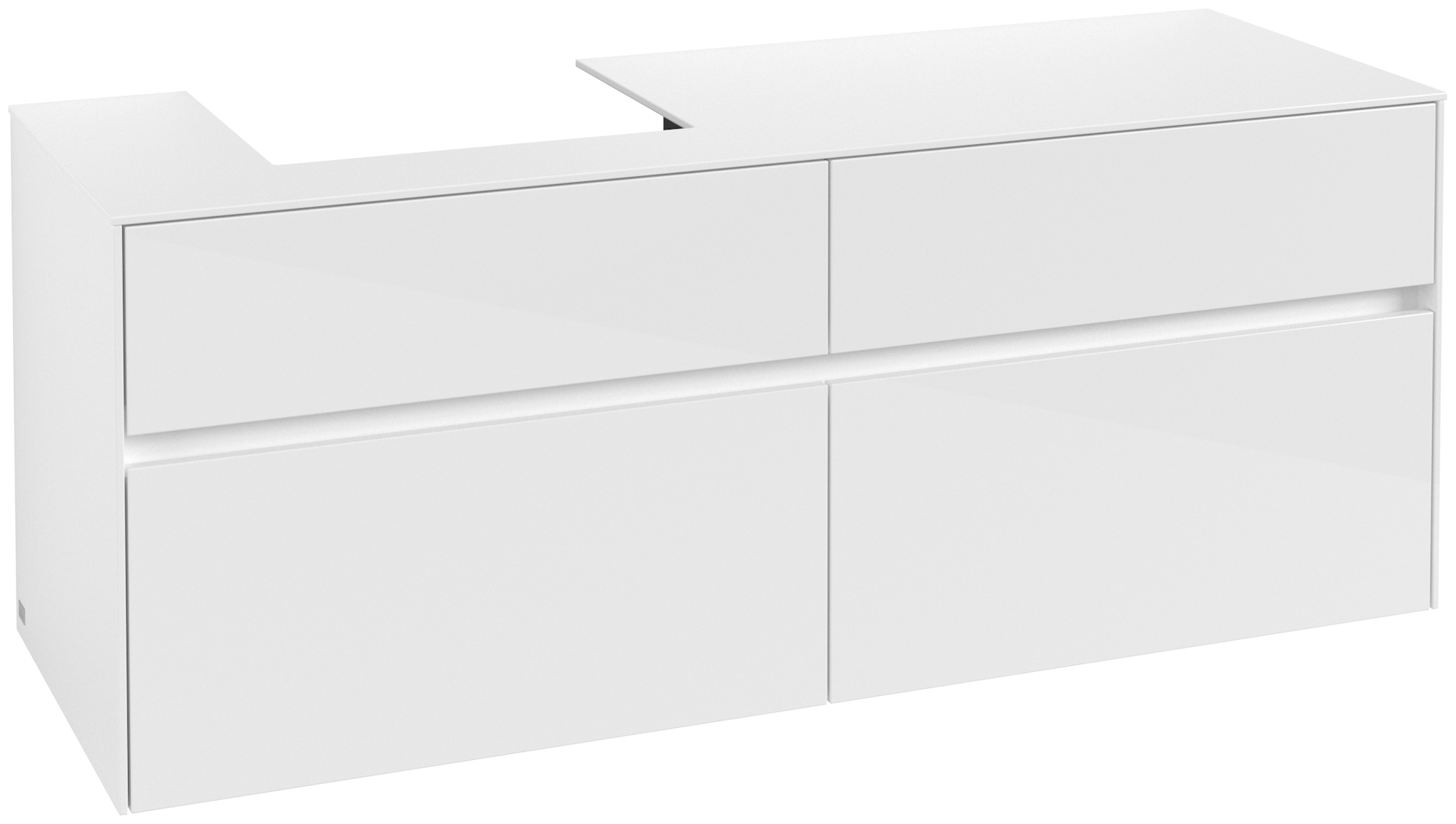 Collaro Meuble sous plan, 4 tiroirs sur rails, 1400x548x500mm, Caisson: Glossy White, Façade: Glossy White