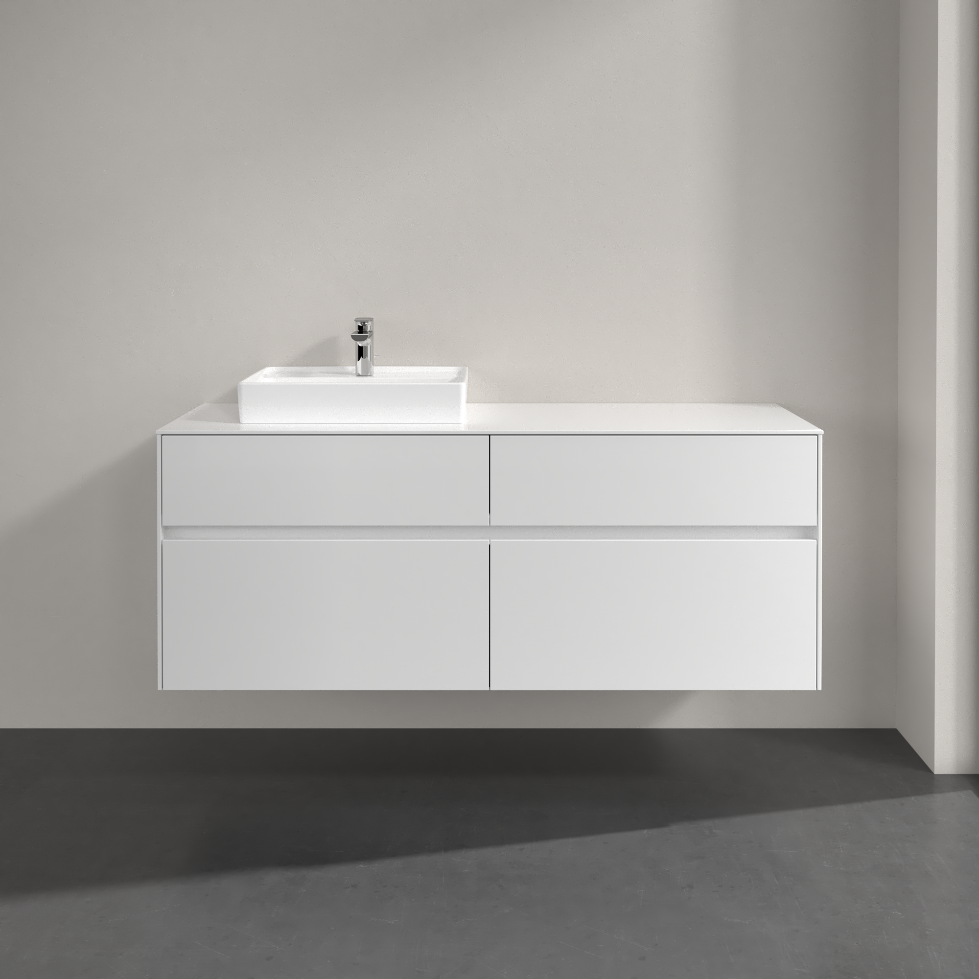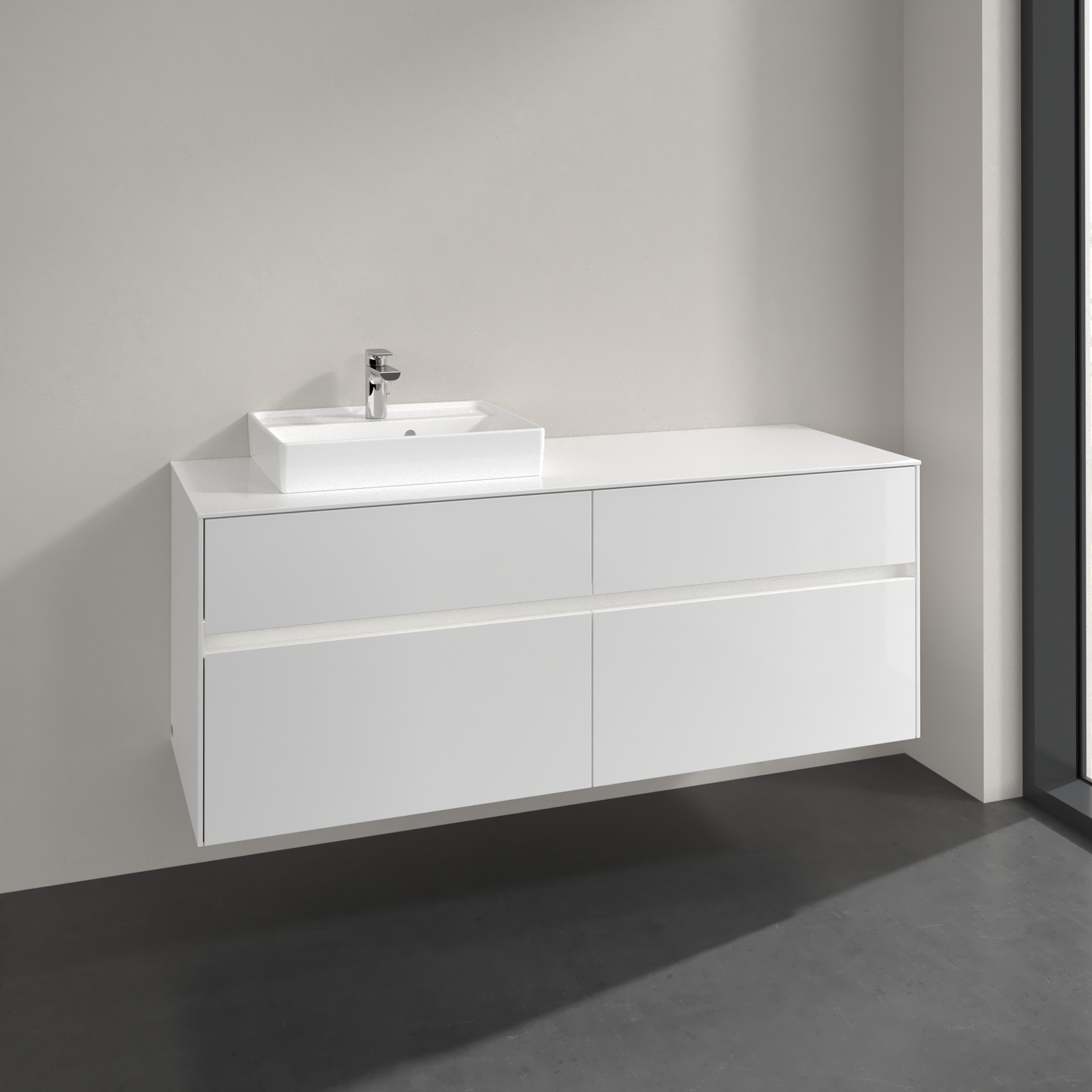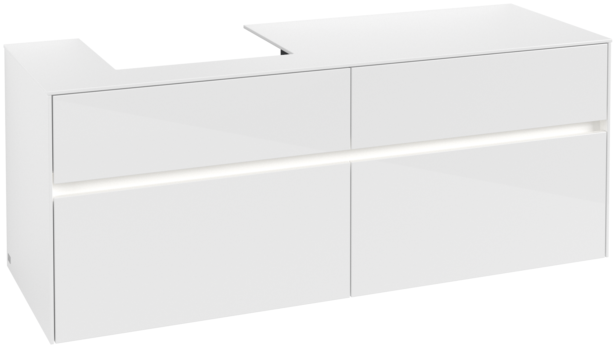Collaro Meuble sous plan, avec éclairage, 4 tiroirs sur rails, 1400x548x500mm, Caisson: Glossy White, Façade: Glossy White