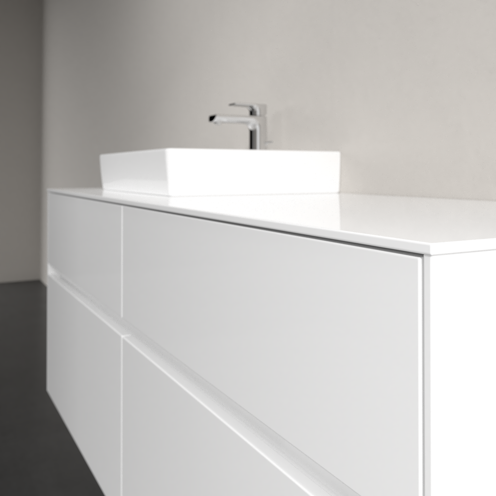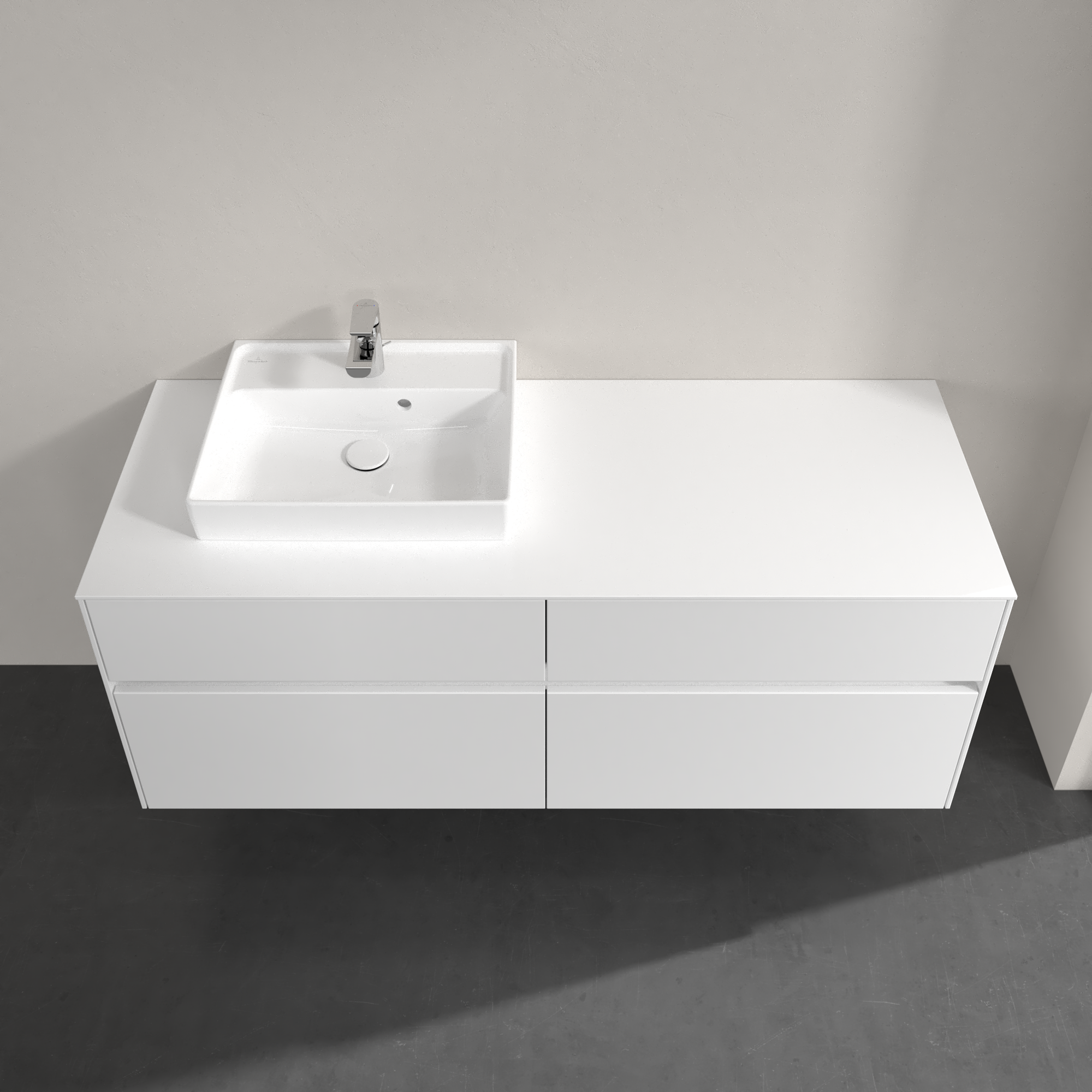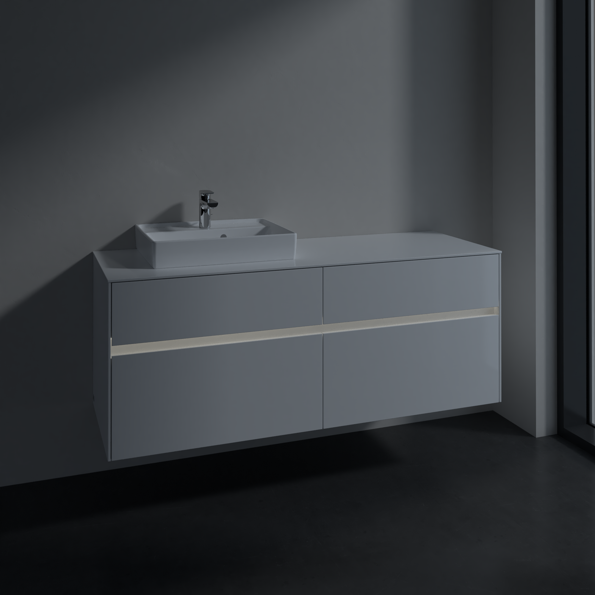 Collaro Meuble sous plan, avec éclairage, 4 tiroirs sur rails, 1400x548x500mm, Caisson: Glossy White, Façade: Glossy White