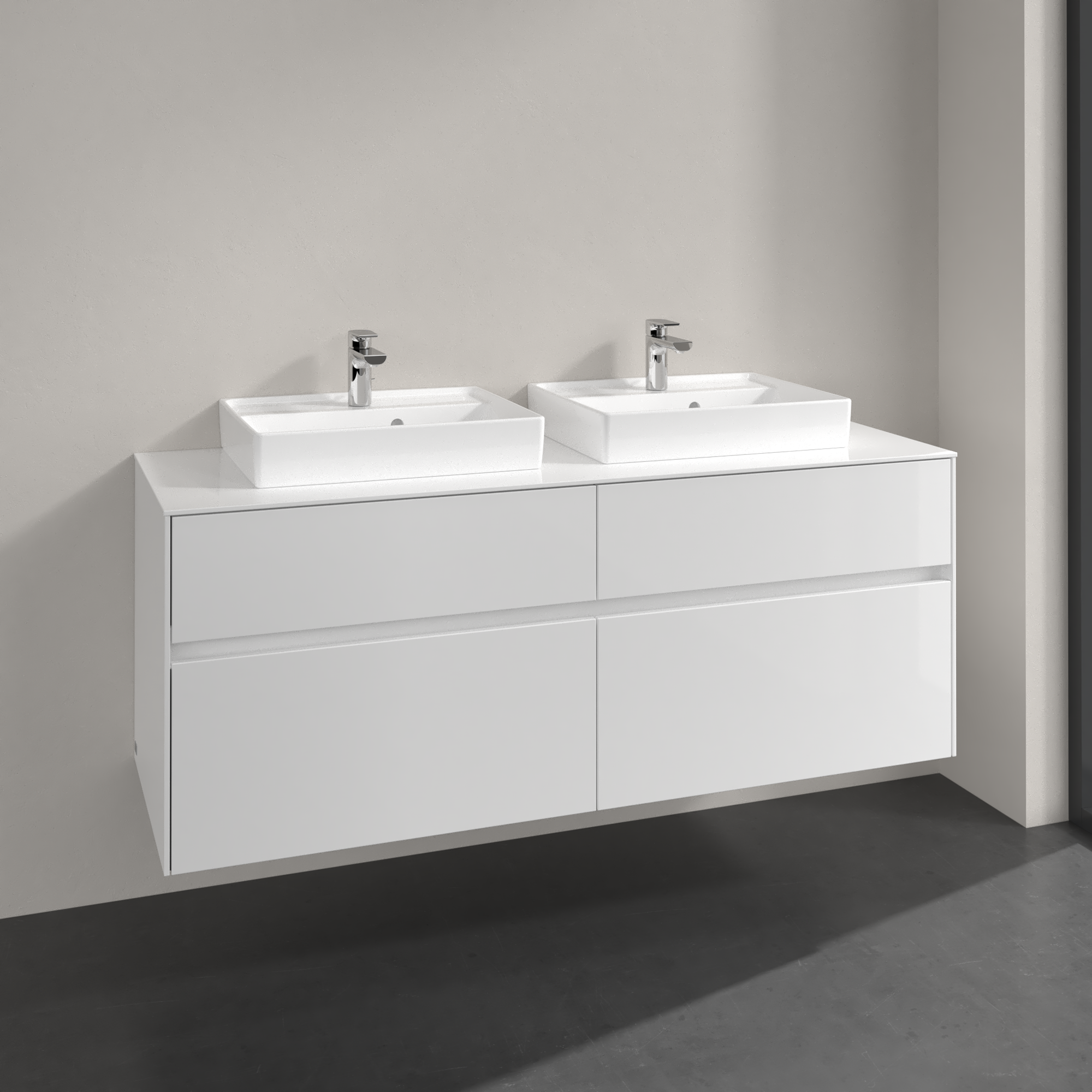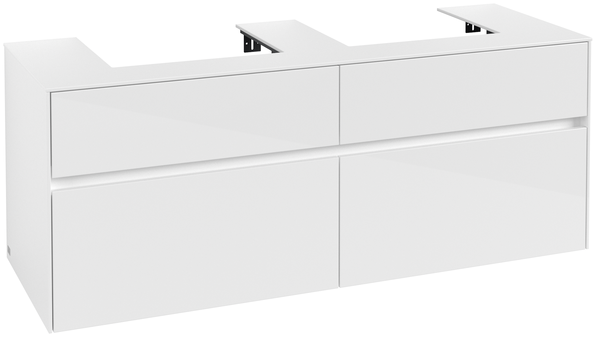Collaro Meuble sous plan, 4 tiroirs sur rails, 1400x548x500mm, Caisson: Glossy White, Façade: Glossy White