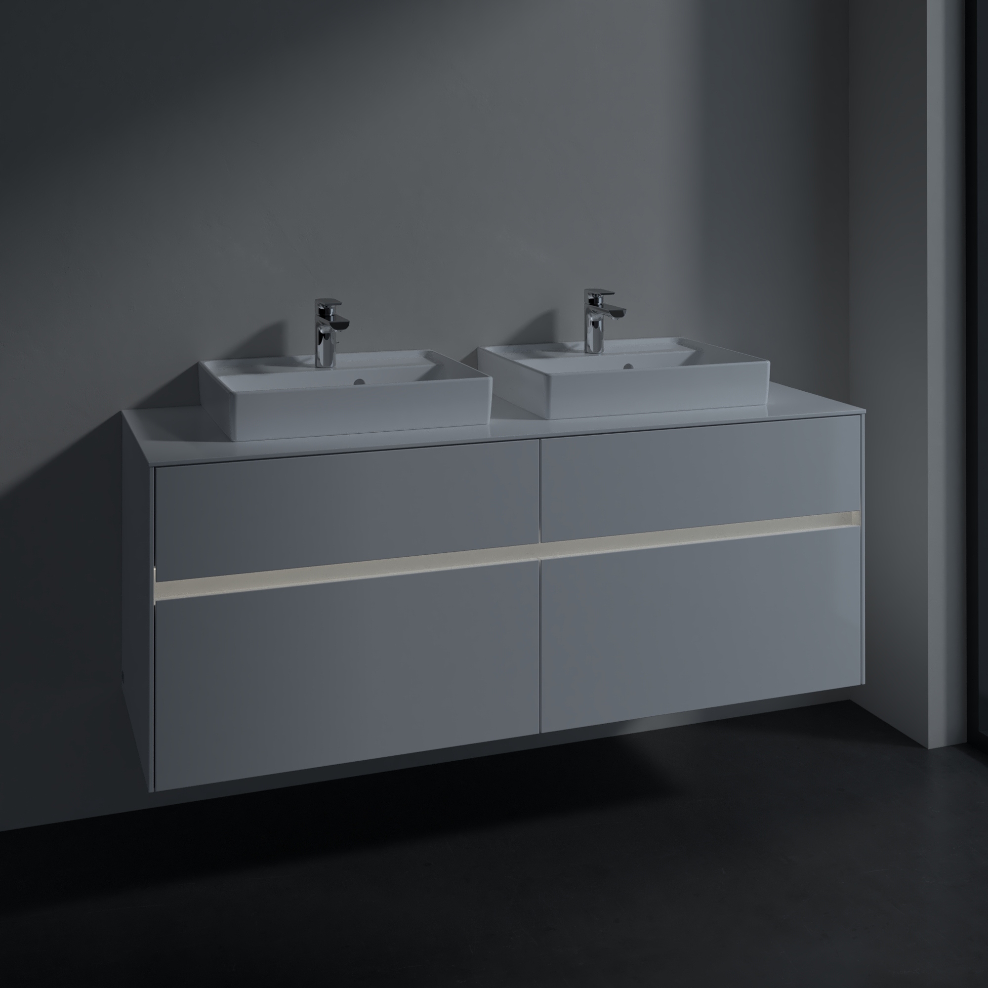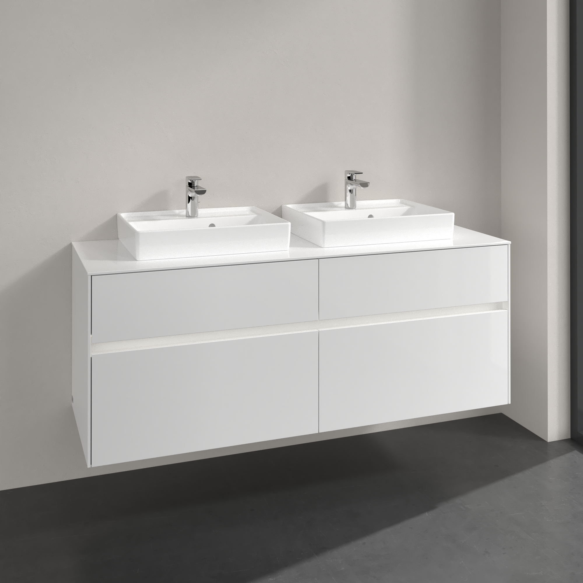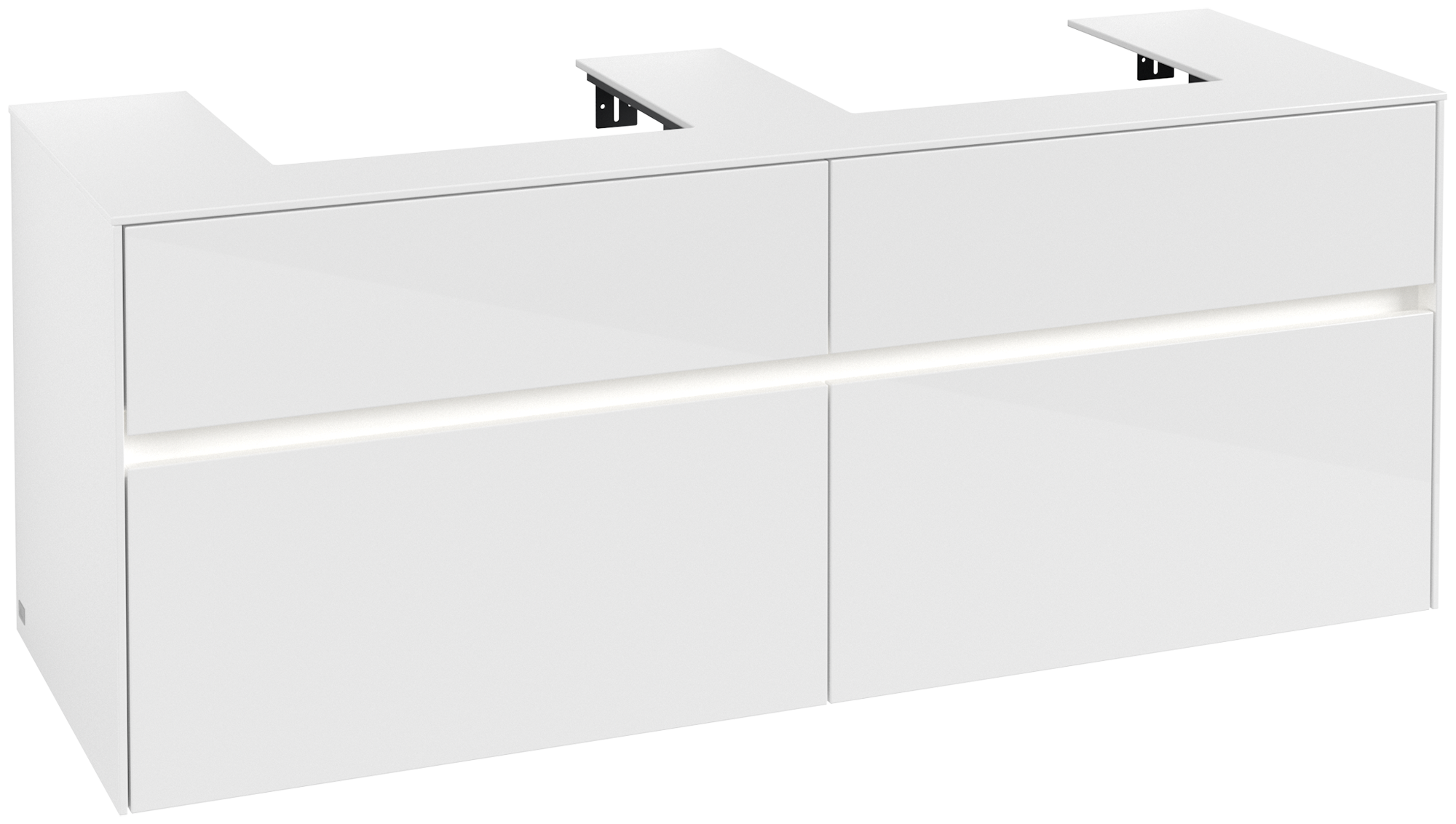 Collaro Meuble sous plan, avec éclairage, 4 tiroirs sur rails, 1400x548x500mm, Caisson: Glossy White, Façade: Glossy White