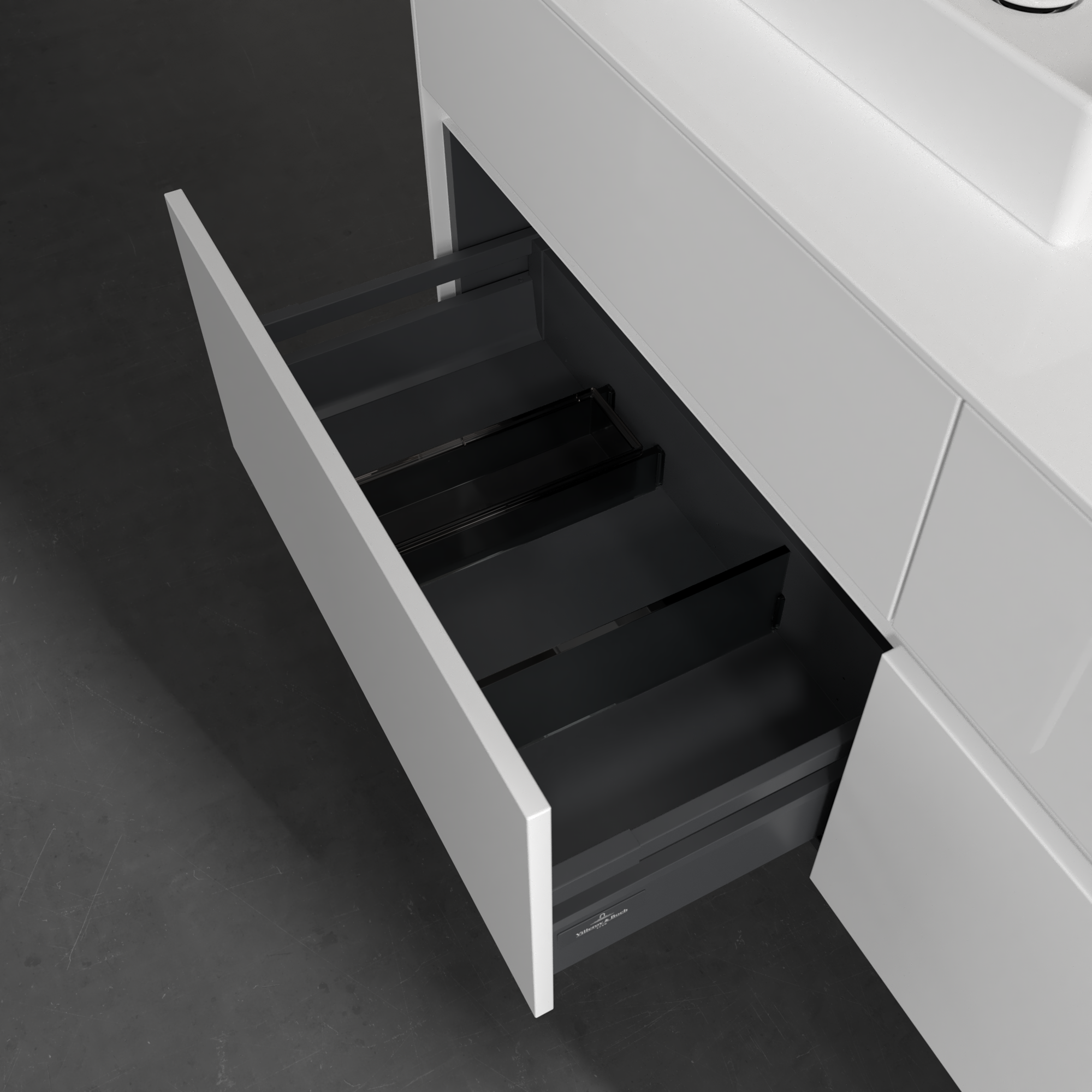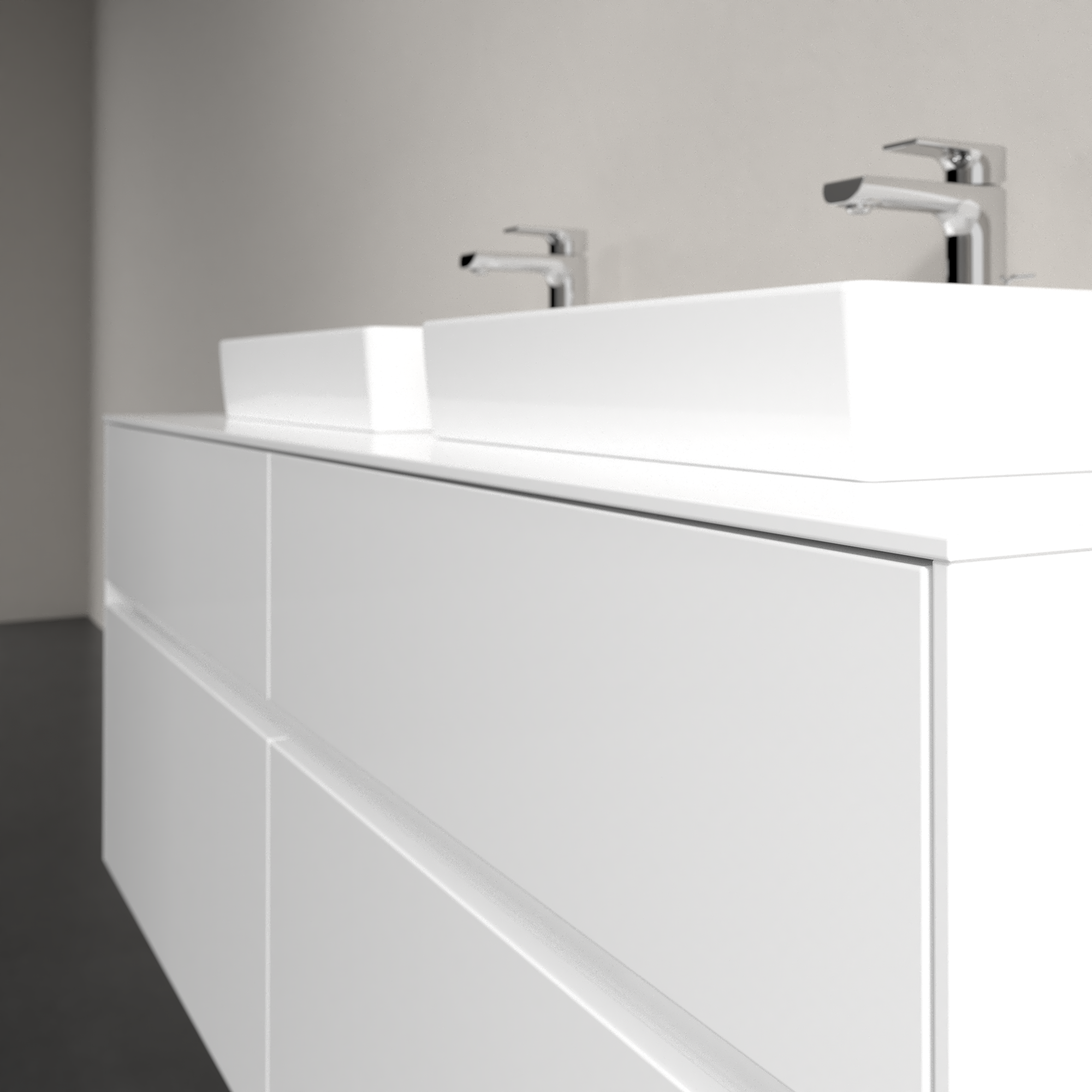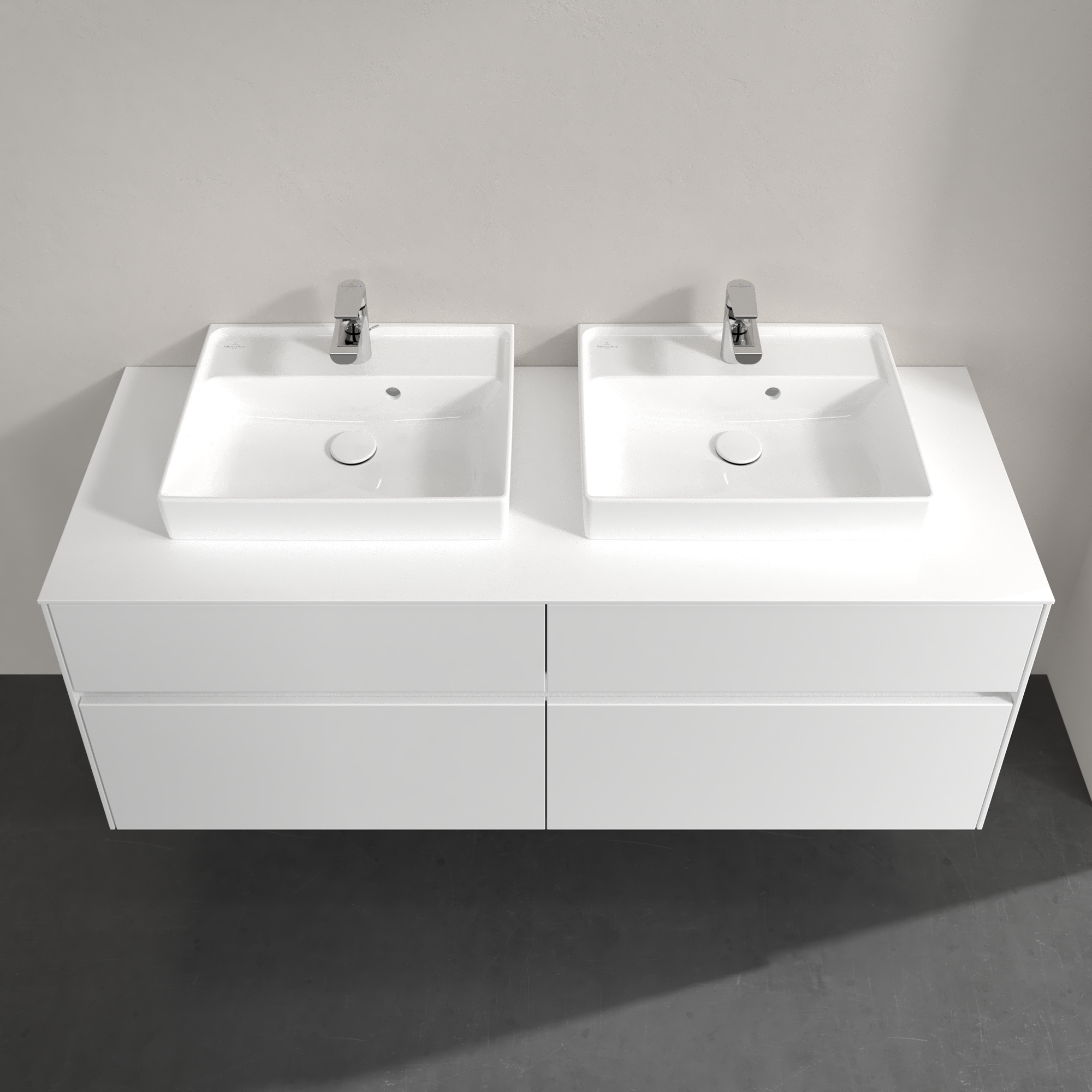 Collaro Meuble sous plan, avec éclairage, 4 tiroirs sur rails, 1400x548x500mm, Caisson: Glossy White, Façade: Glossy White