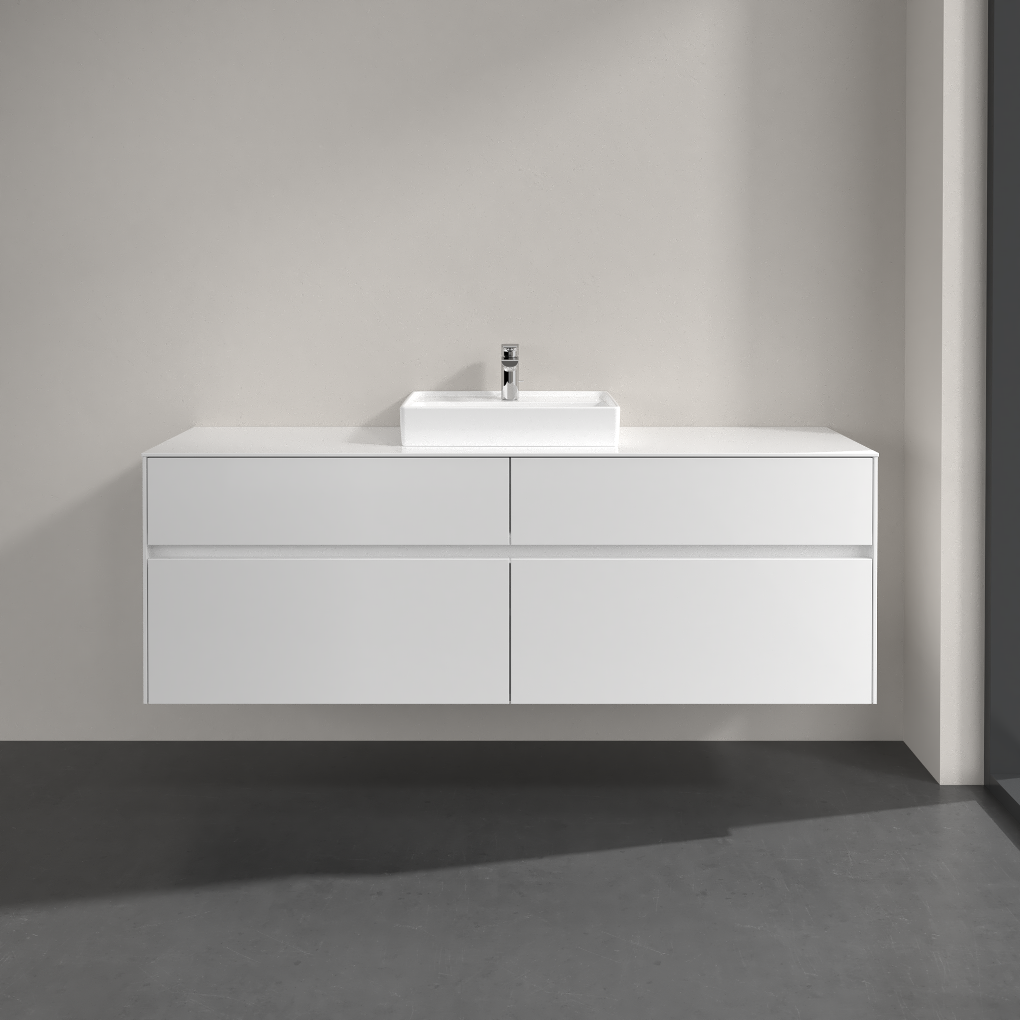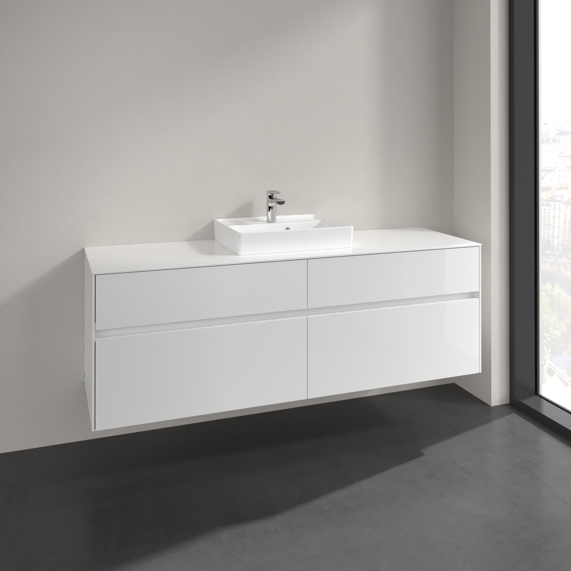 Collaro Meuble sous plan, 4 tiroirs sur rails, 1600x548x500mm, Caisson: Glossy White, Façade: Glossy White