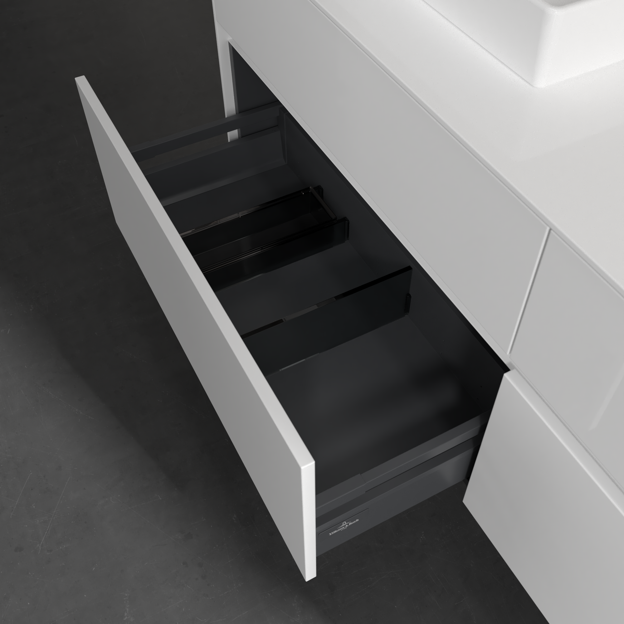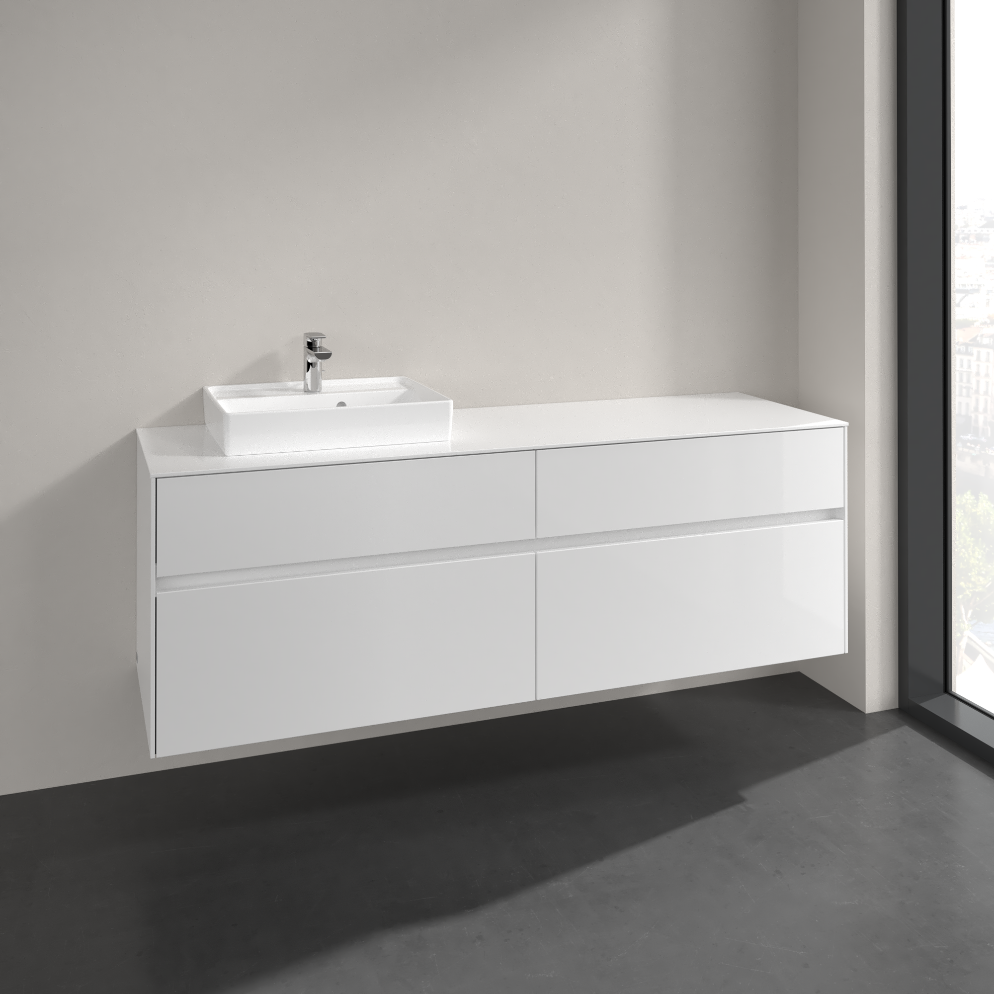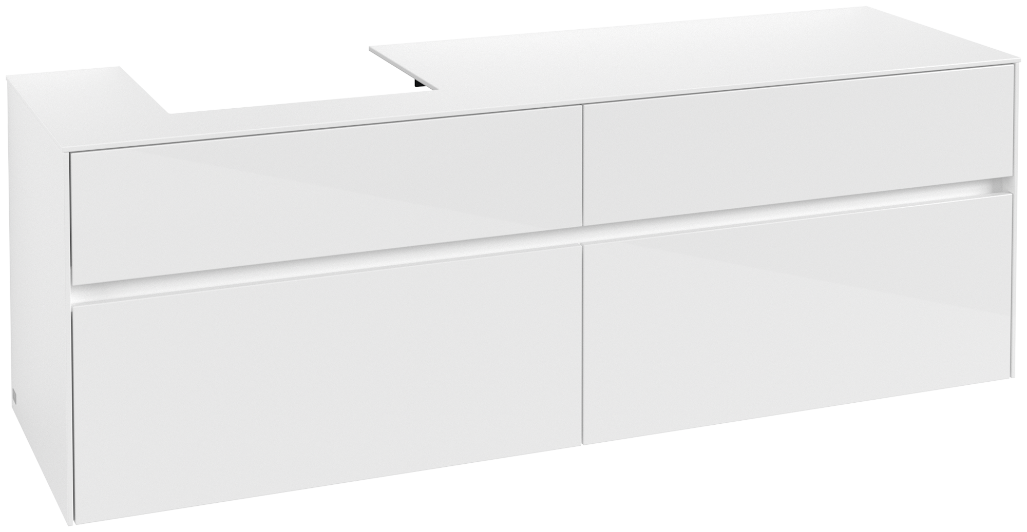 Collaro Meuble sous plan, 4 tiroirs sur rails, 1600x548x500mm, Caisson: Glossy White, Façade: Glossy White