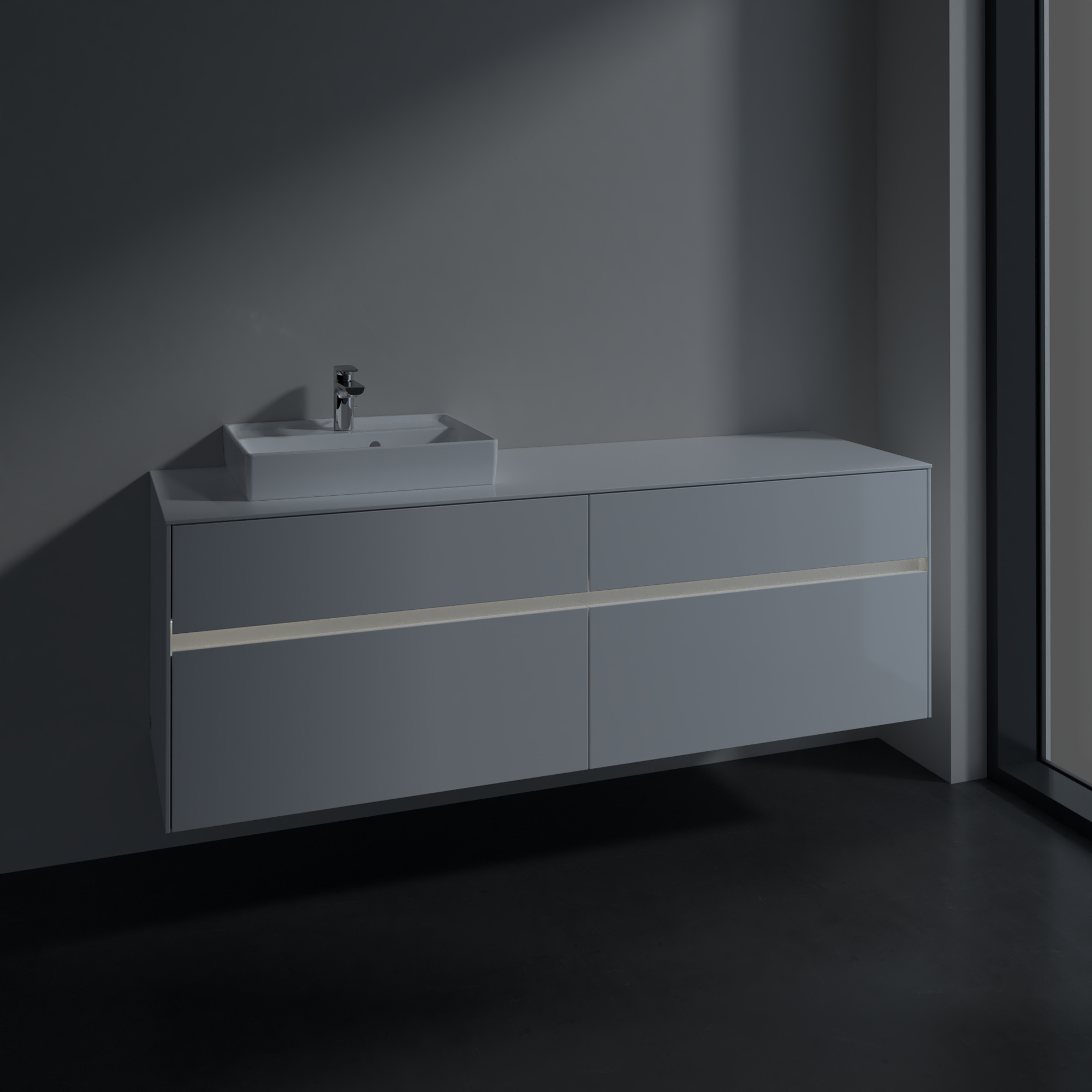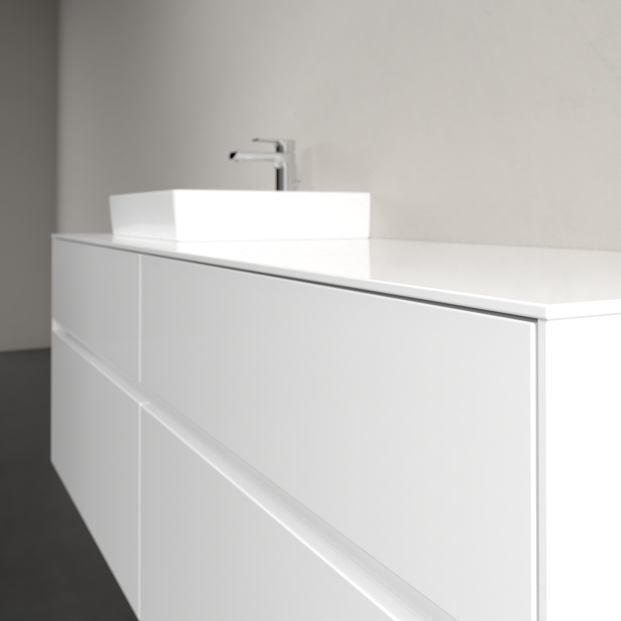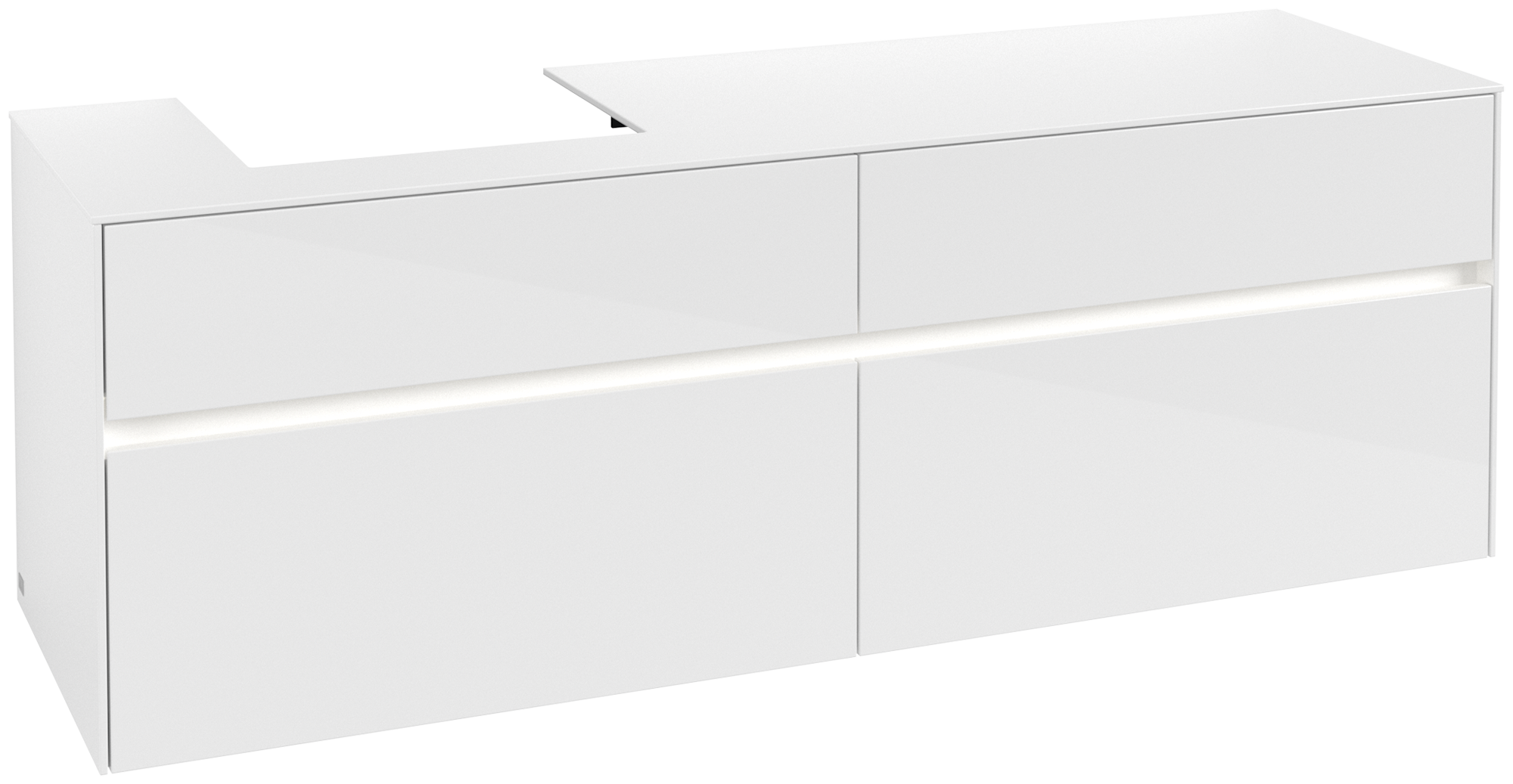 Collaro Meuble sous plan, avec éclairage, 4 tiroirs sur rails, 1600x548x500mm, Caisson: Glossy White, Façade: Glossy White